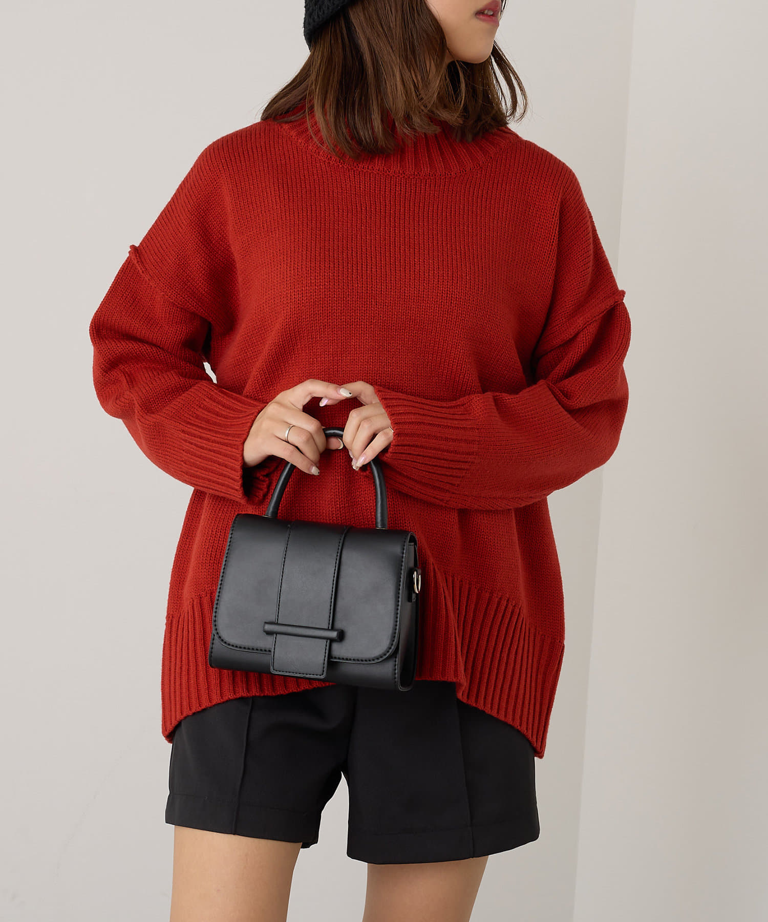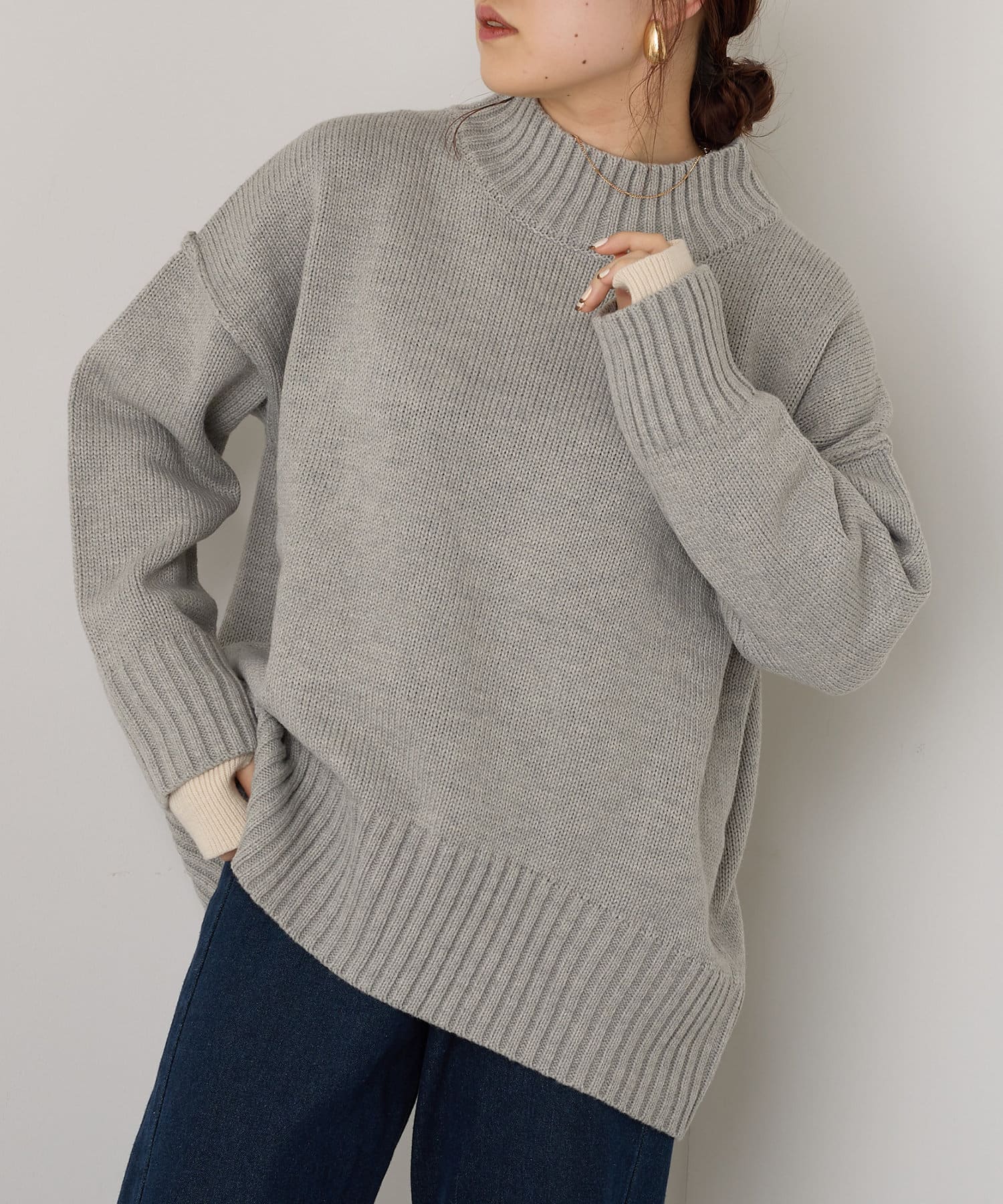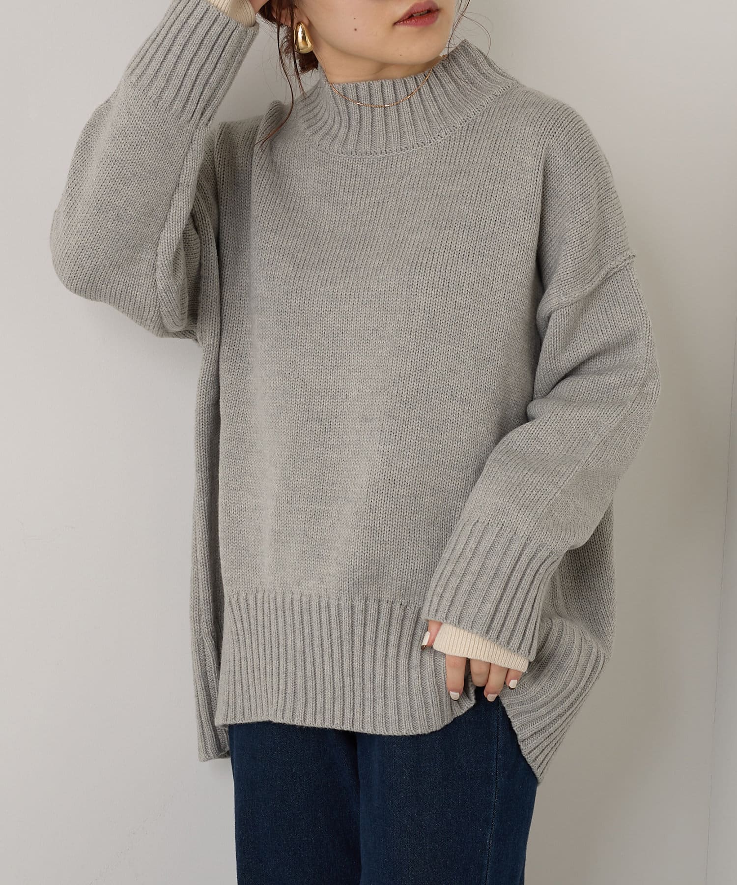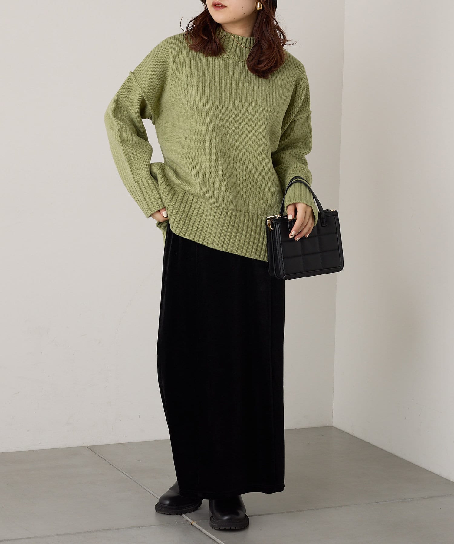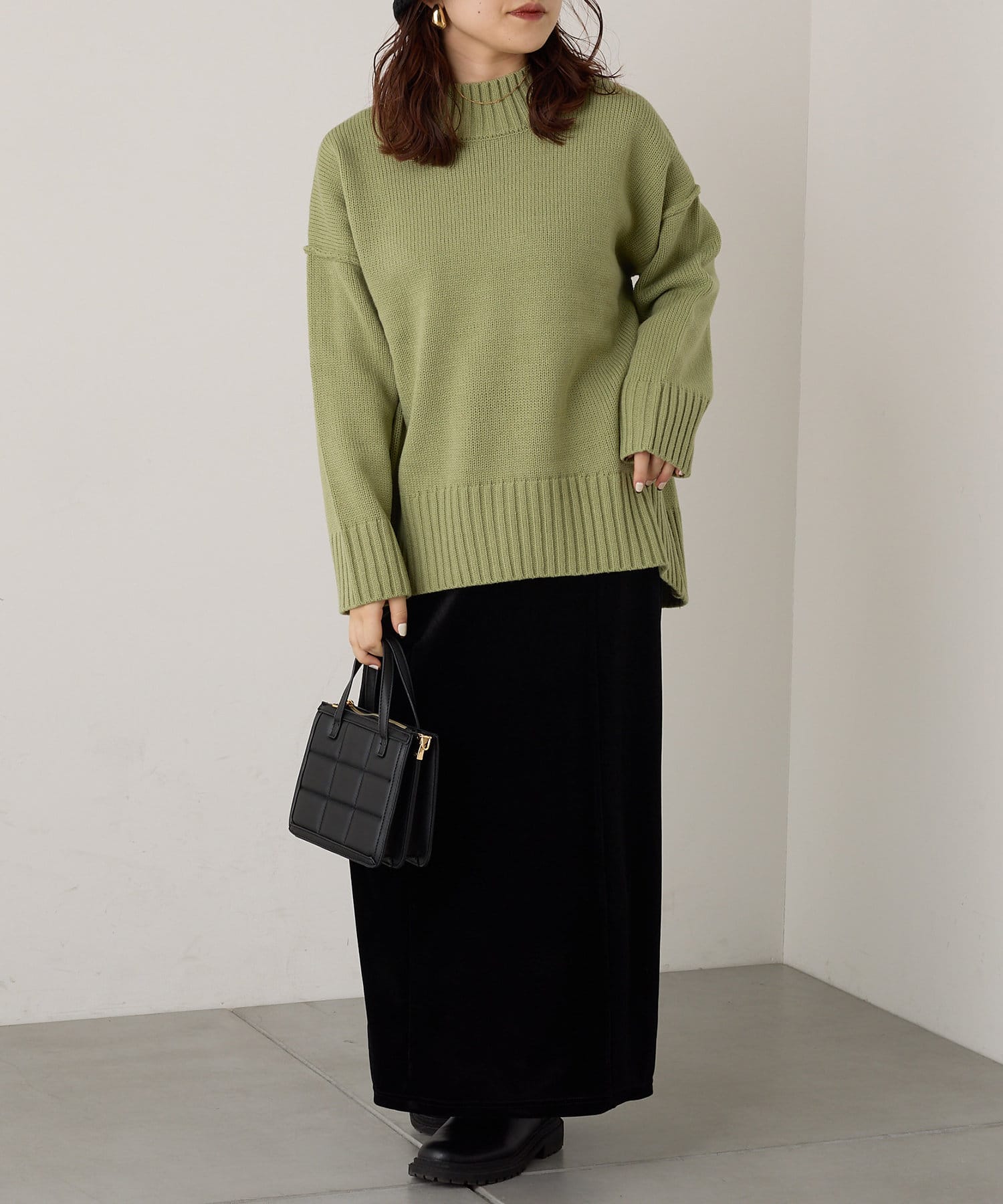 ・ふっくらとしたアクリル素材のニットは、チクチクしない柔らかな肌触りが特長。