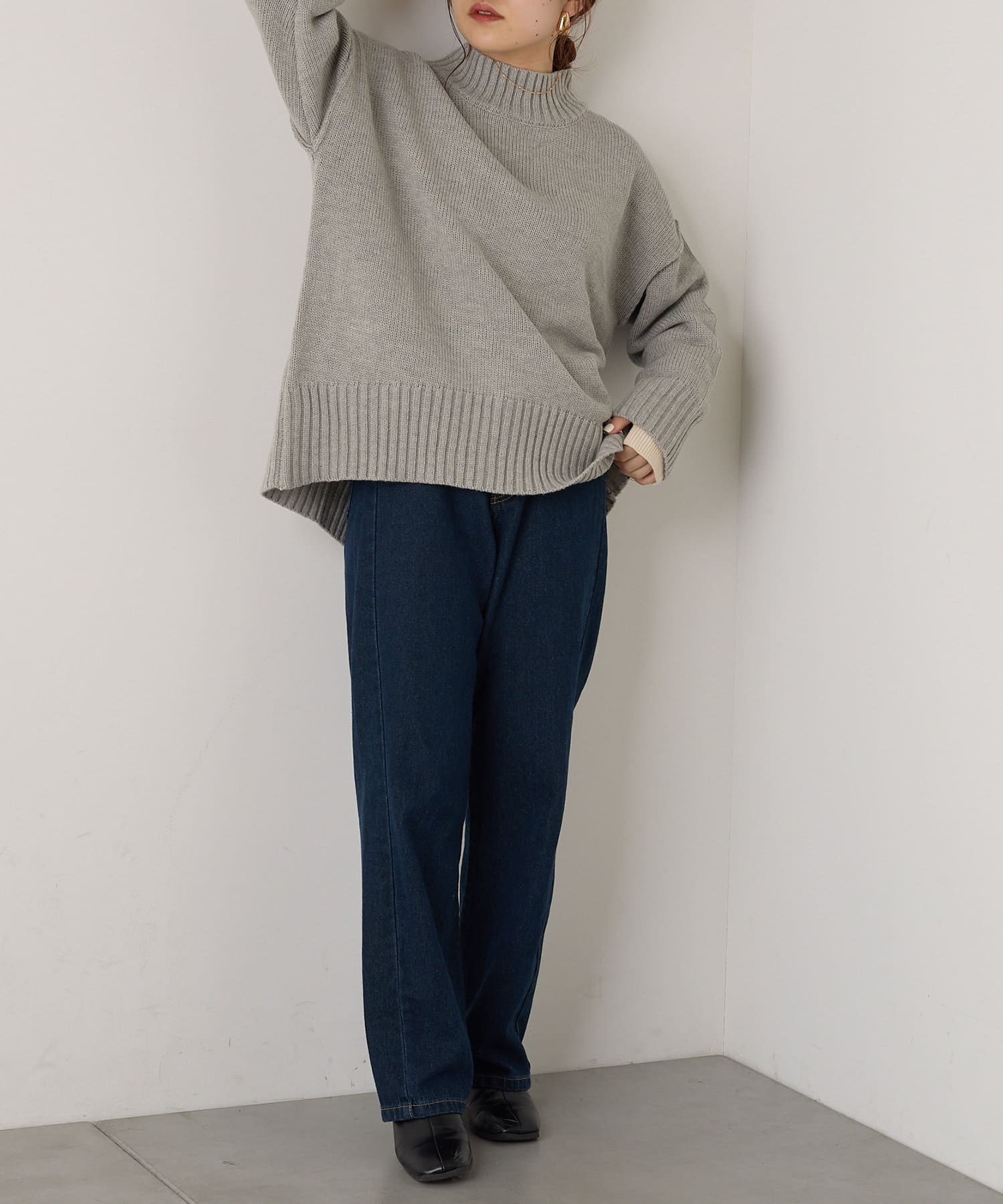 ・シンプルにデニム合わせは通学コートとしても可愛いです。ボトムスに悩まない優秀ニットです。