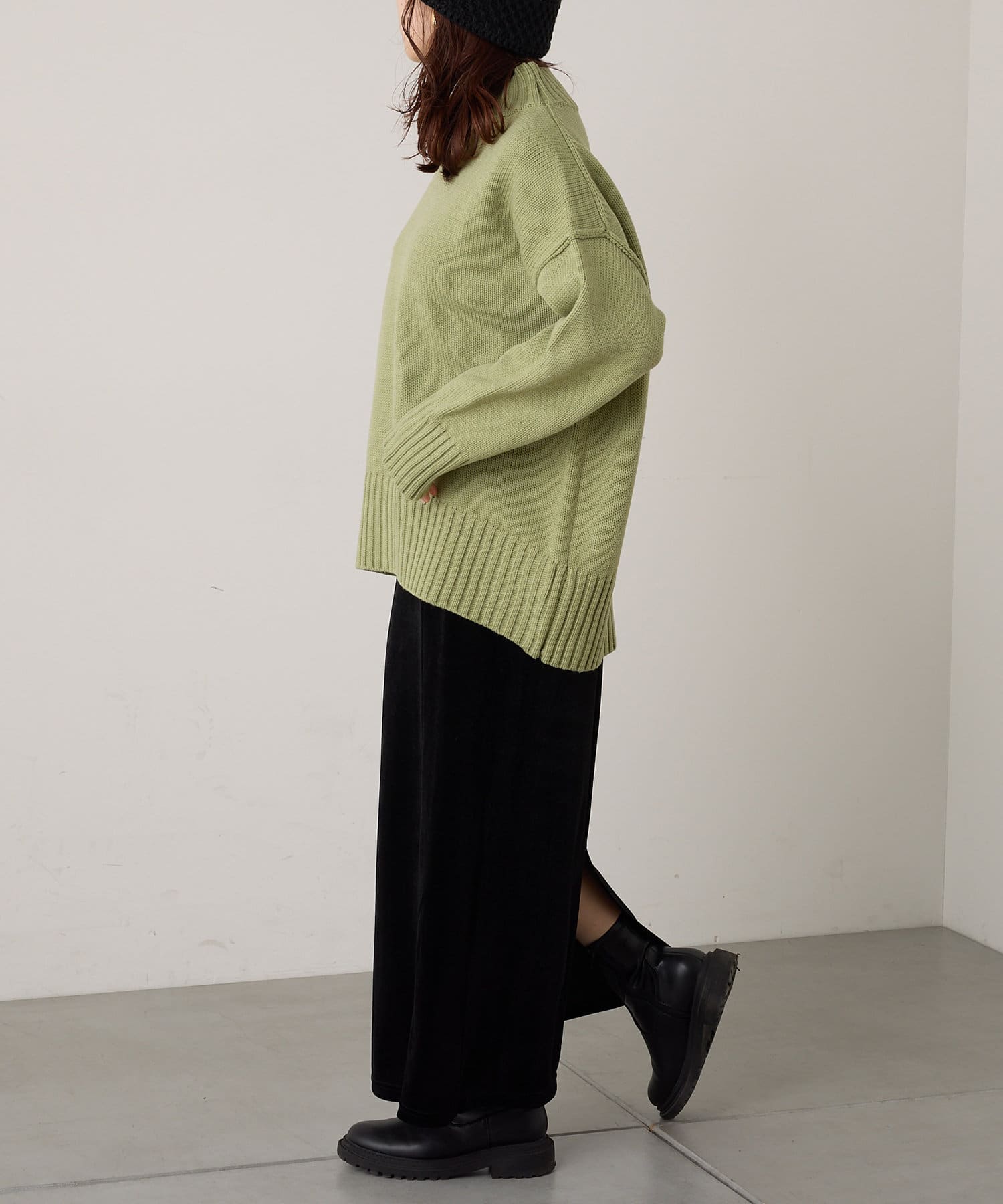 ・ざっくり目の編み地に仕立て、カジュアルな雰囲気と柔らかな風合いが魅力です。