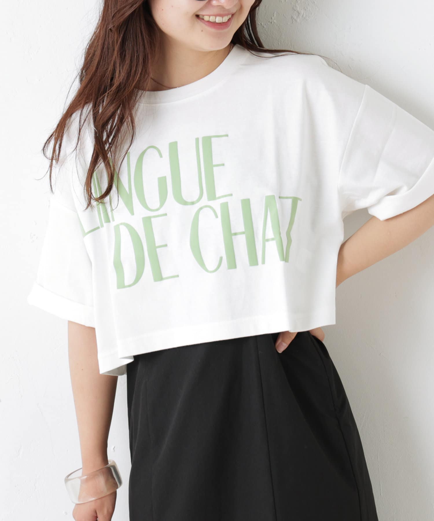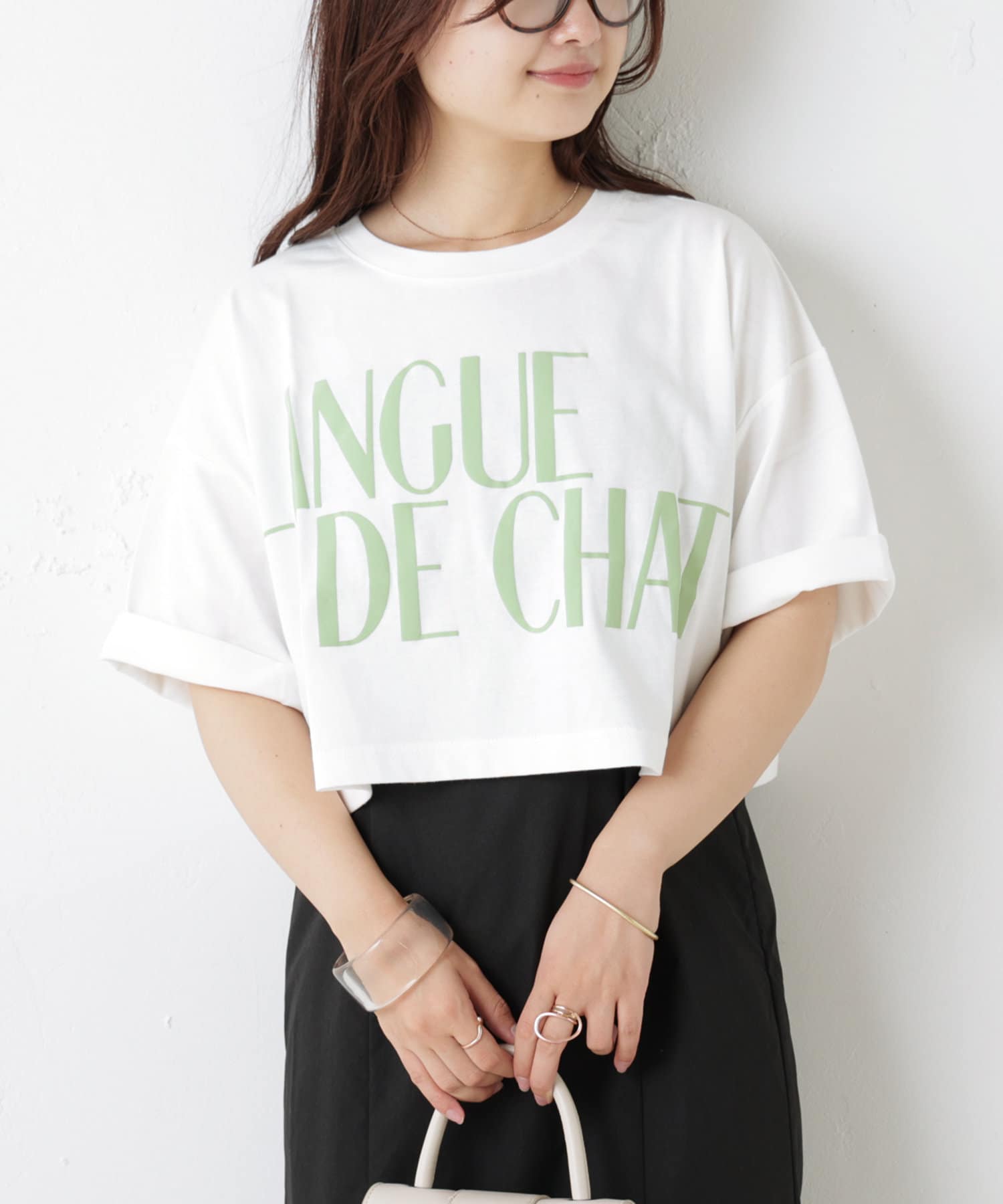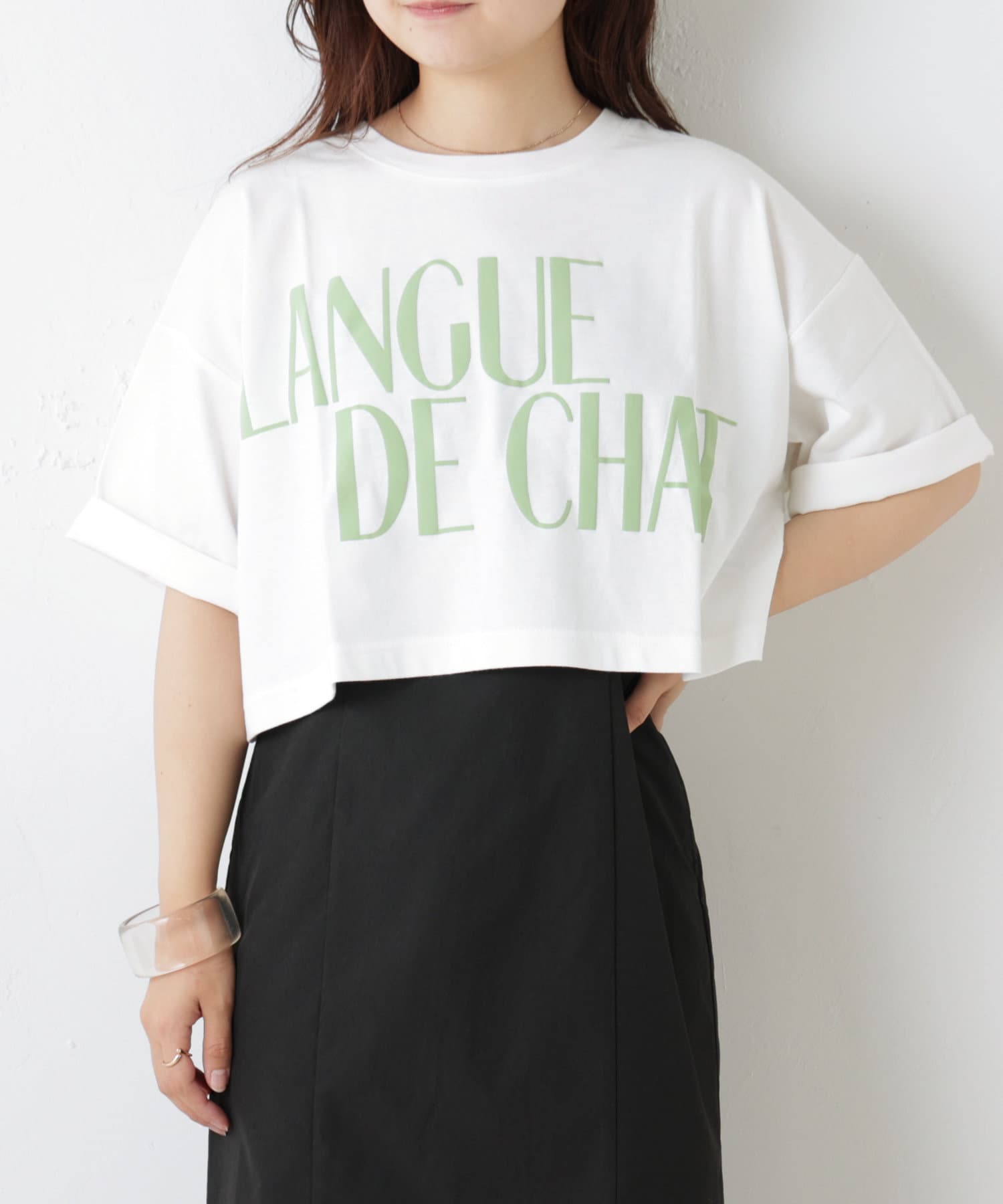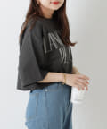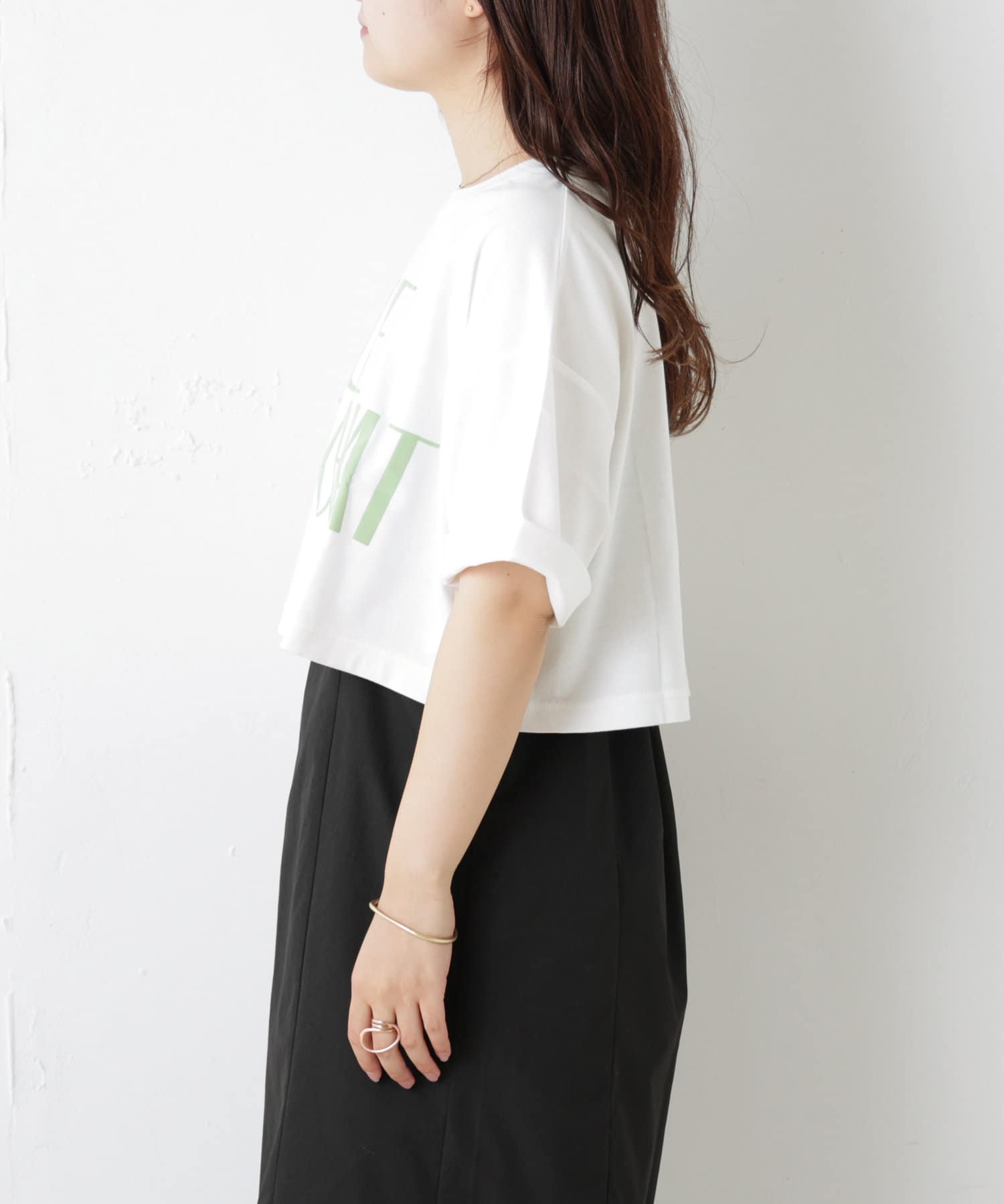 ・大きめなロゴが目を惹く、ショート丈のロゴTシャツ。