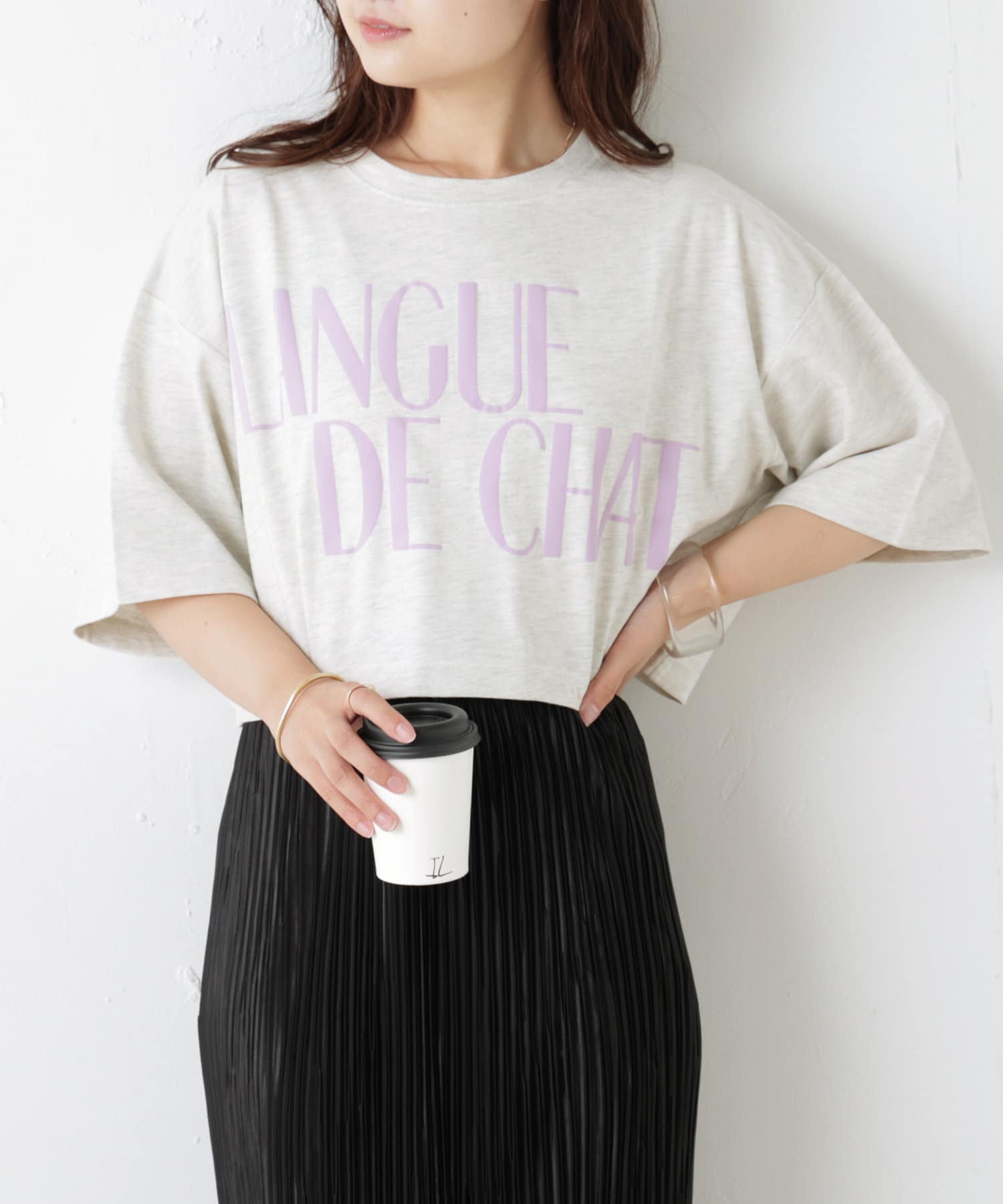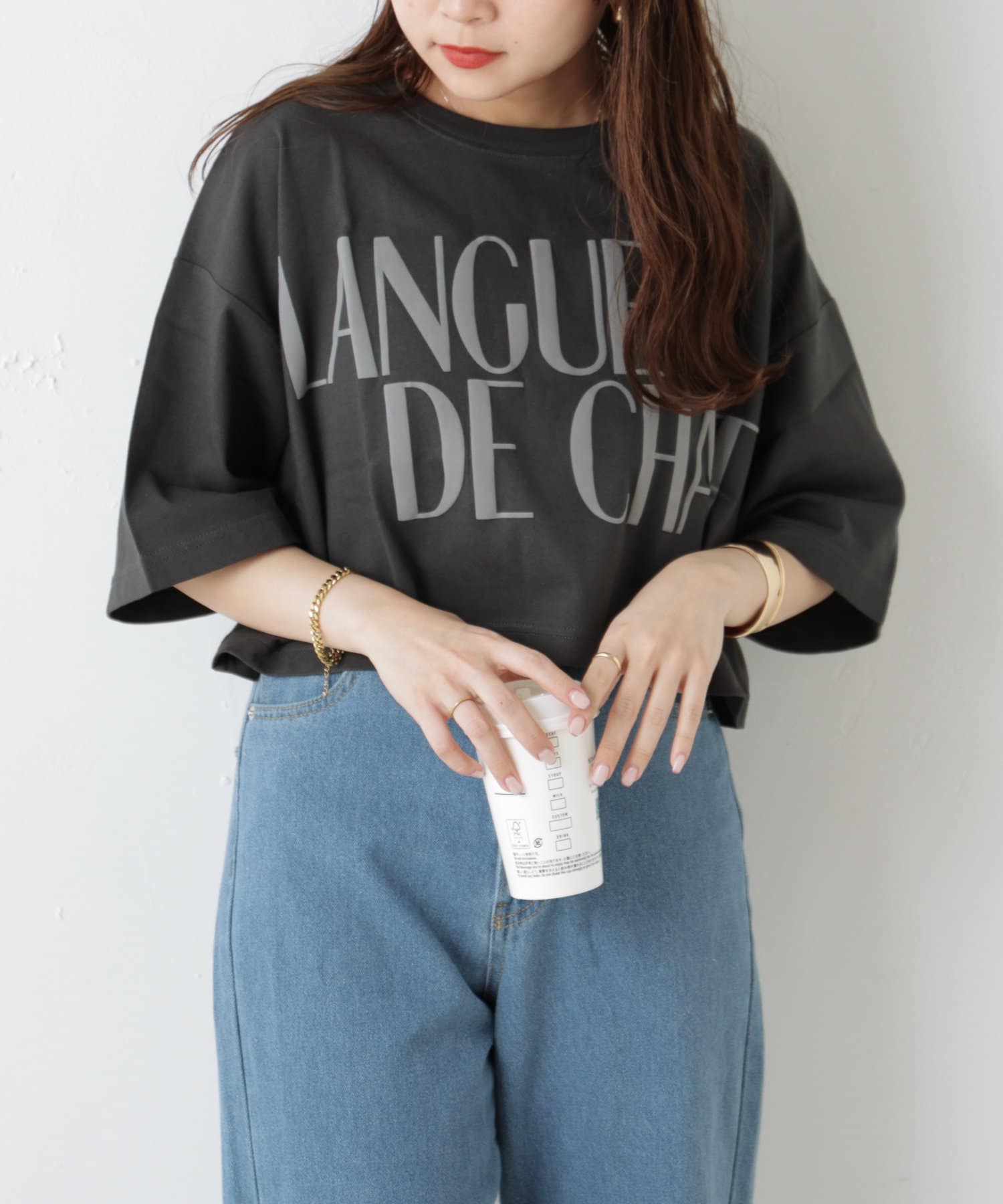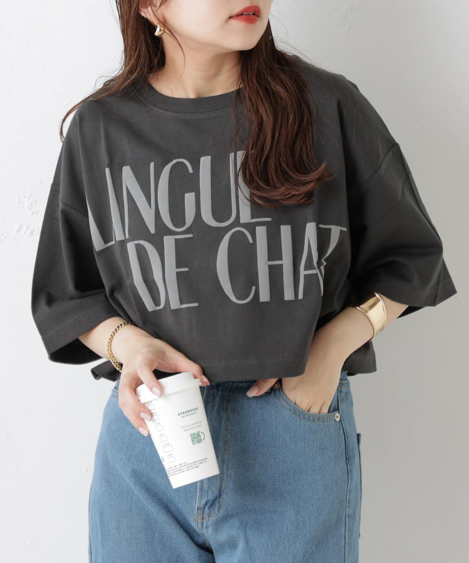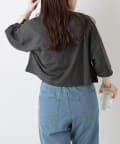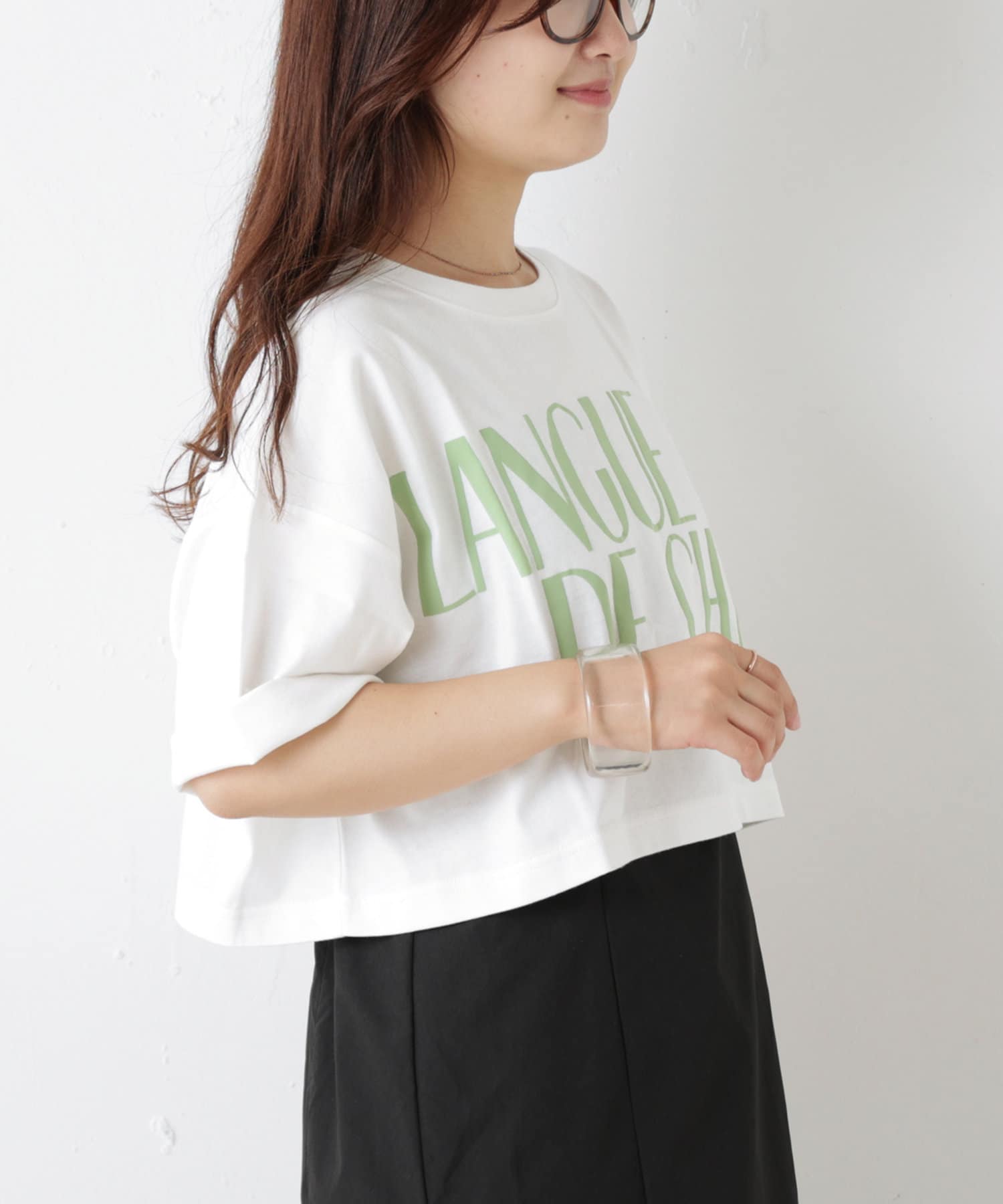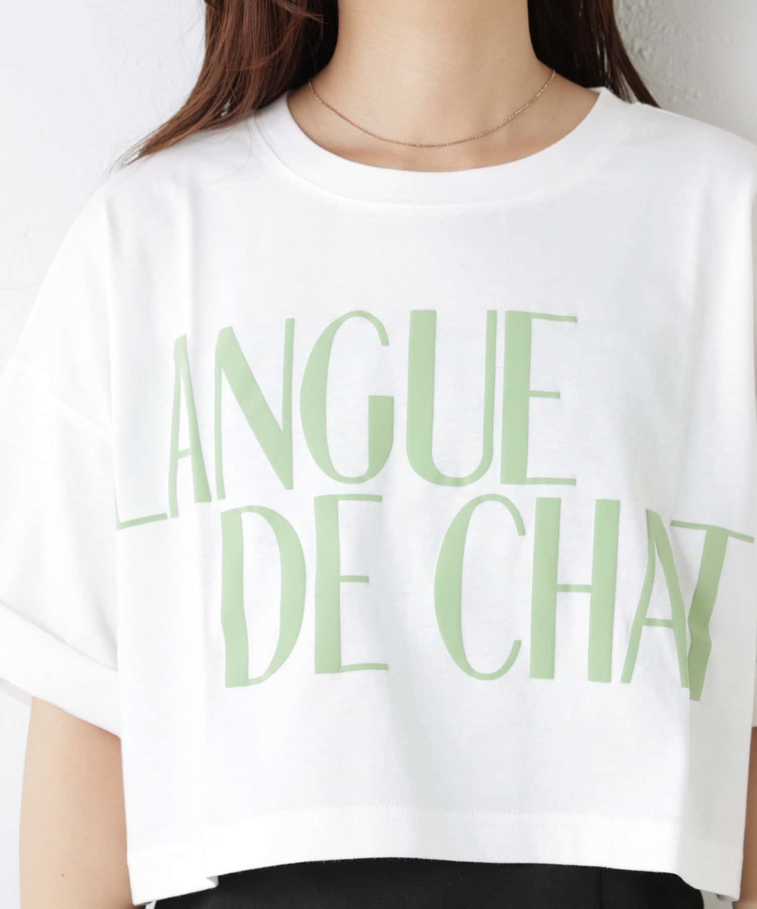 ・大きめなロゴが目を惹く、ショート丈のロゴTシャツ。