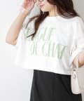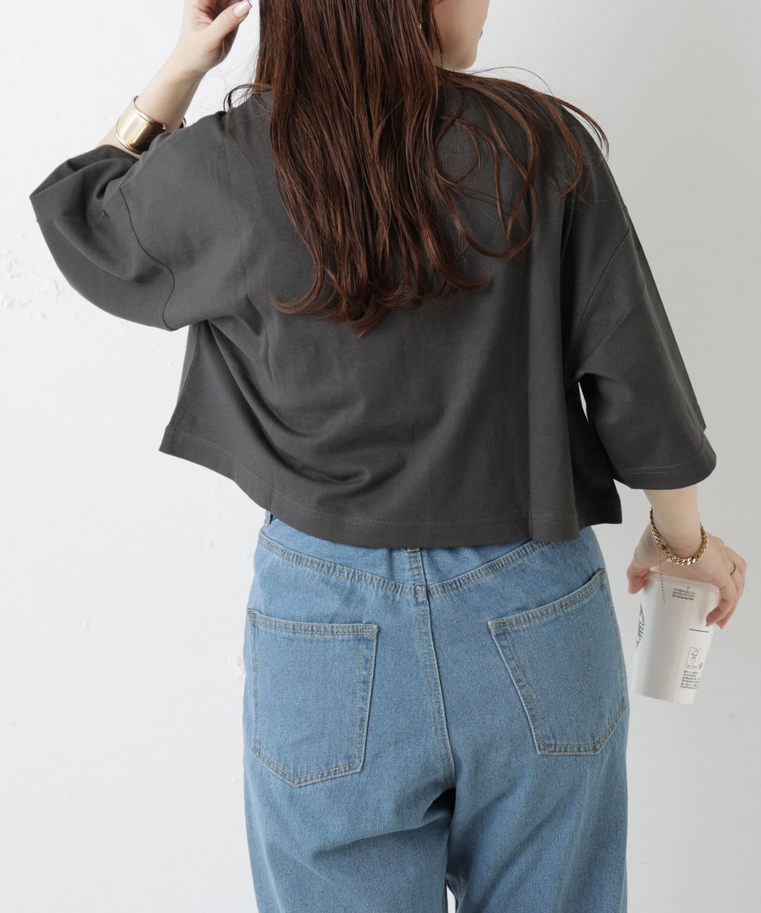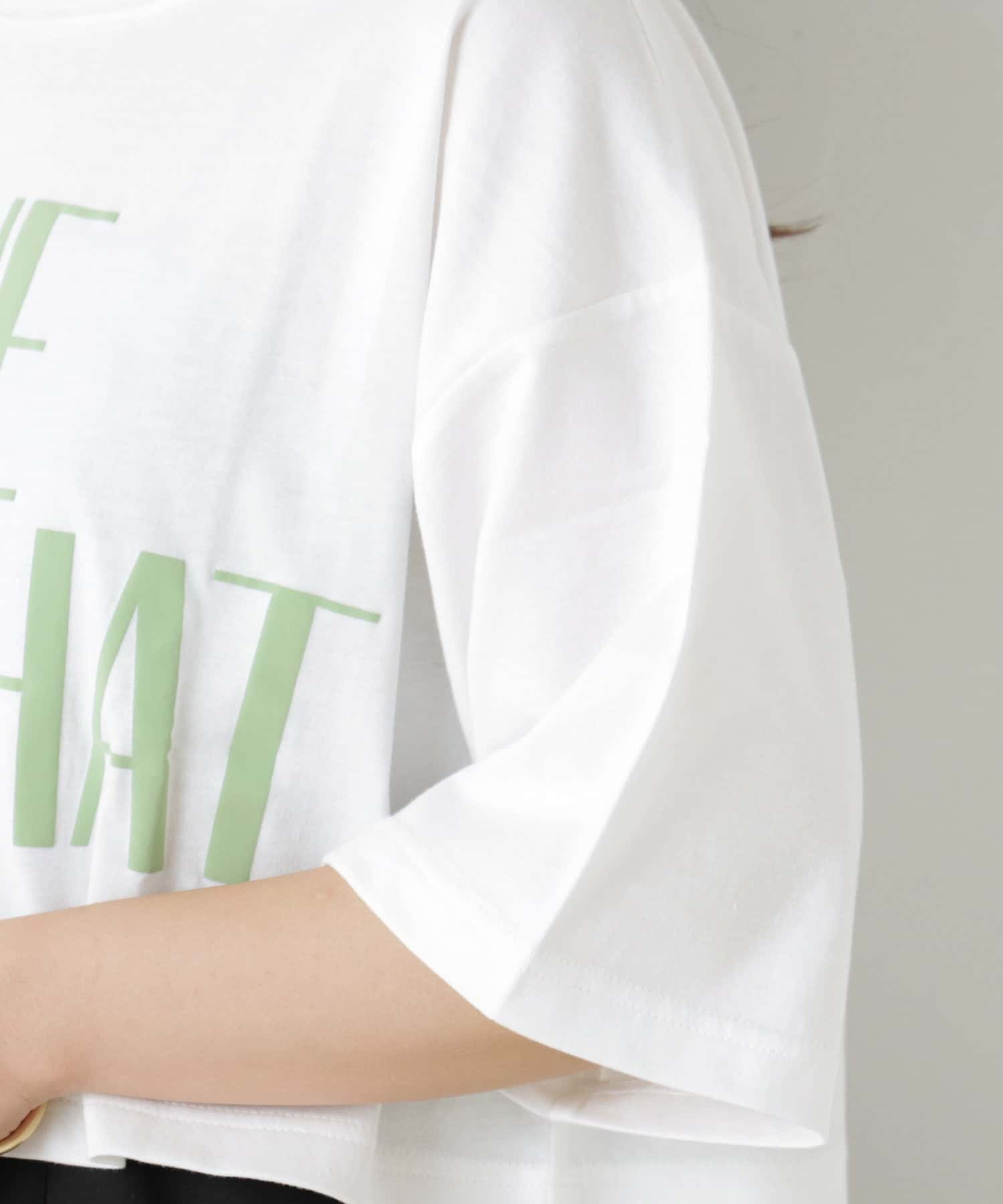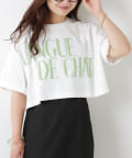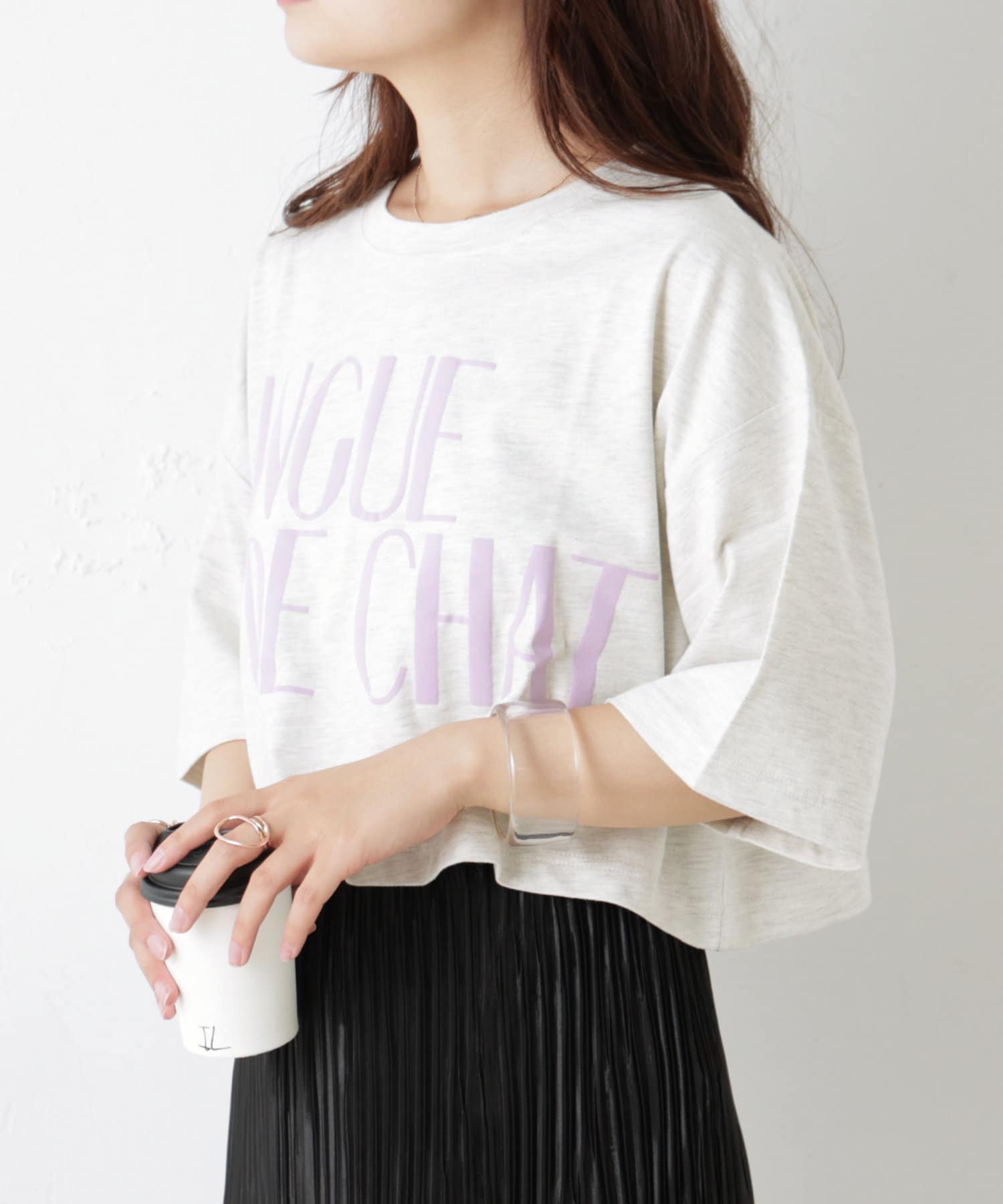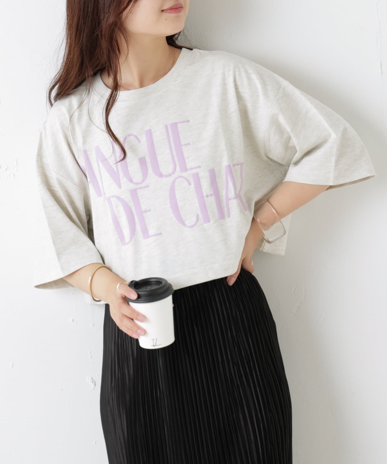 ・大きめなロゴが目を惹く、ショート丈のロゴTシャツ。