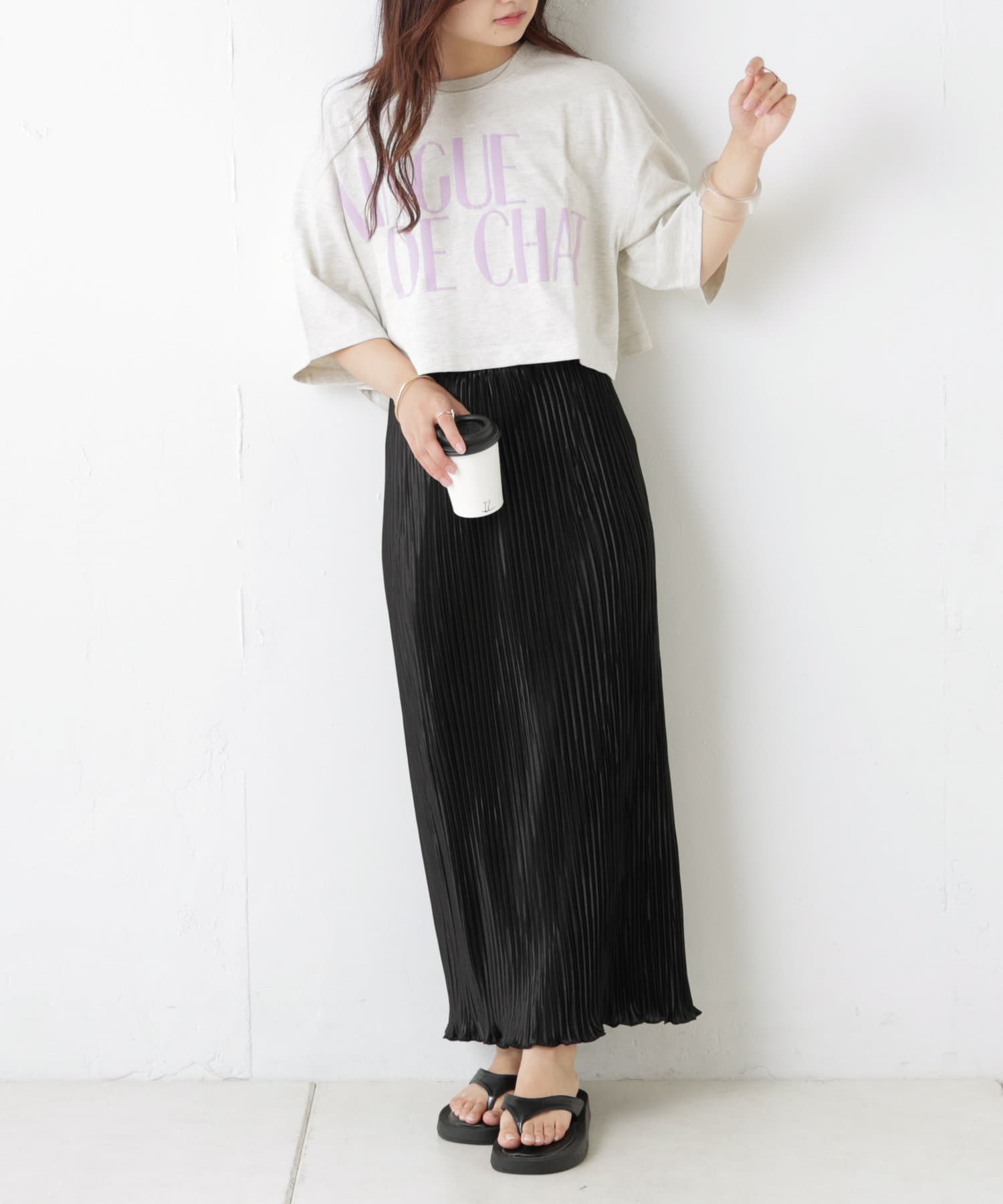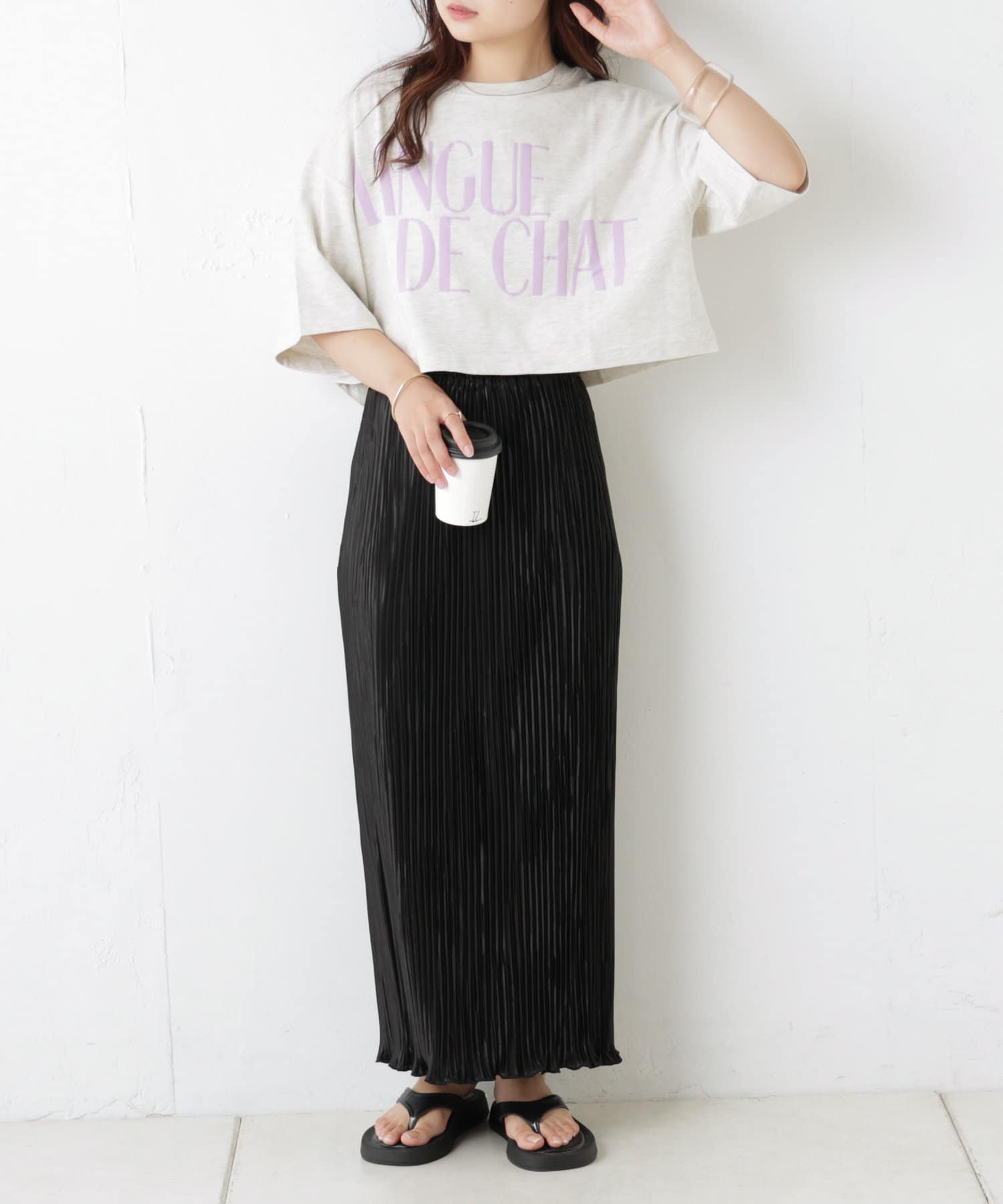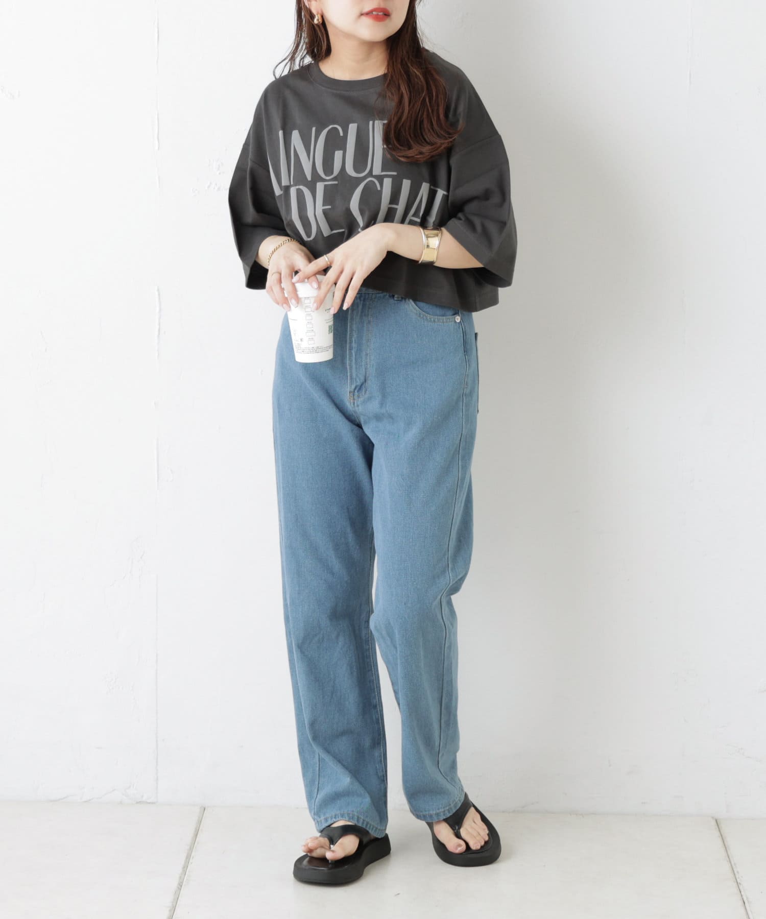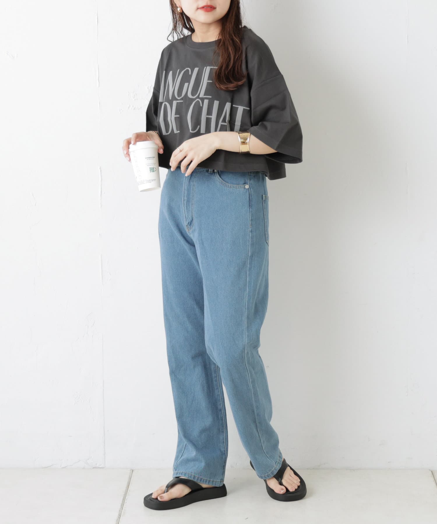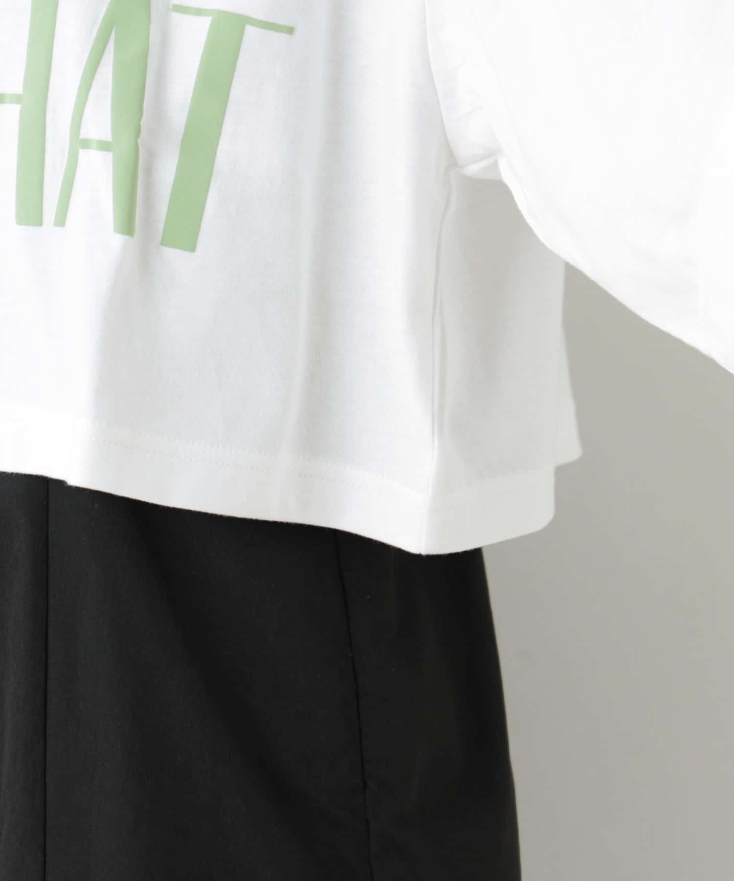 ・大きめなロゴが目を惹く、ショート丈のロゴTシャツ。