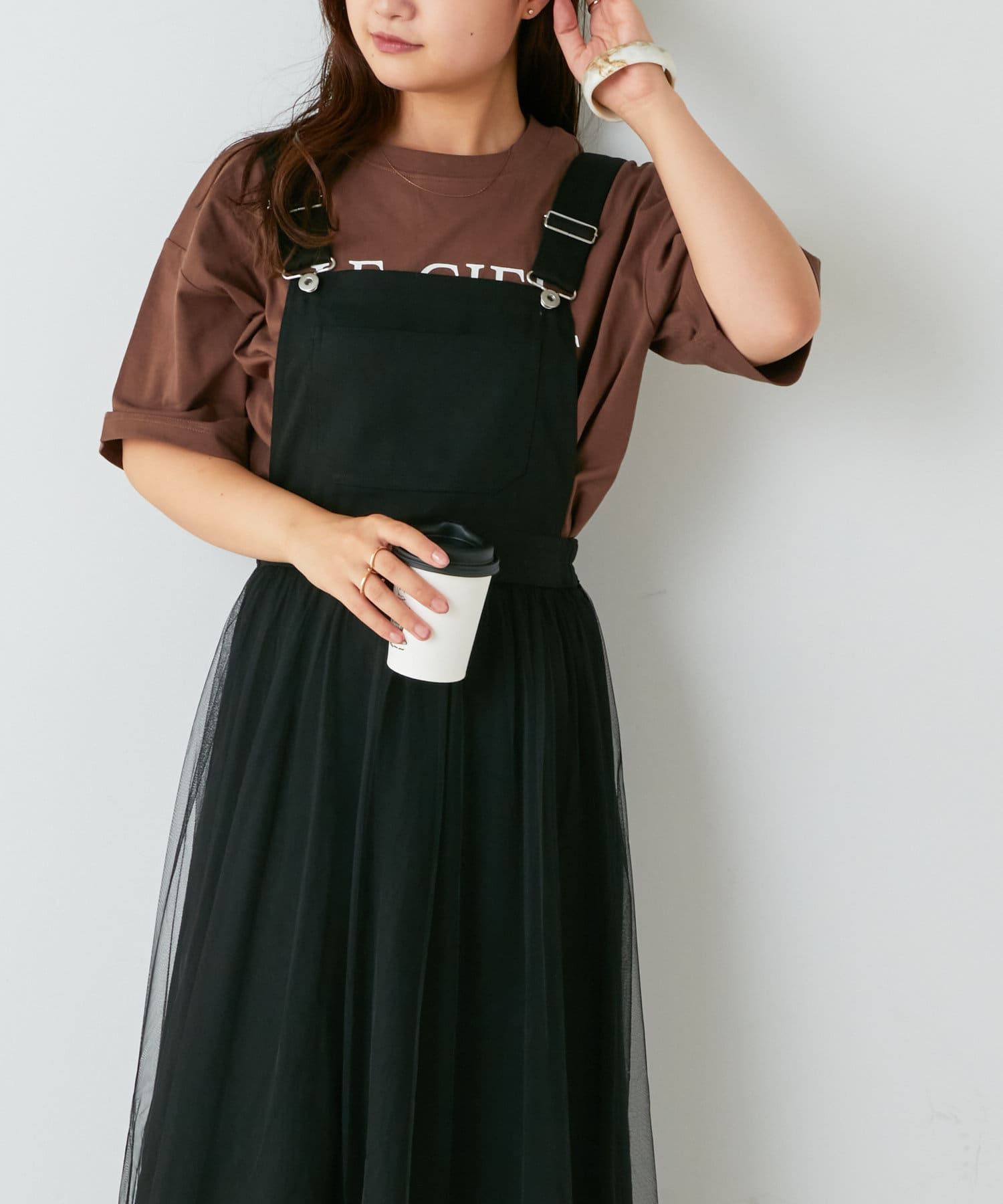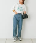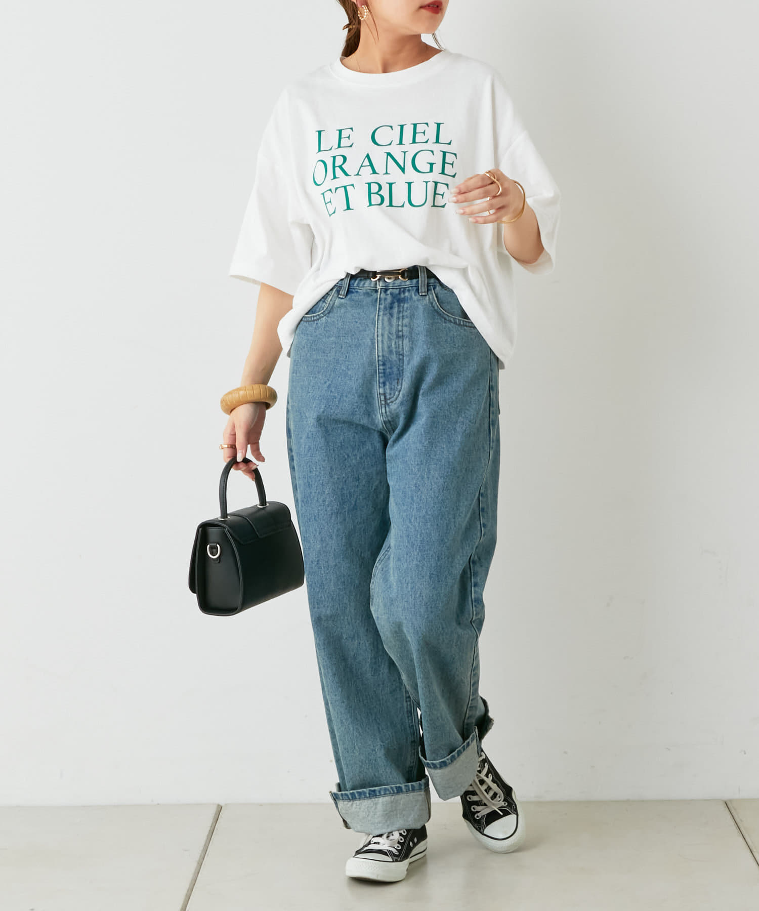 ・ミニボトムを合わせてガーリーに。ダメージデニムを合わせててトレンド感のあるカジュアルコーデに。