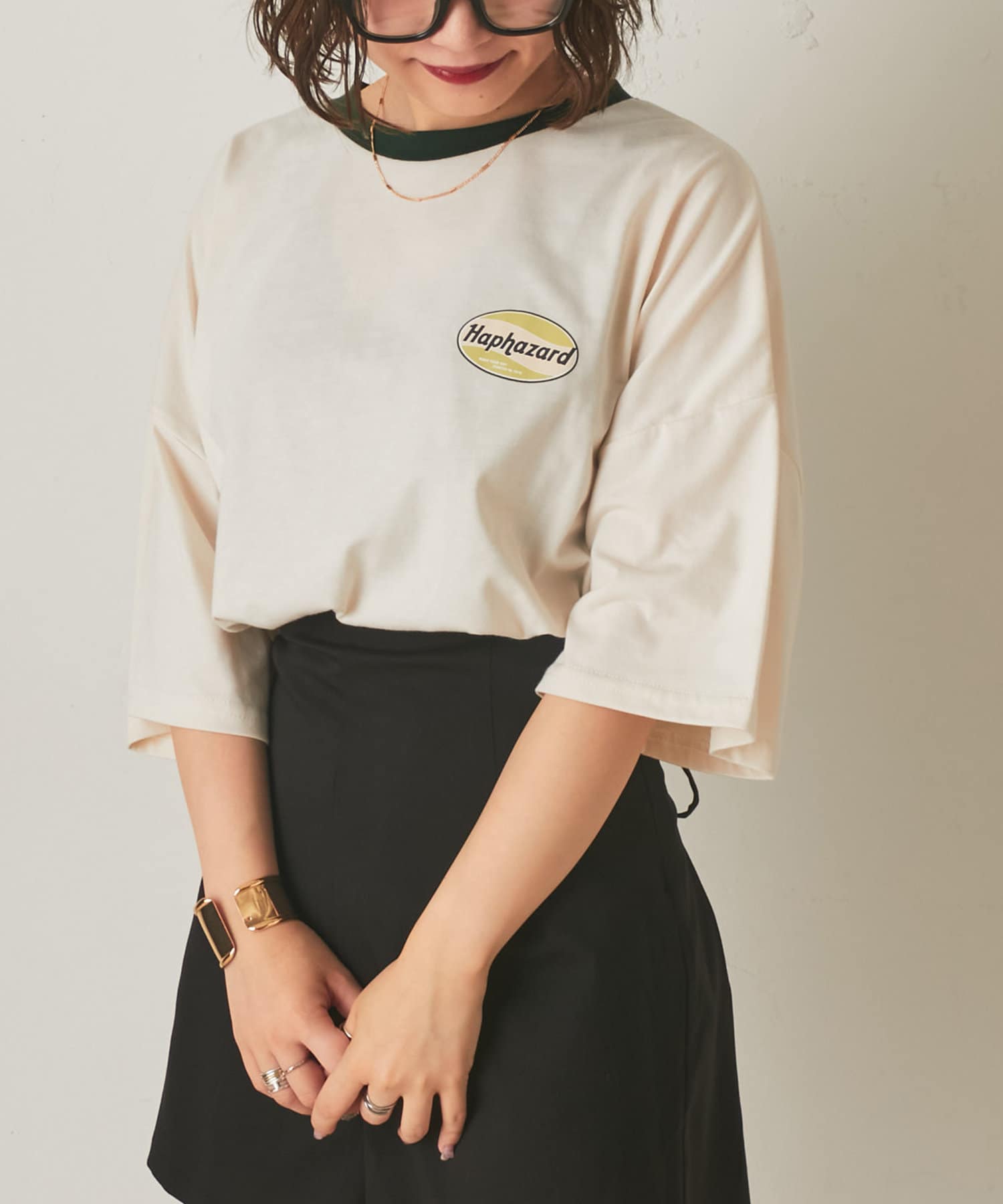 【リバイバルアイテム】楕円ロゴプリントリンガーTシャツ