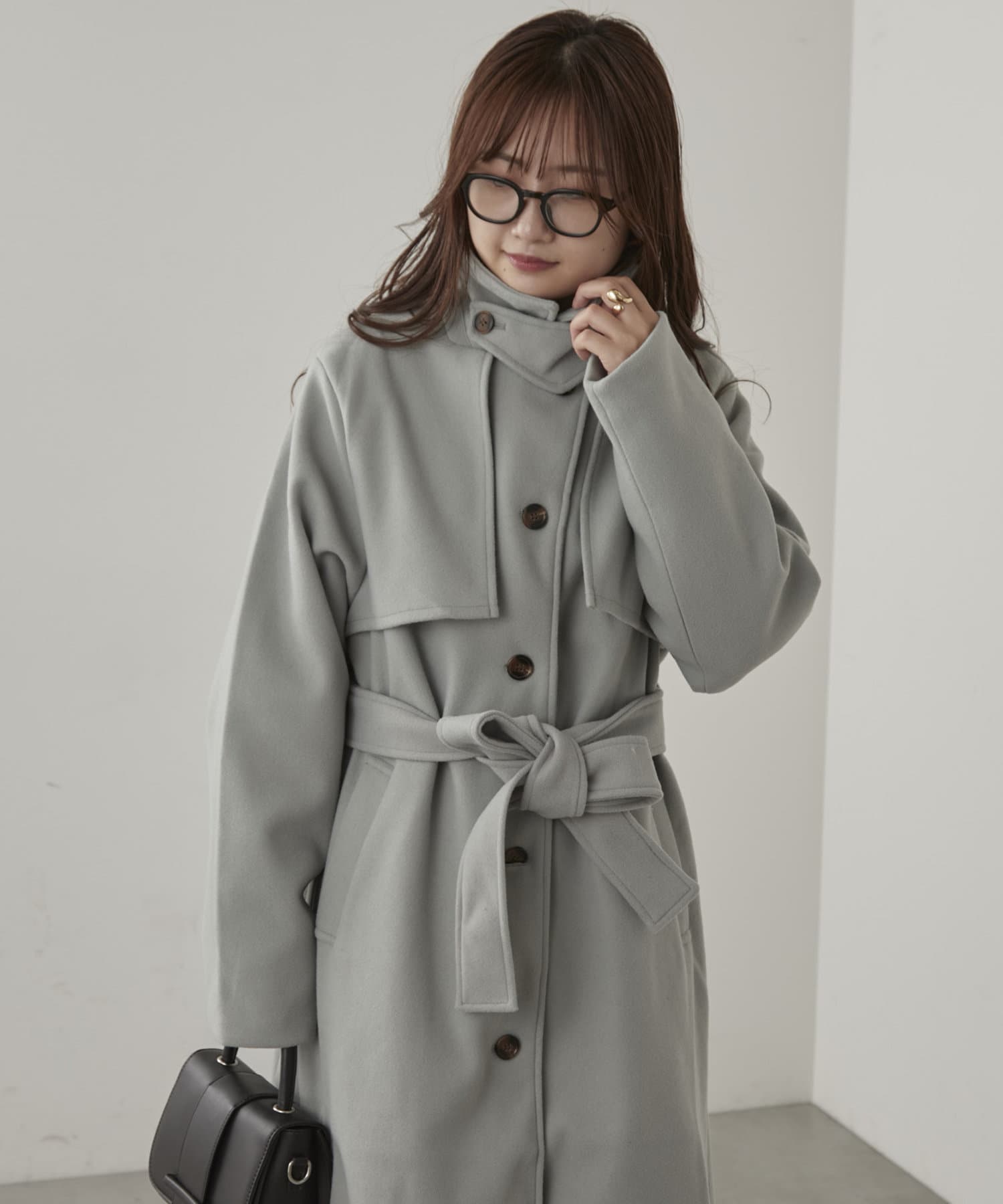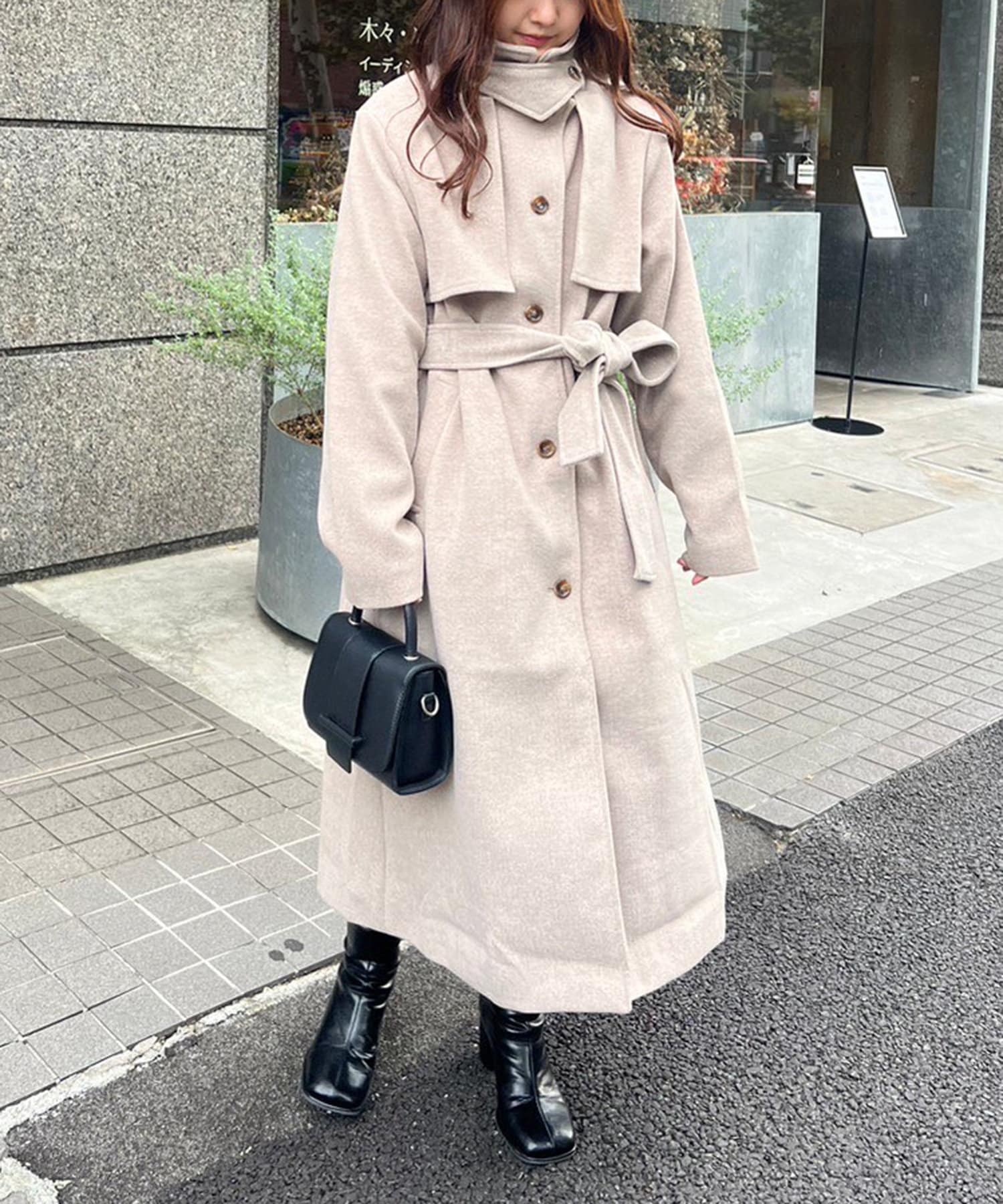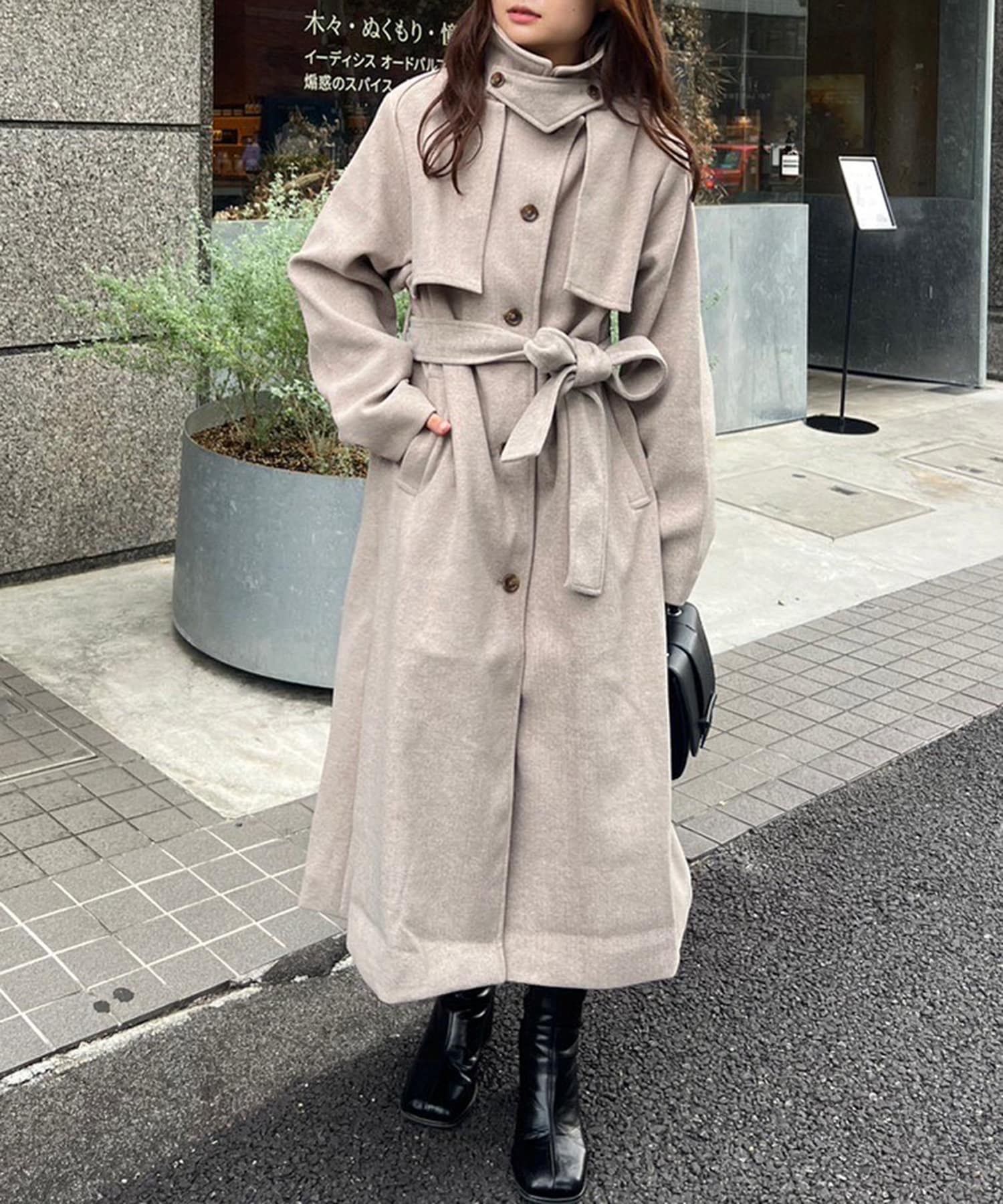 【大人見え】《フェイクウールトレンチコート》