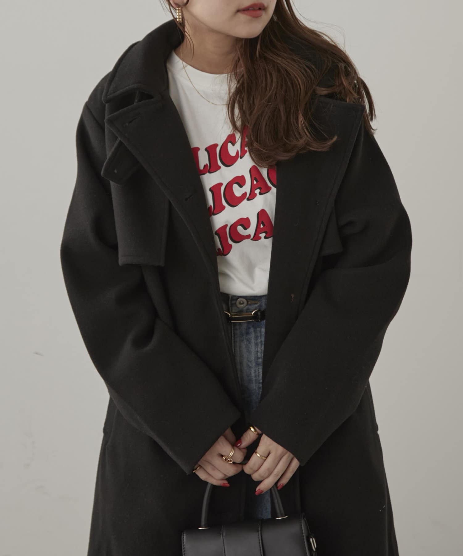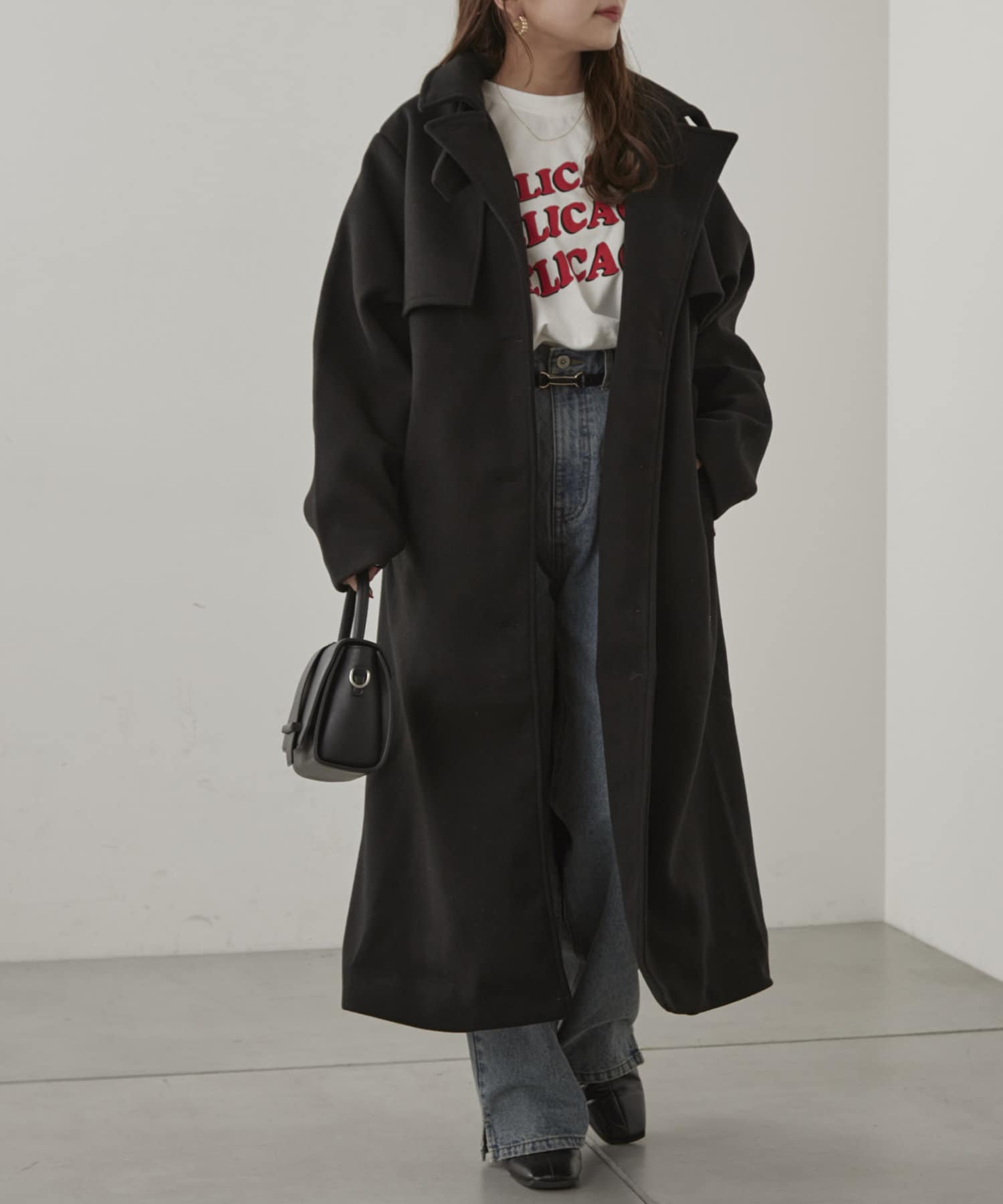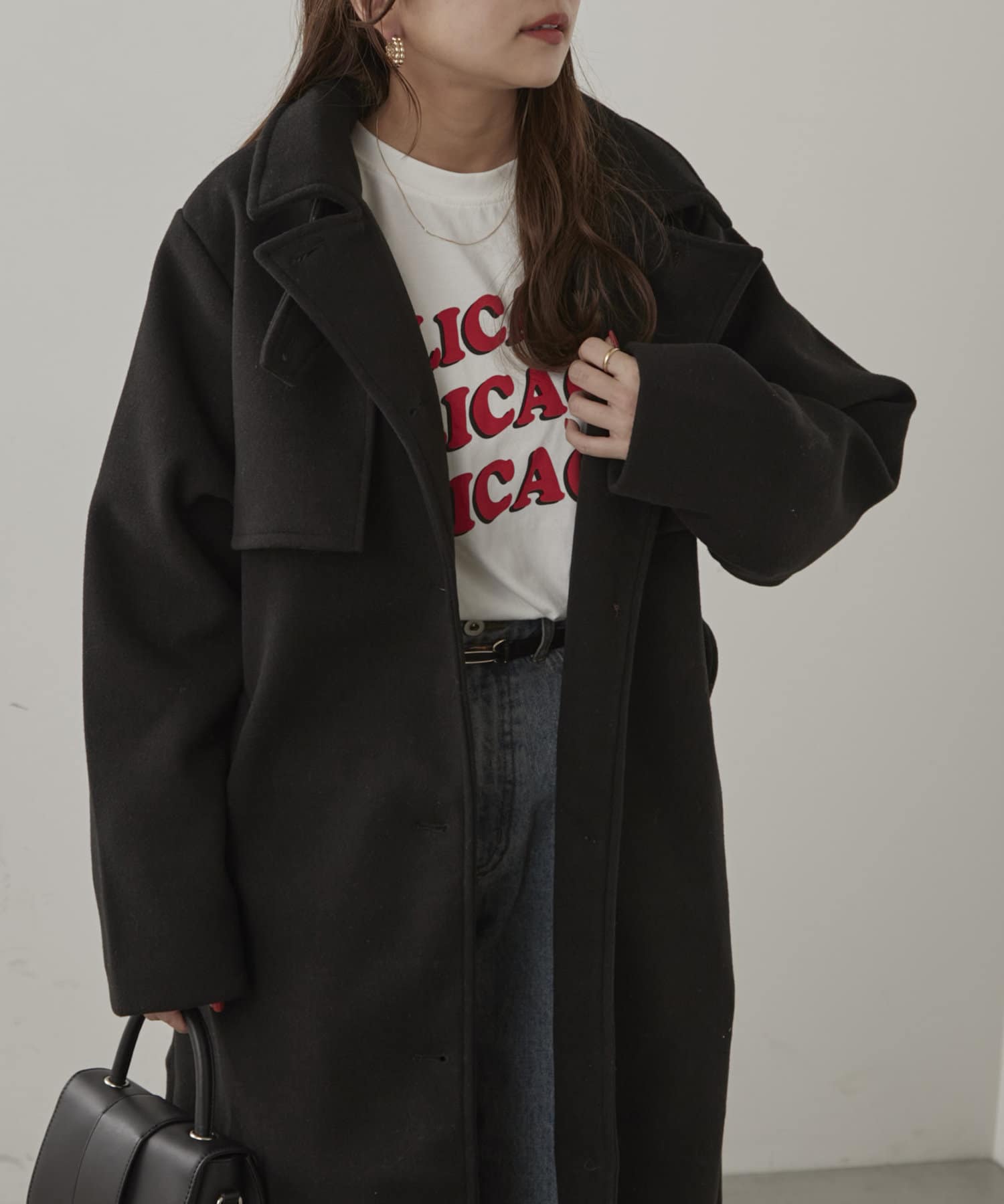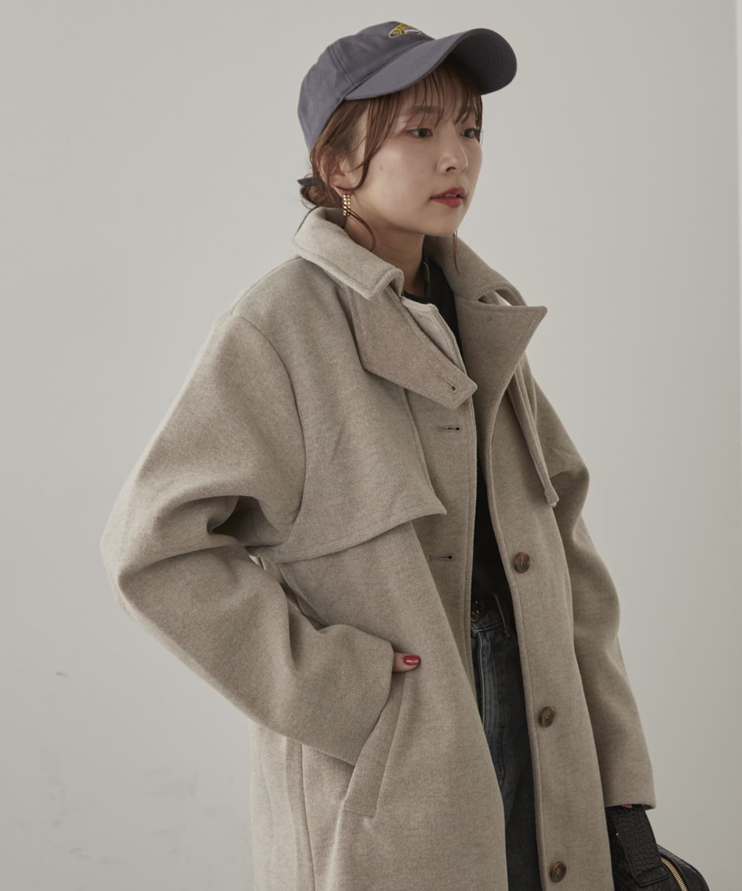 【大人見え】《フェイクウールトレンチコート》
