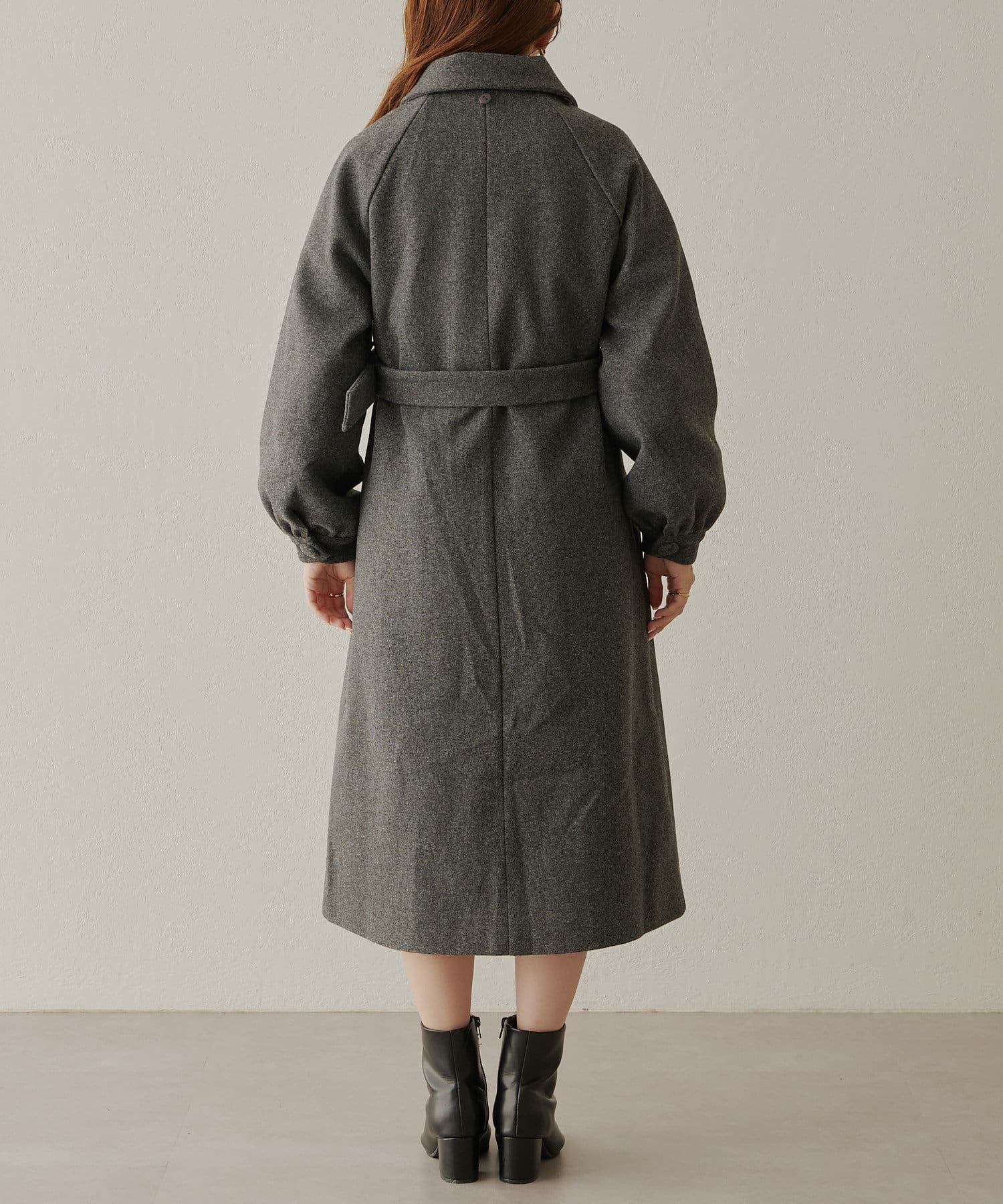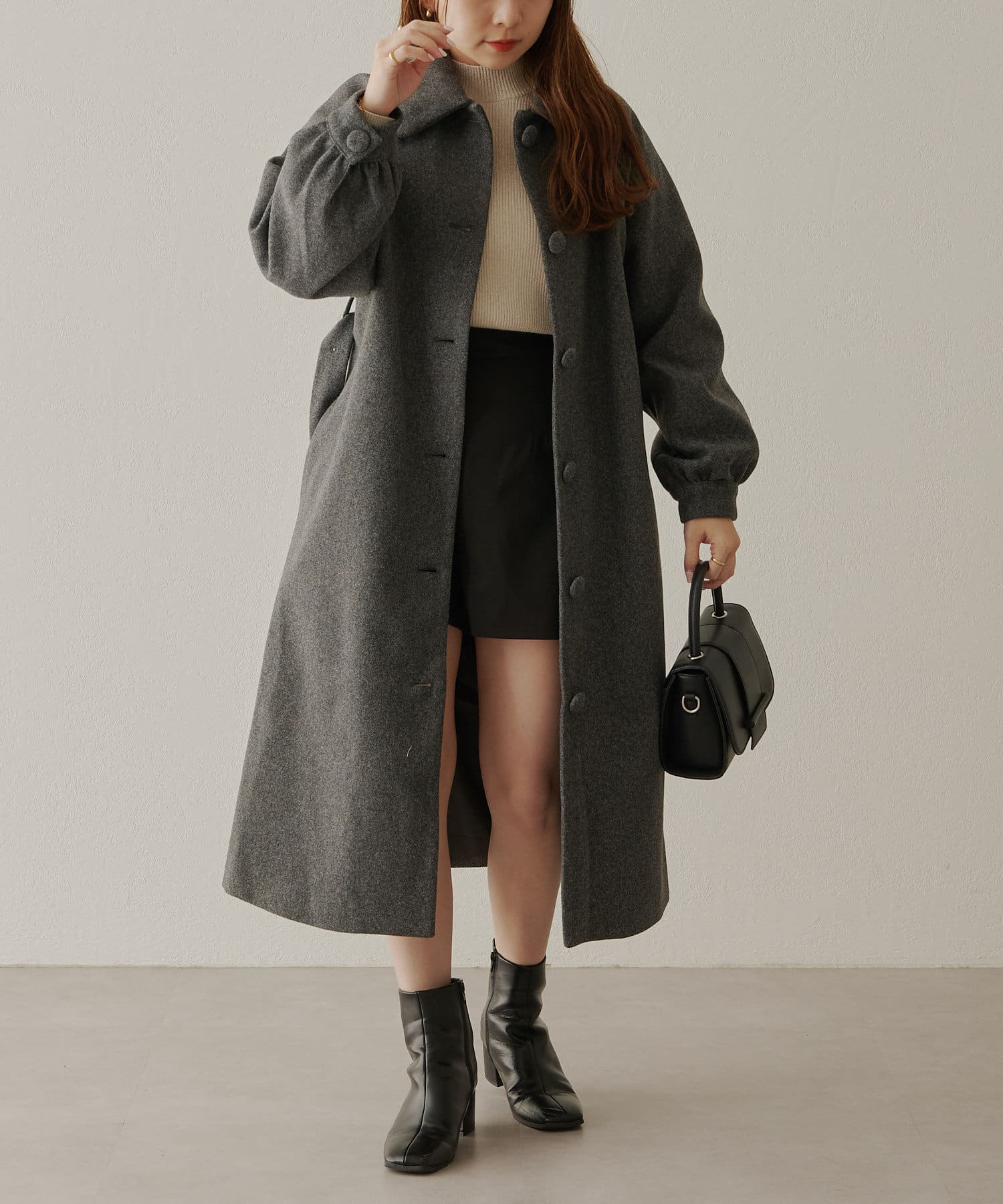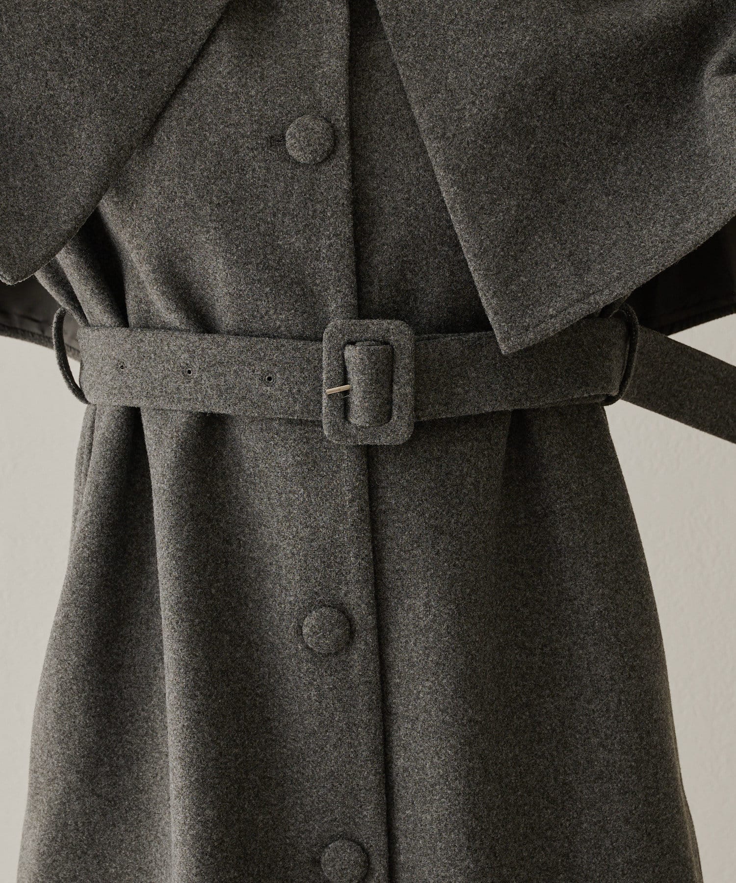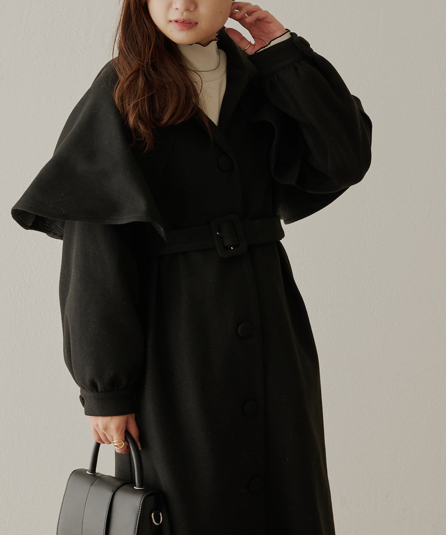 ・高級感のあるフェイクウールにトレンドのケープのデザインでバックスタイルも大人綺麗な印象に見せてくれます。