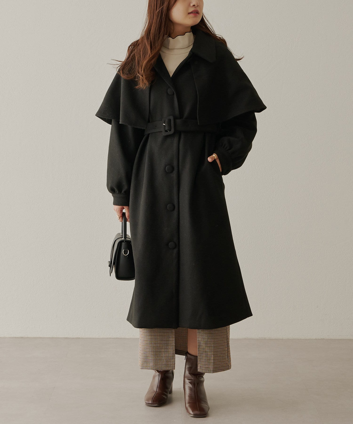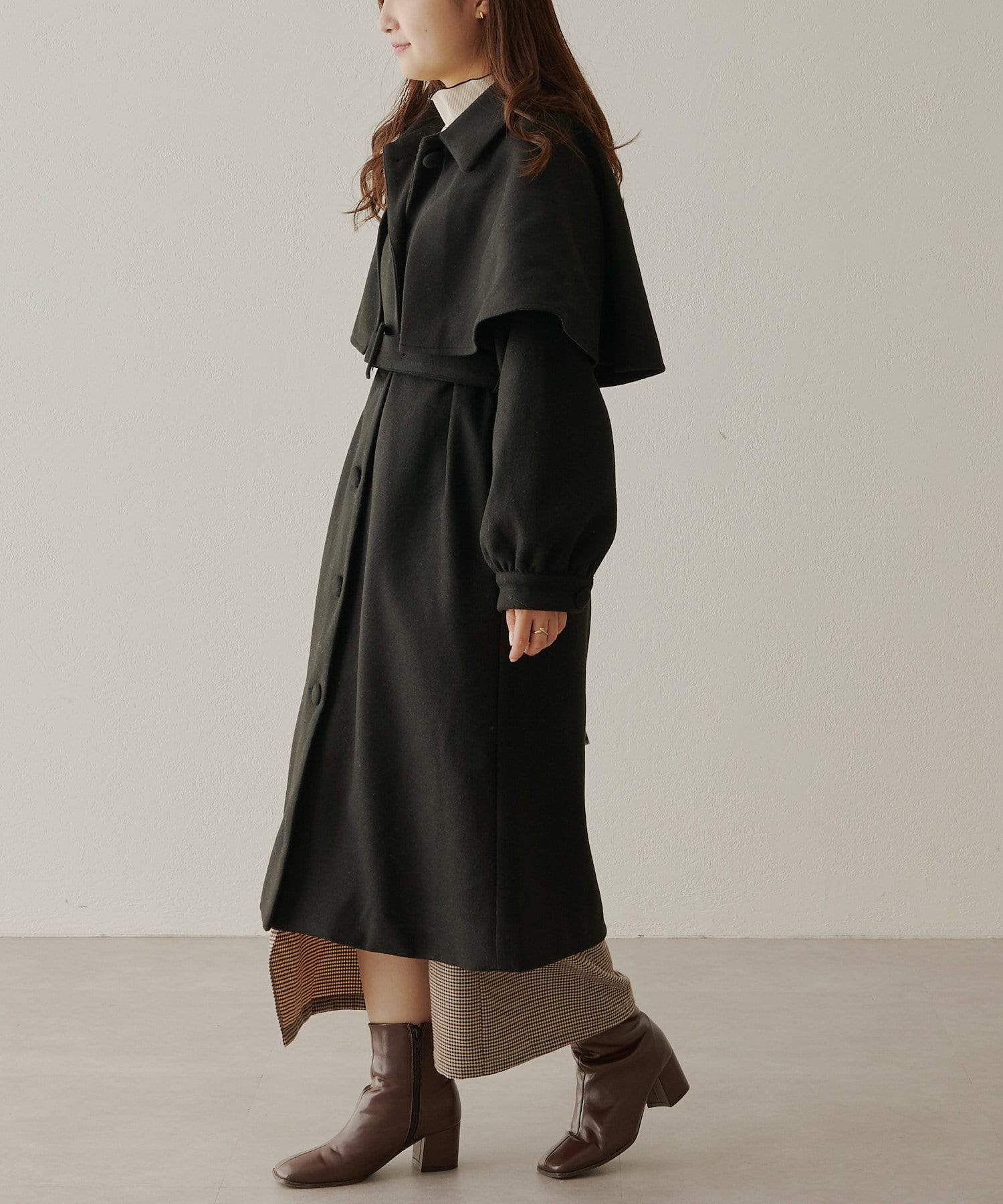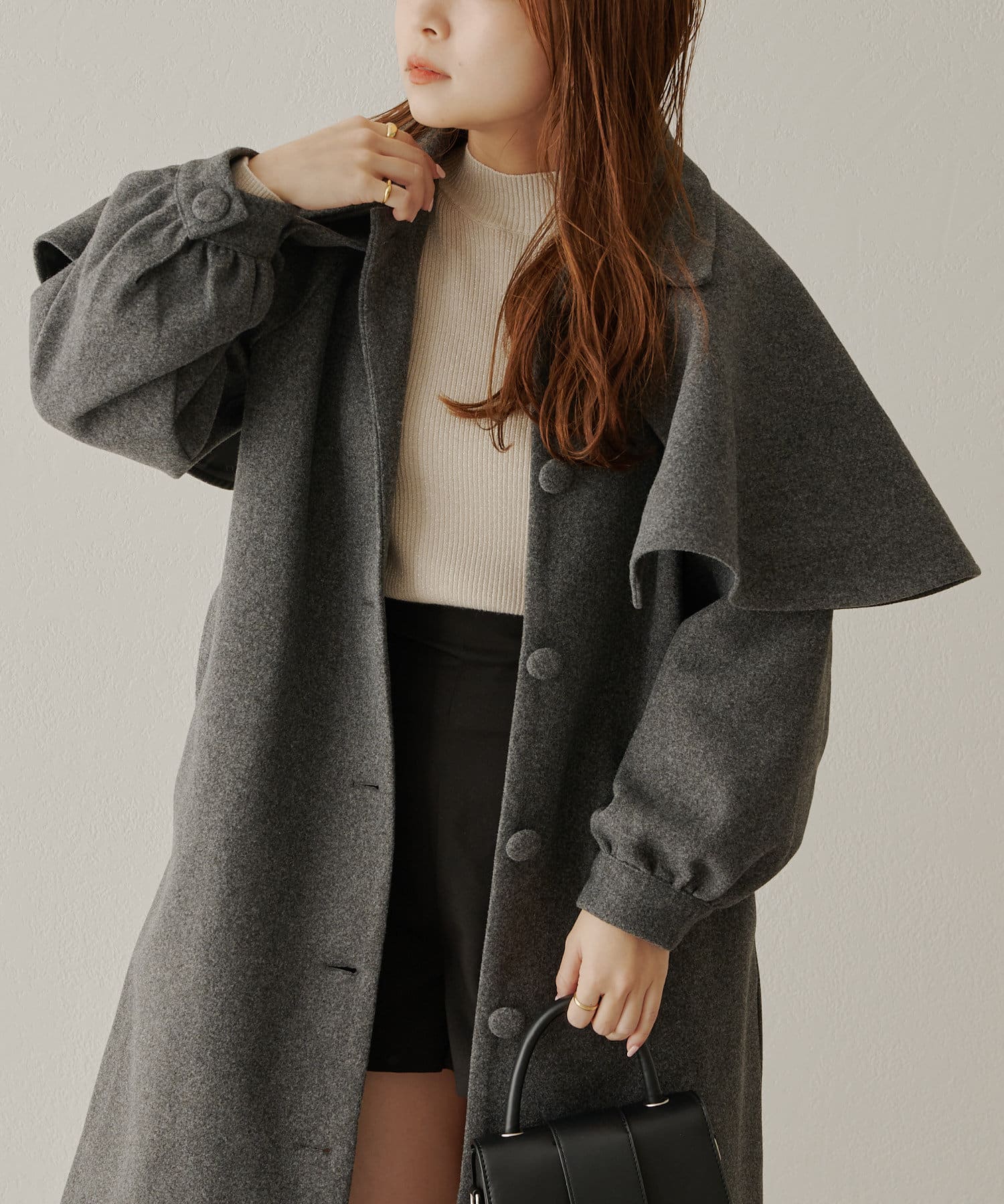 ・トレンド感のあるケープデザインで、これから冬まで万能に使えるのがポイント♪