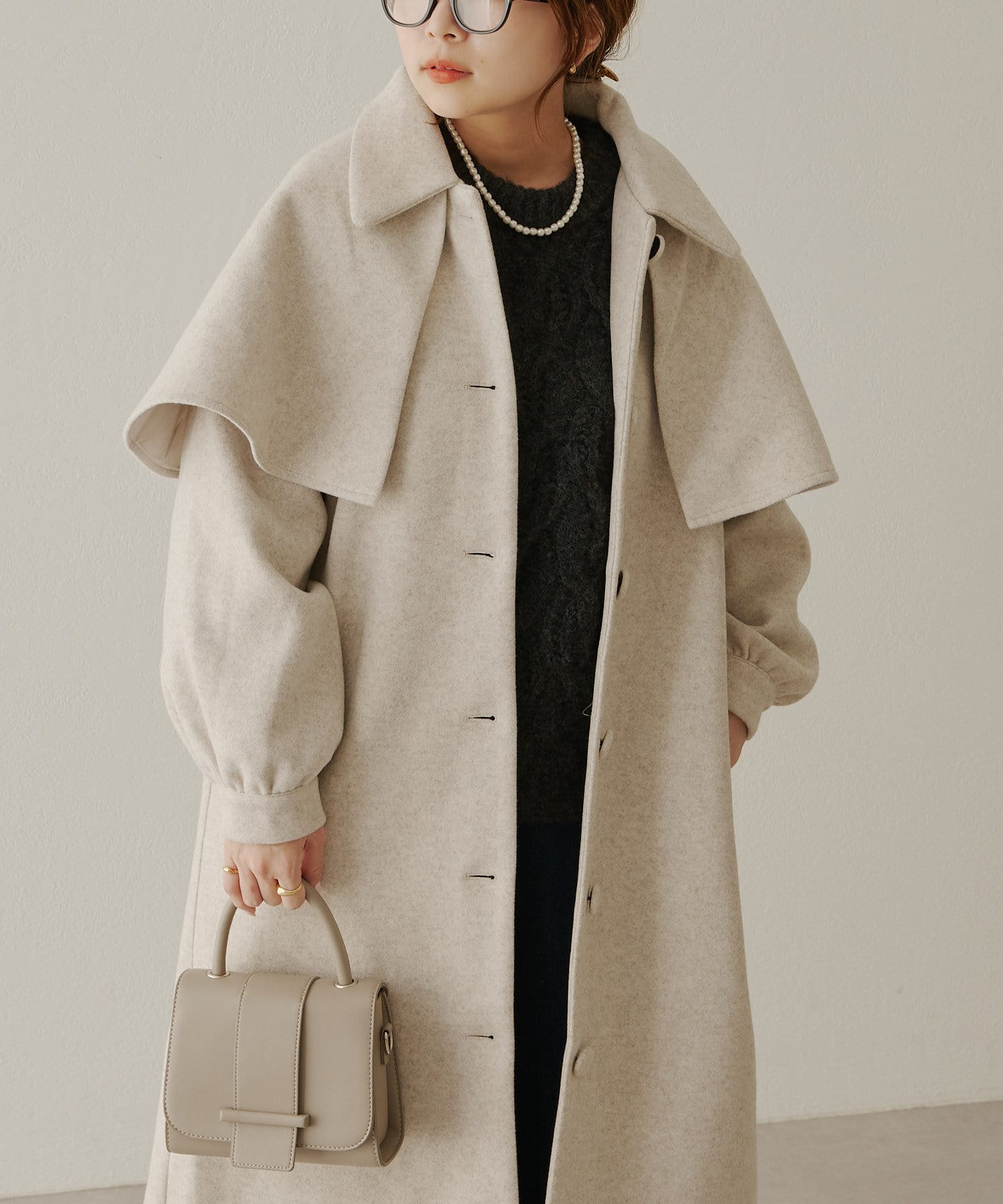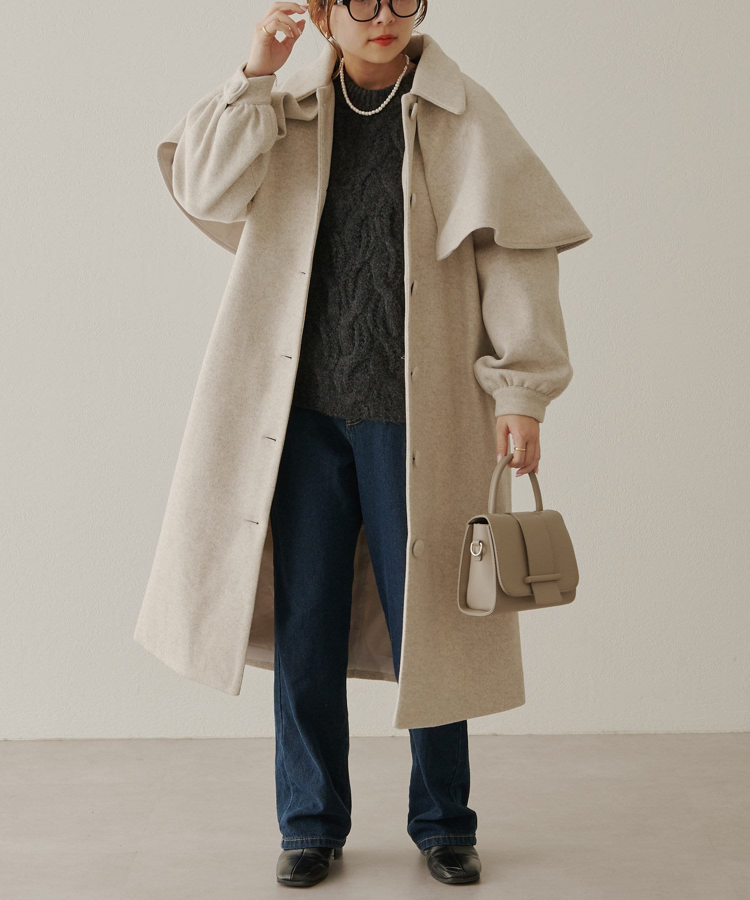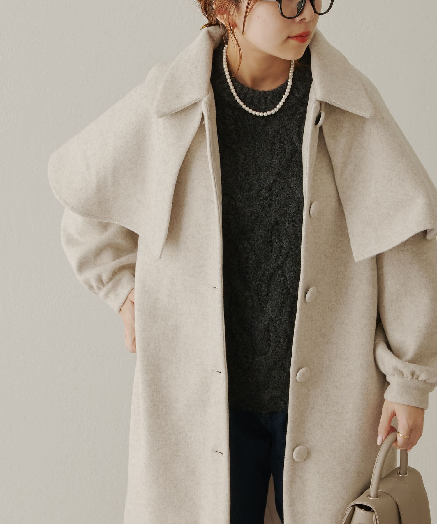・トレンド感のあるケープデザインで、これから冬まで万能に使えるのがポイント♪