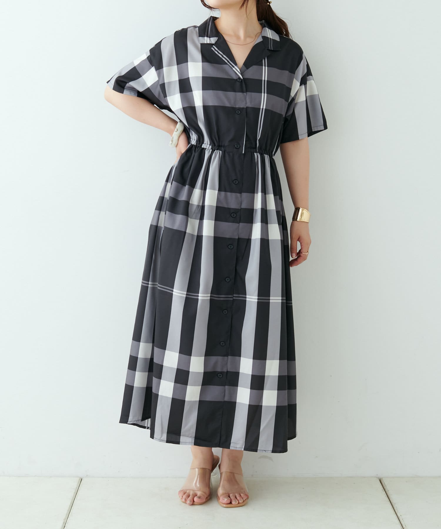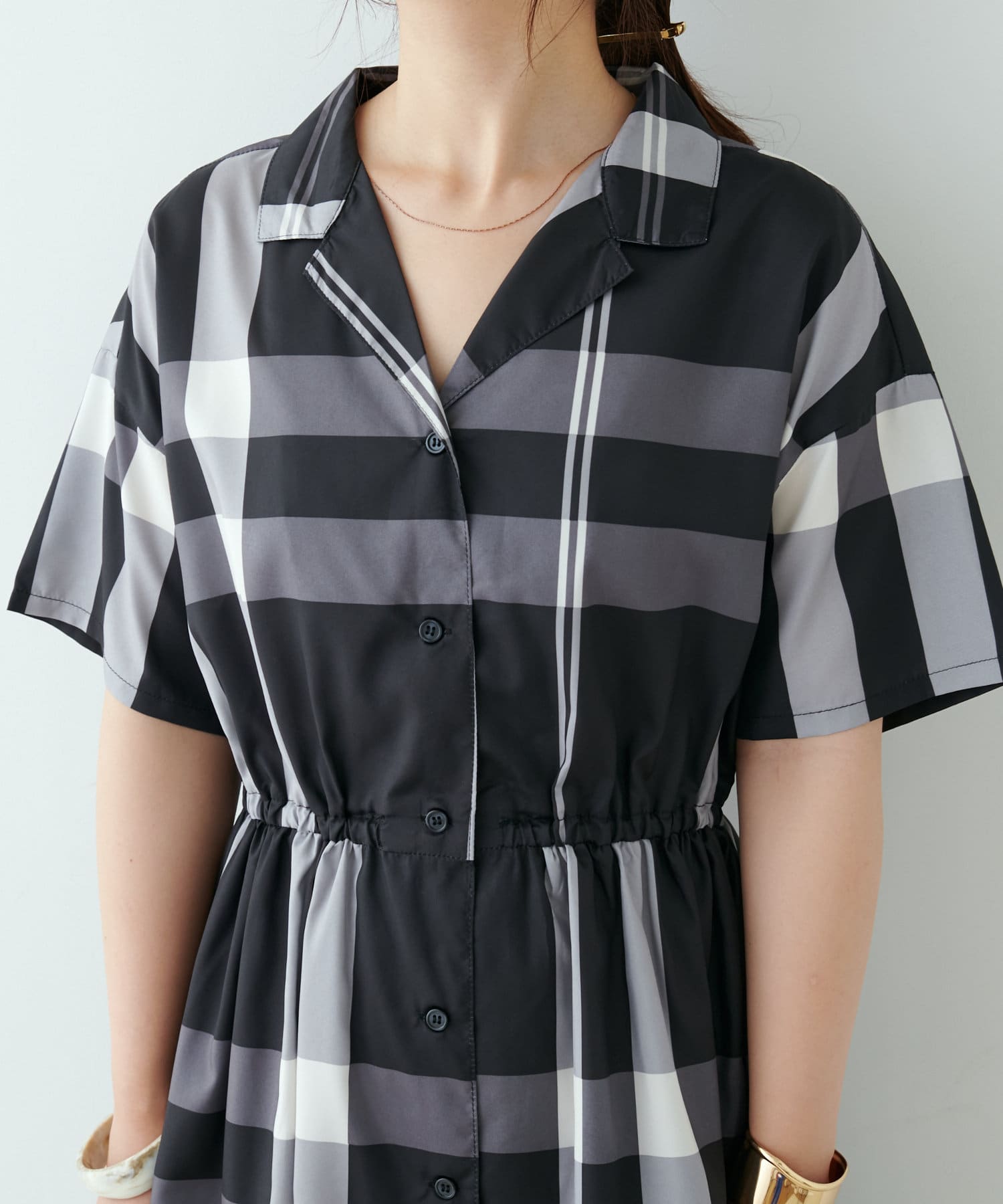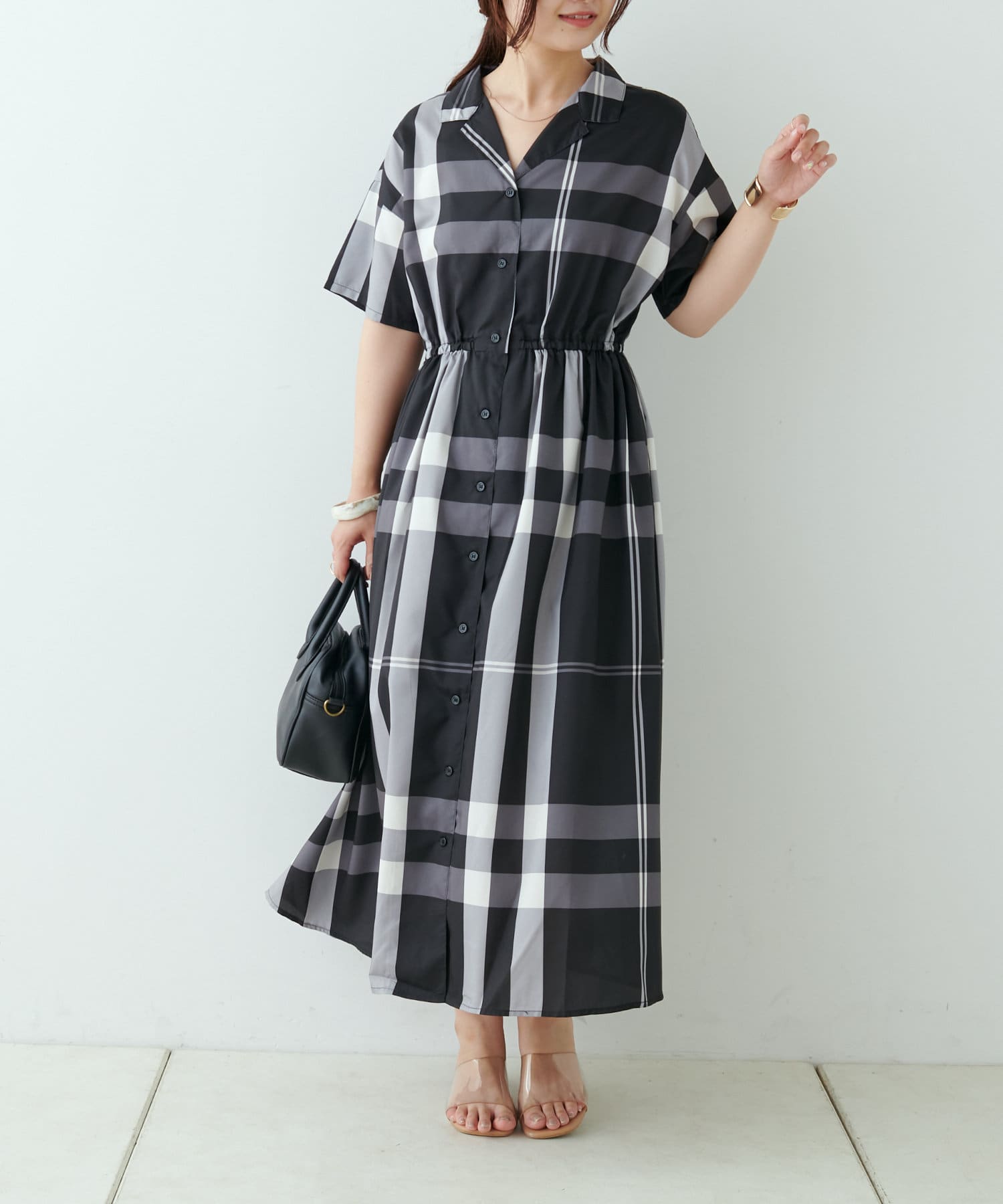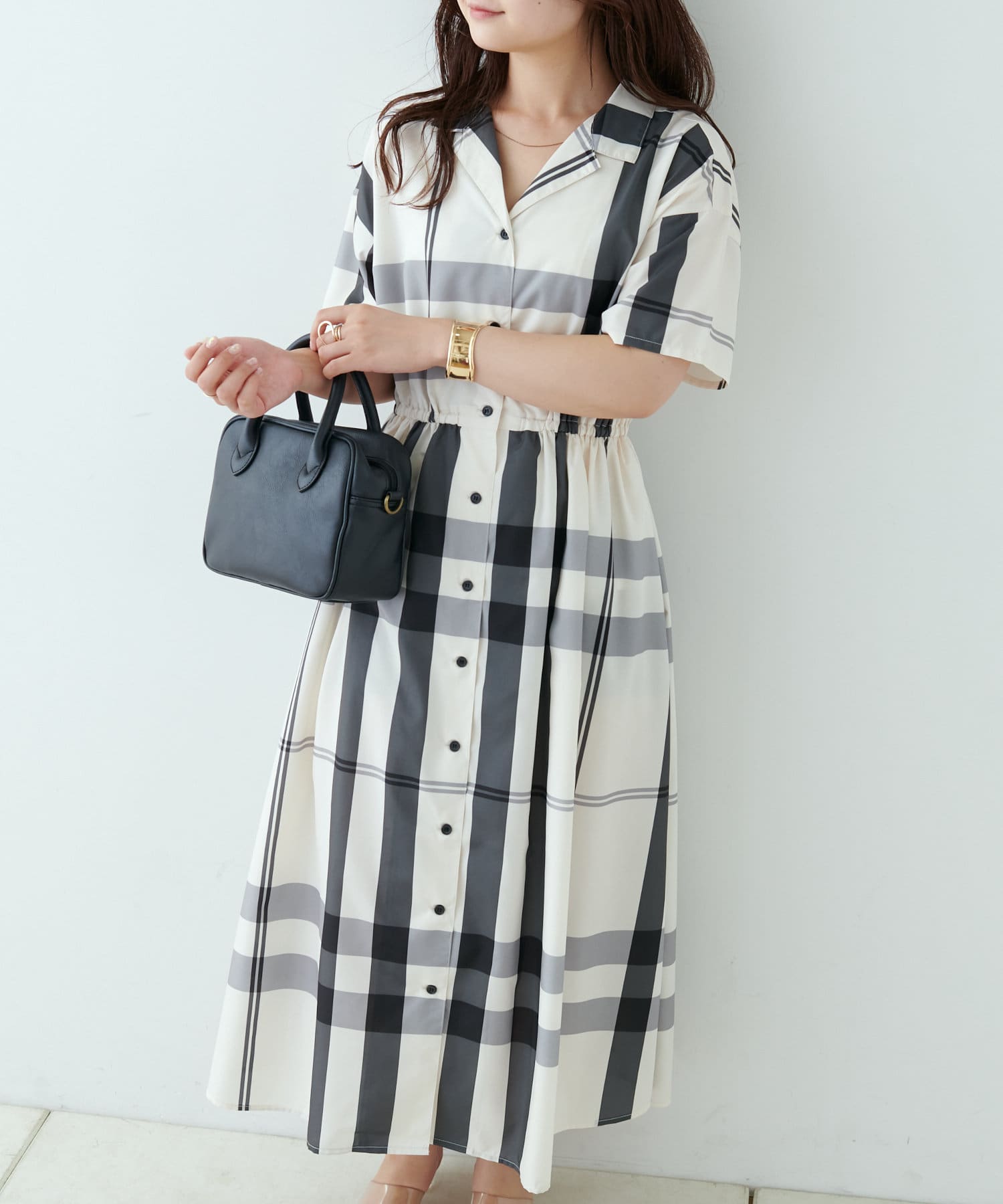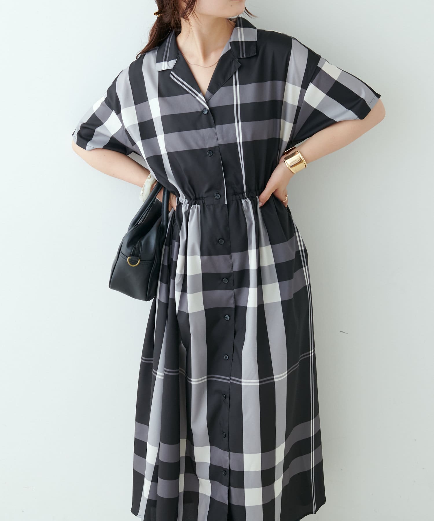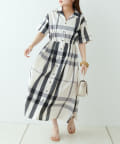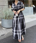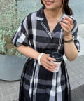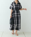 【同柄のスカートも大人気】チェック開襟シャツワンピース