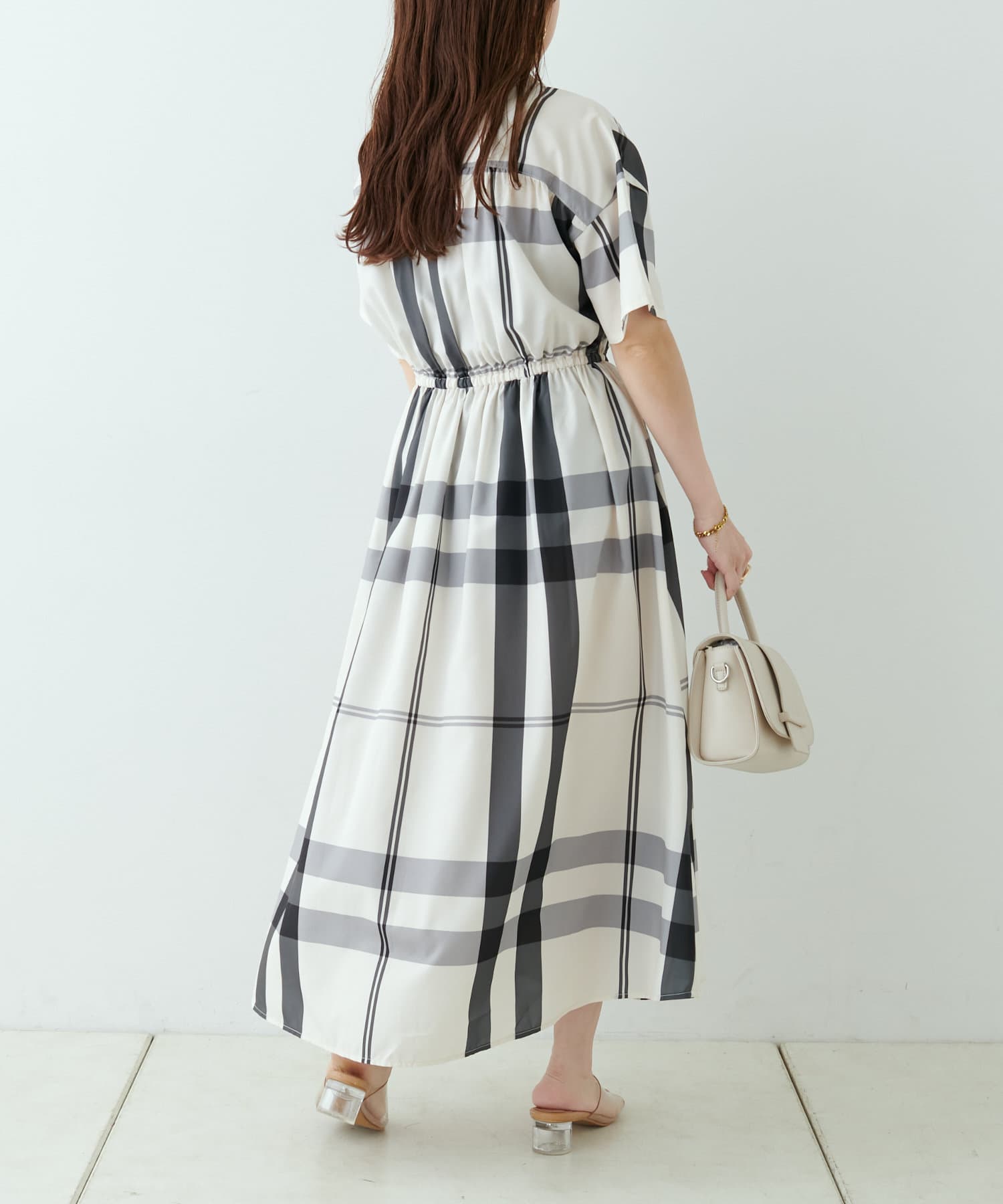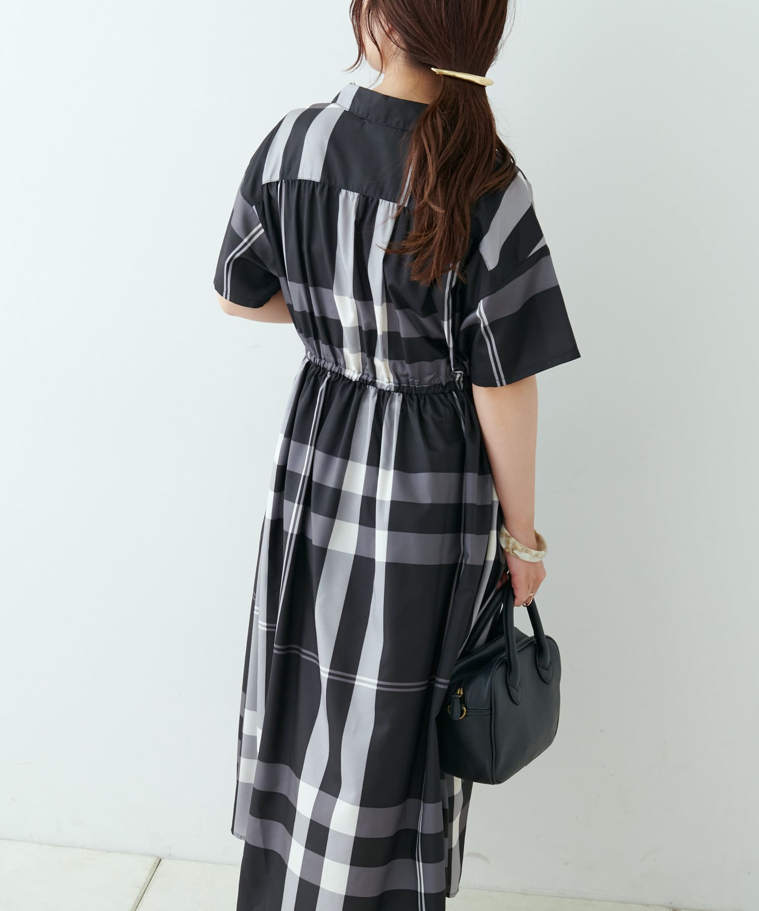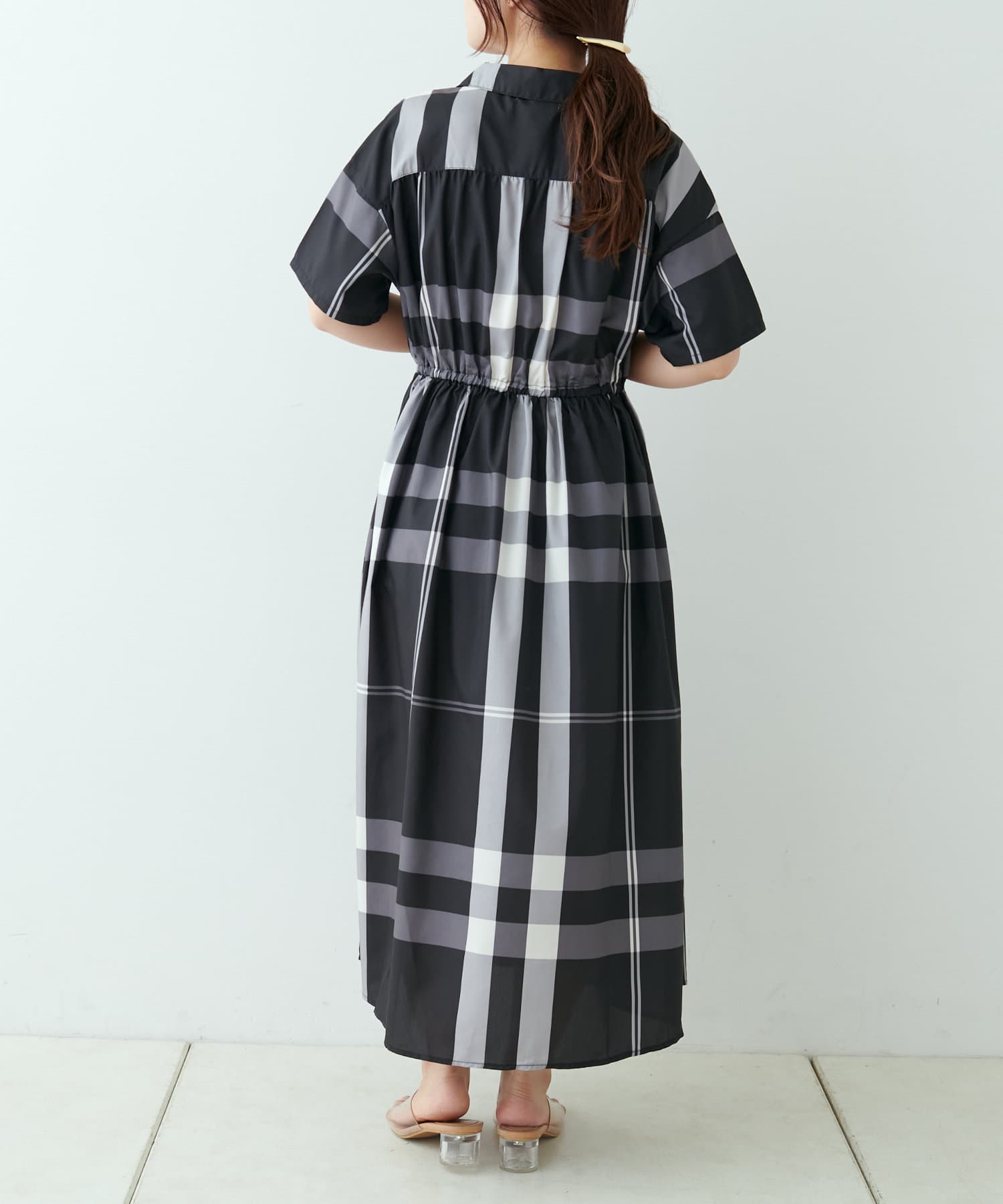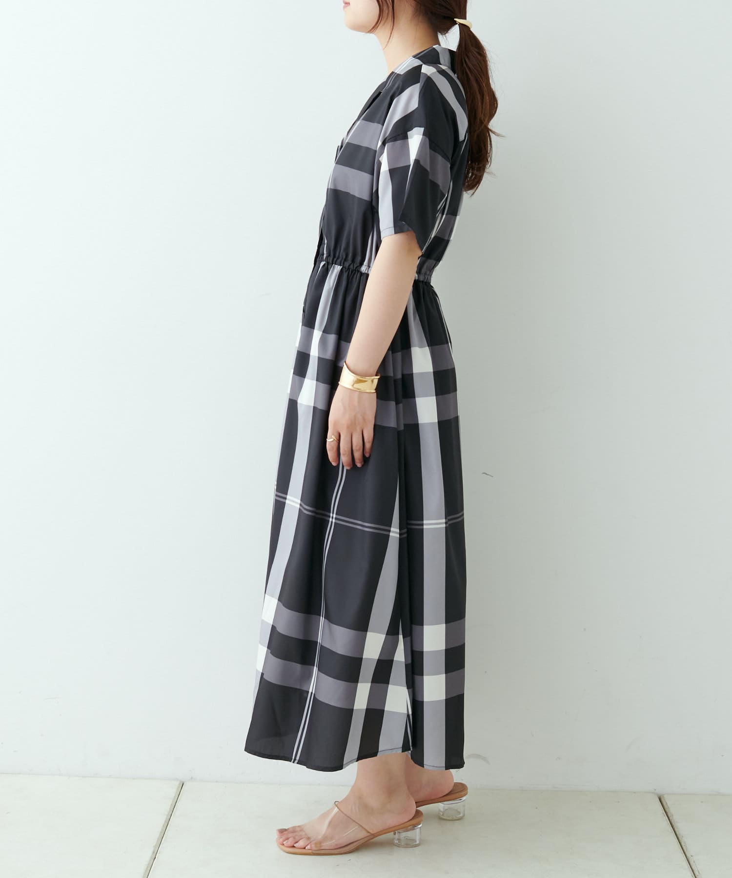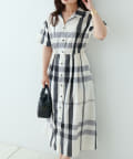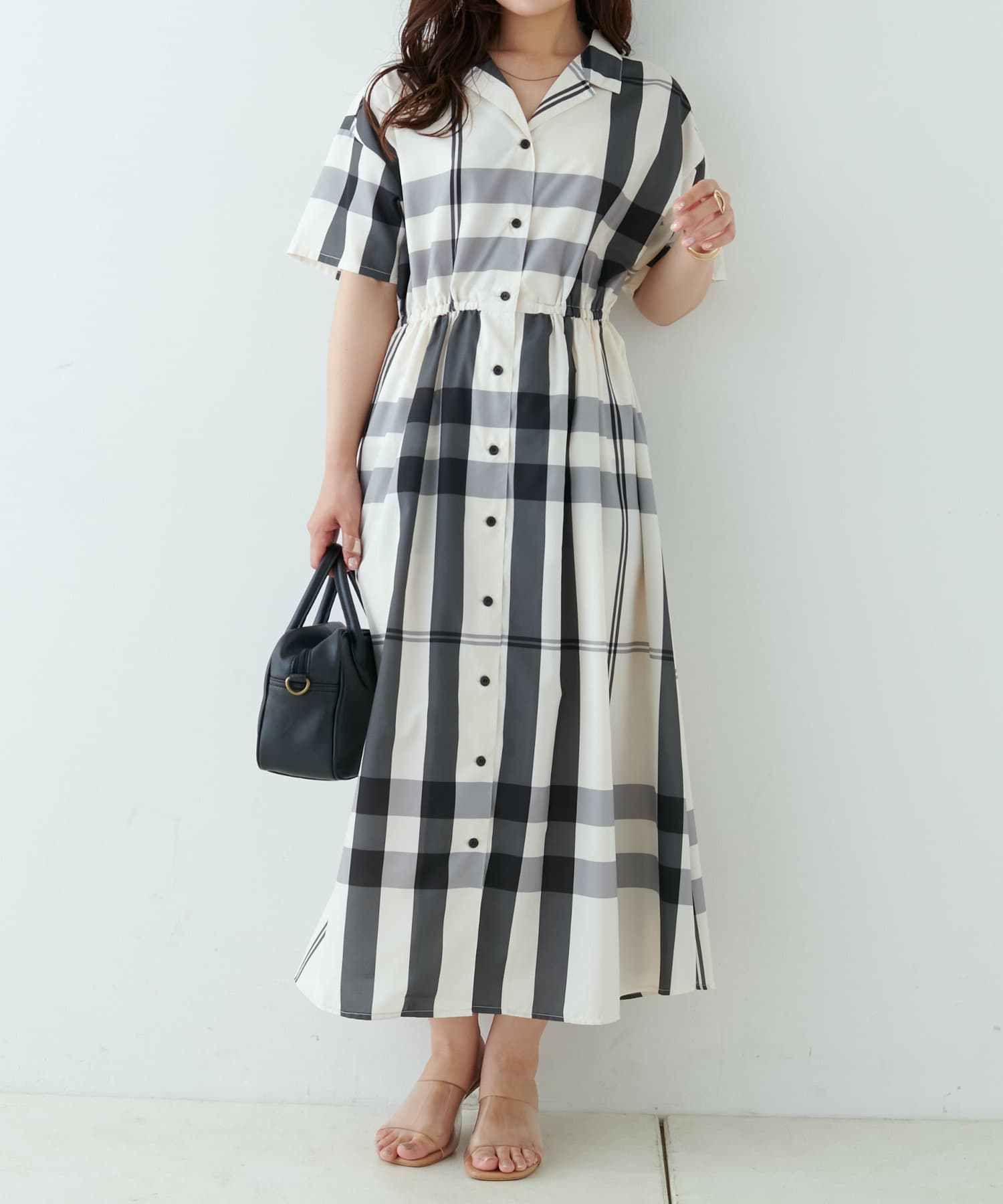 【同柄のスカートも大人気】チェック開襟シャツワンピース