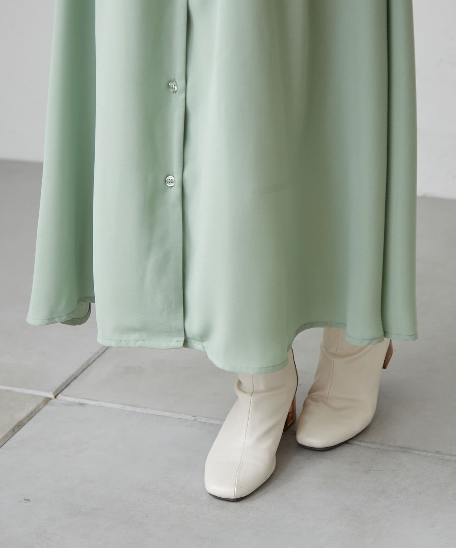 ・ウエストにギャザーをいれ、動いたときにふわっと揺れるシルエットに。