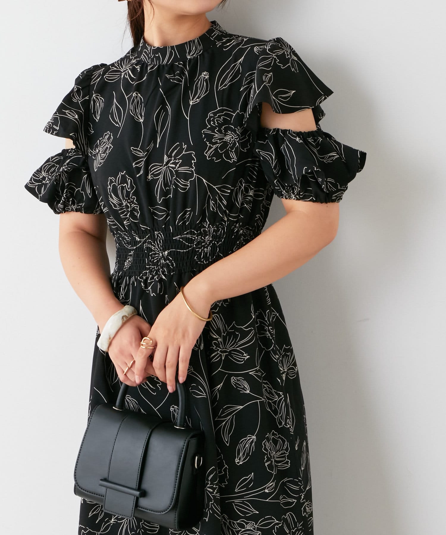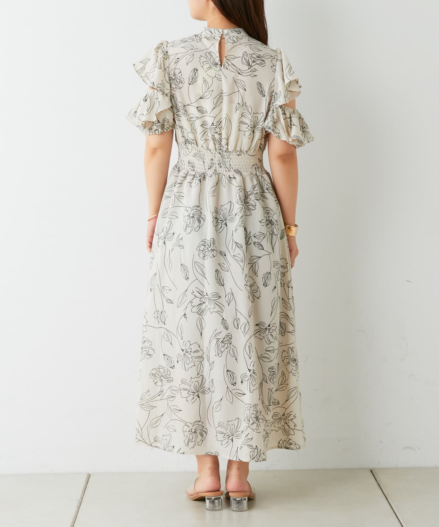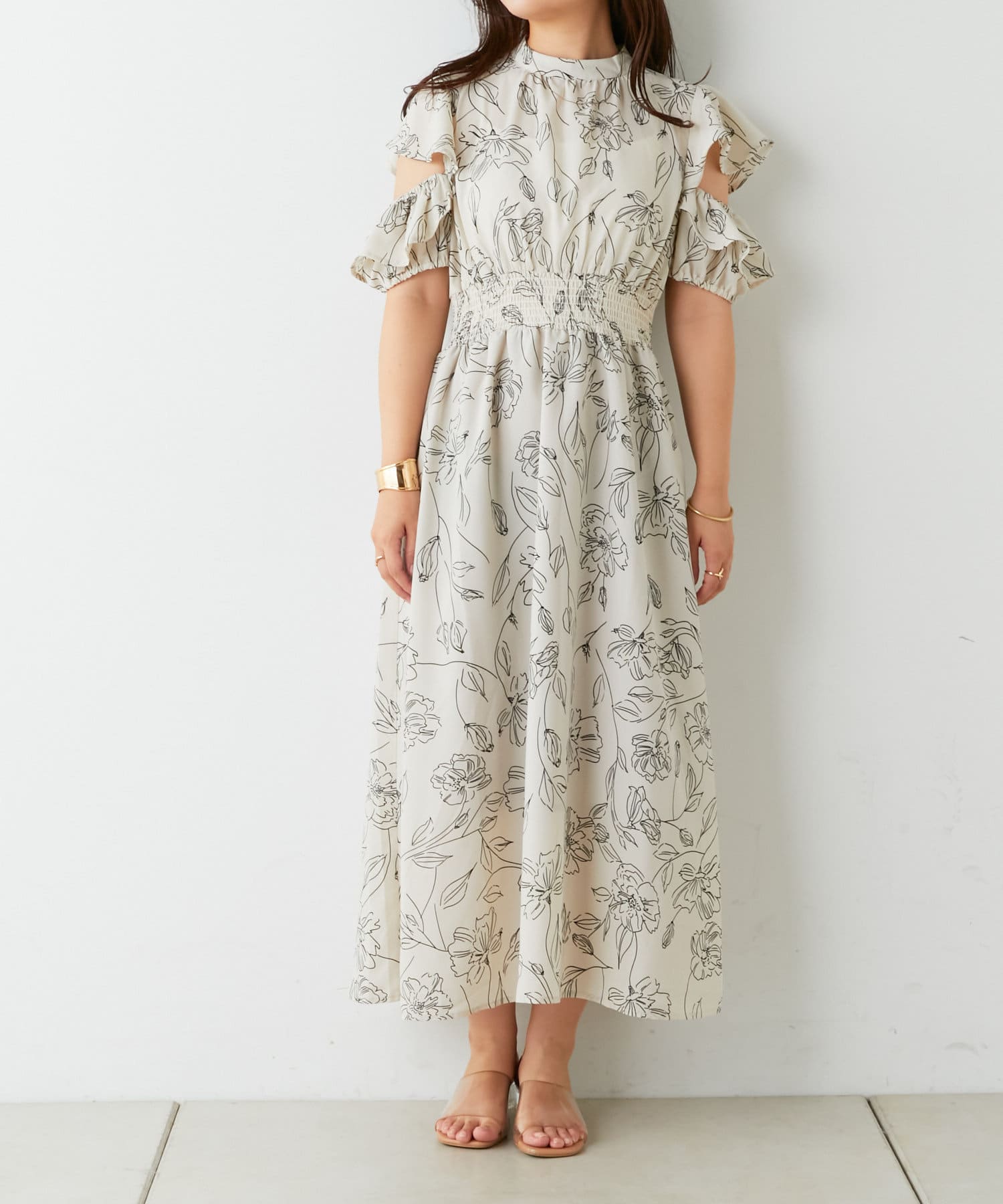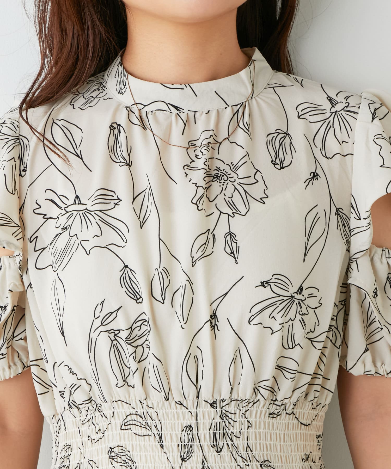 ・トレンドライクな肌見せが叶う花柄ワンピース。