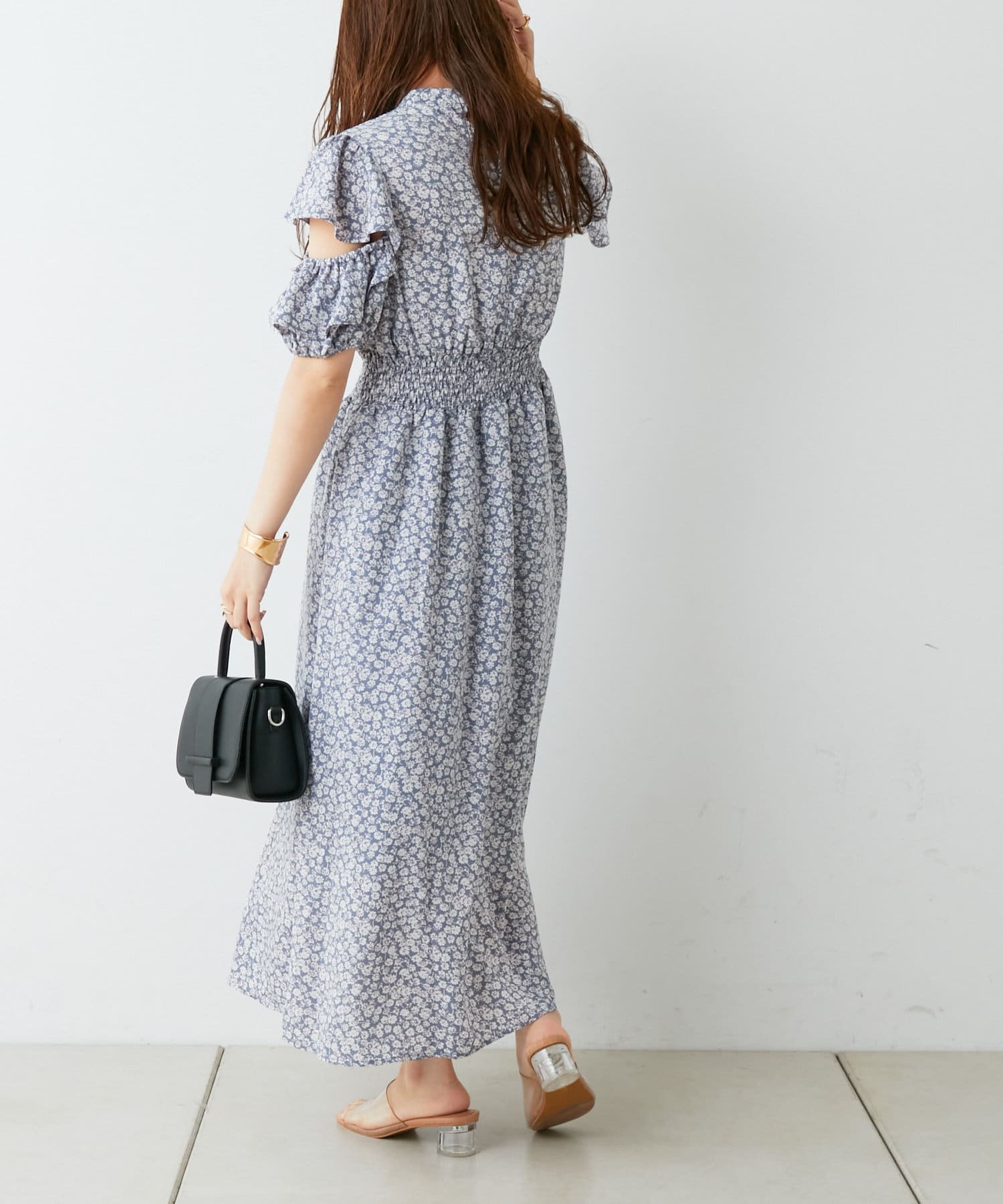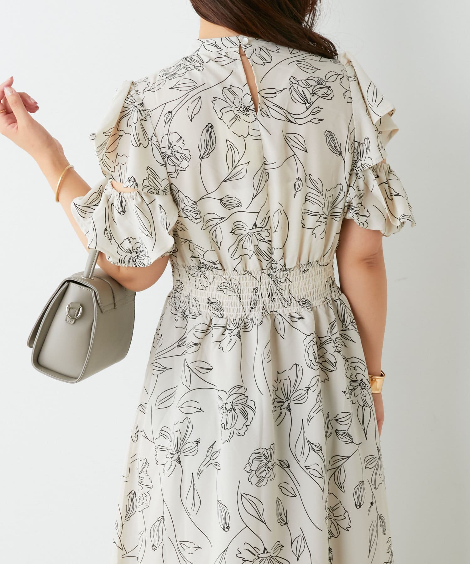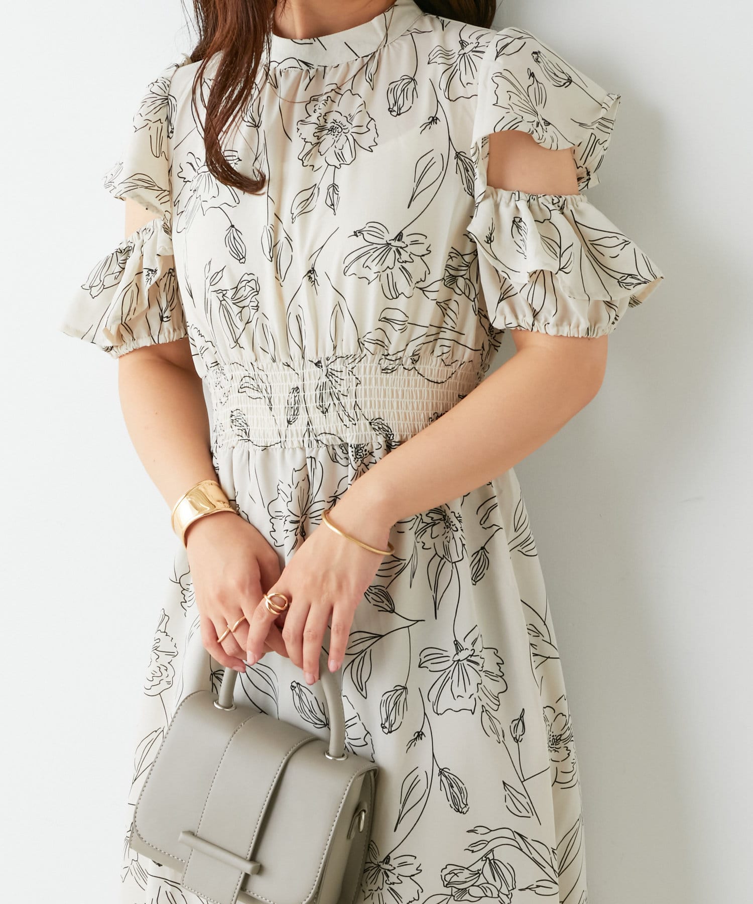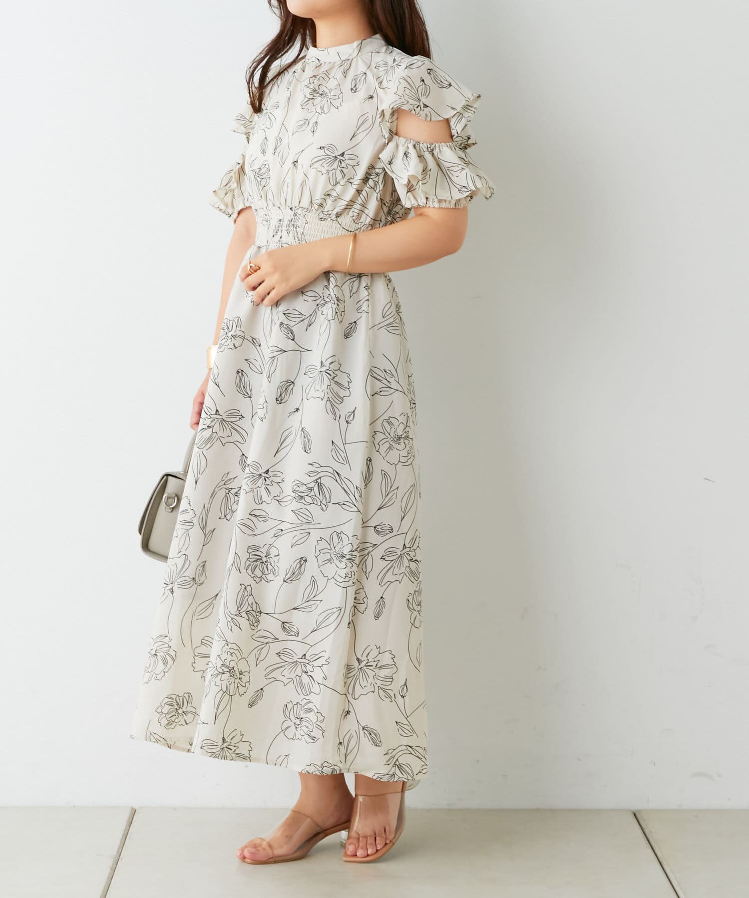 ・トレンドライクな肌見せが叶う花柄ワンピース。