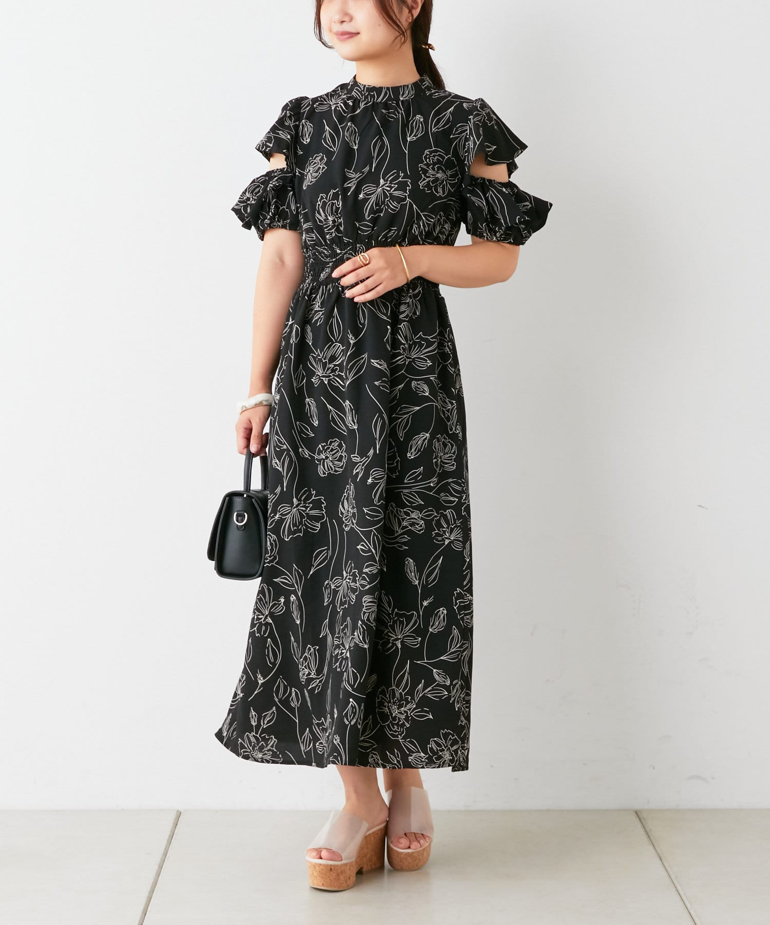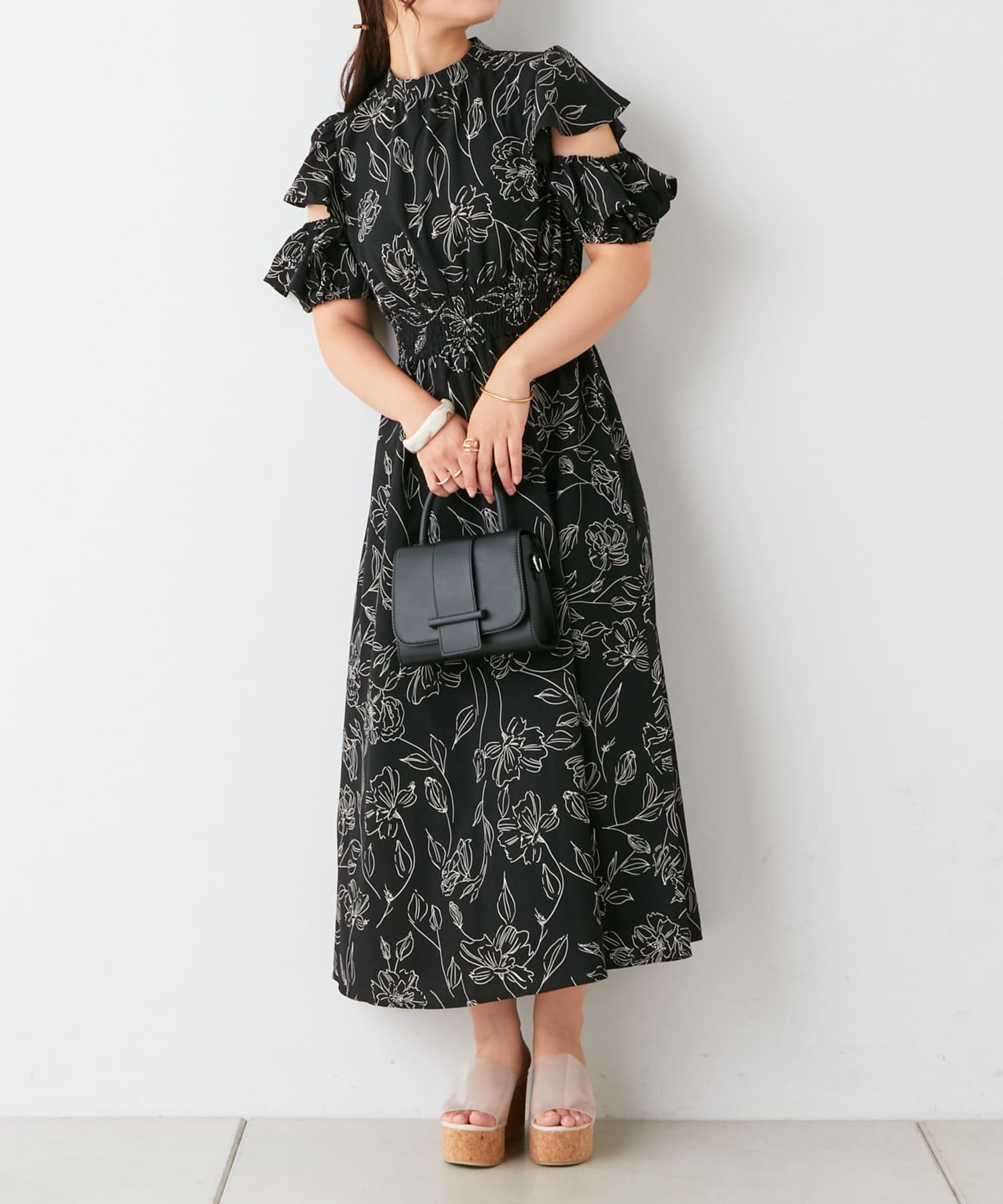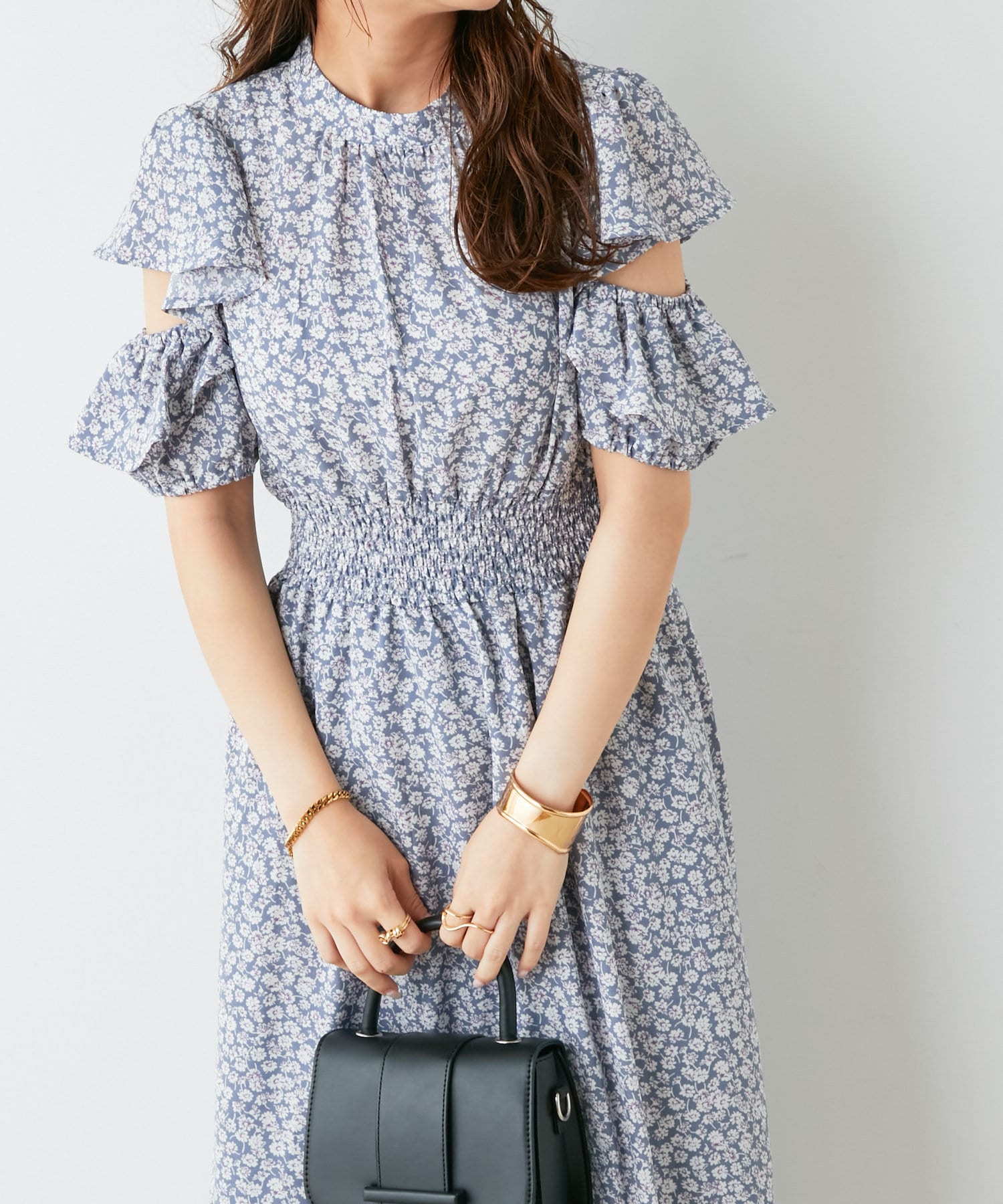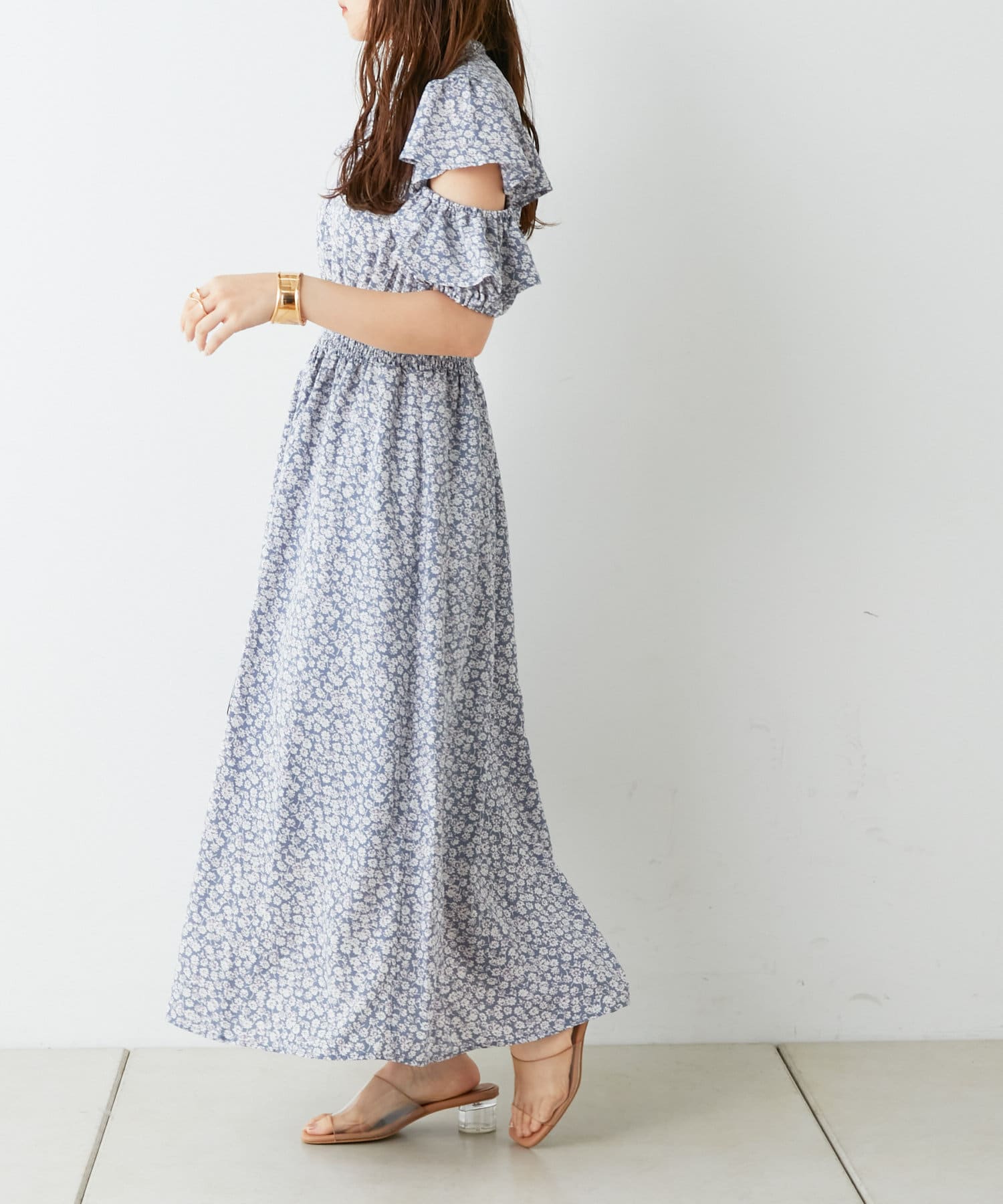 ・トレンドライクな肌見せが叶う花柄ワンピース。