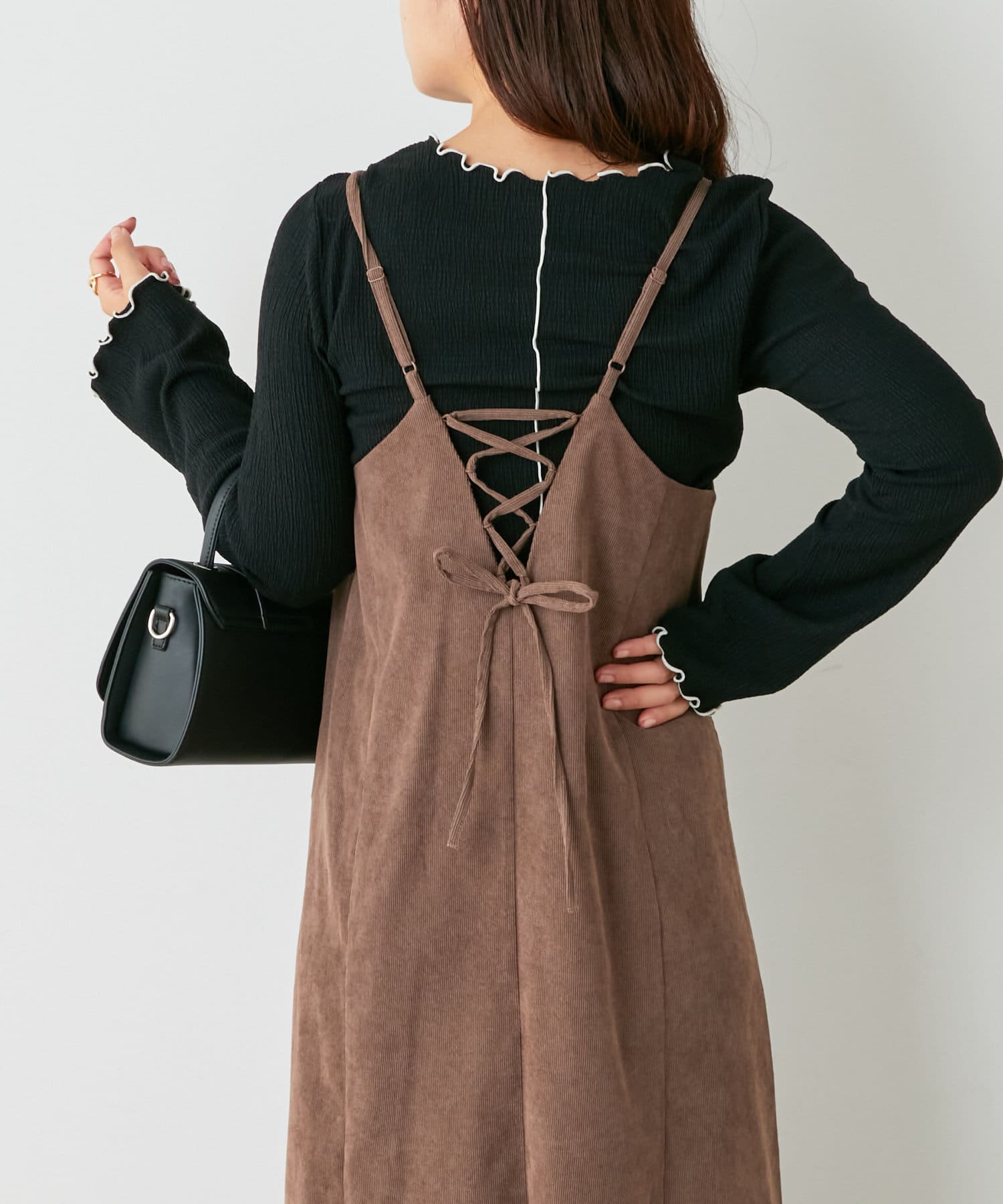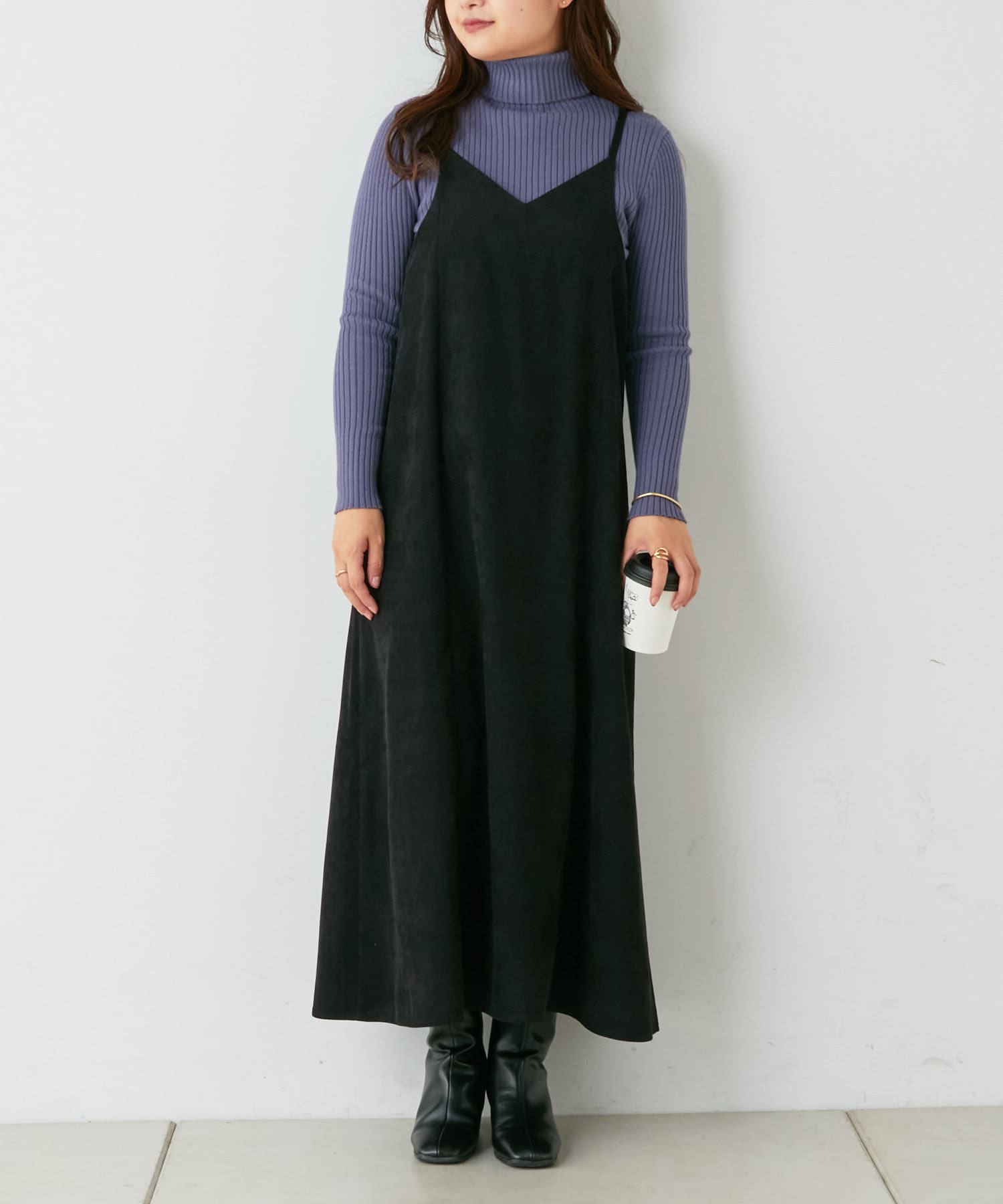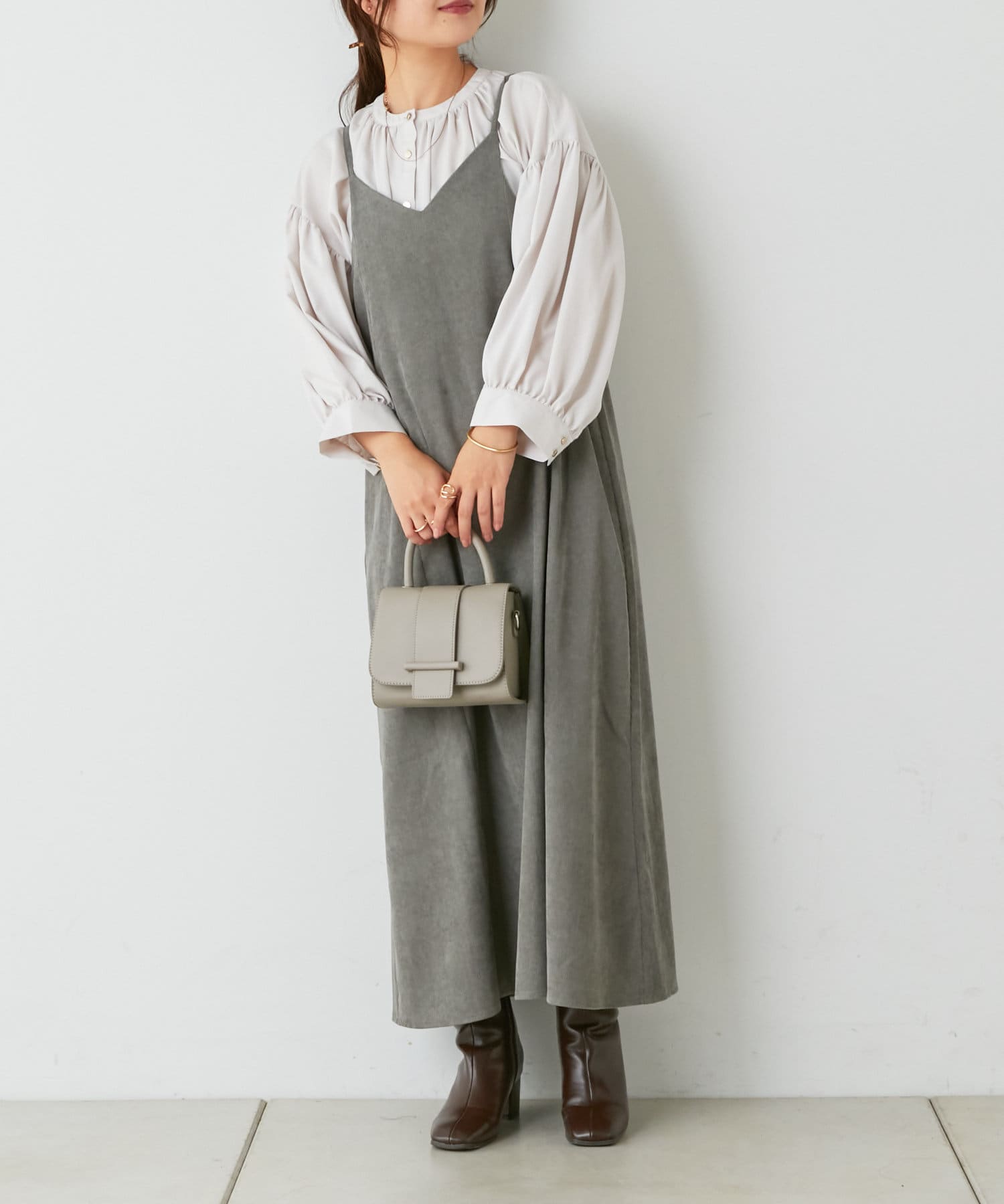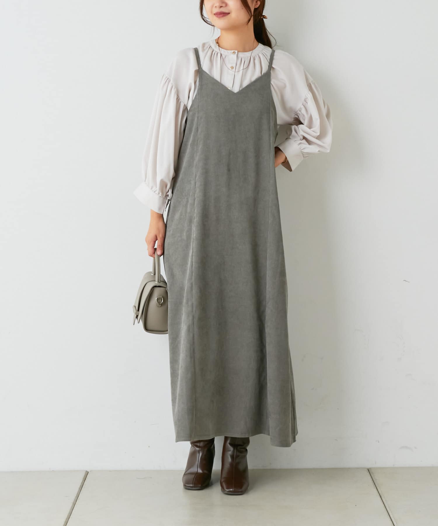 ・なめらかな肌触りと光沢を持つライスコール素材で仕立てたワンピース