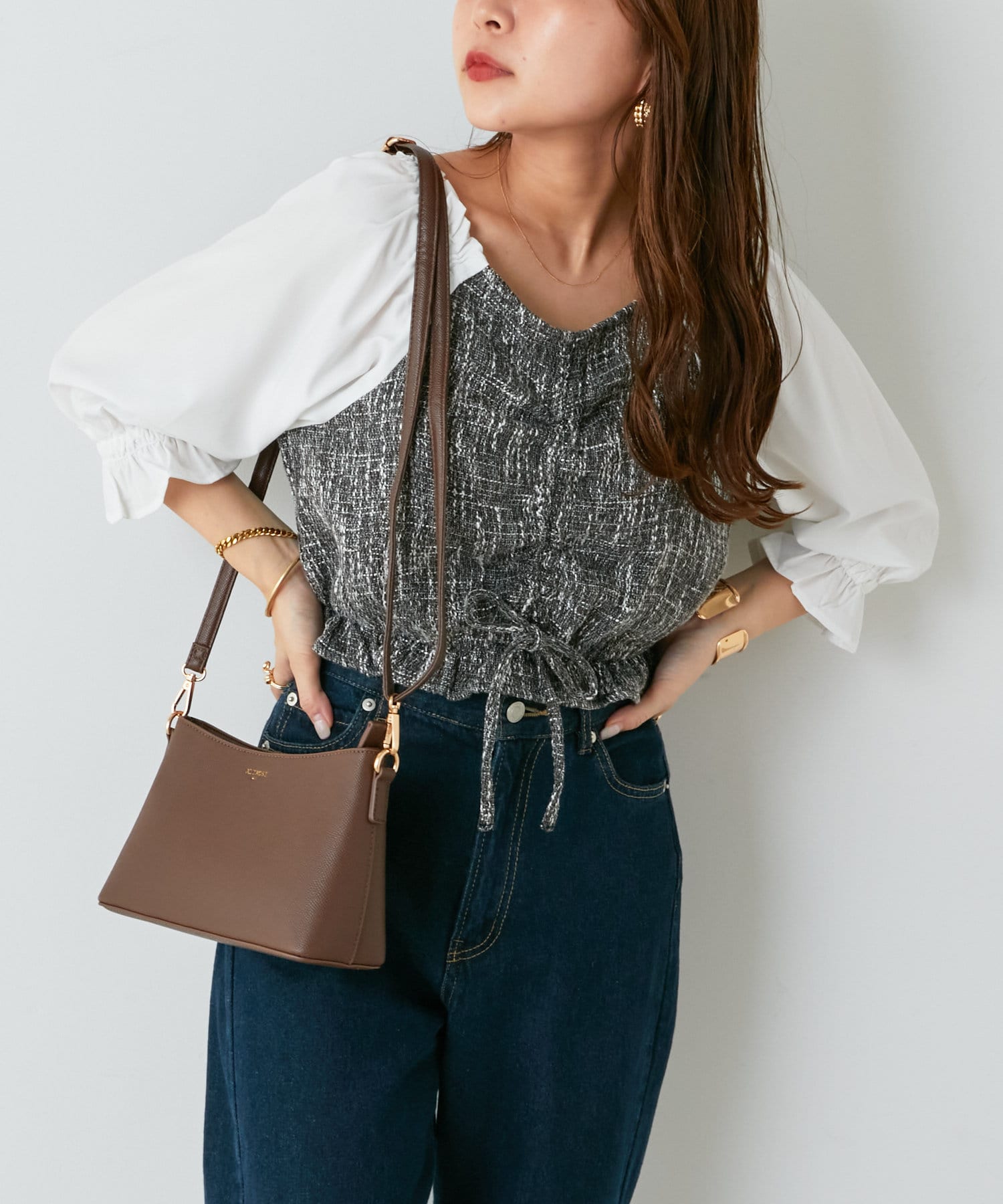 シンプルコーデに合わせるだけでトレンド感UP。
