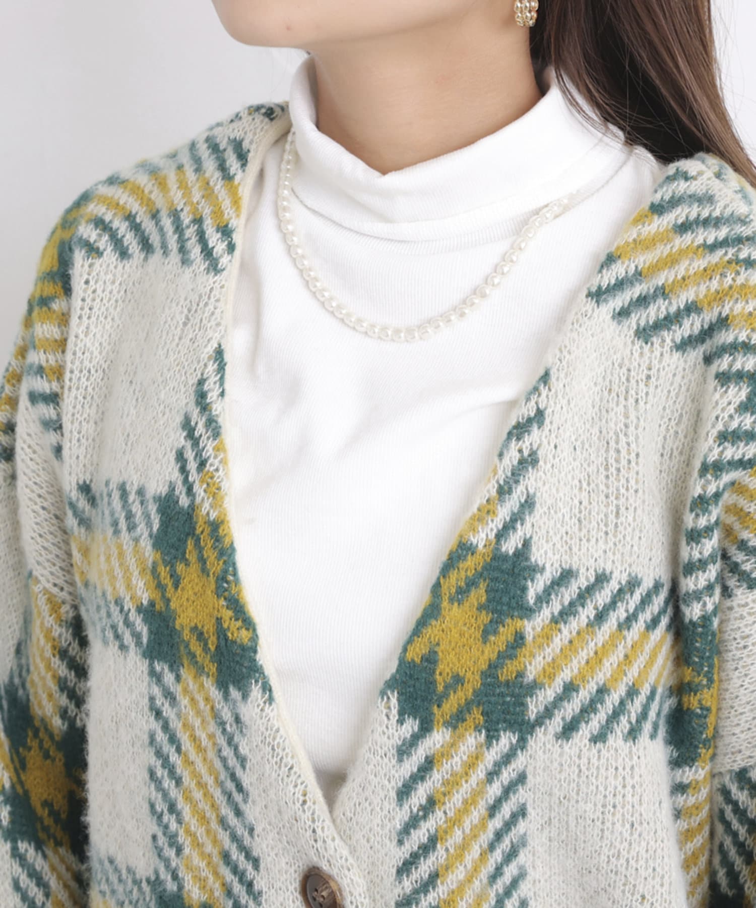 ・カーディガンの中にシアーやタートルインナーをレイヤードしたスタイリングもおすすめ。