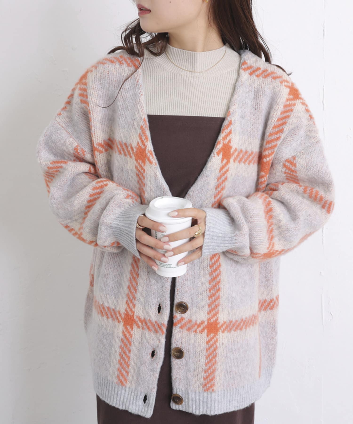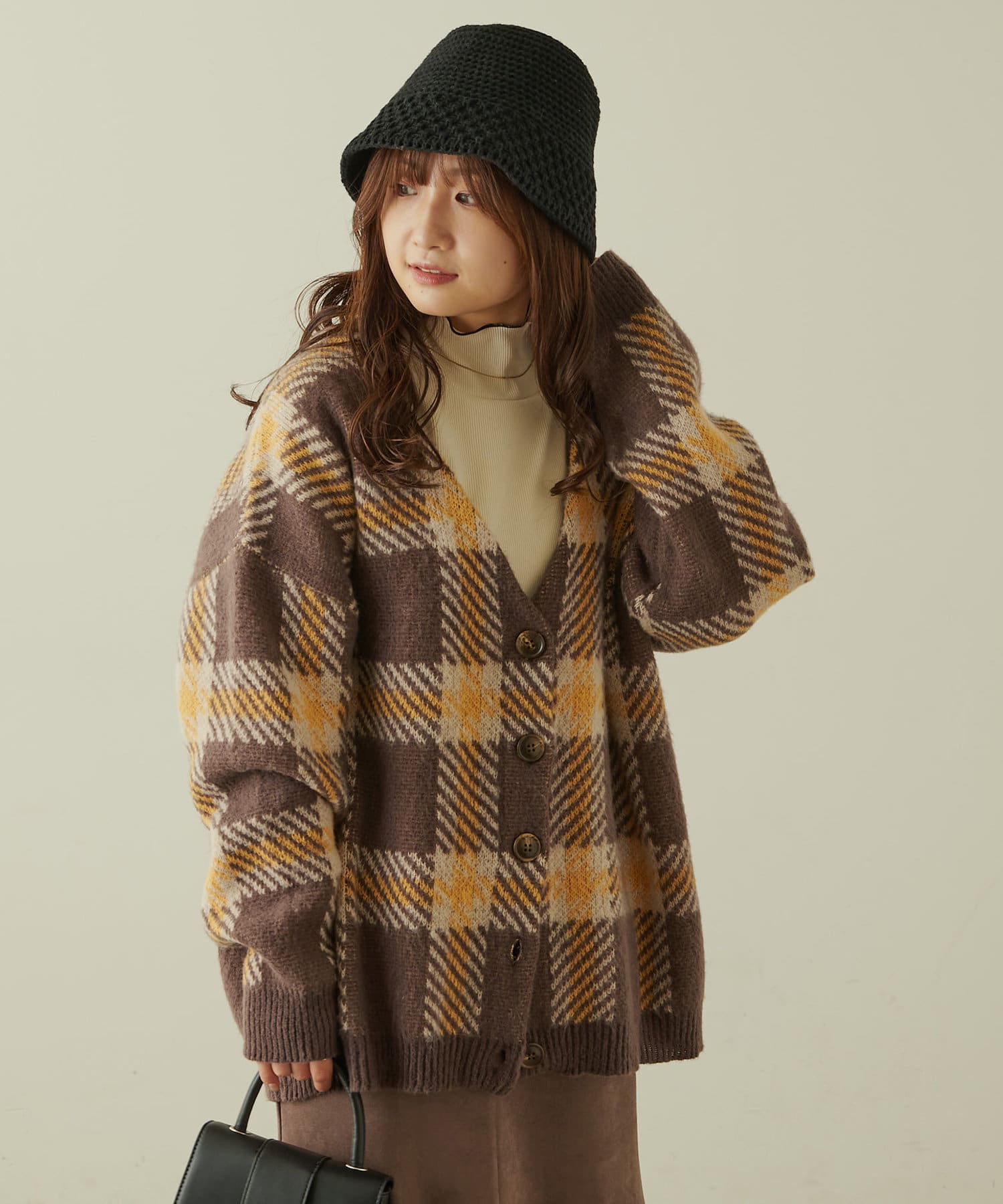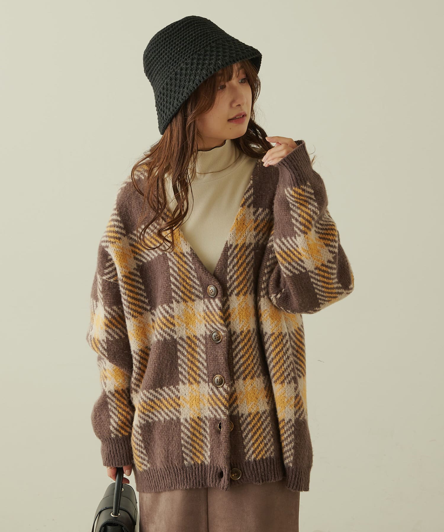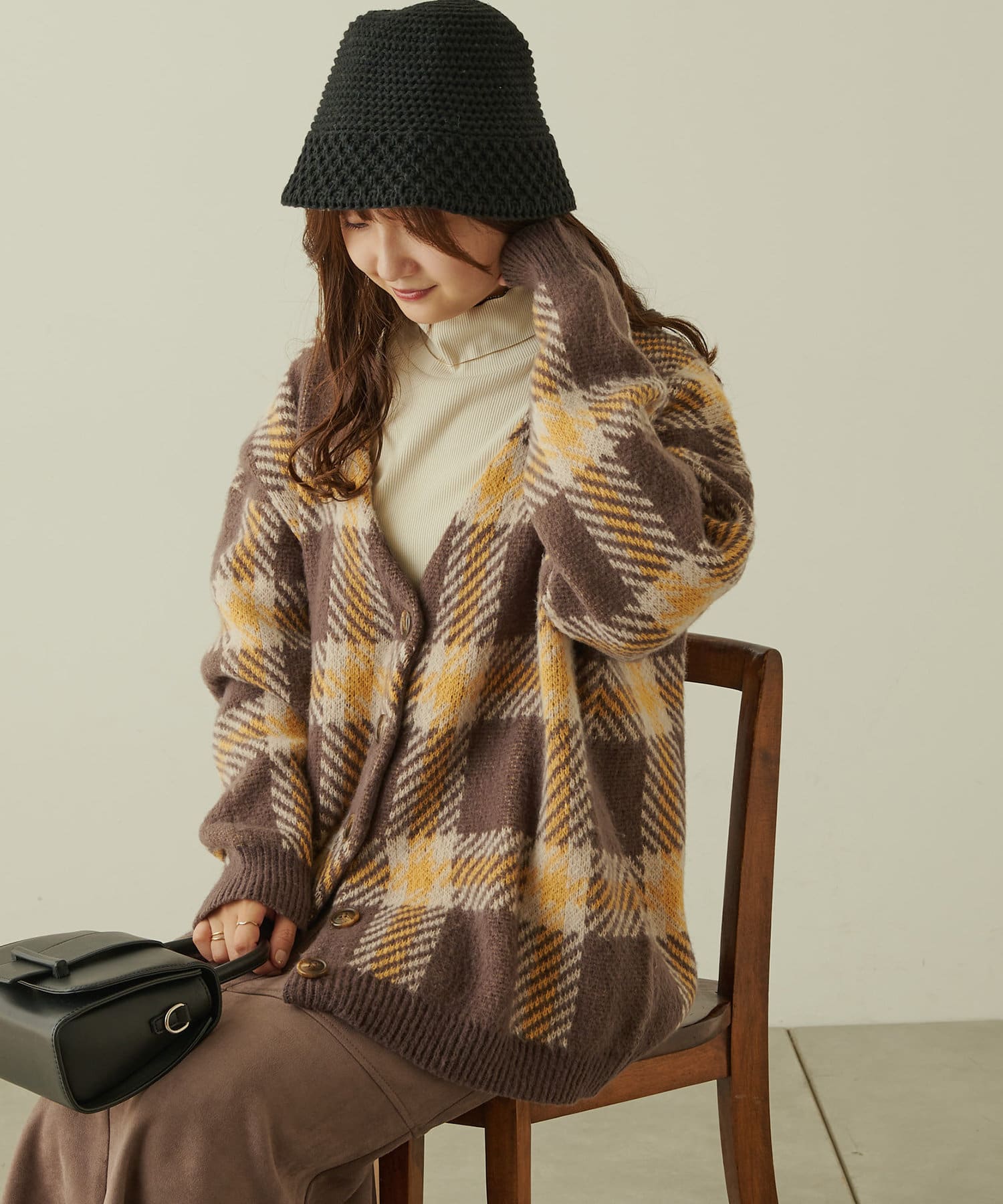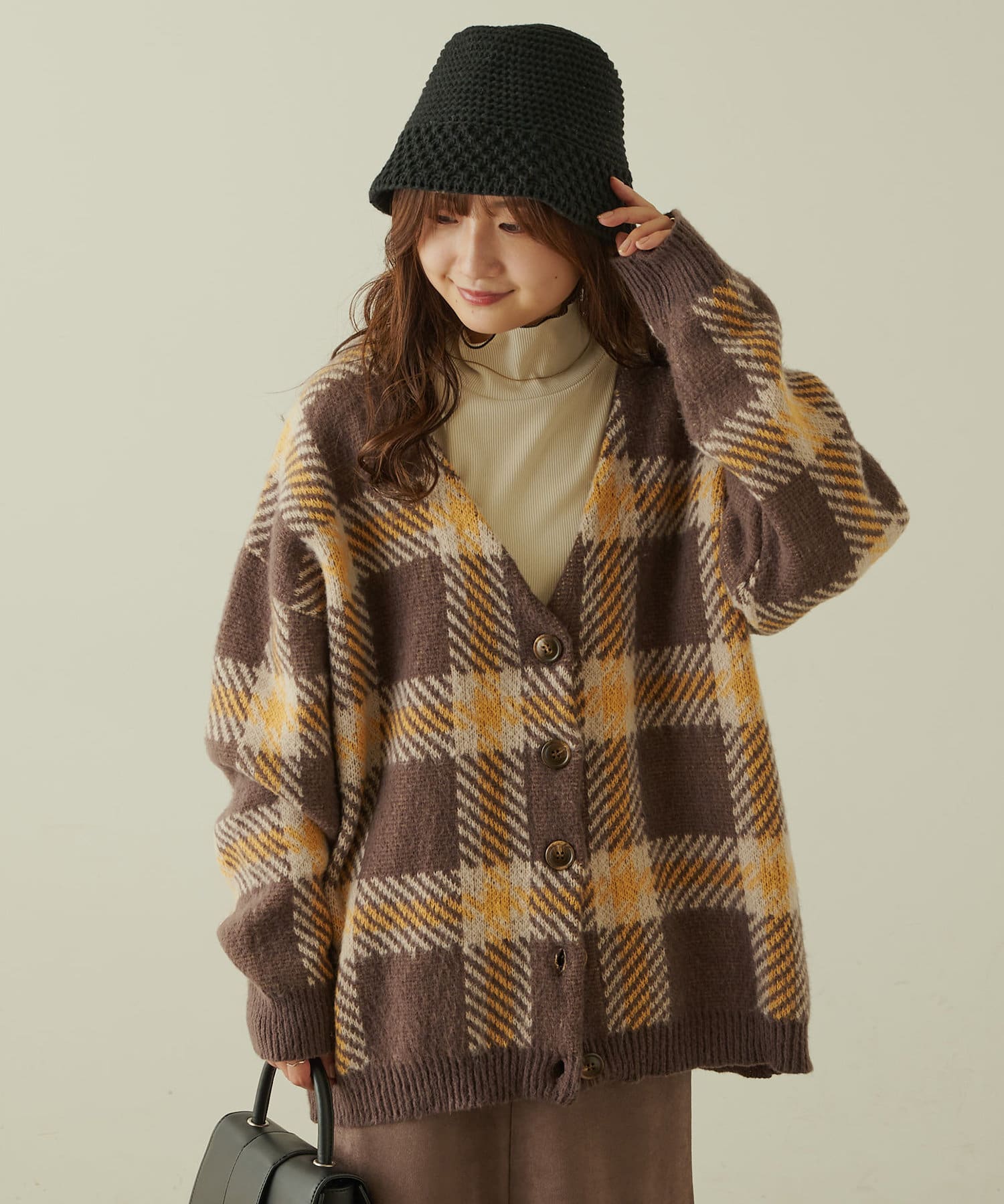 【新色追加!/再生産決定】NUNIFE 起毛チェックカーディガン