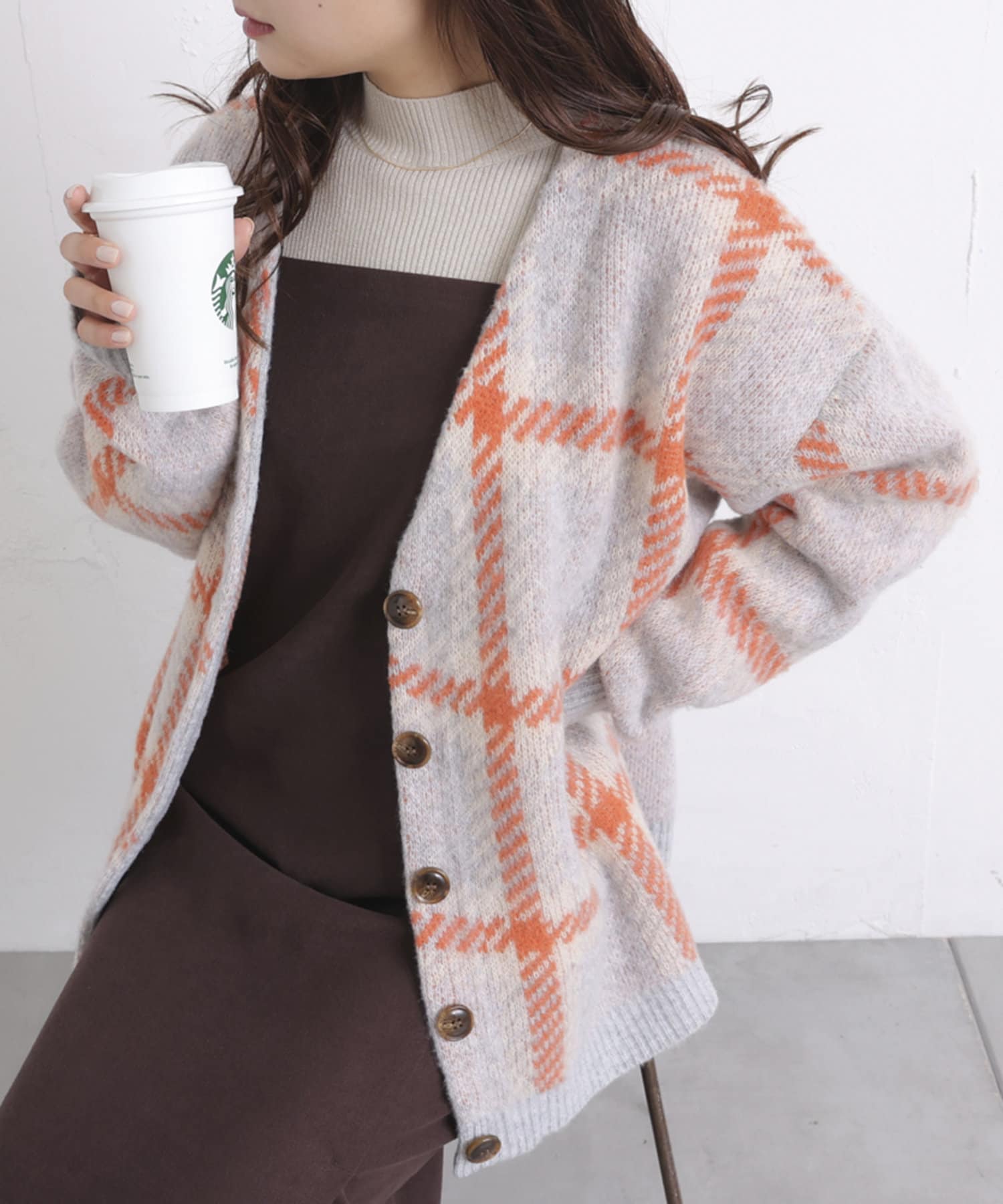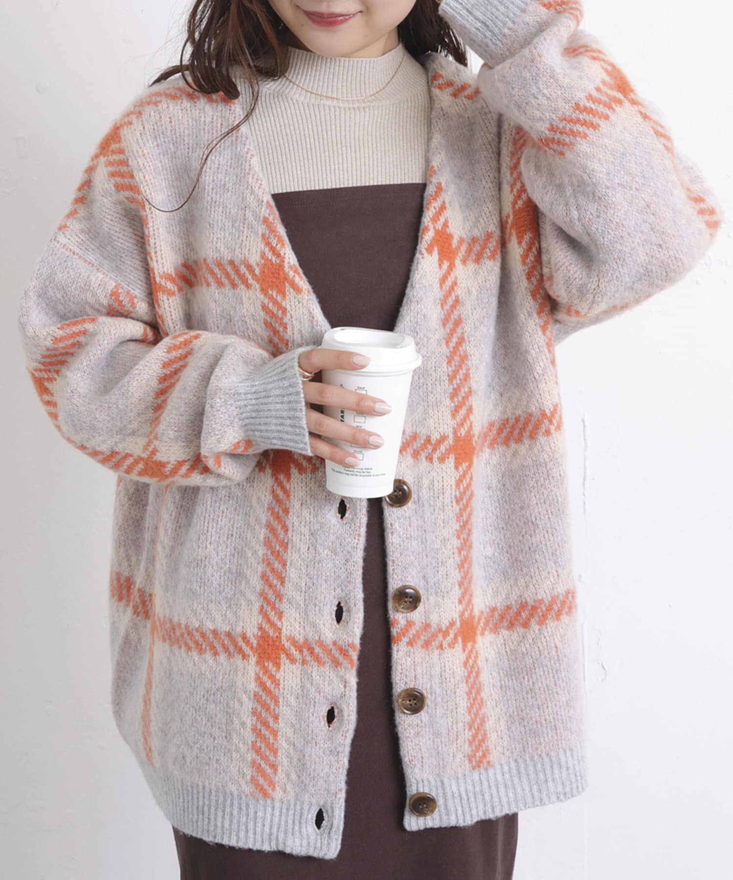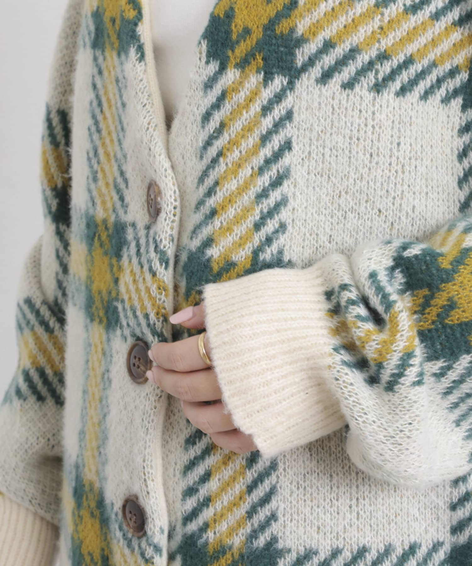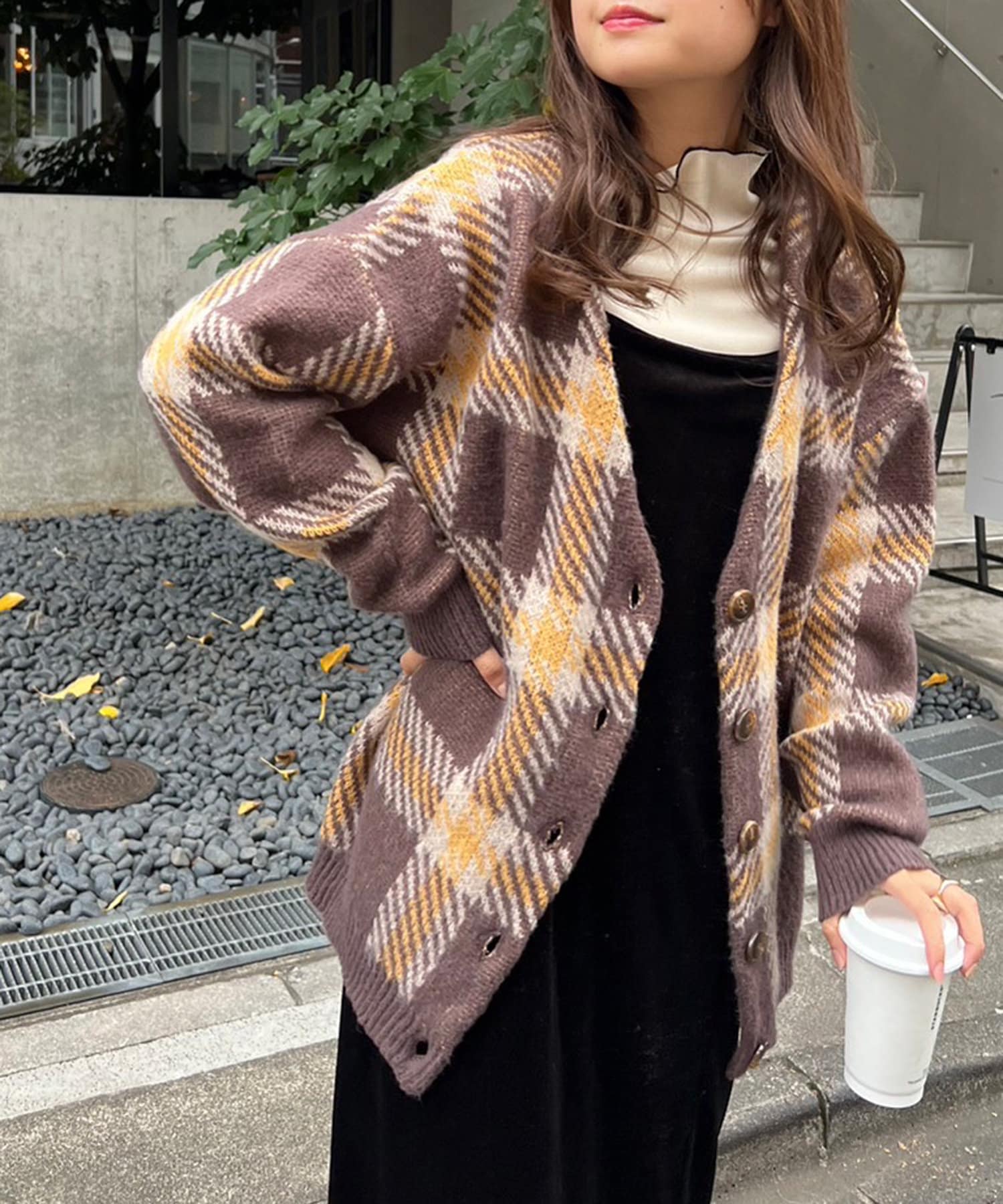 【新色追加!/再生産決定】NUNIFE 起毛チェックカーディガン