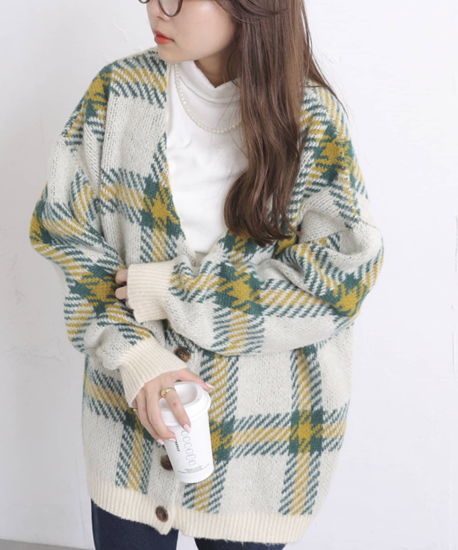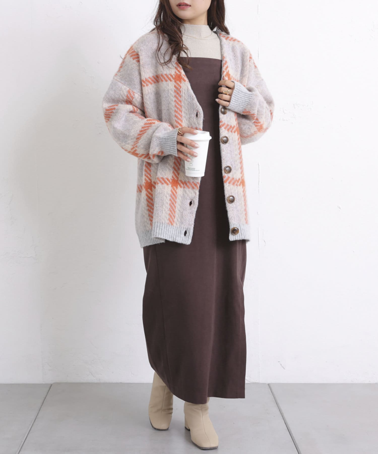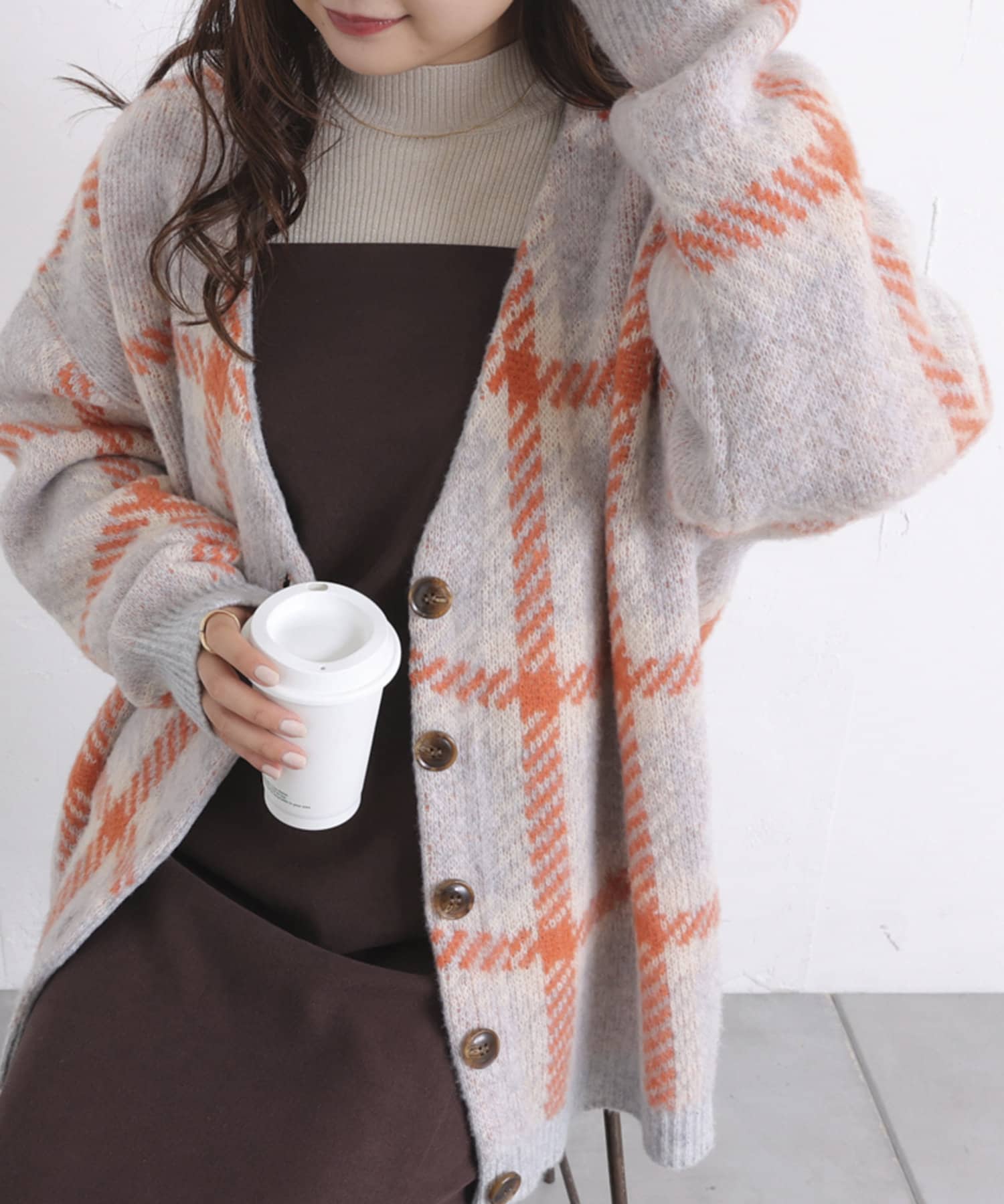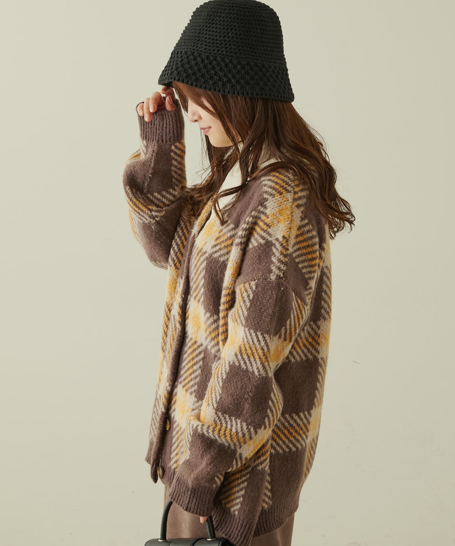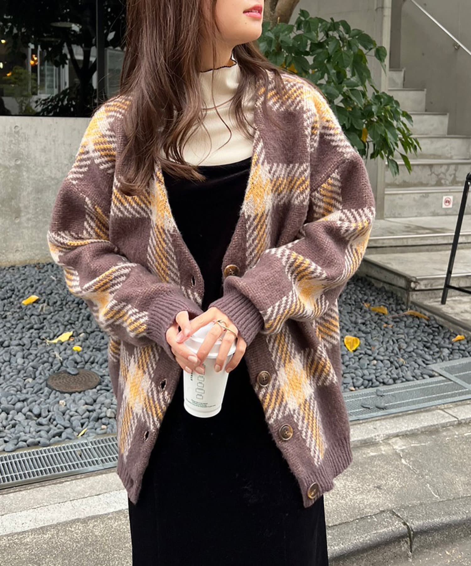 【新色追加!/再生産決定】NUNIFE 起毛チェックカーディガン