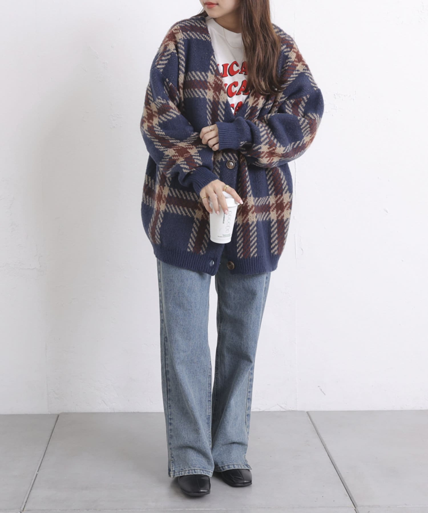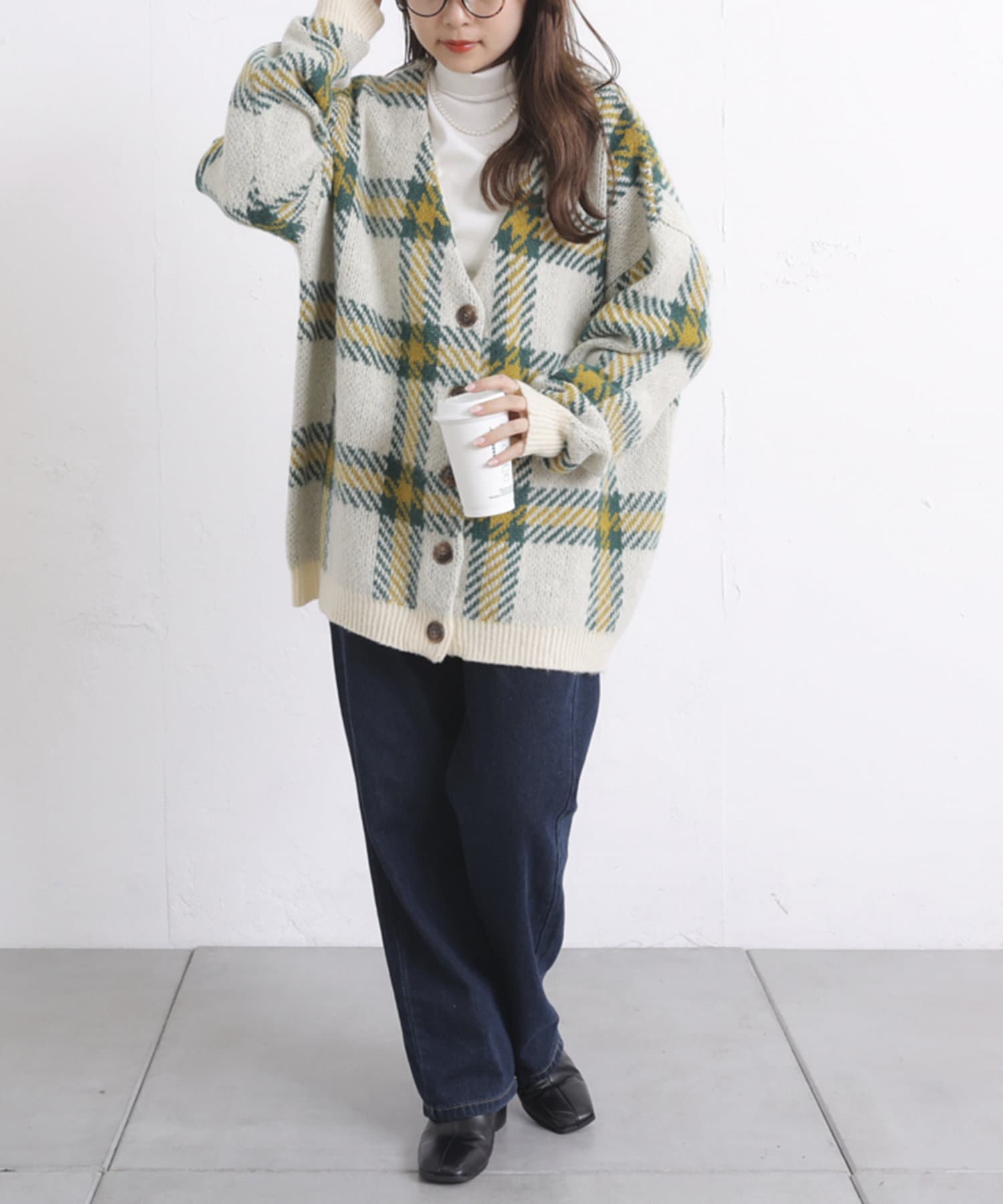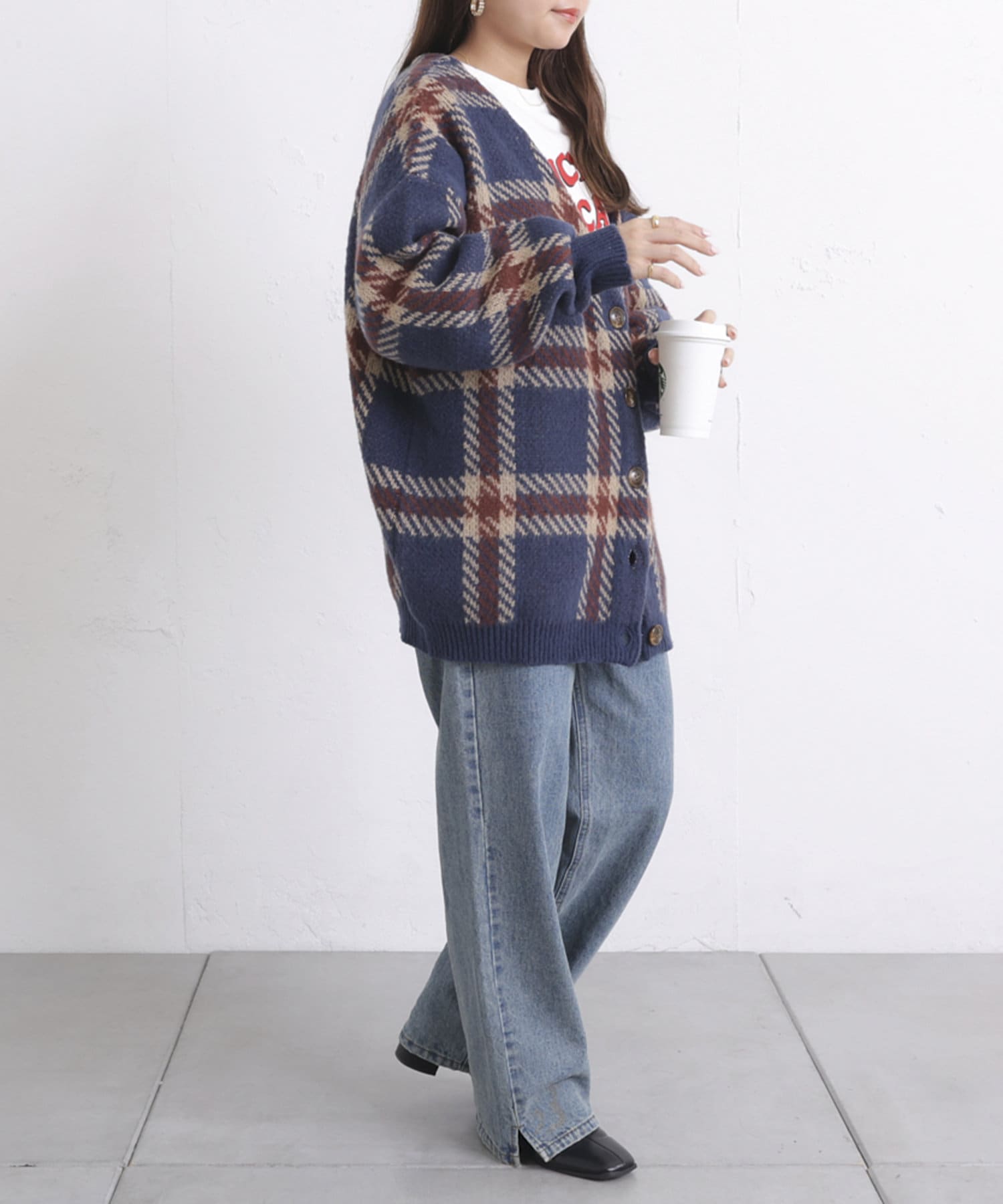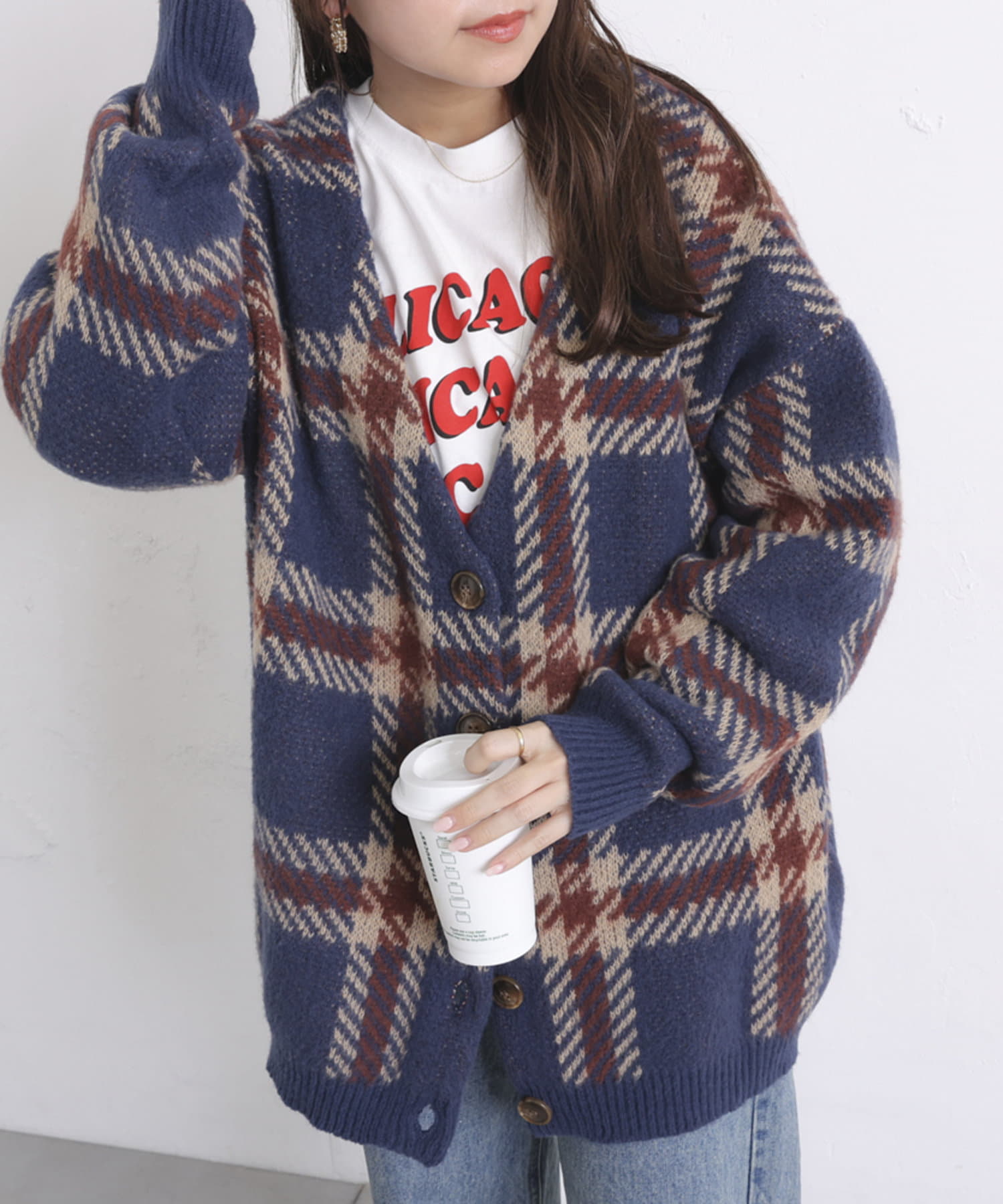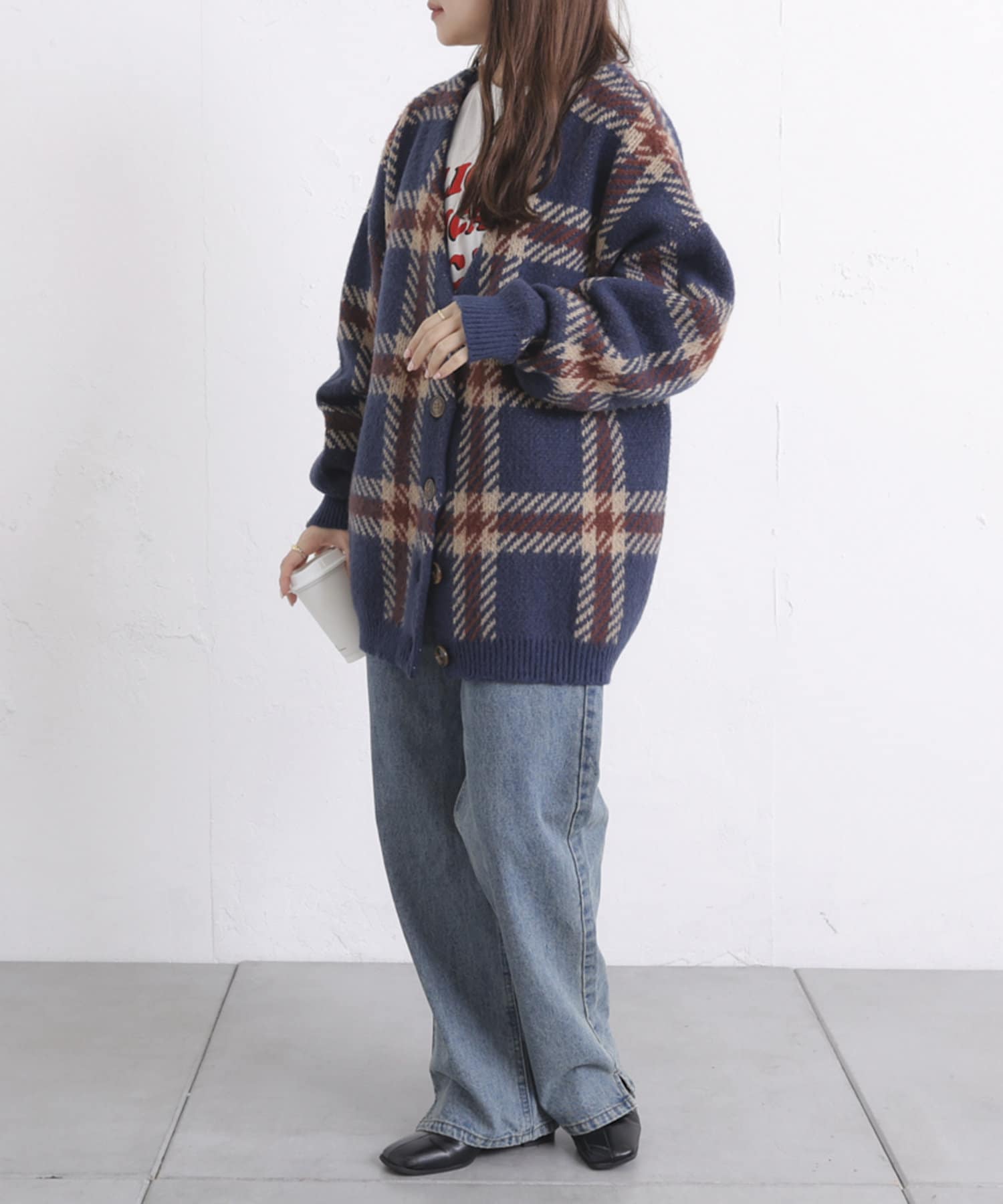 【新色追加!/再生産決定】NUNIFE 起毛チェックカーディガン