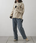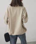 ・左胸と袖のワンポイントが映える起毛素材のトップス