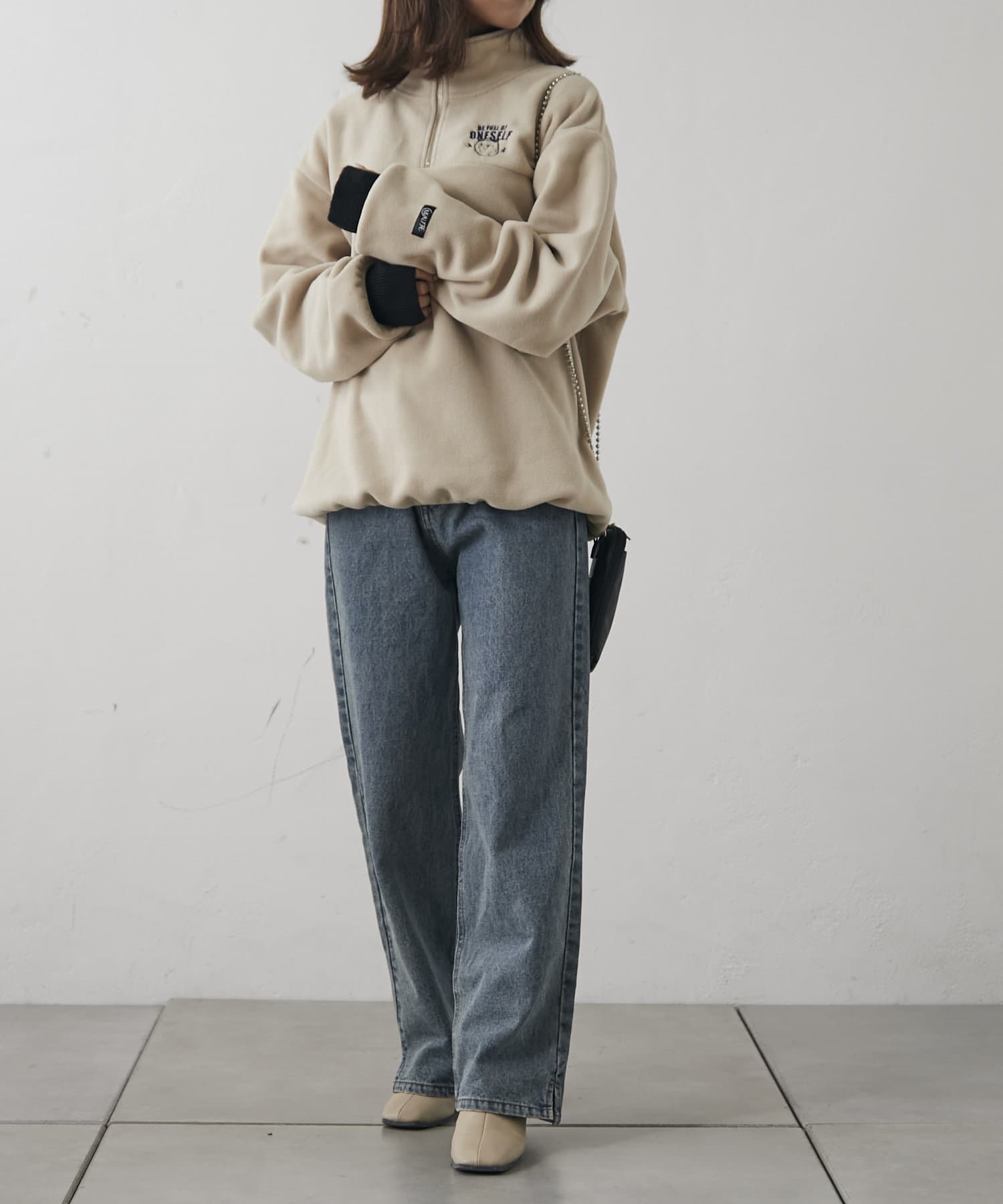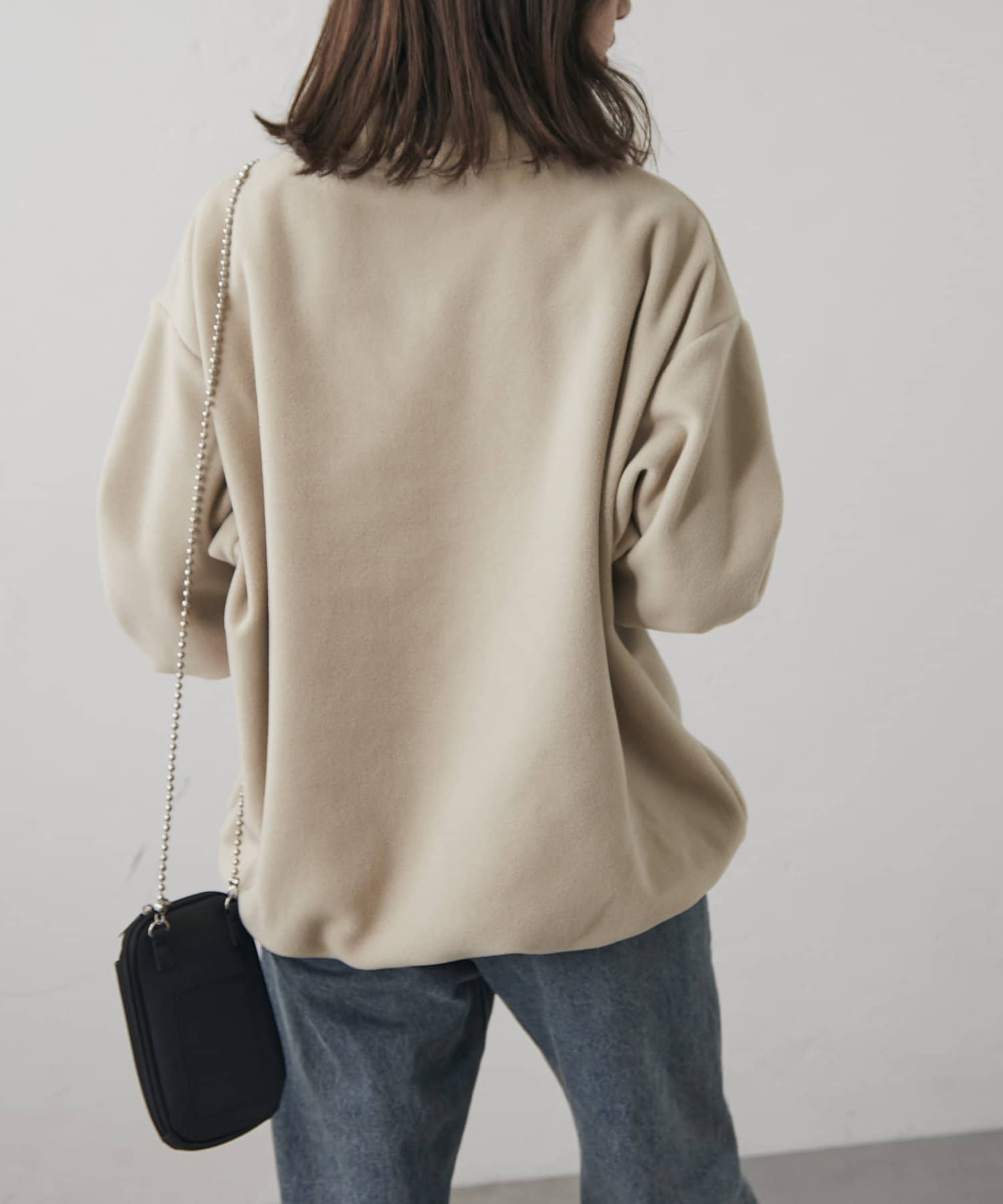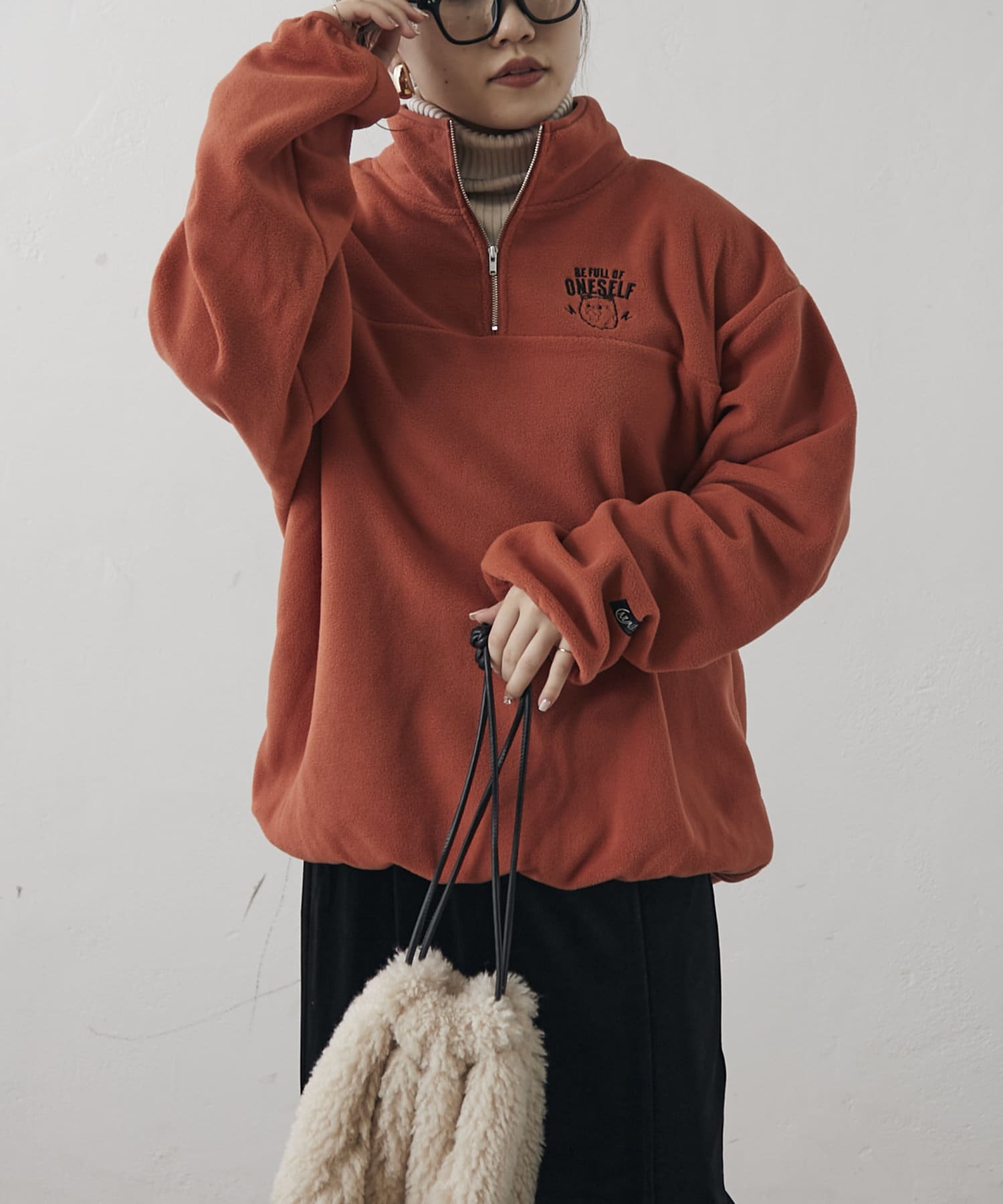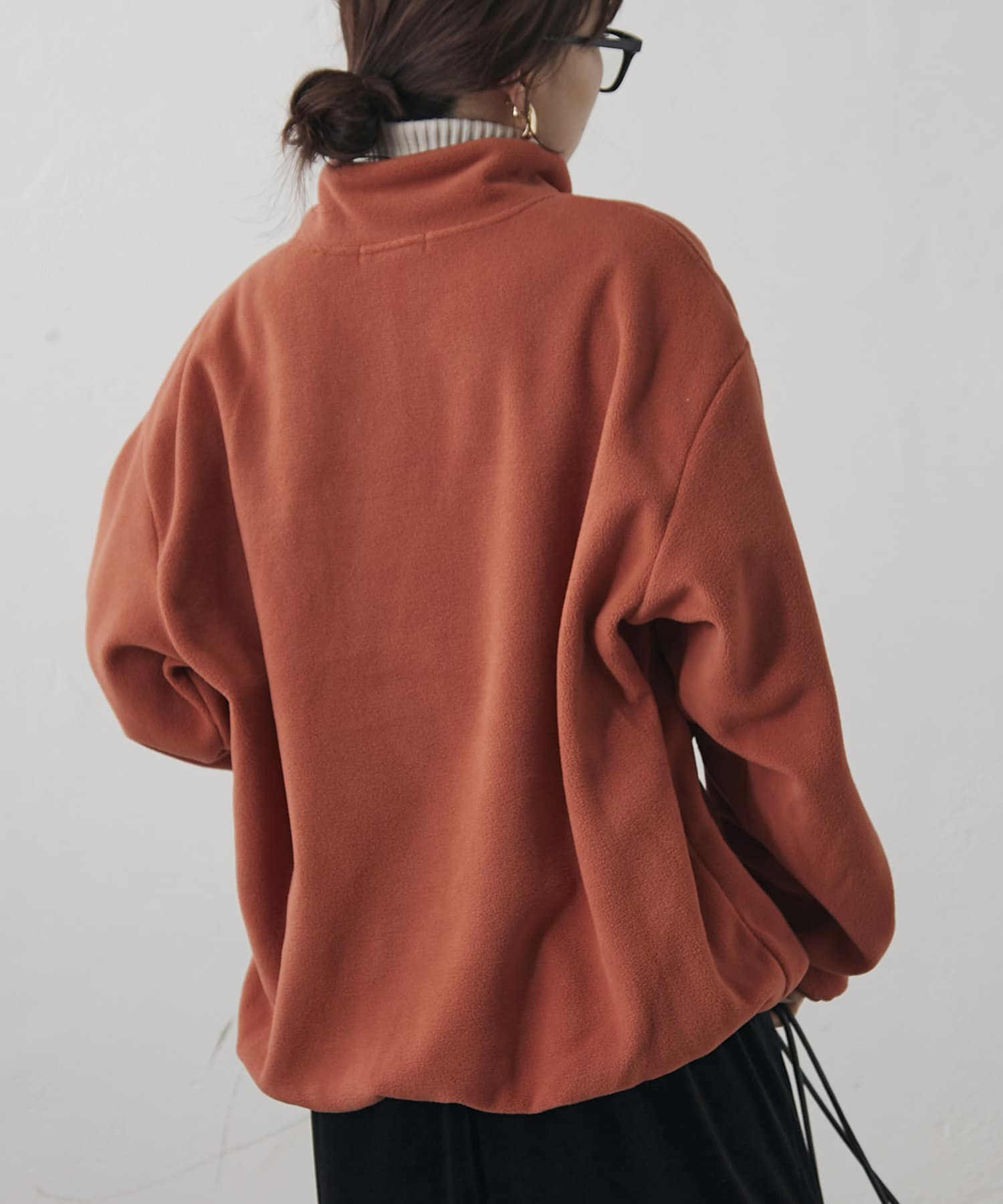 ・襟元のチャックを開けてレイヤードするのも、閉めてハイネックにするのも◎