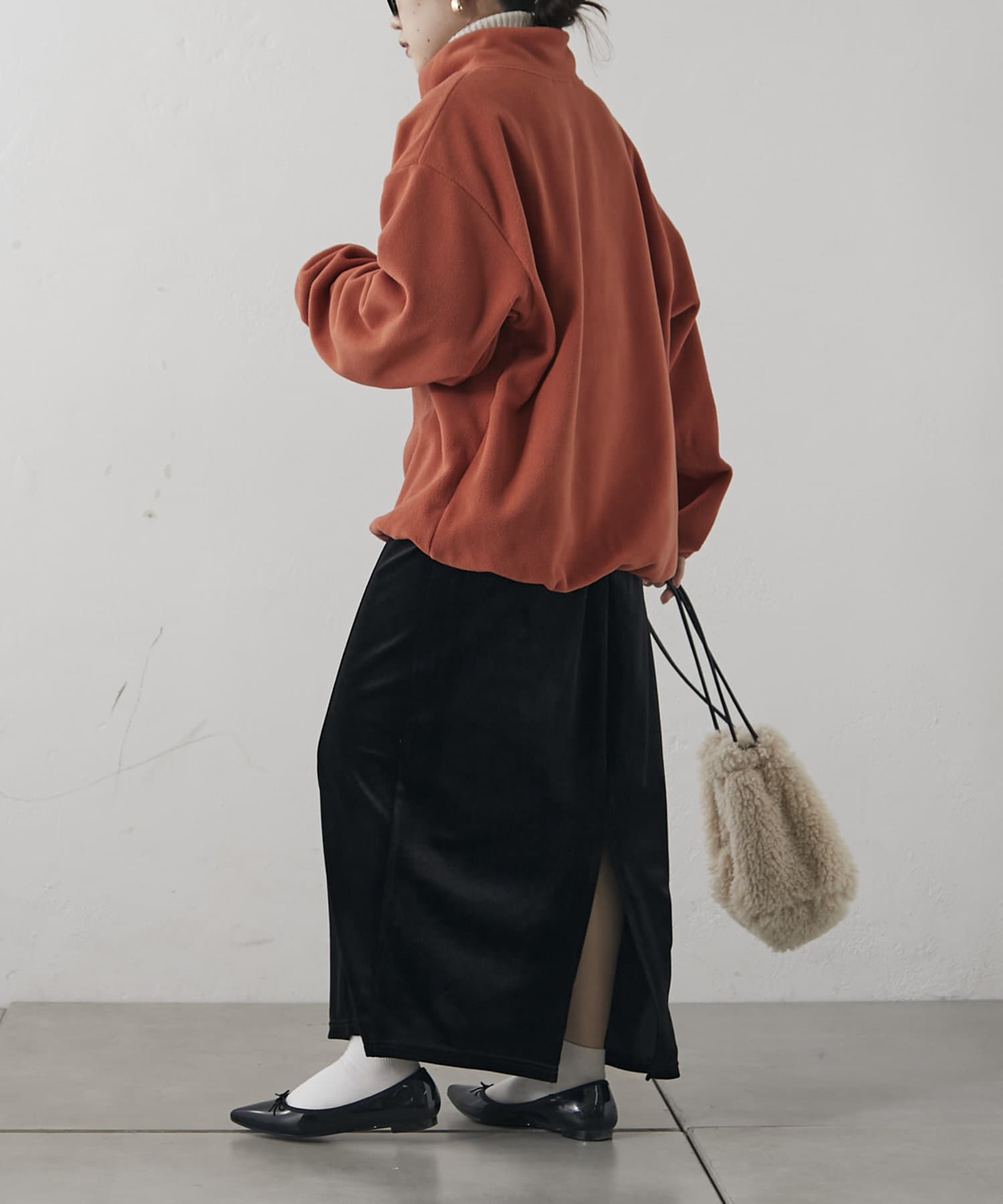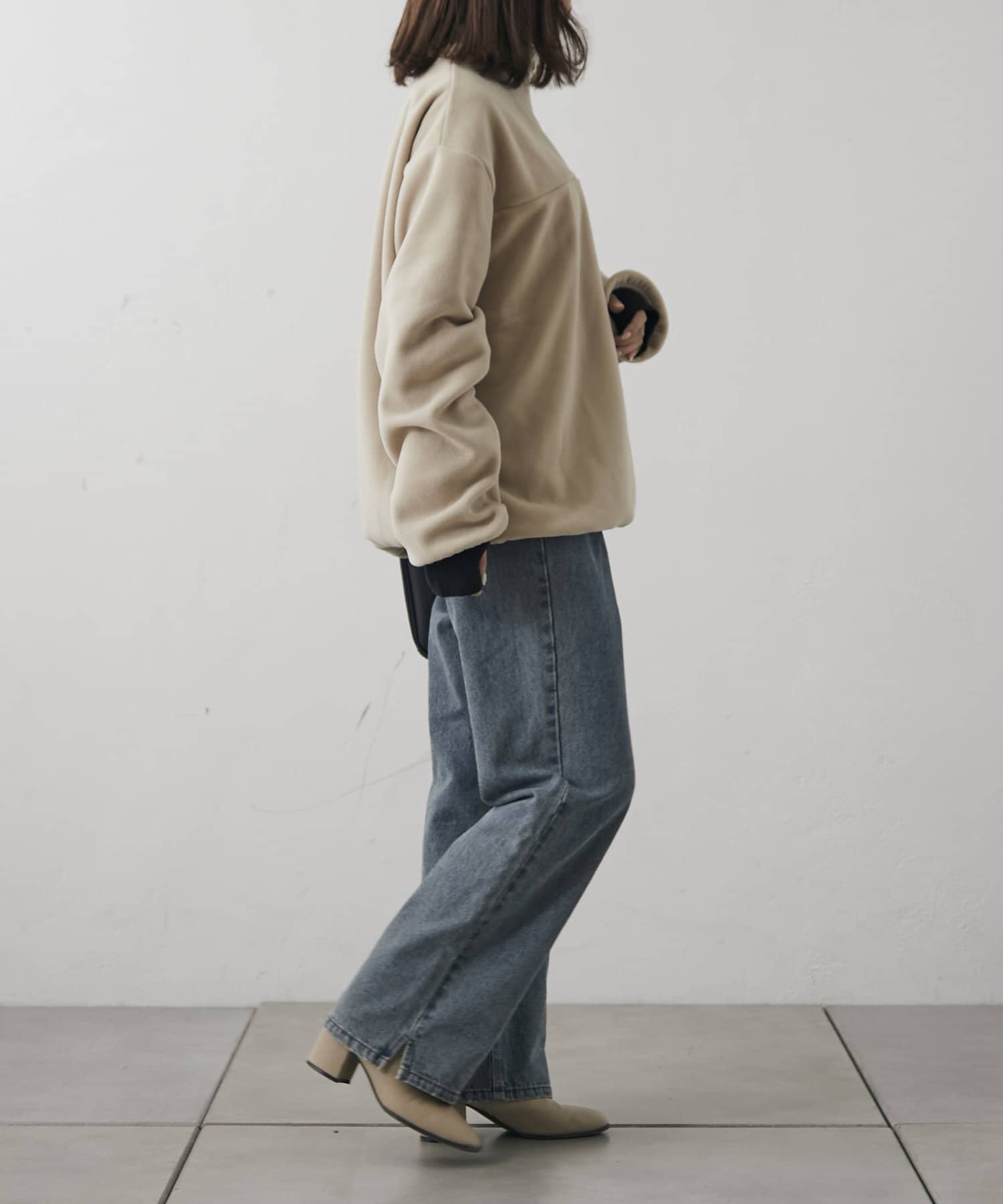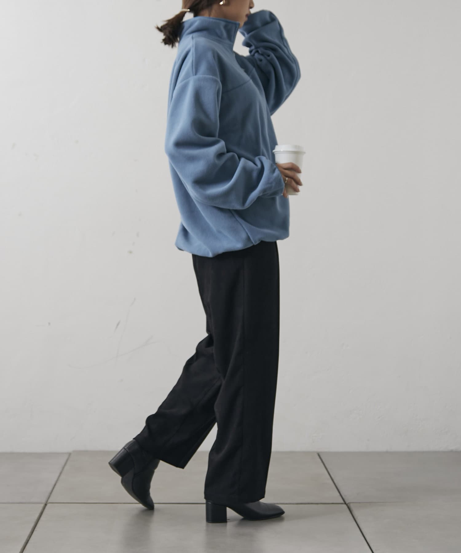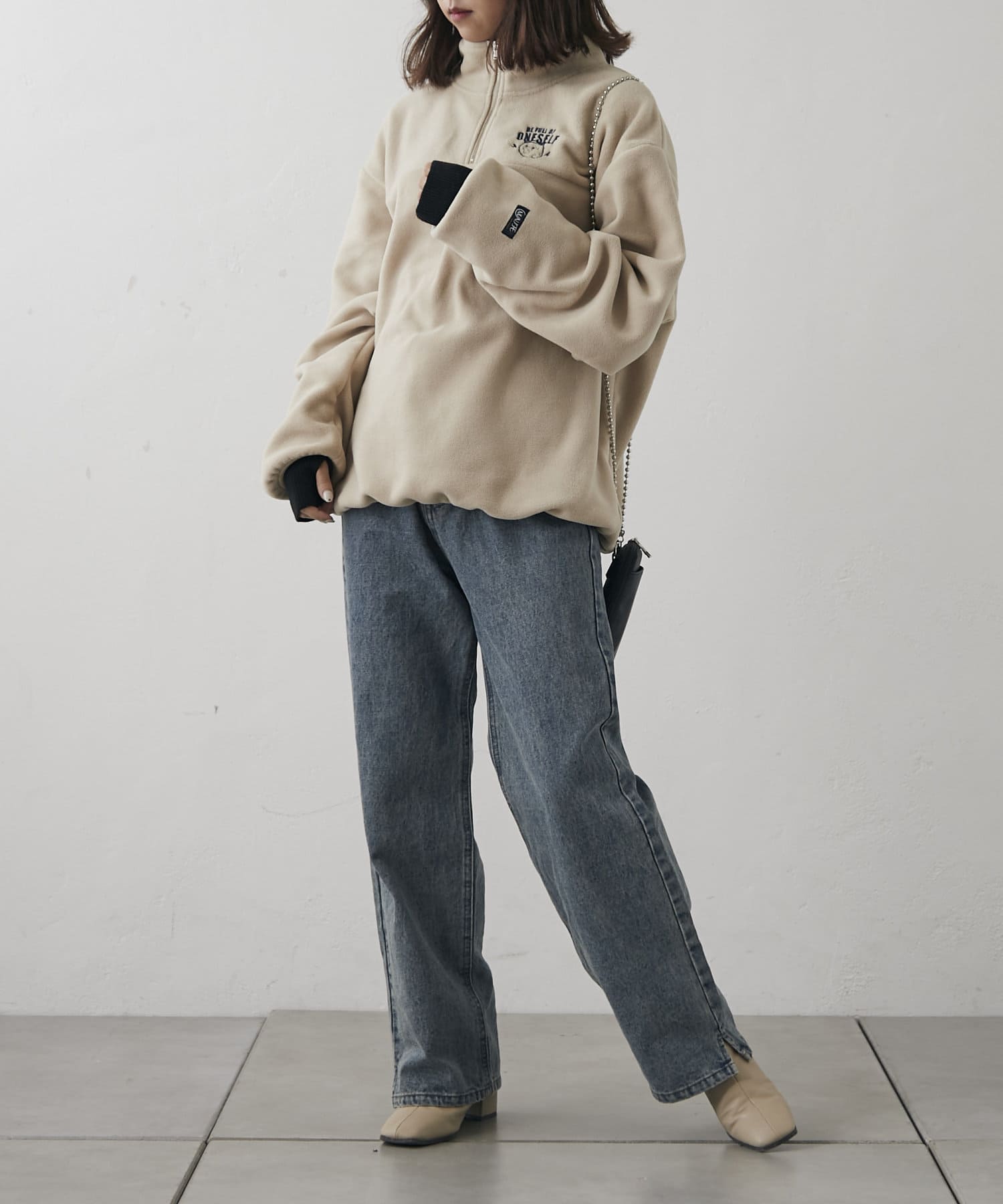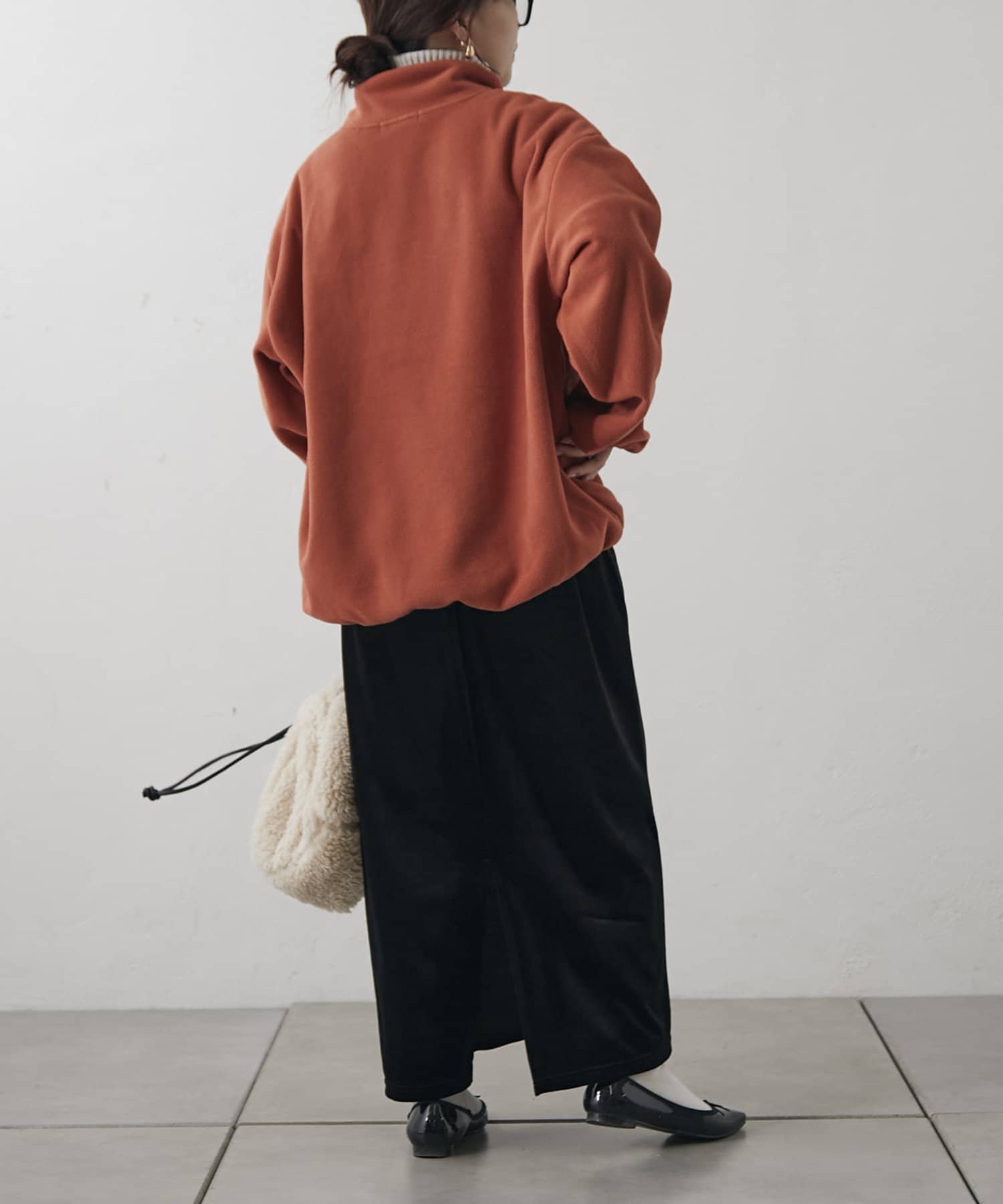 ・襟元のチャックを開けてレイヤードするのも、閉めてハイネックにするのも◎