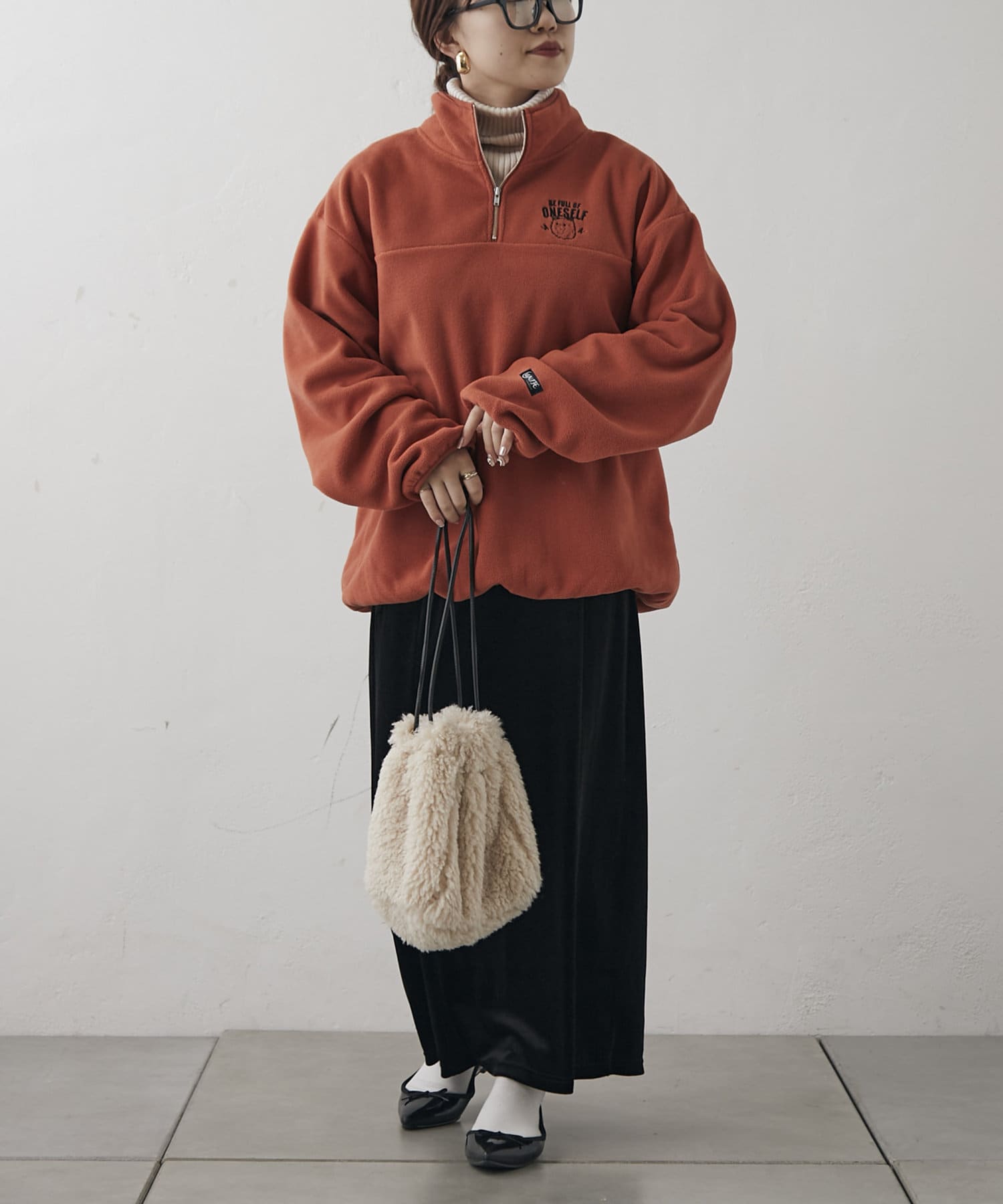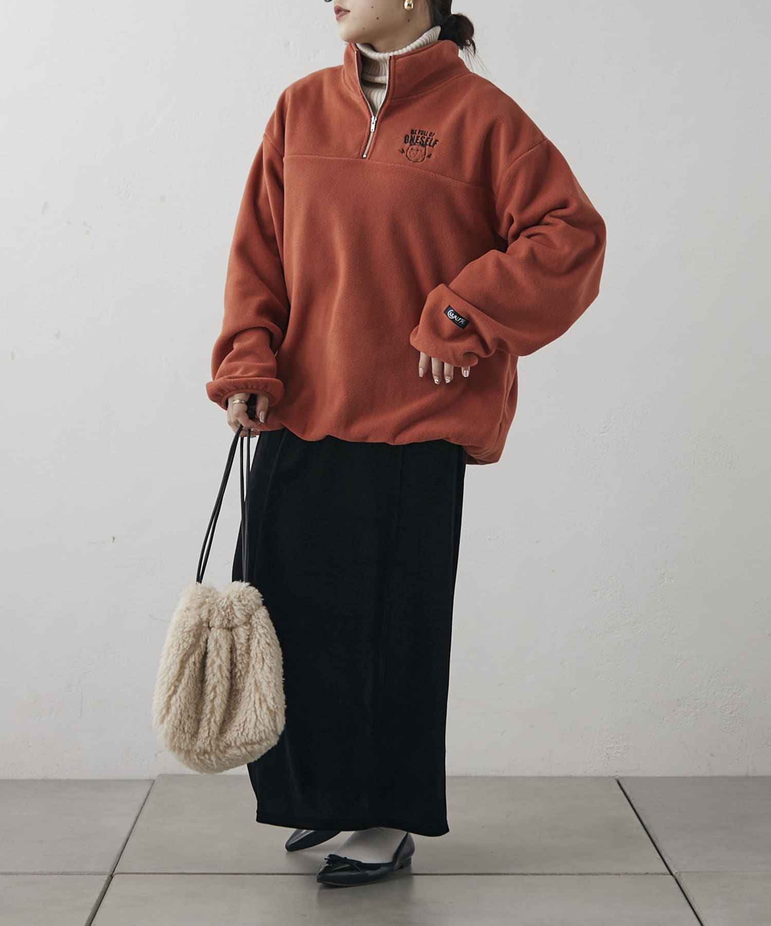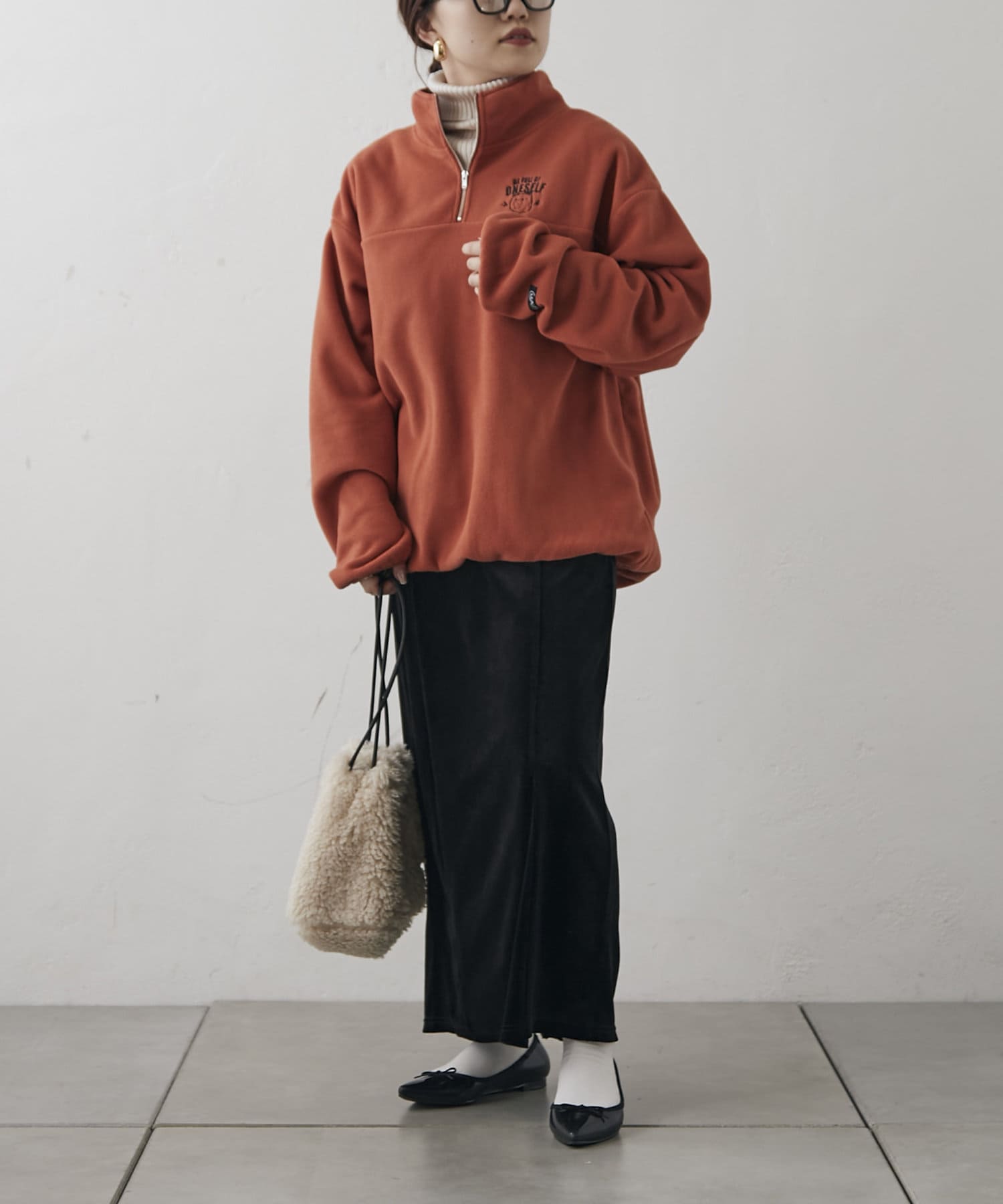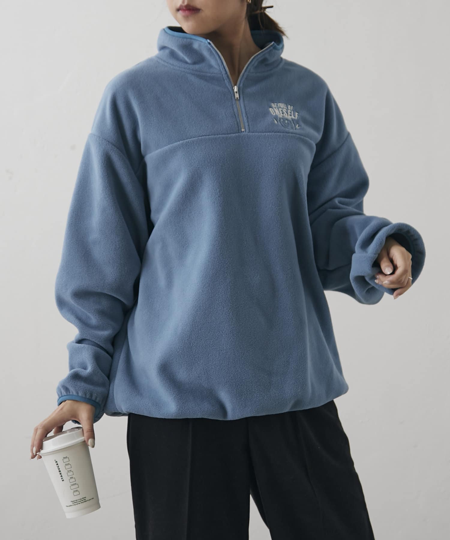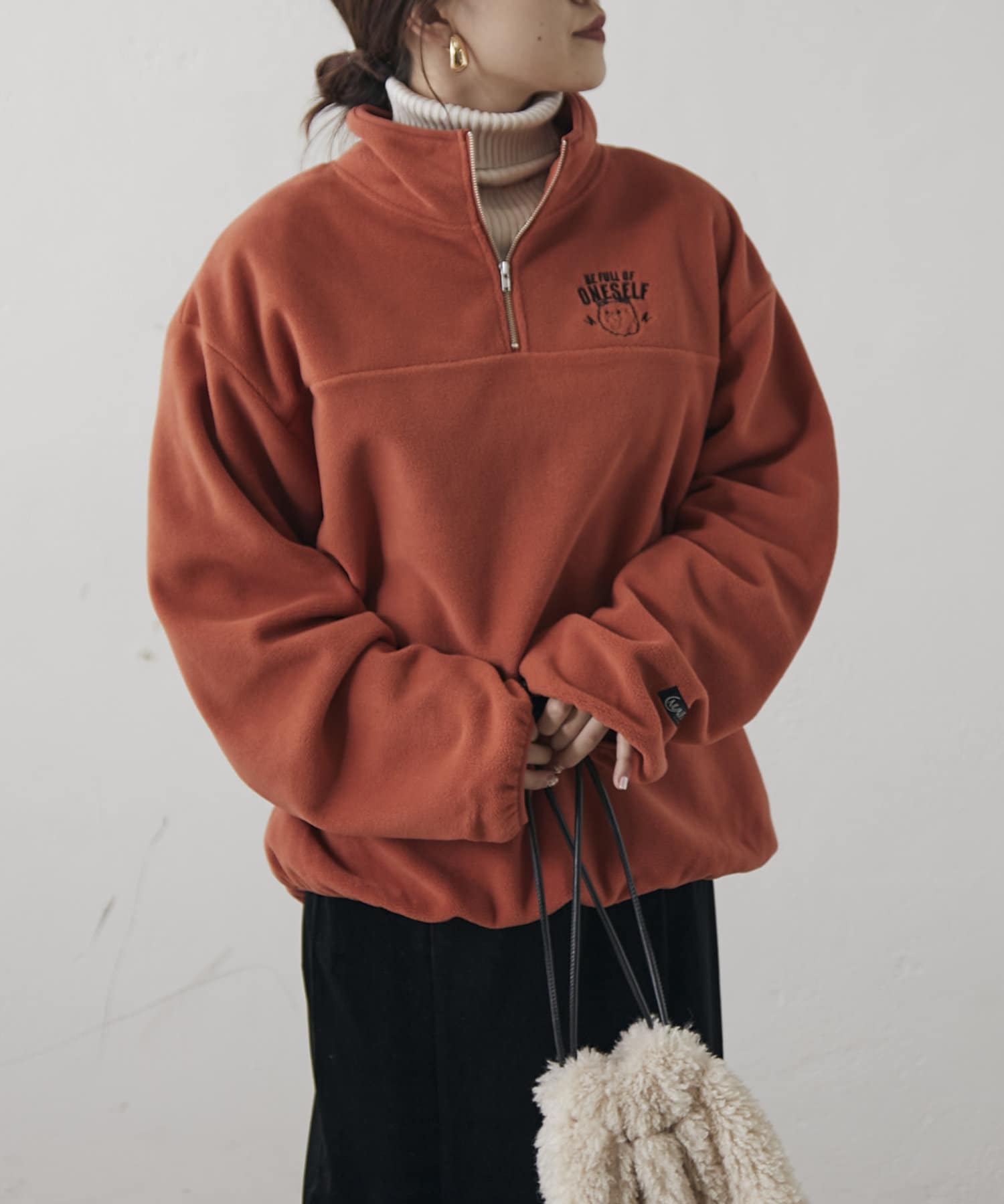 【NUNIFE】フリースハーフZIPプルオーバー