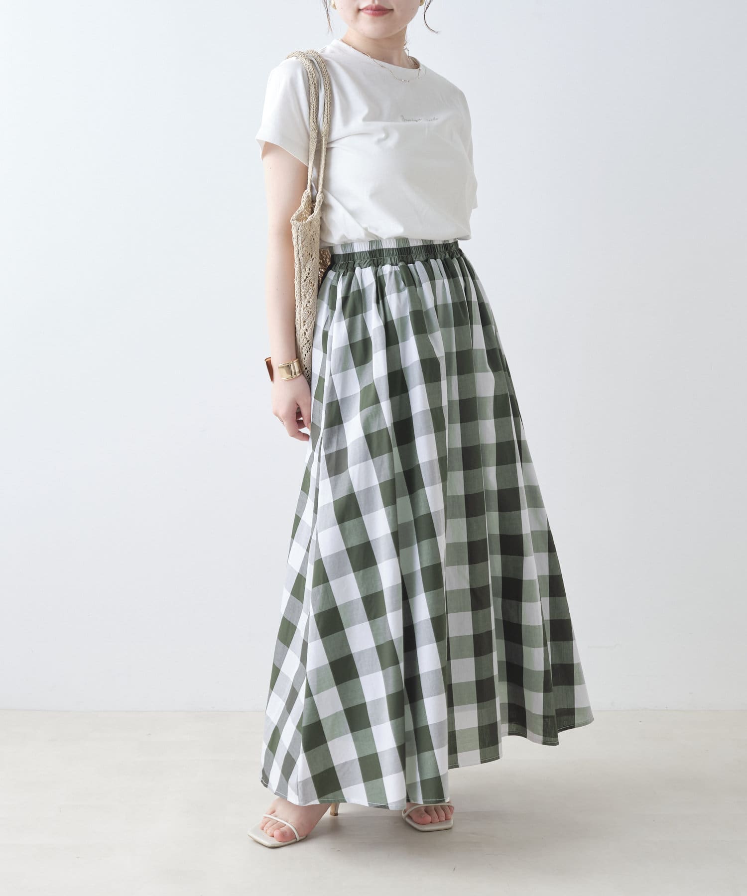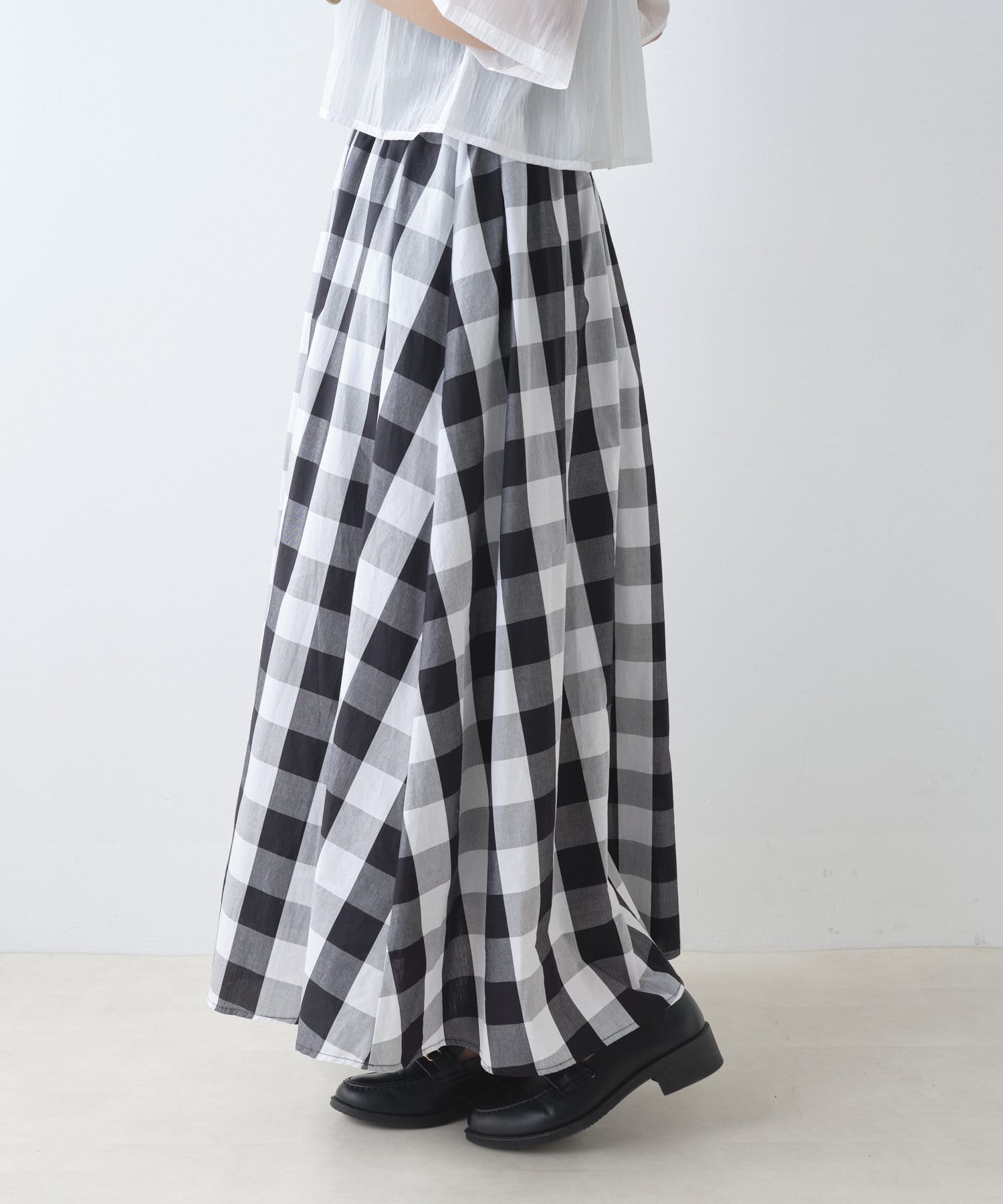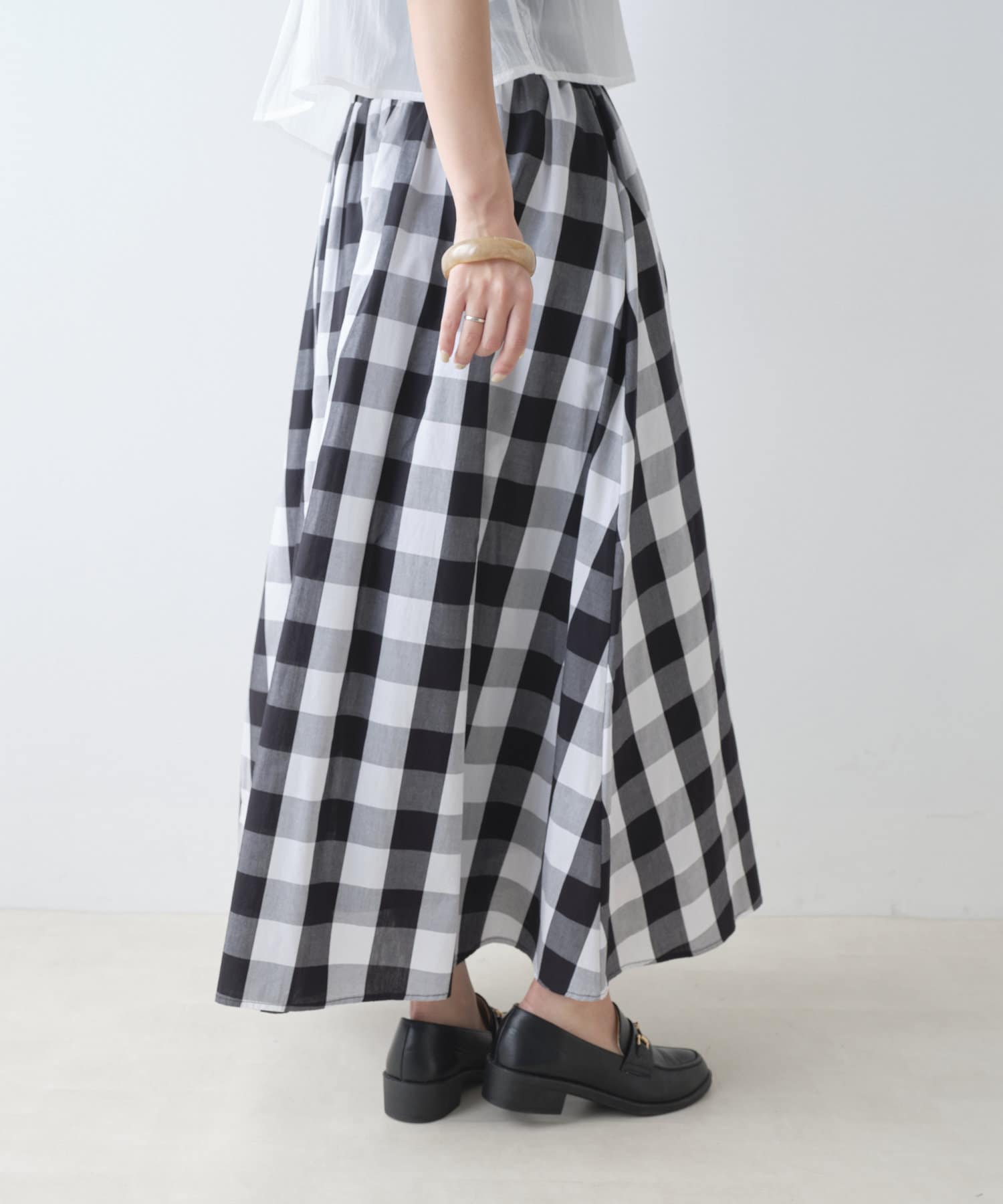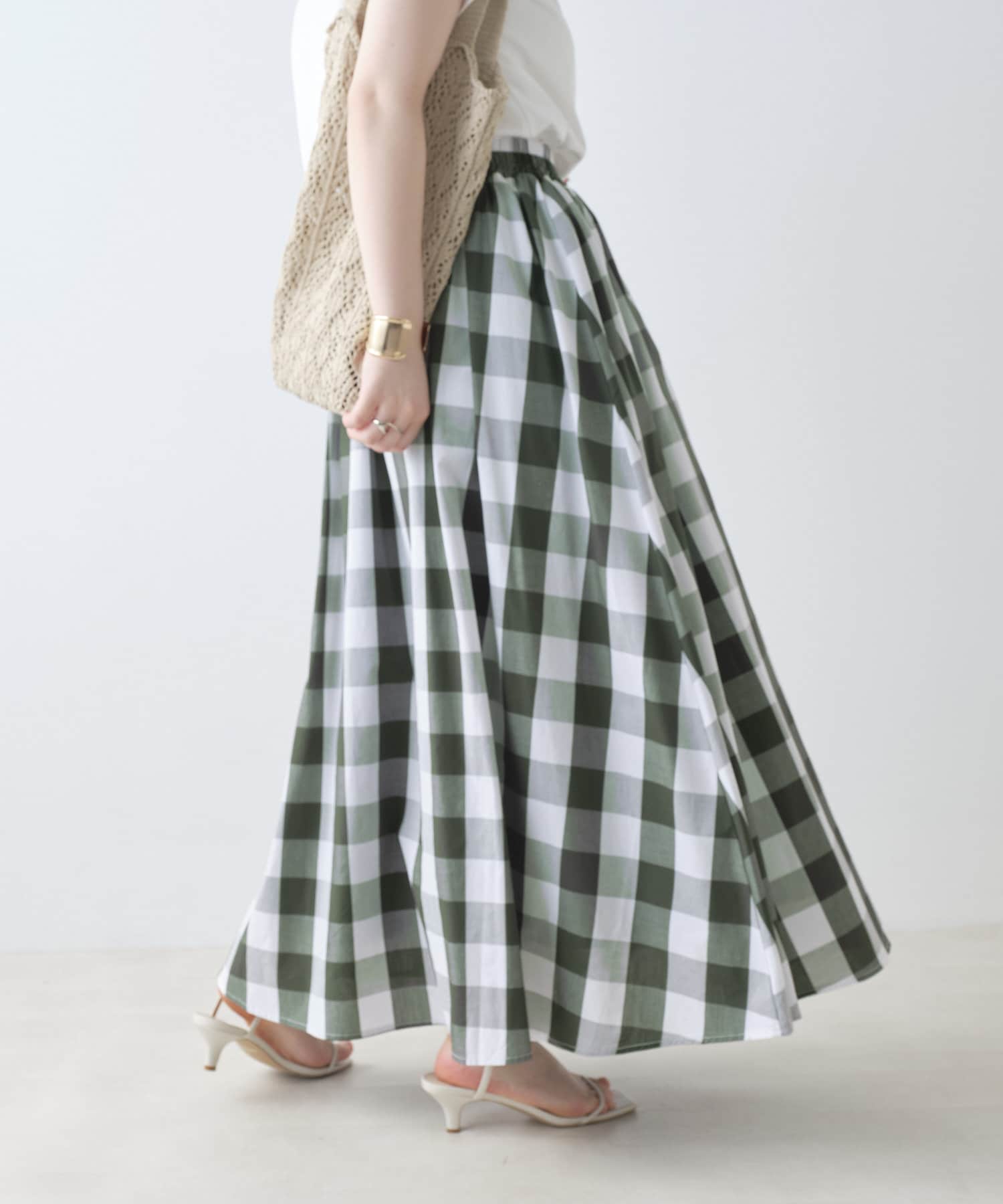 ・贅沢に生地を使用した女性らしさを引き立てる今季注目ギンガムチェックのフレアスカートが登場