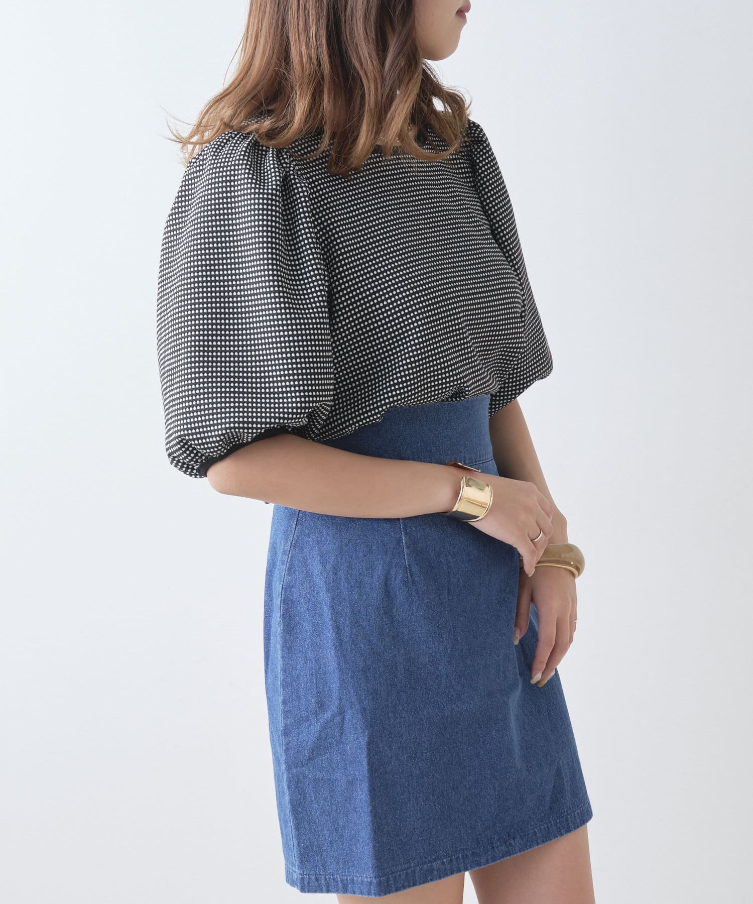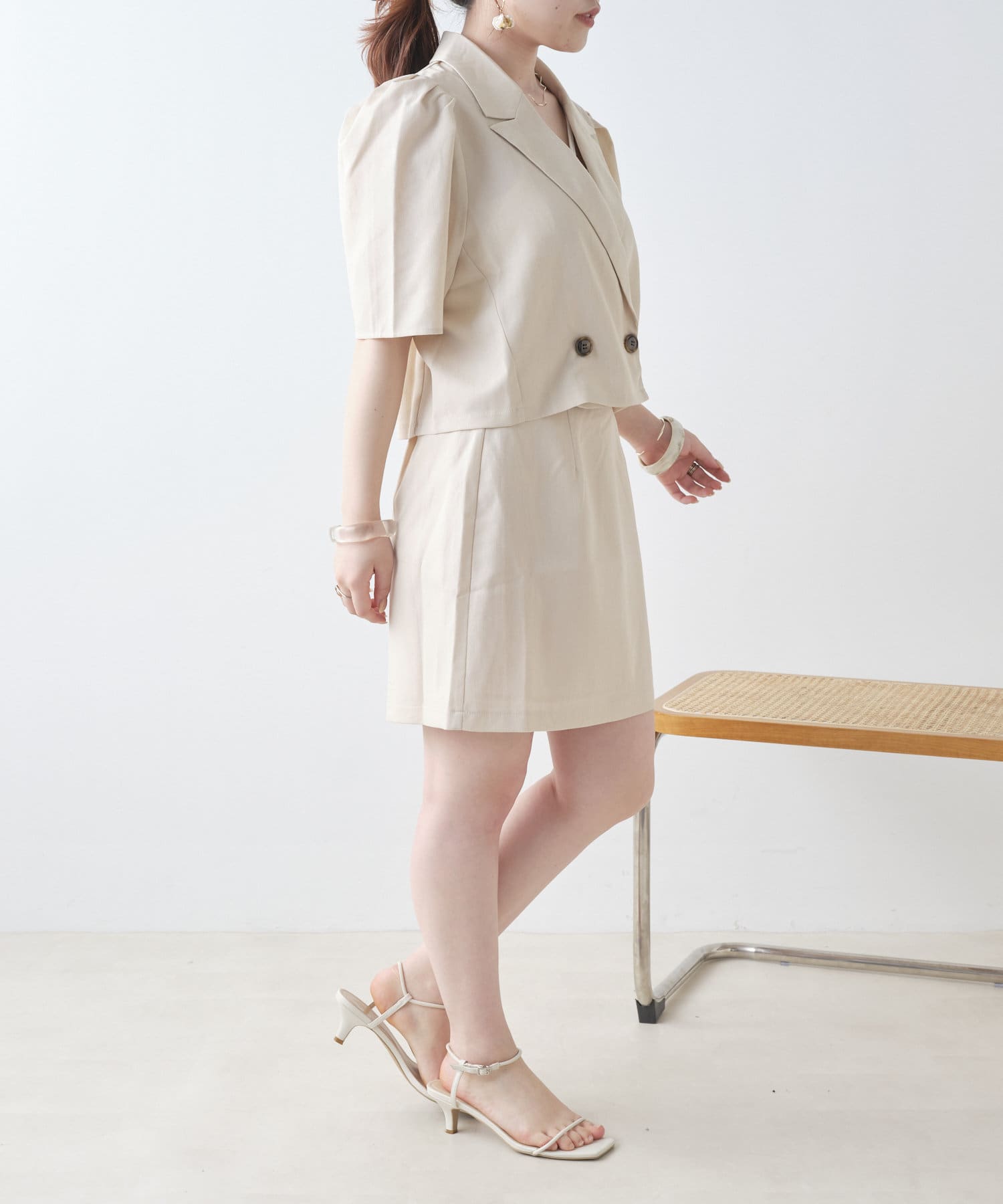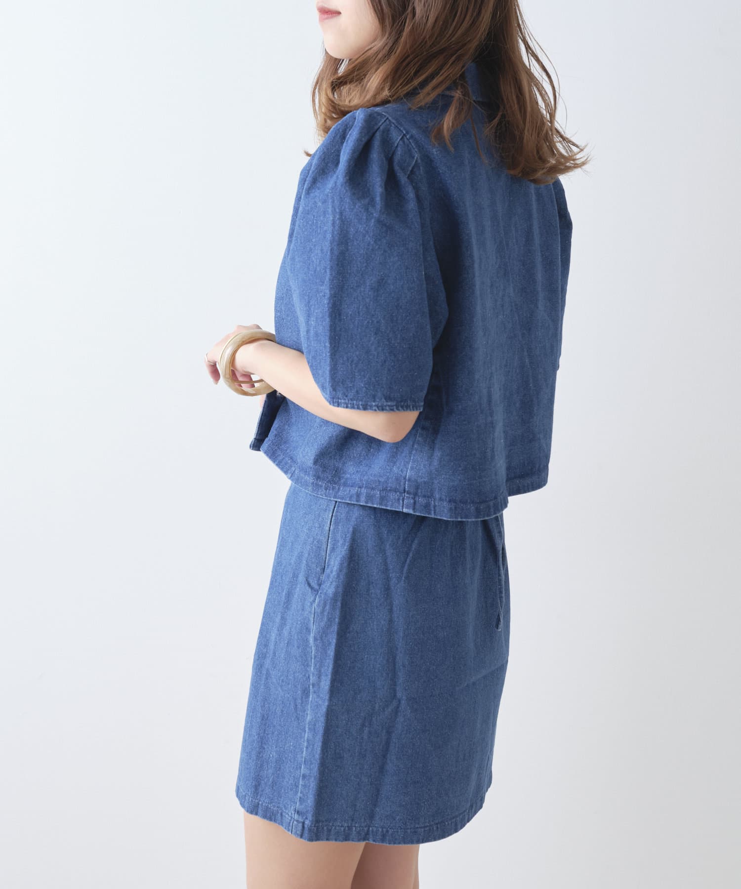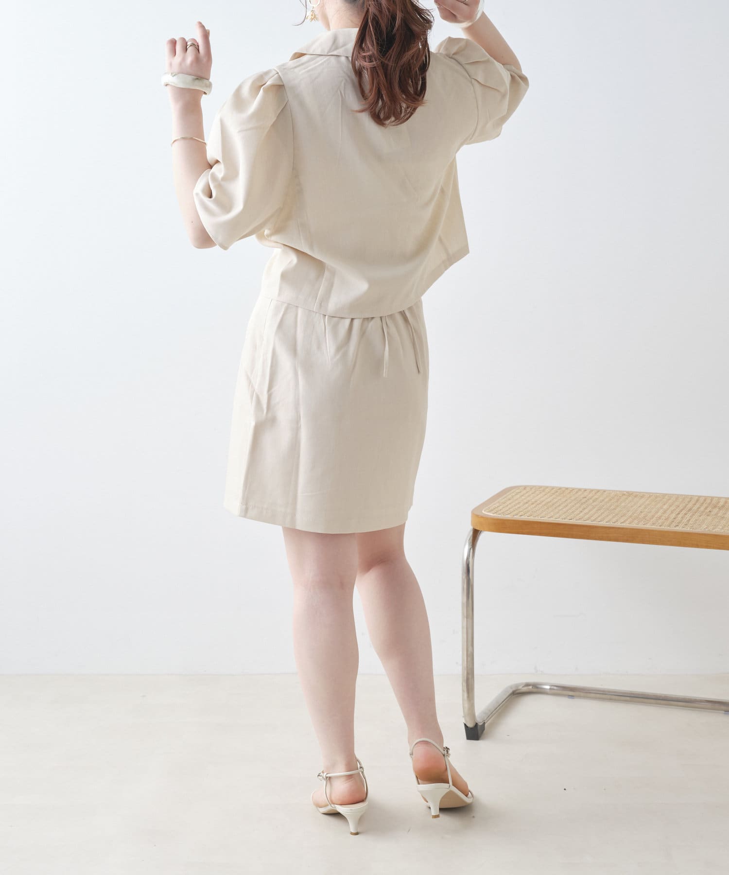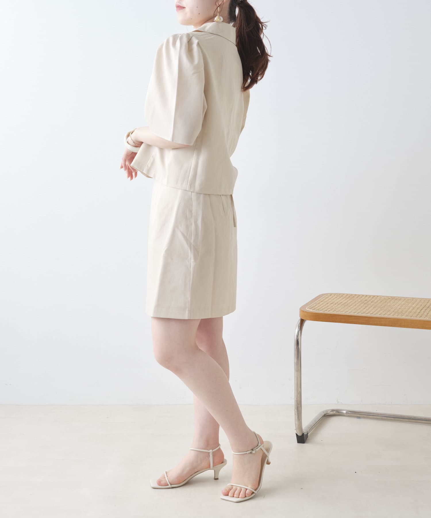 ・同型素材アイテムのSETUPもおすすめですが、お手持ちのトップスと合わせられるのもおすすめポイント。