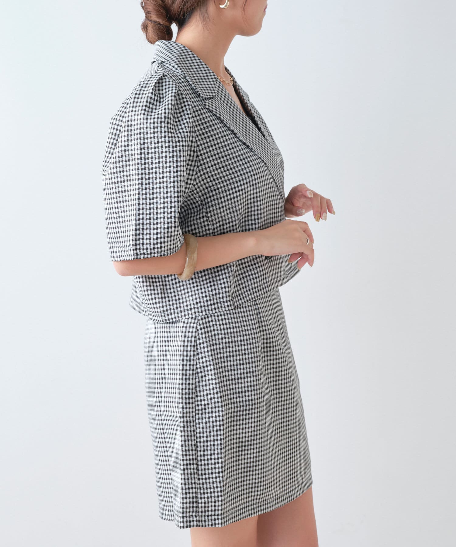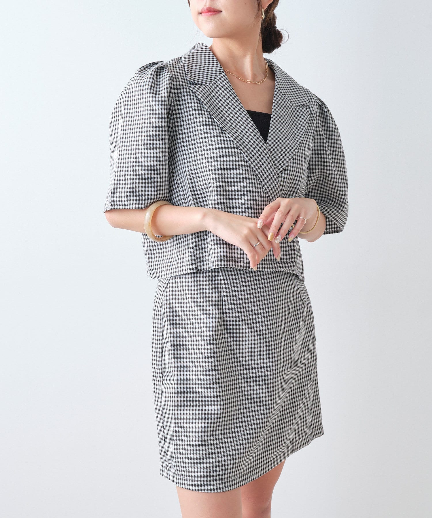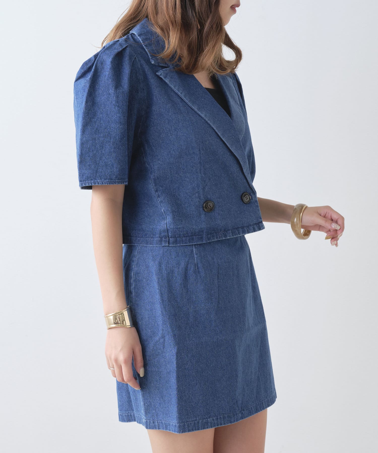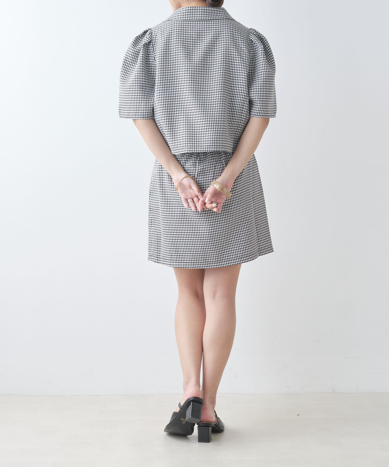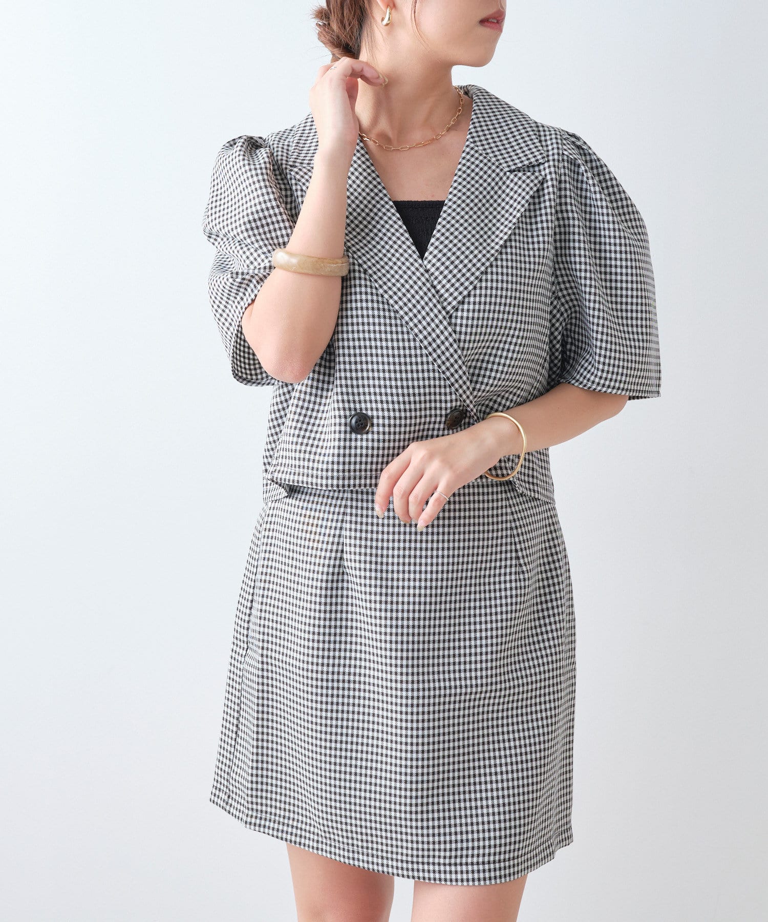 ・同型素材アイテムのSETUPもおすすめですが、お手持ちのトップスと合わせられるのもおすすめポイント。