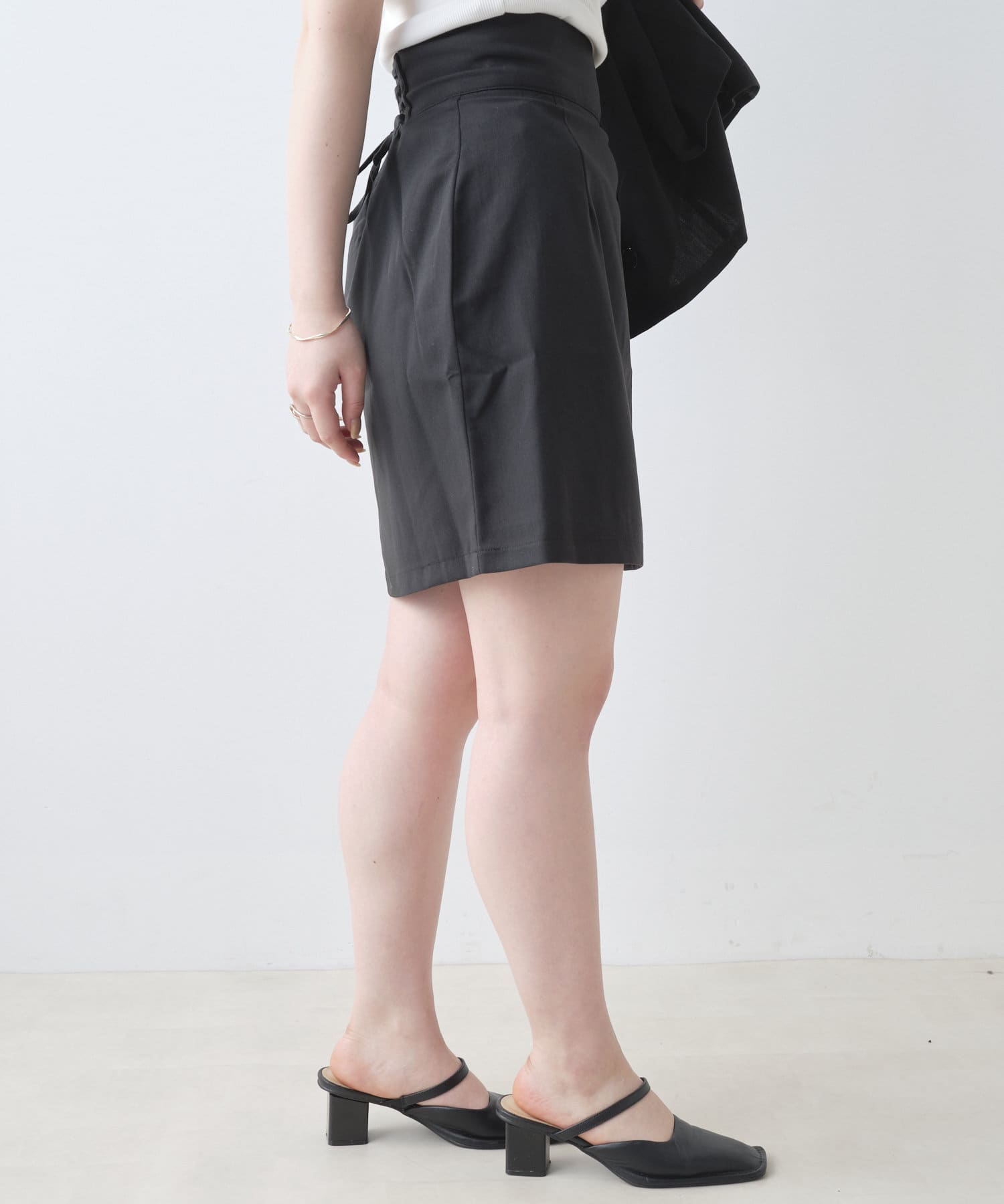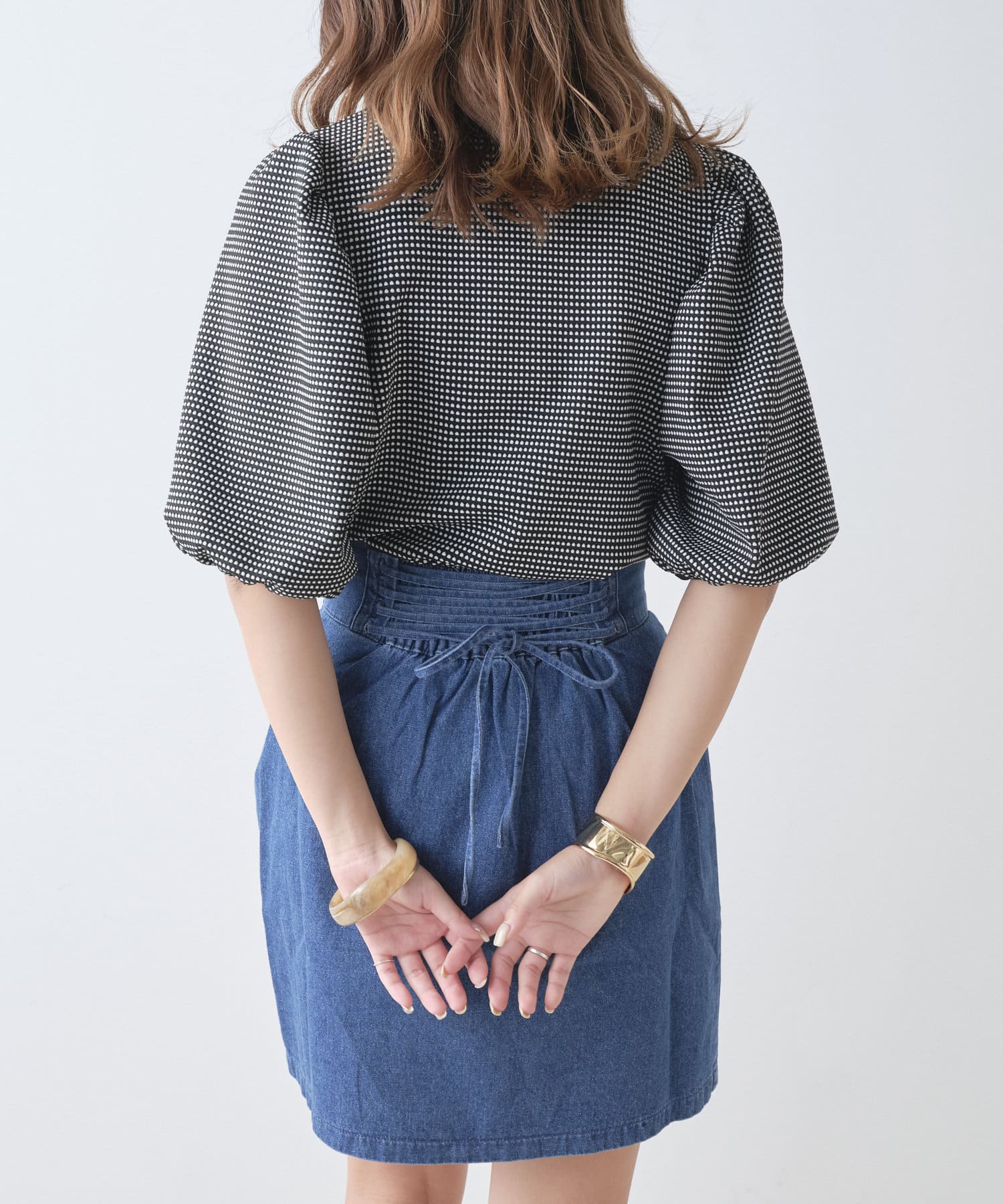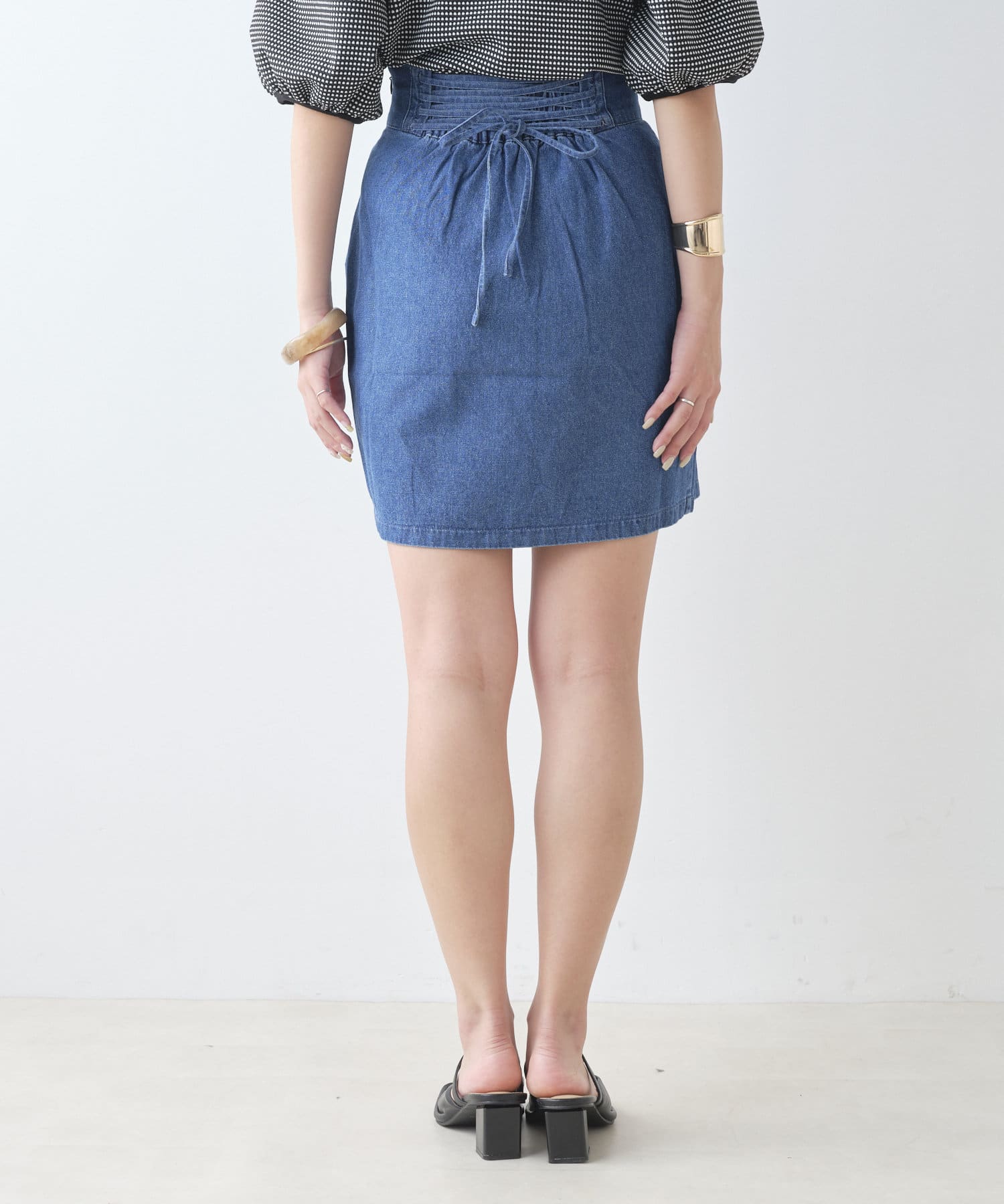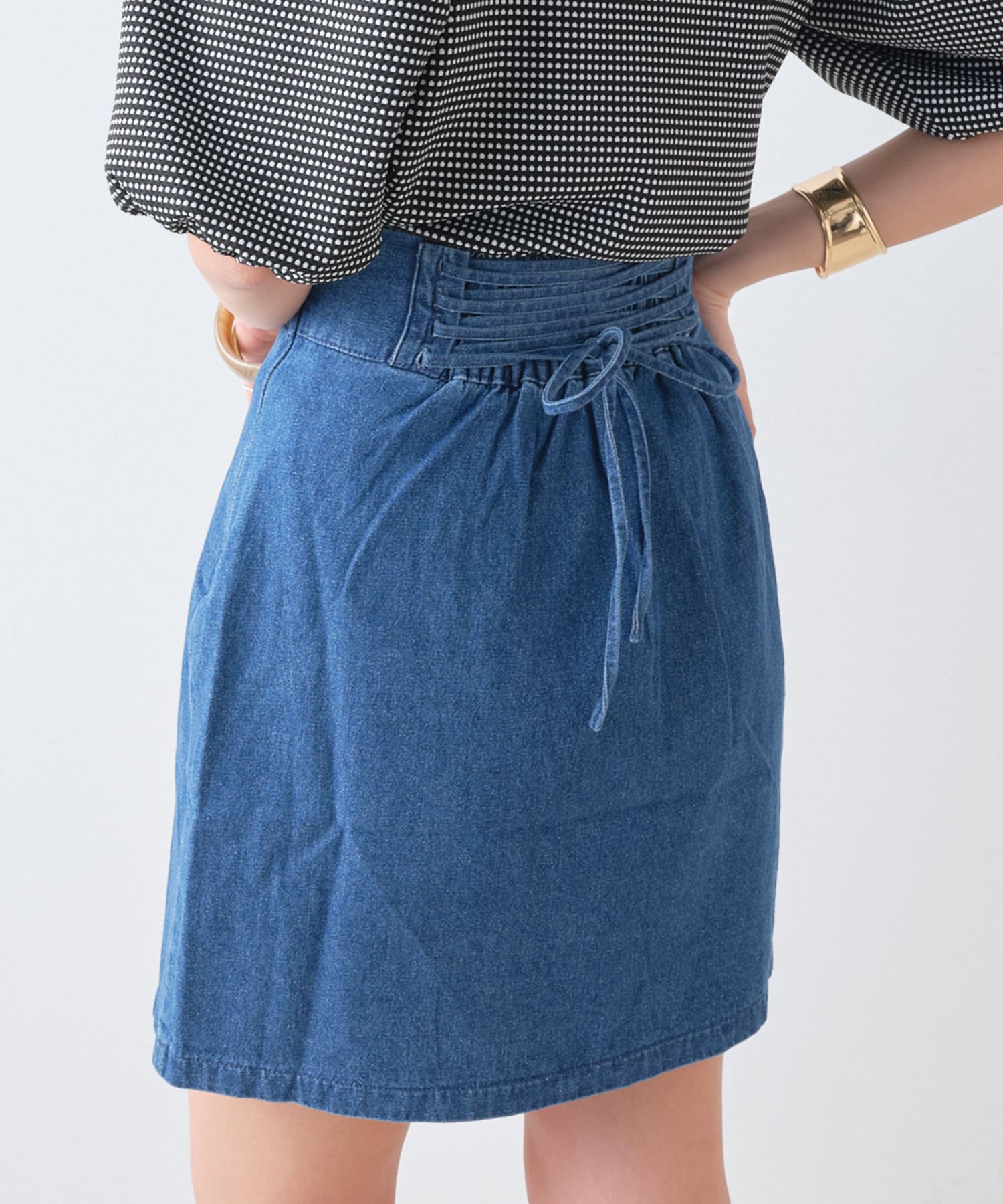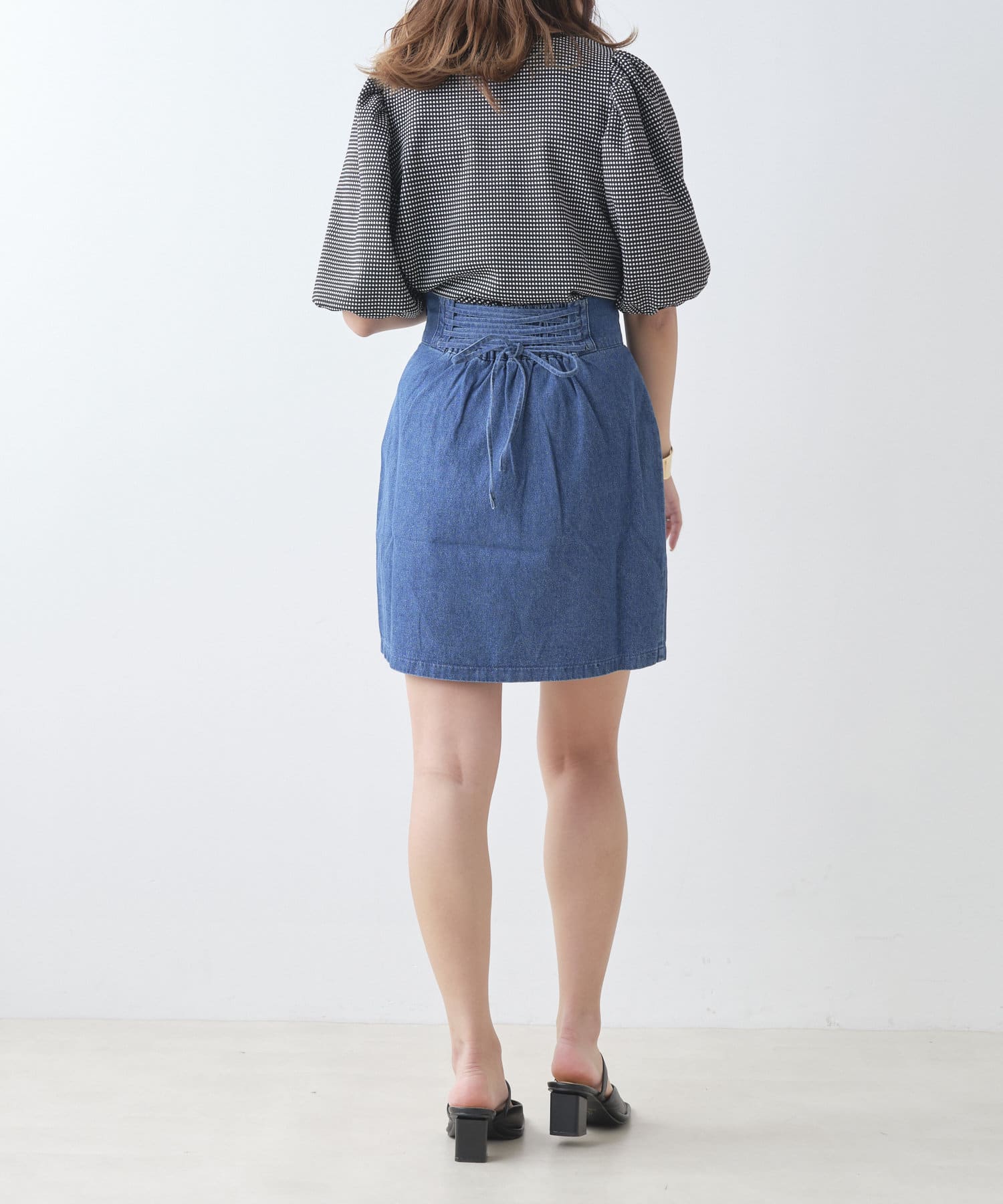 ・バックのレースアップデザインが女性らしく、トップスインで旬なスタイリングが決まります。