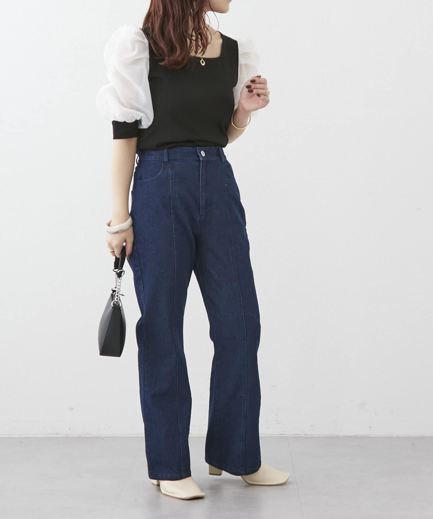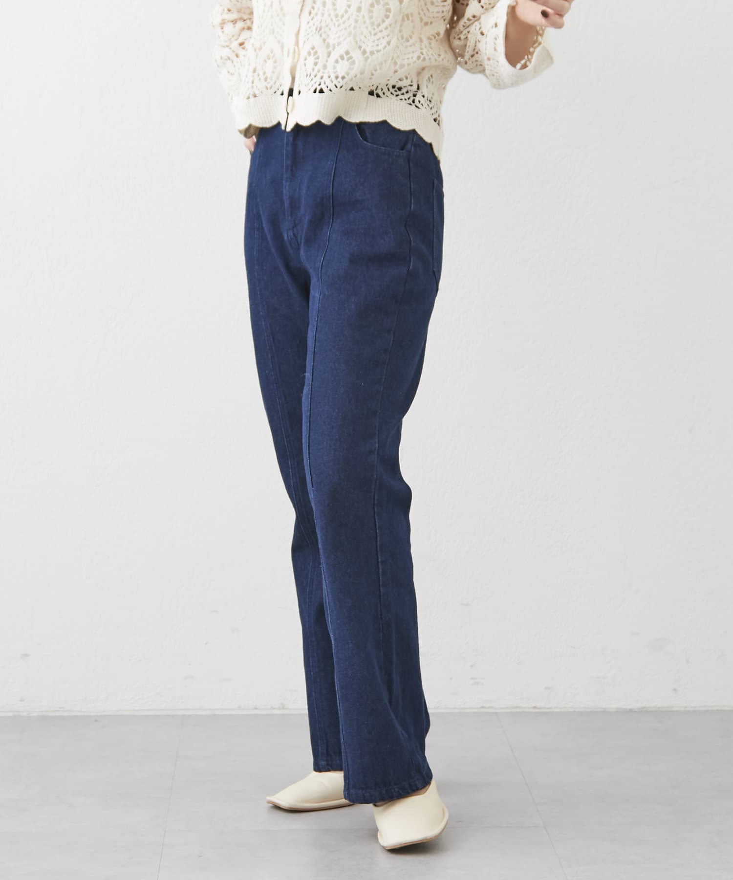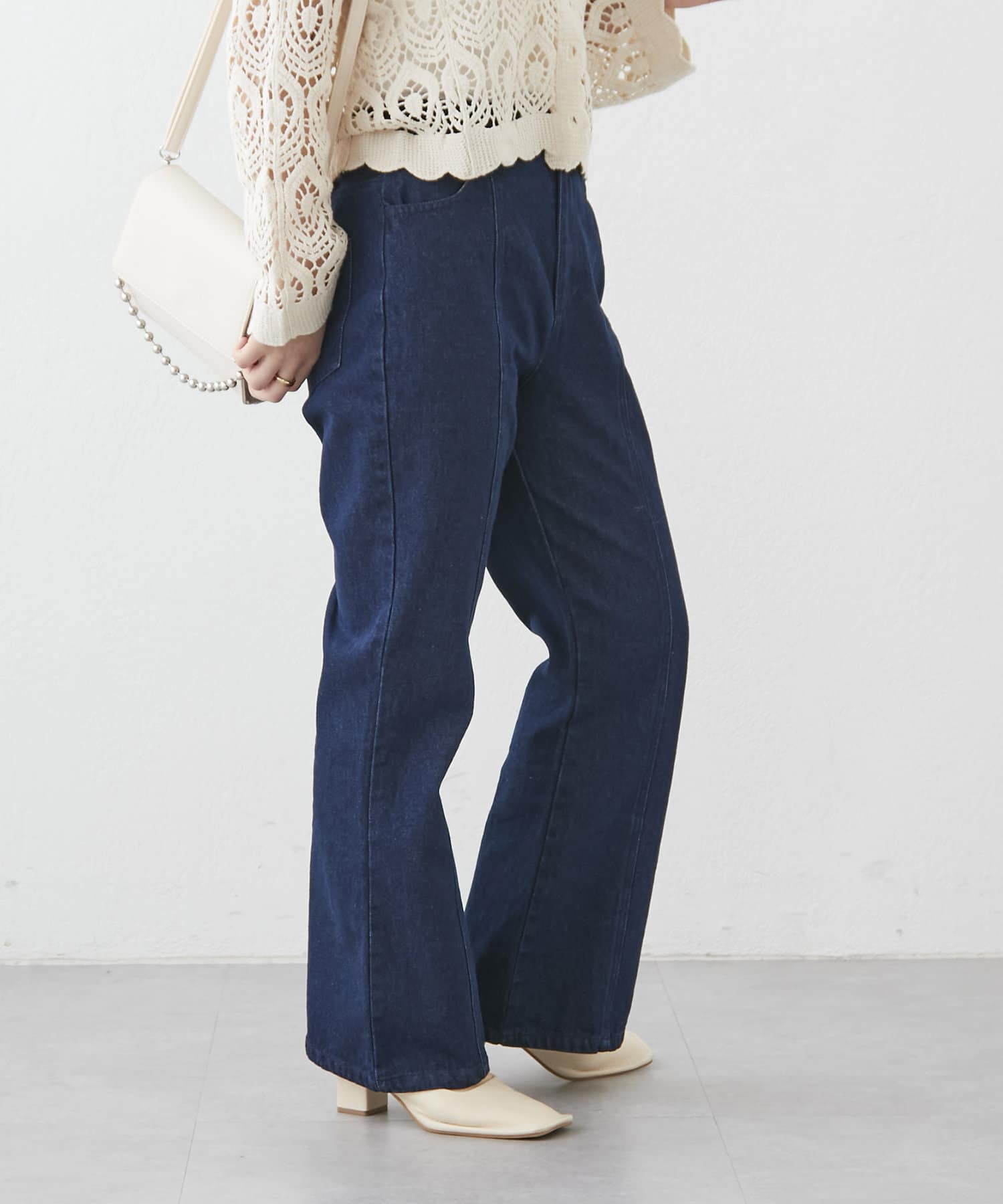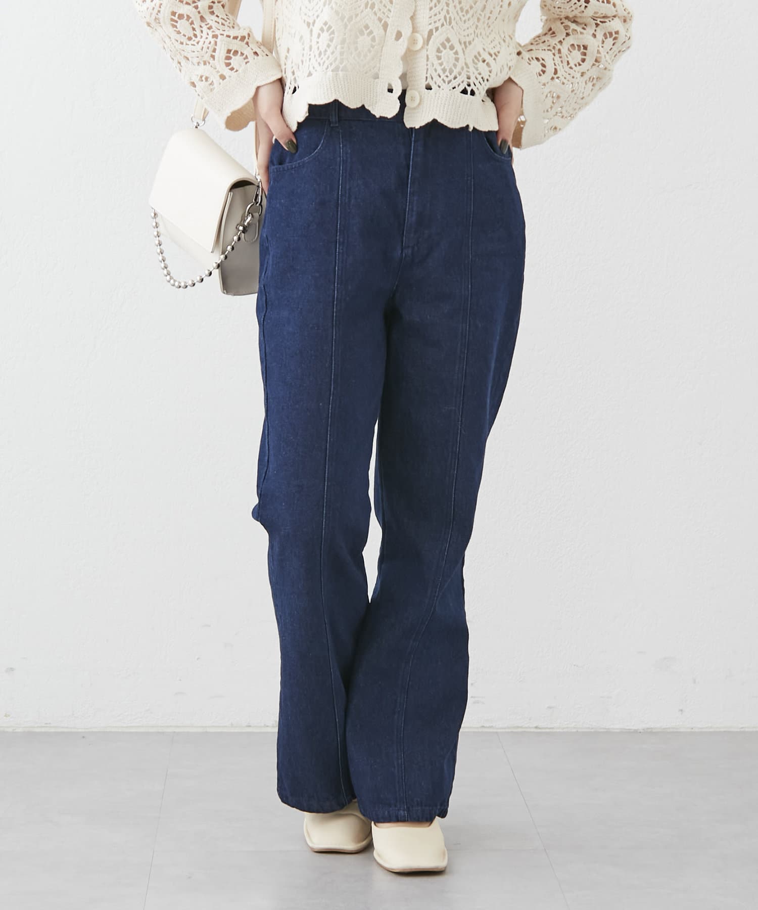 ・センターシームデザインが特徴的な美脚デニムパンツ