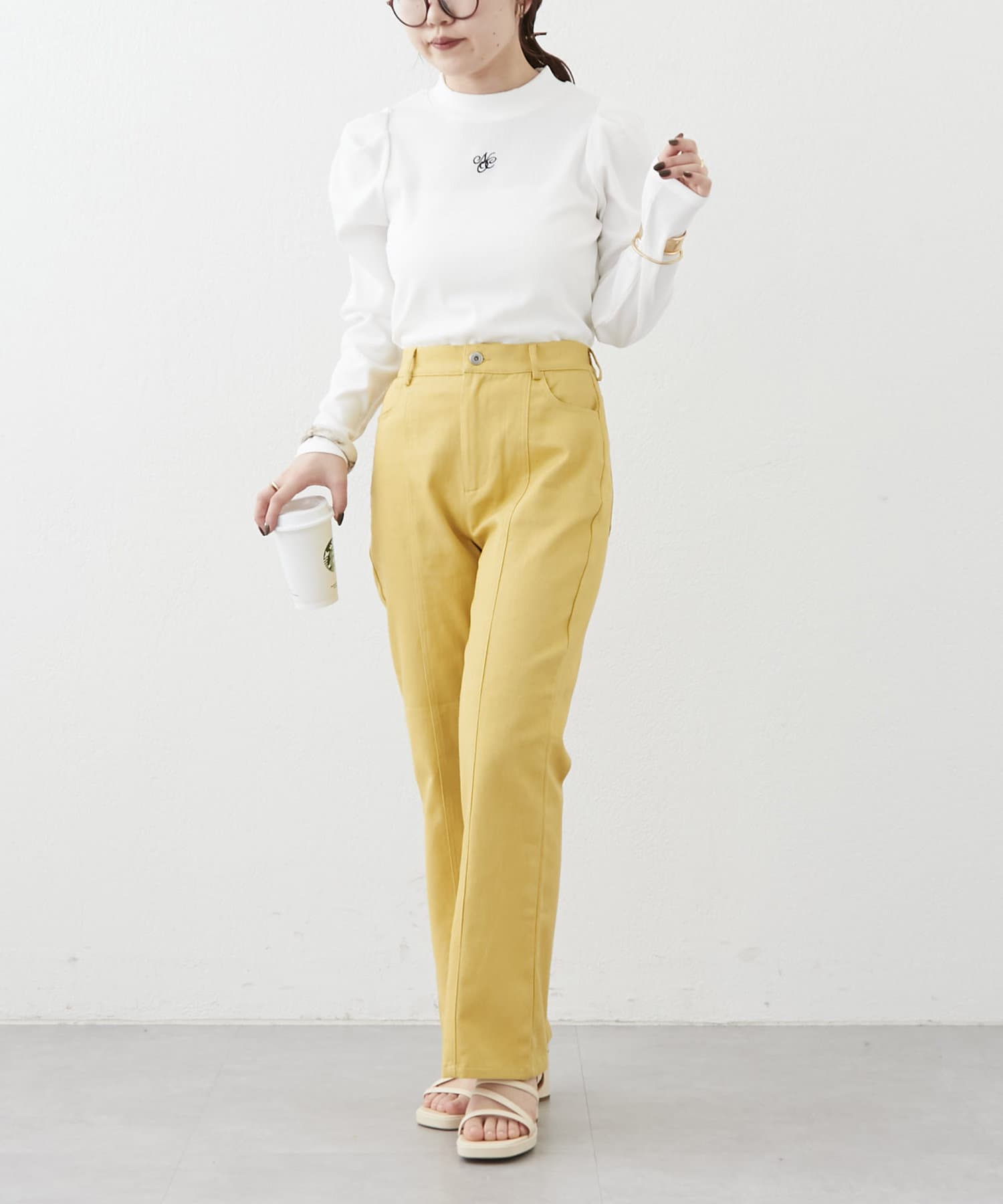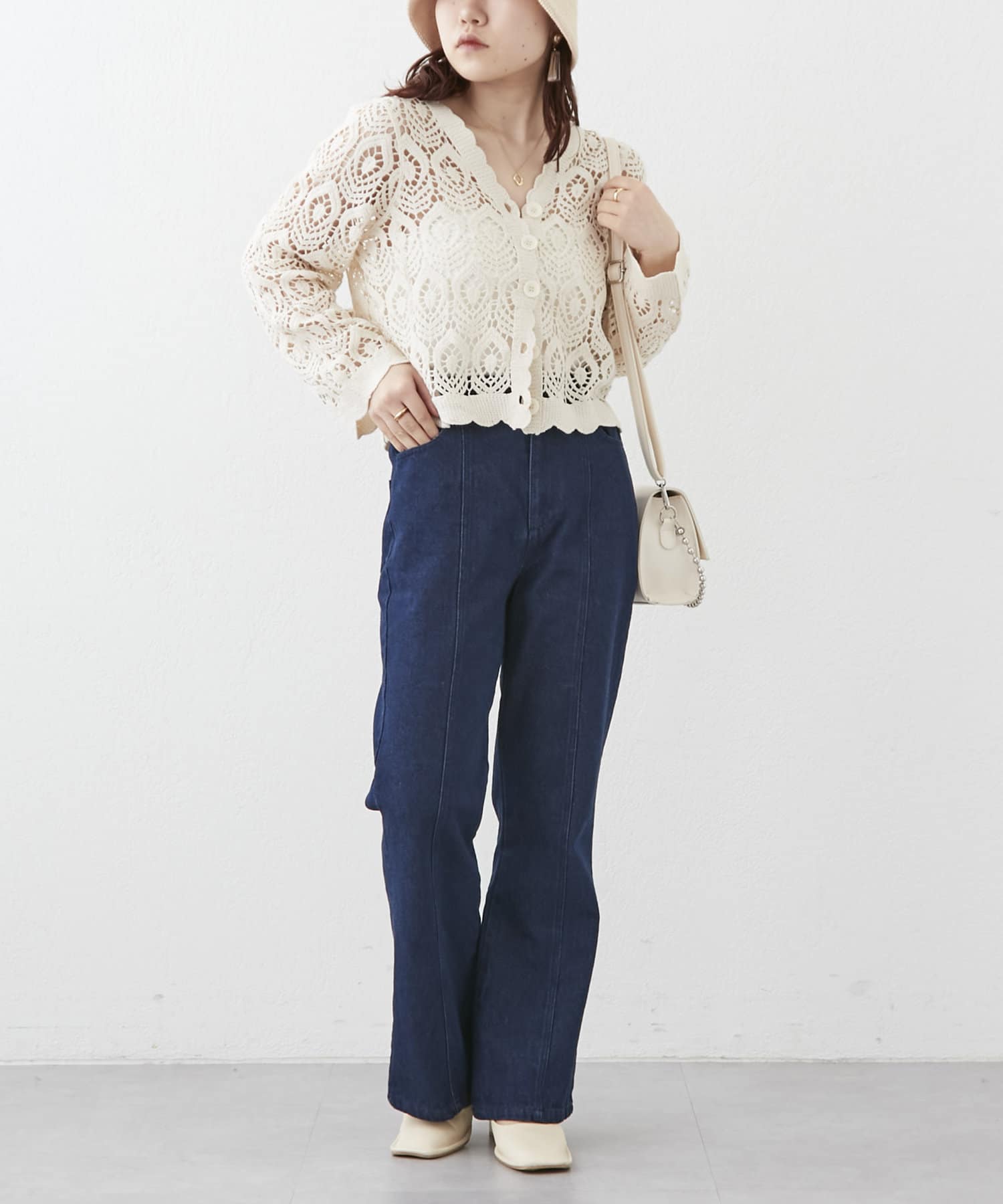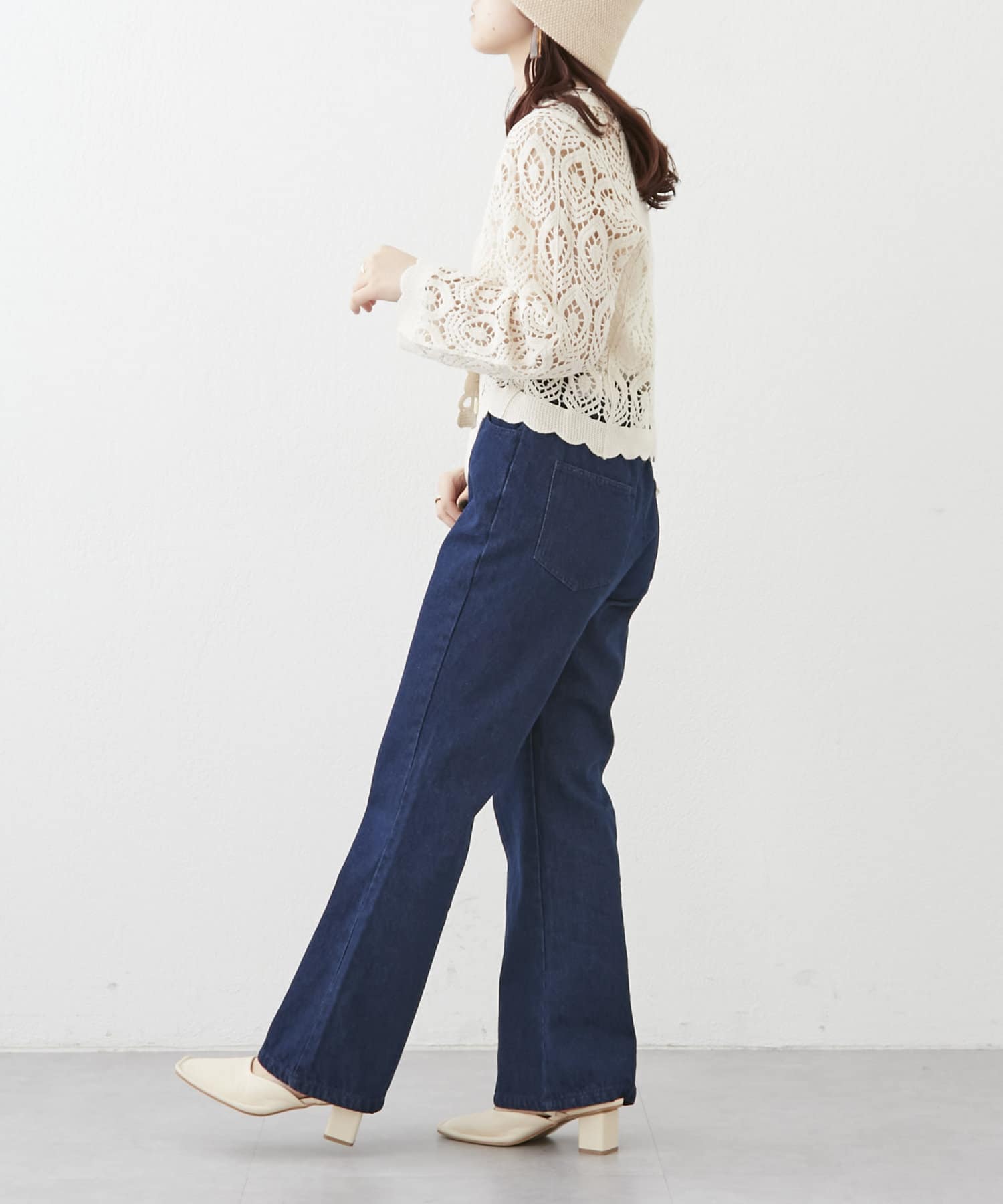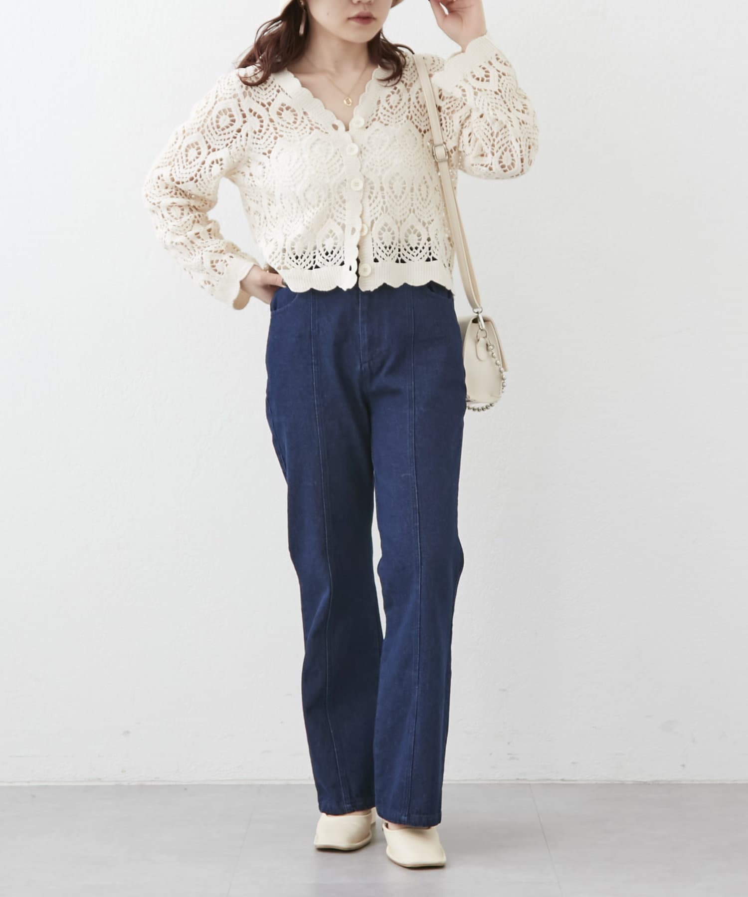 ・センターシームデザインが特徴的な美脚デニムパンツ