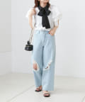 ・ツイードミニスカートで合わせればトレンドライクなコーデに。カジュアルなデニムとも相性良いです。