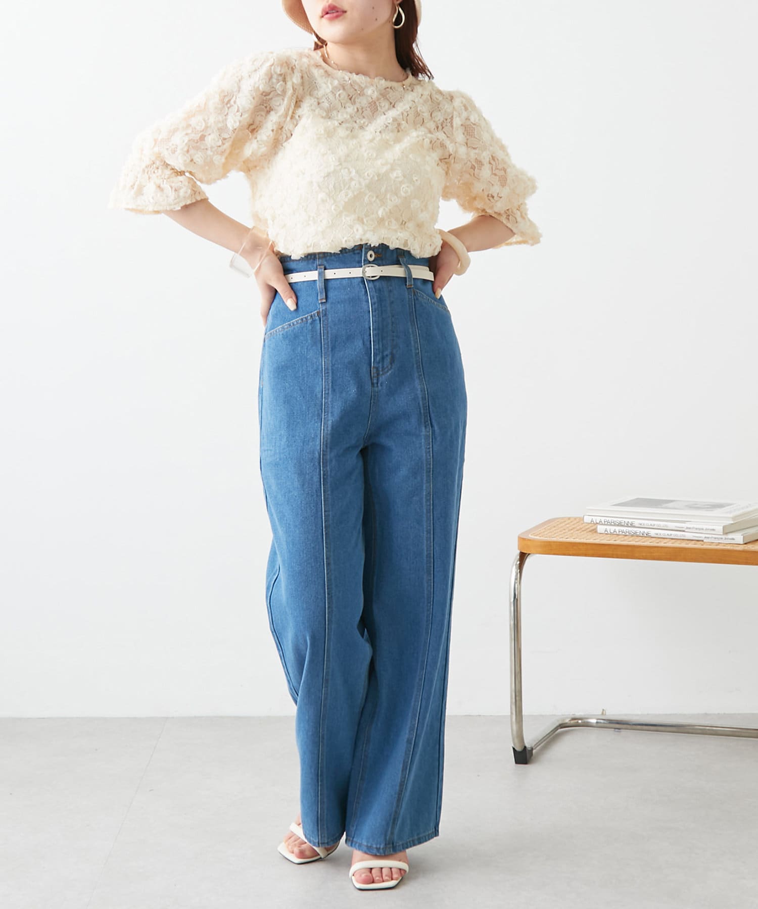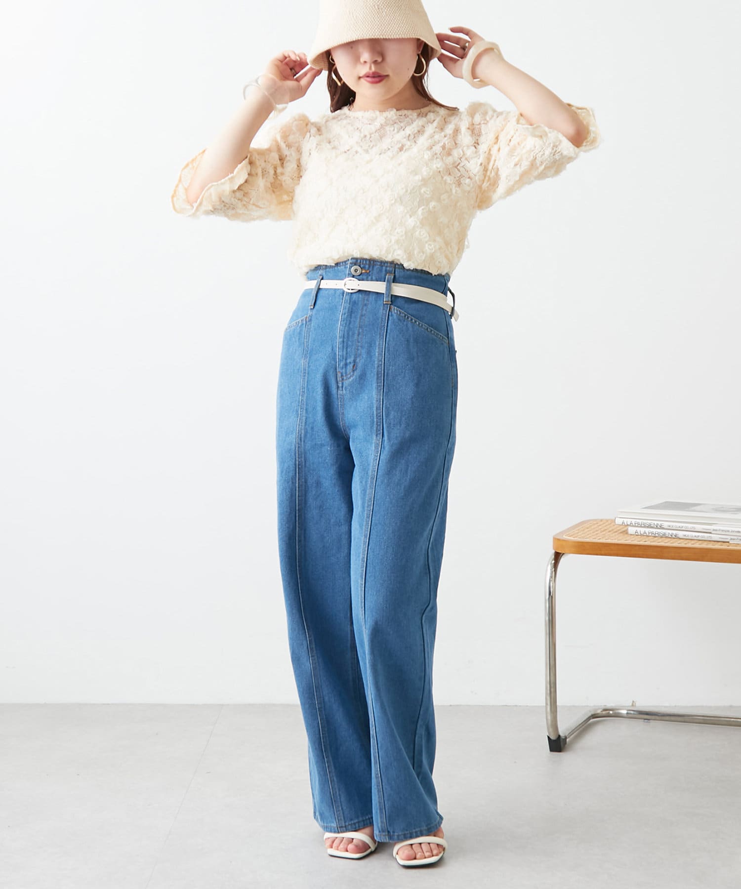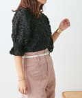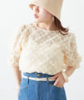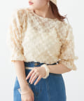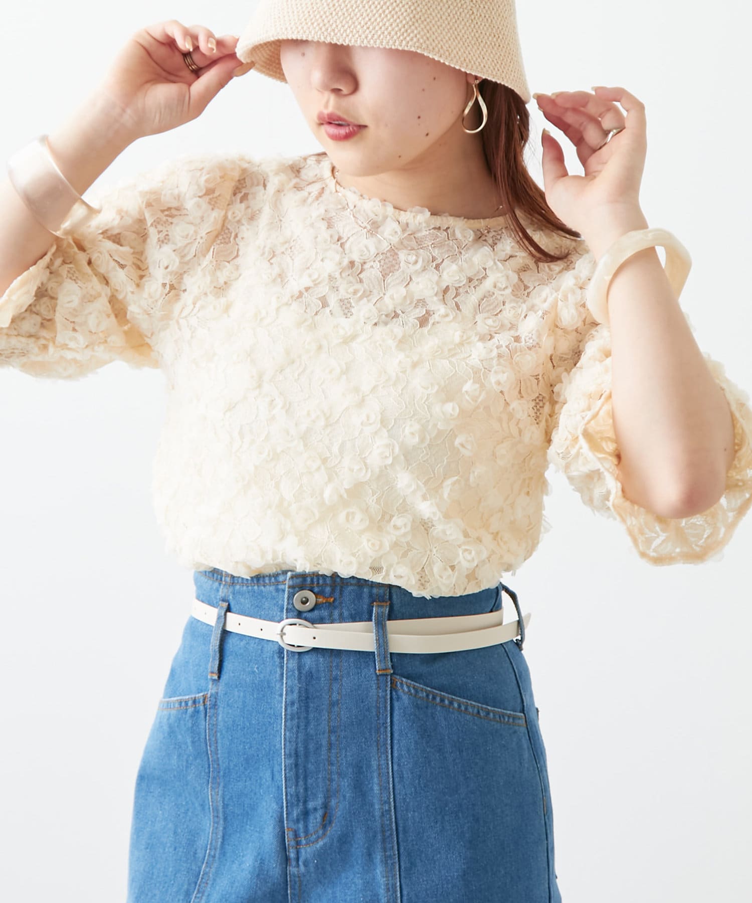・凹凸のあるレース素材でお作りした程よい透け感のあるブラウス。