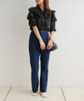 ・パンツを合わせて甘さを抑えたコーディネートがおすすめ