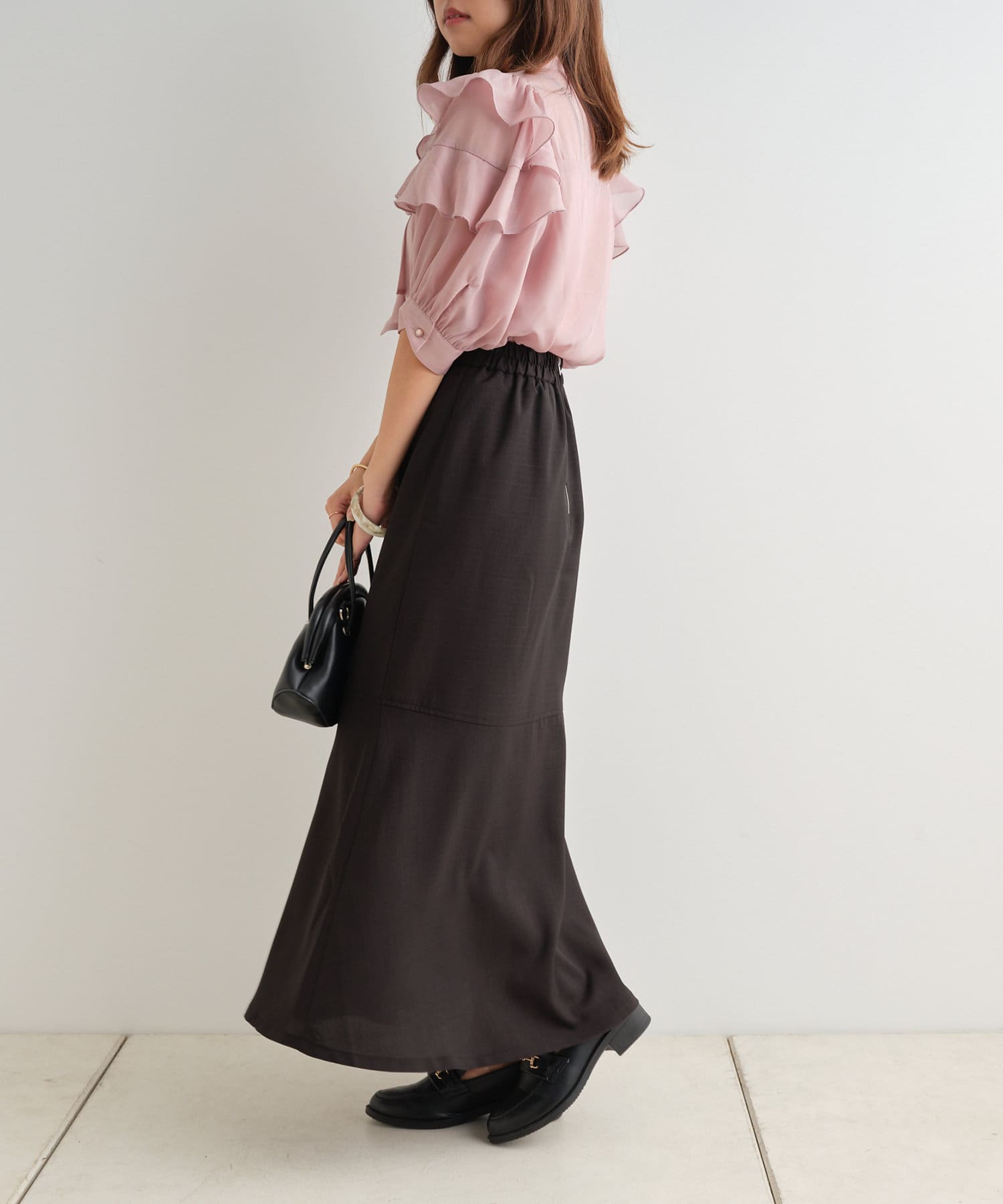 ・甘めな気分の時にはマーメイドスカートやミニ丈のボトムを合わせて大人フェミニンなコーディネートも