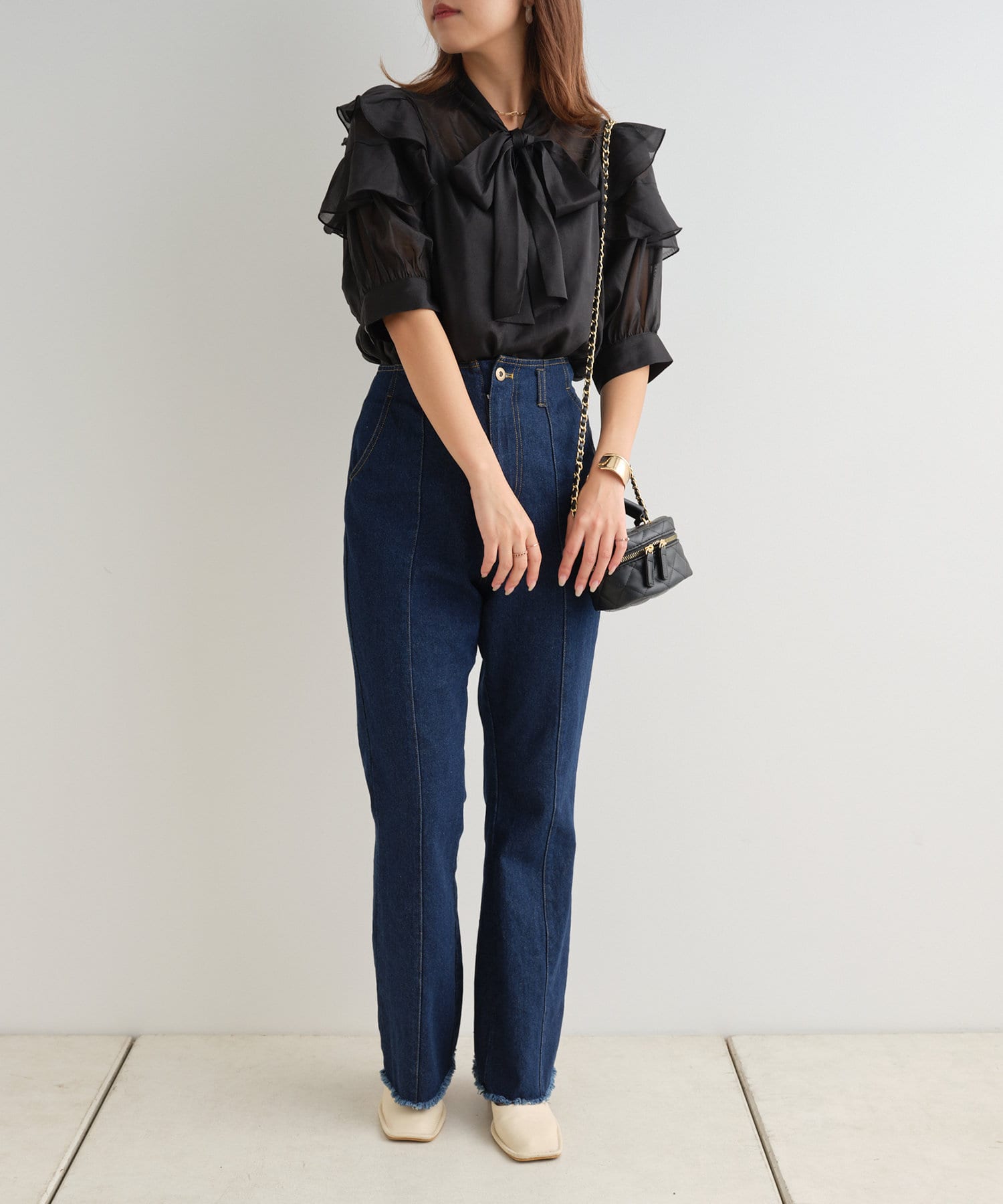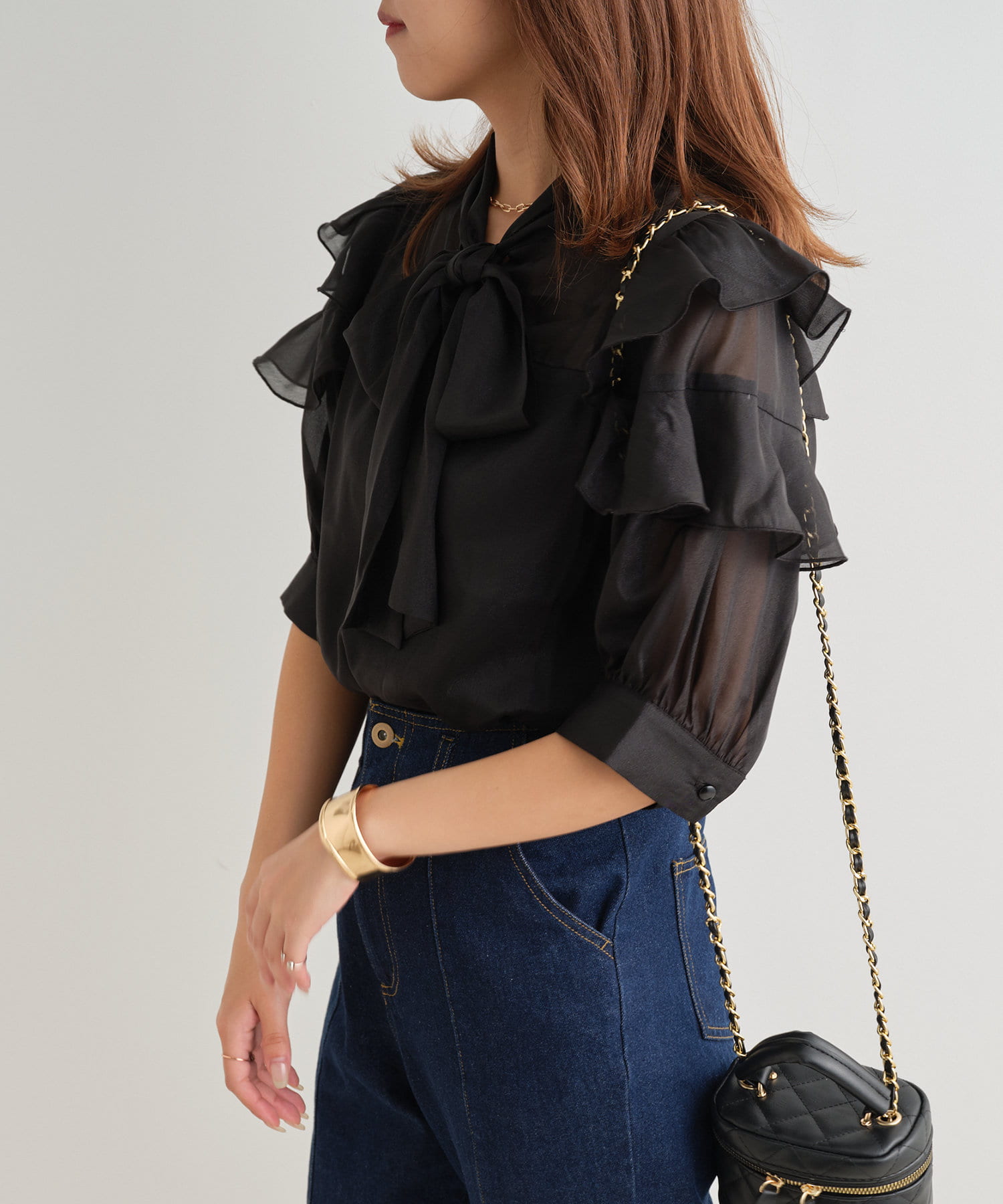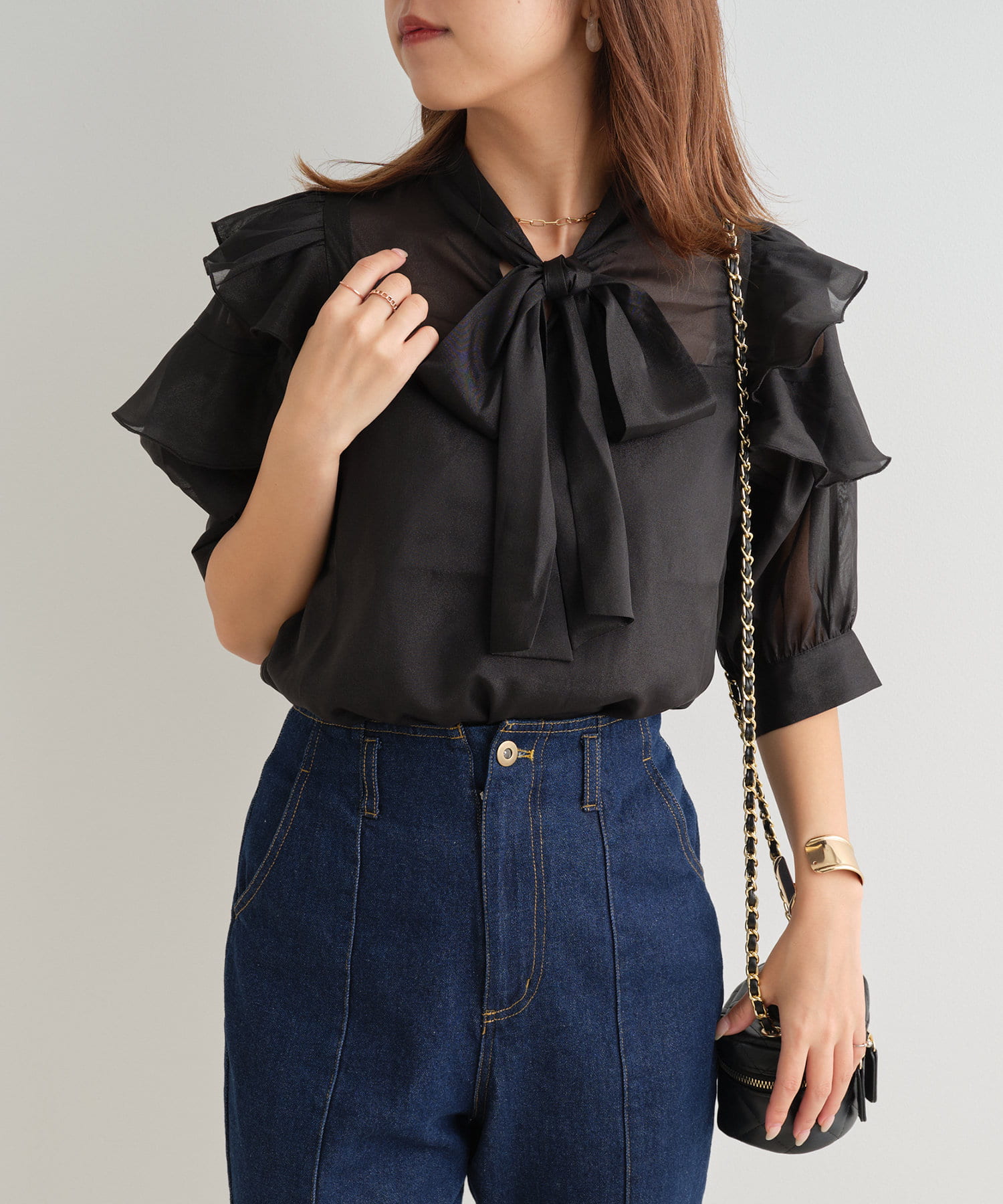 シアーボウタイブラウス