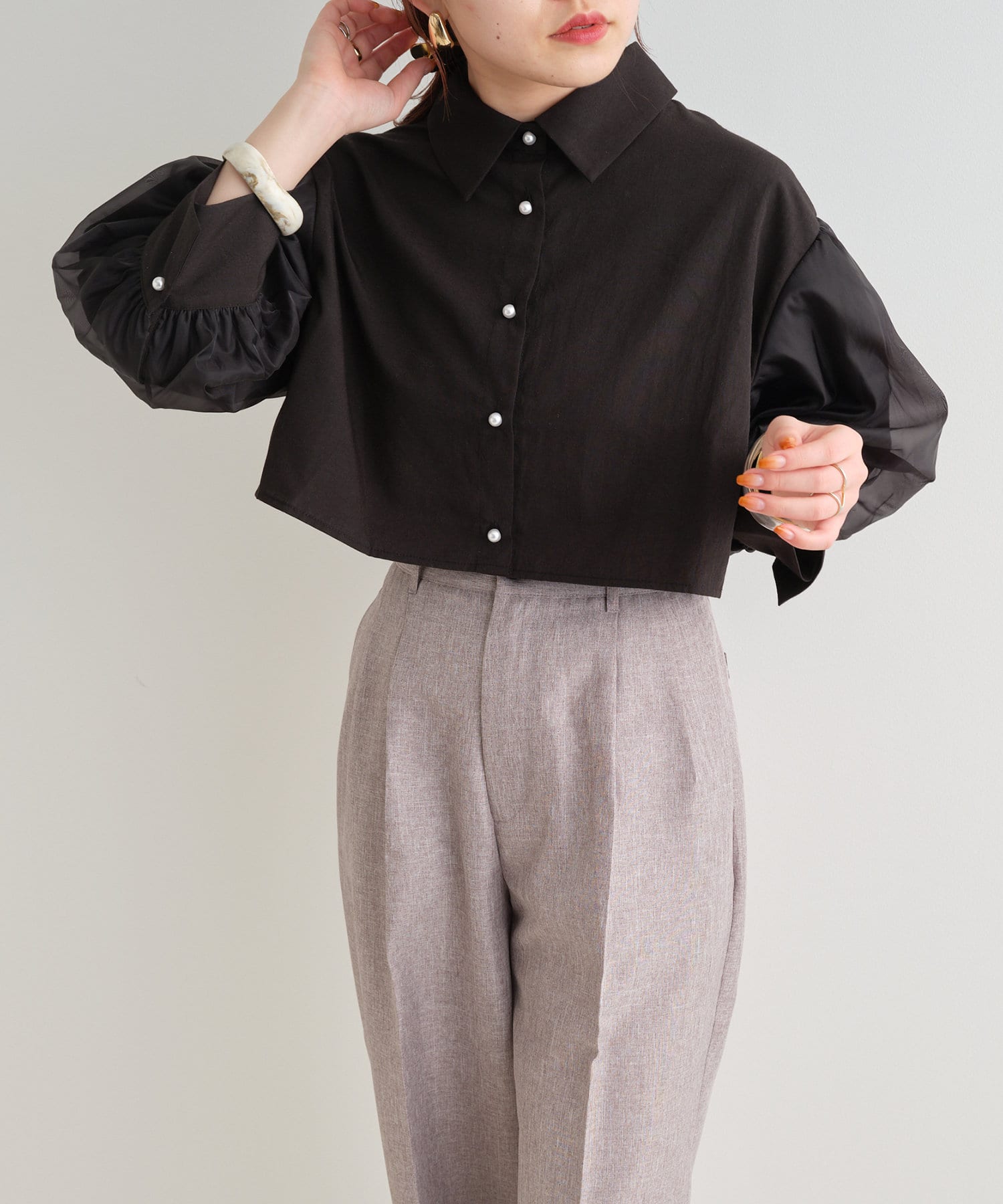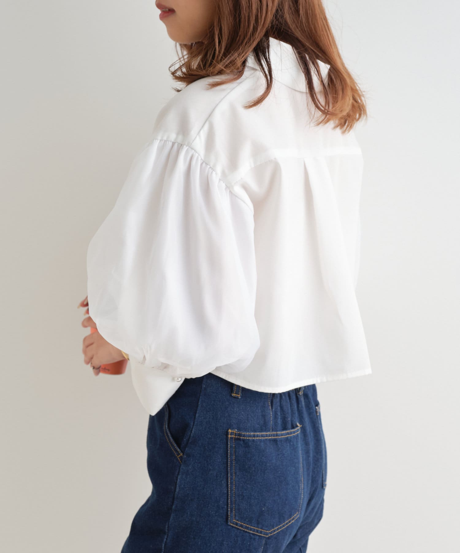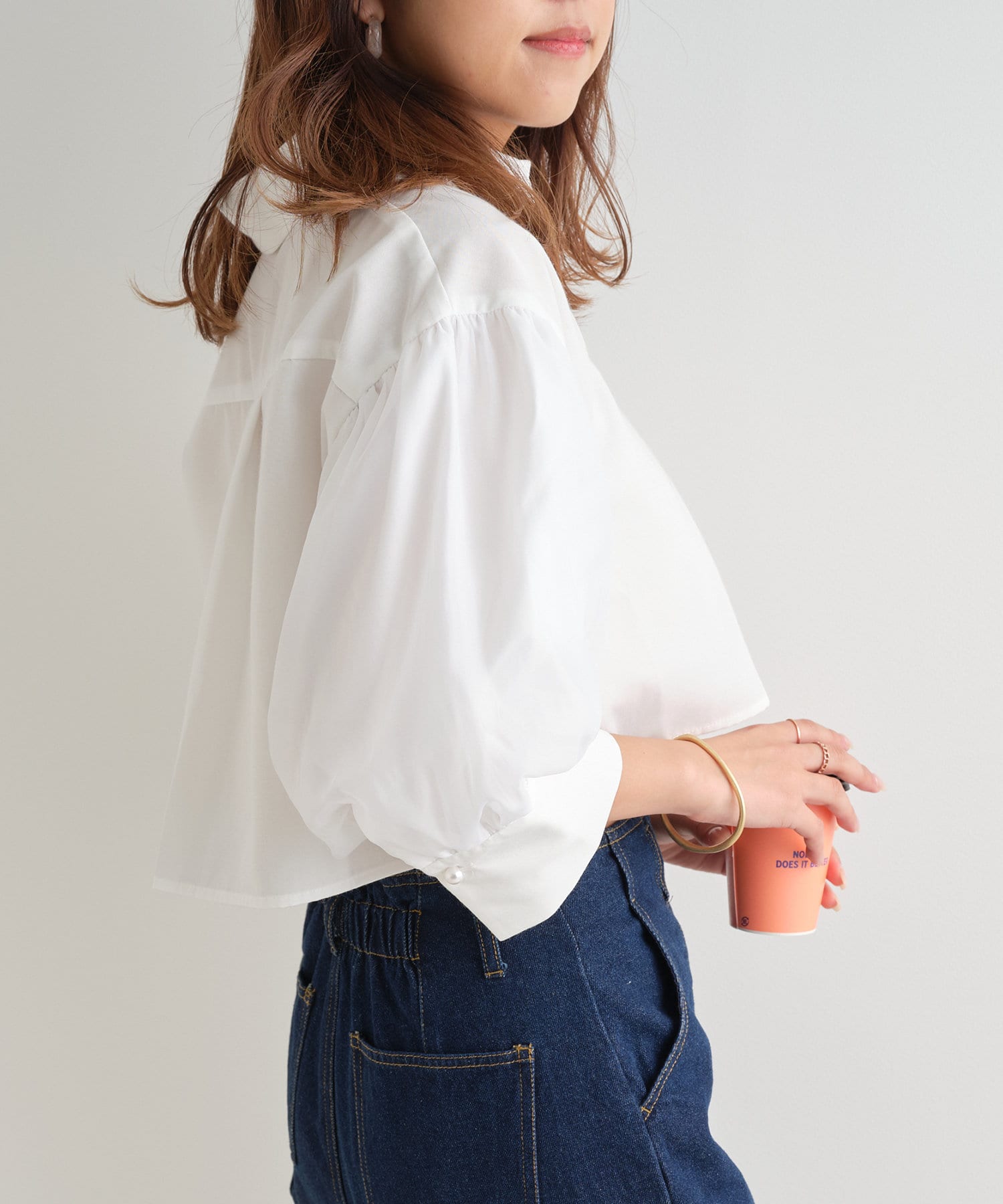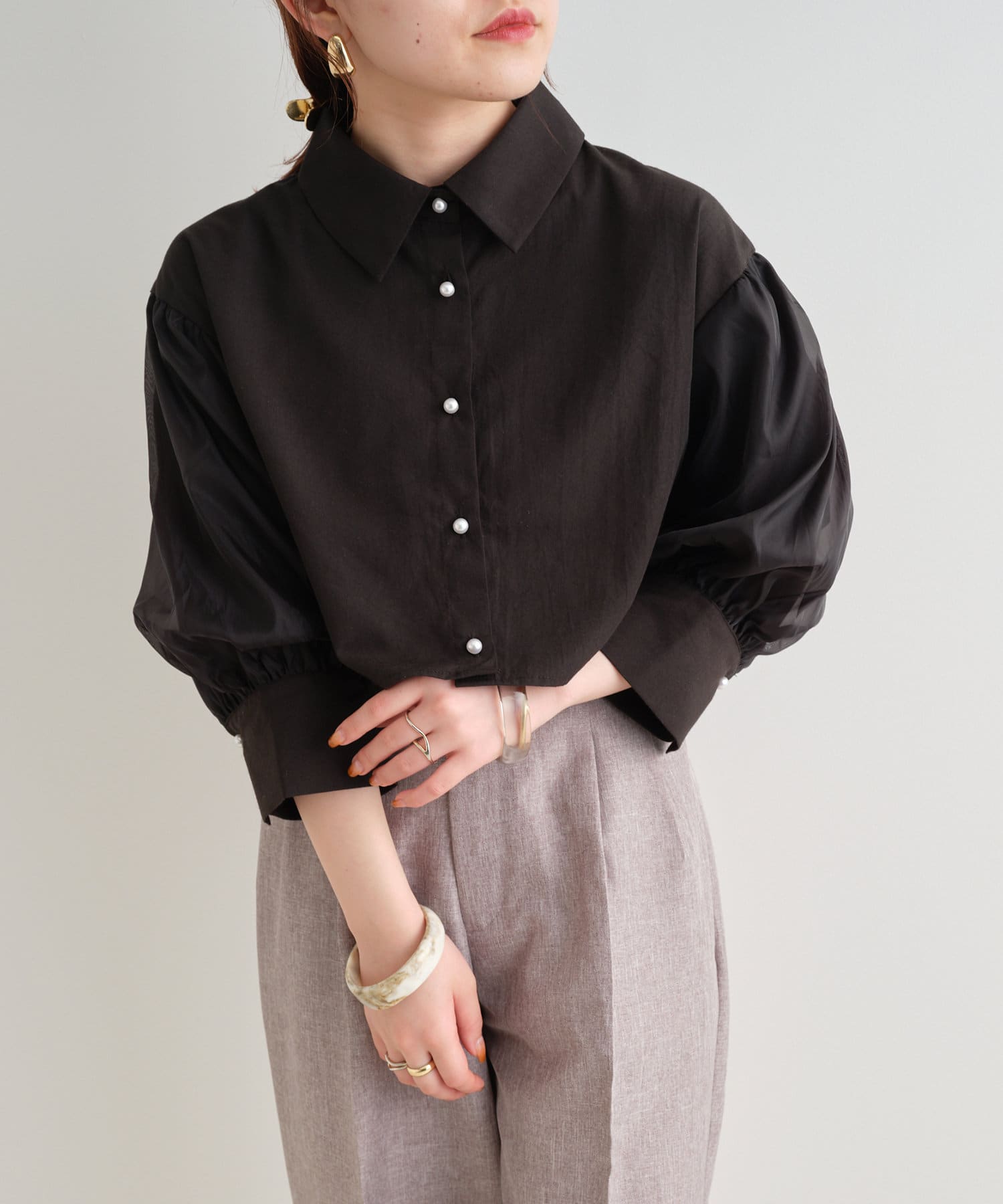 ・袖に透け感のある素材を使用した女性らしいブラウス