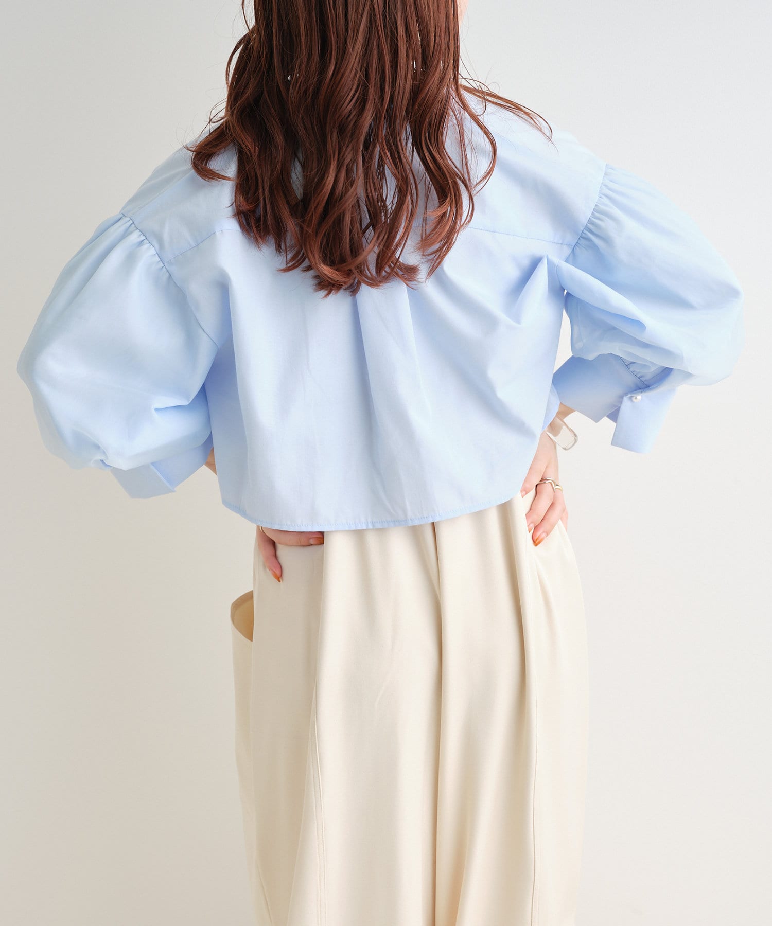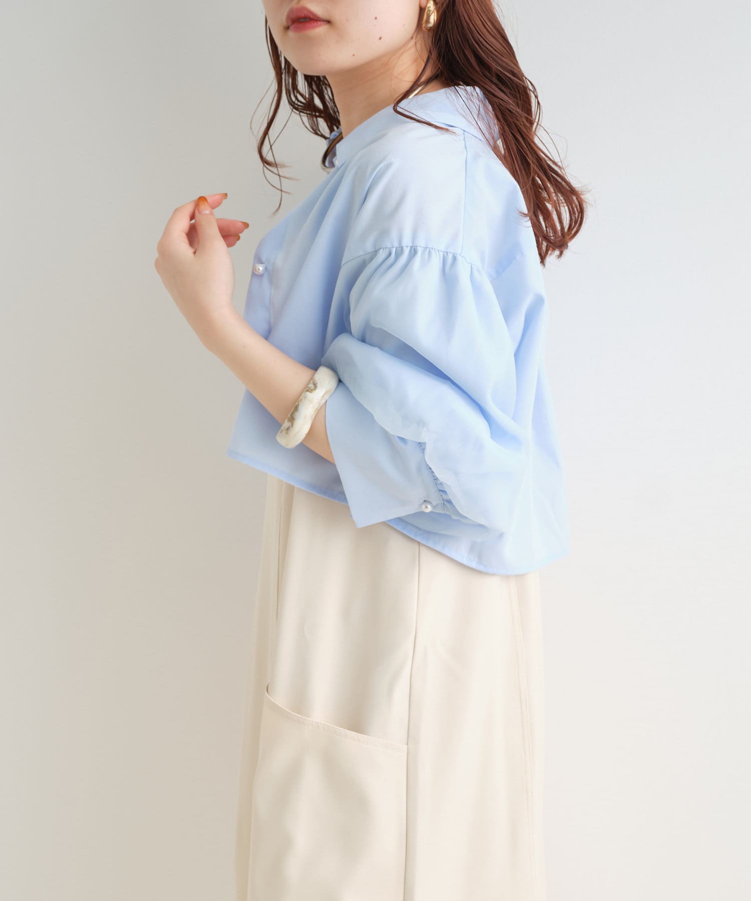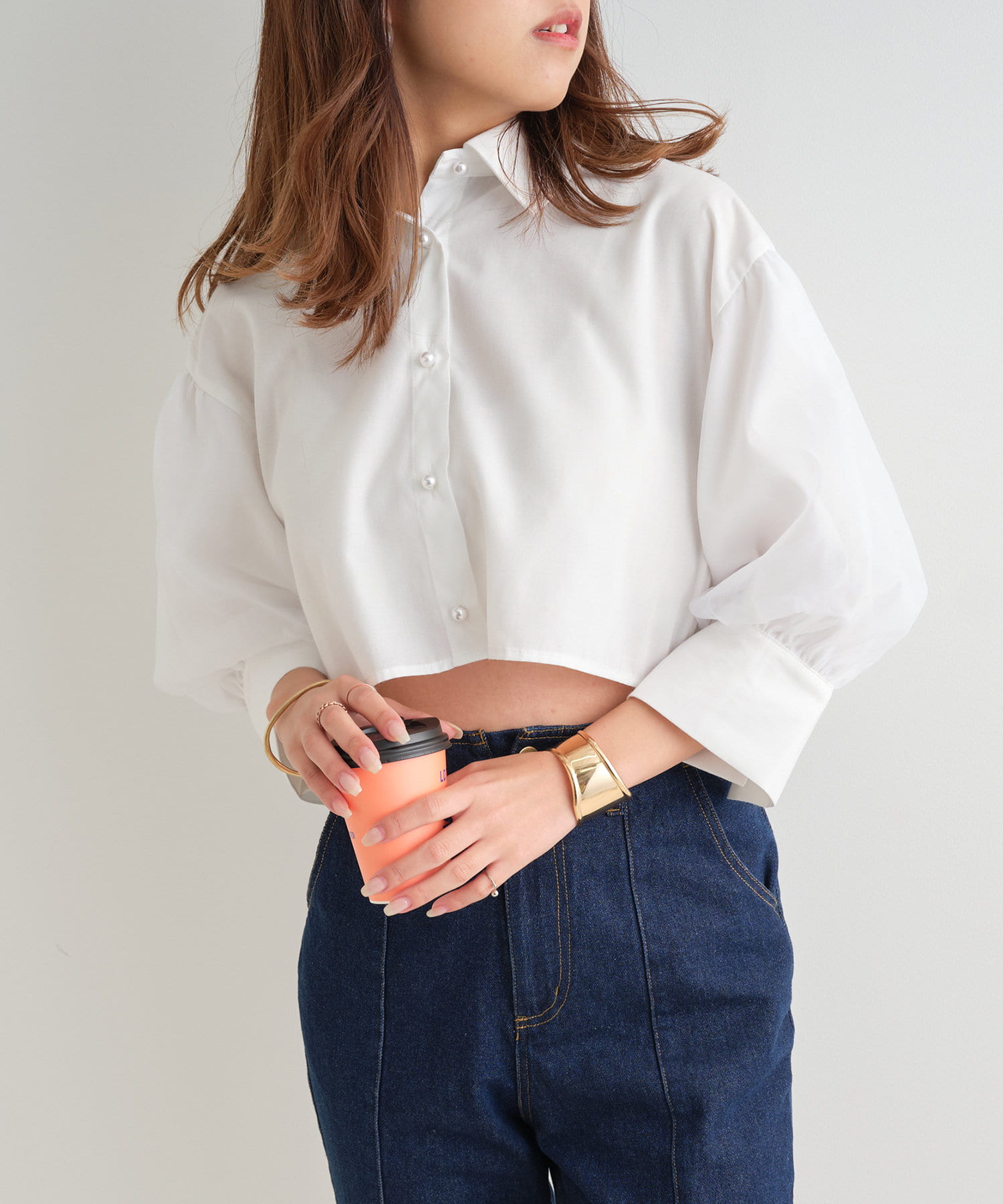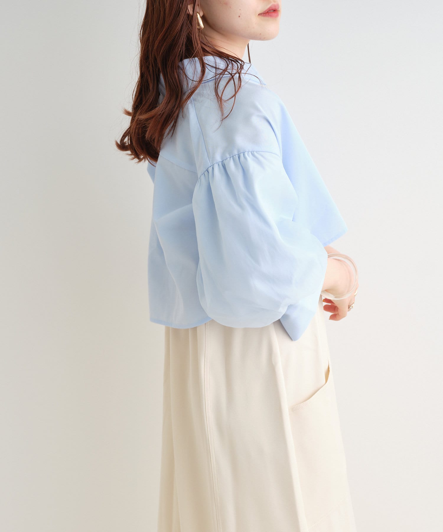 ・袖に透け感のある素材を使用した女性らしいブラウス