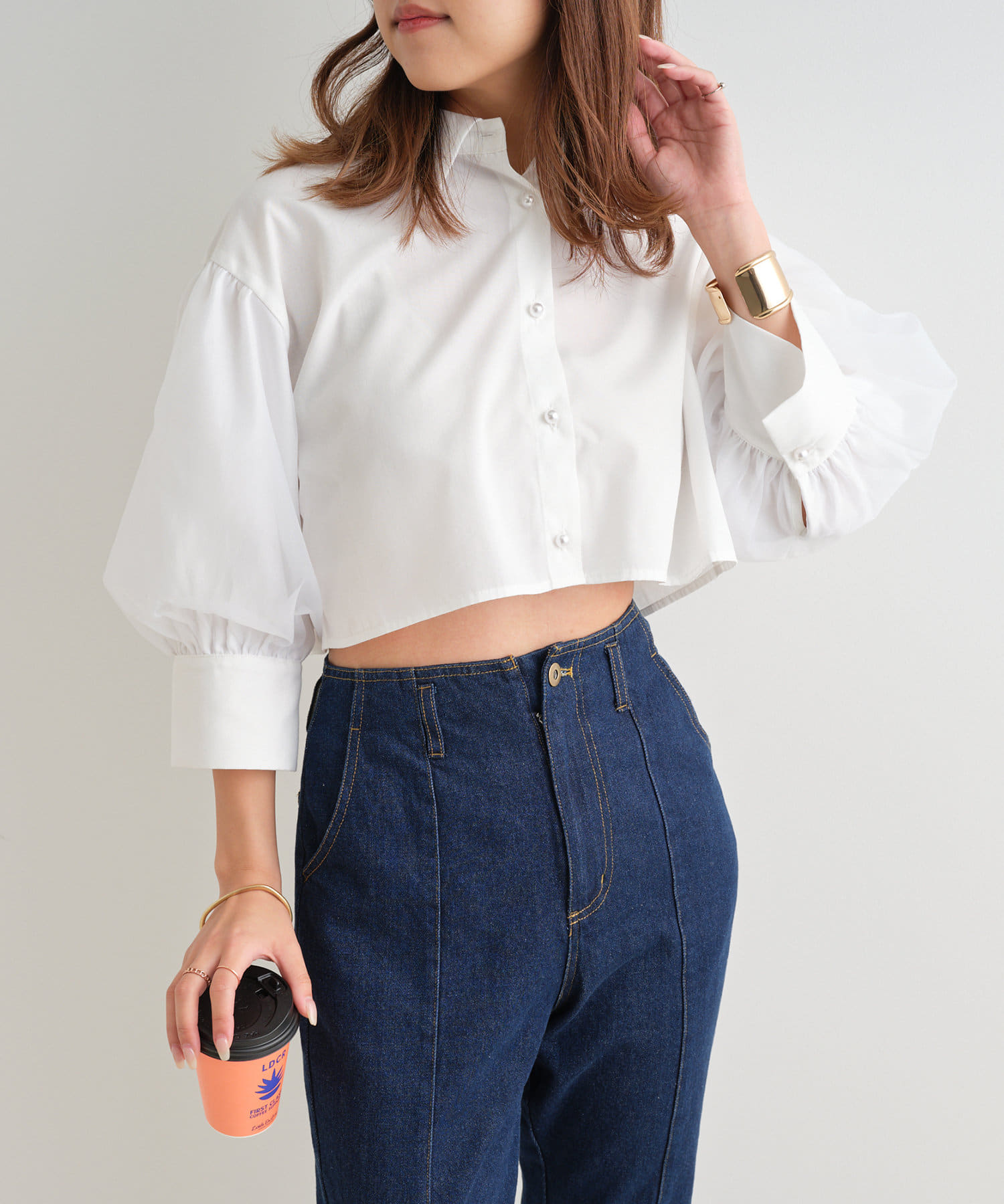 ・ショート丈なのでハイウエストボトムとの相性が抜群