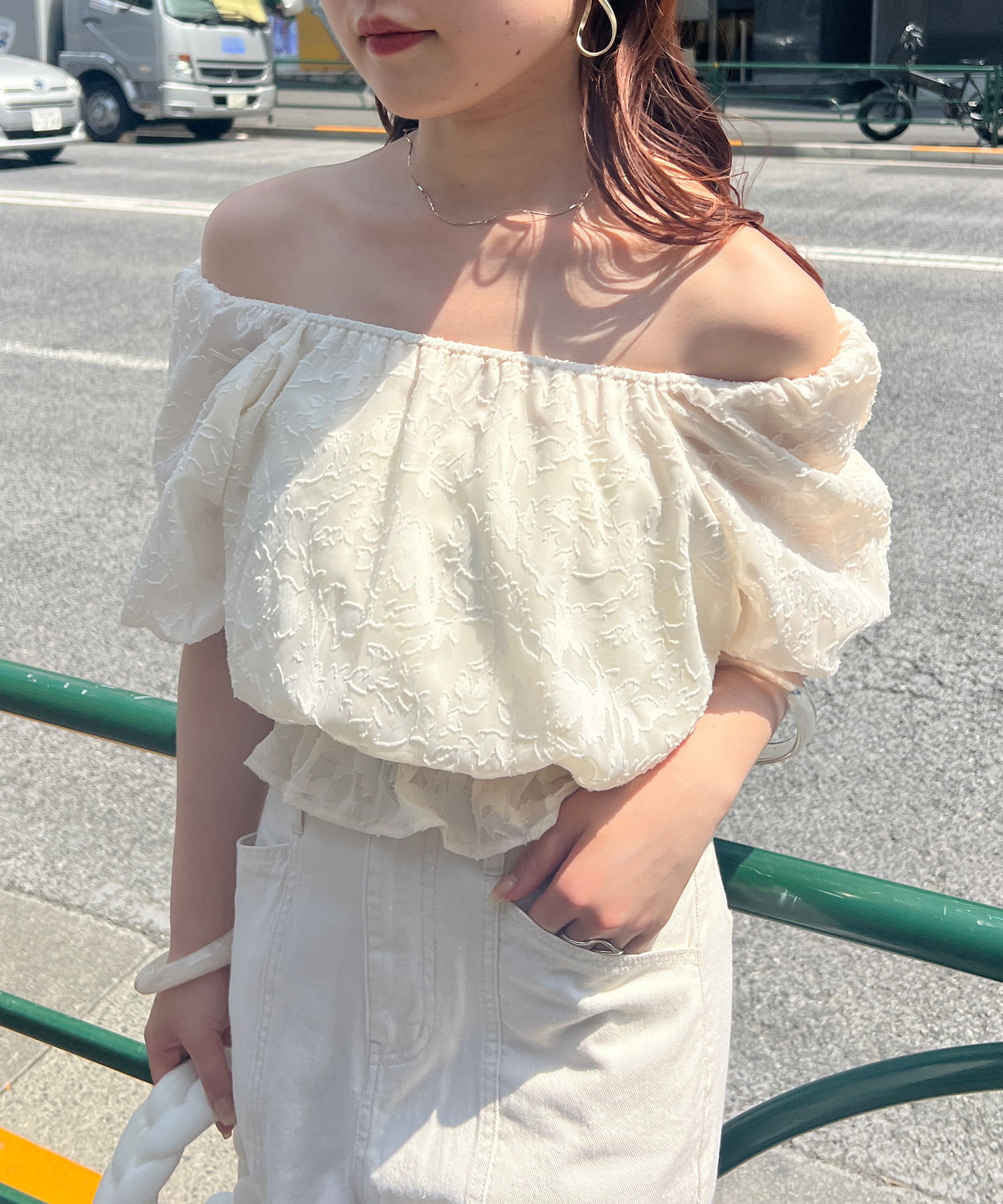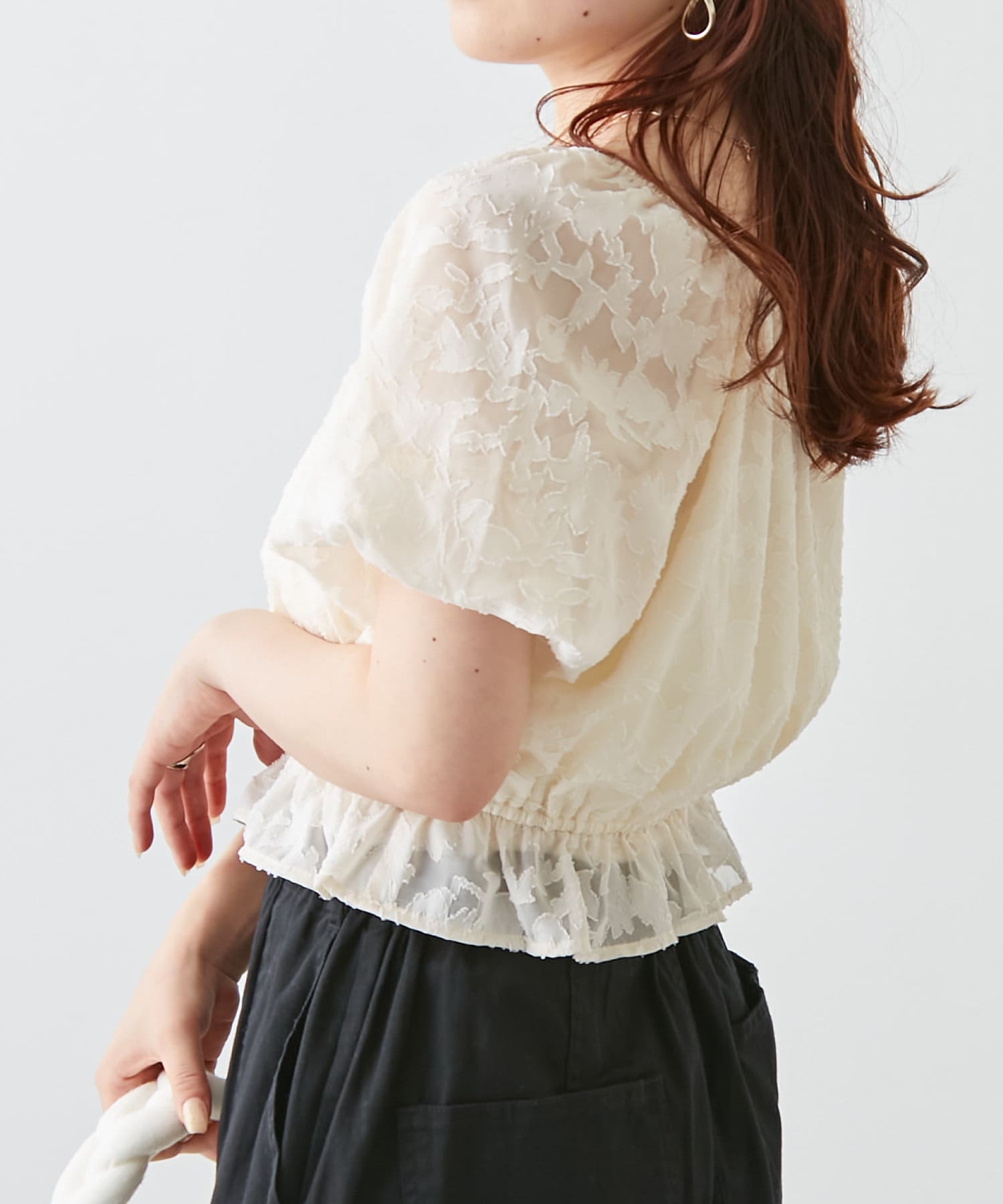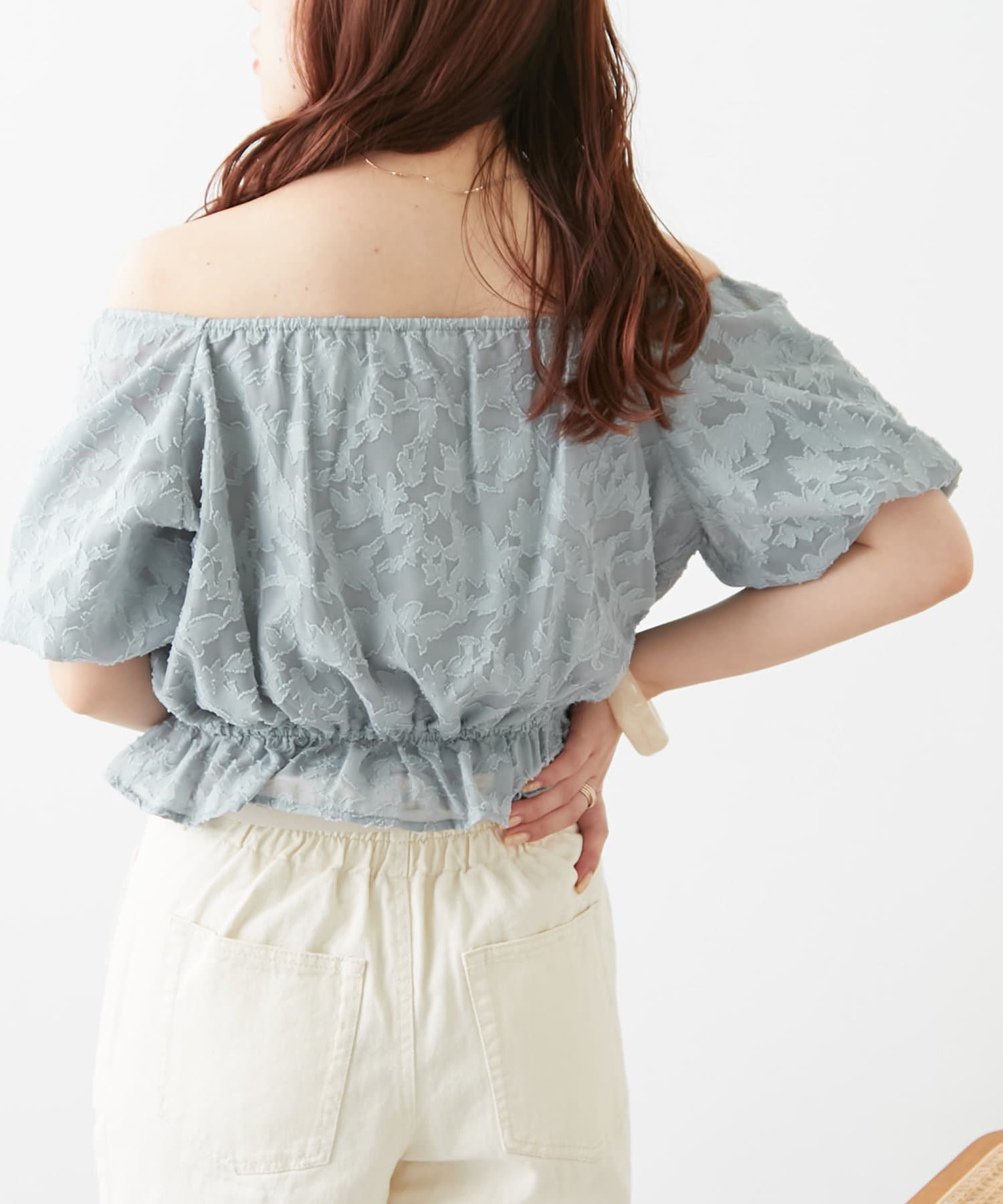 【オフショルにも】花柄ジャガードプルオーバー
