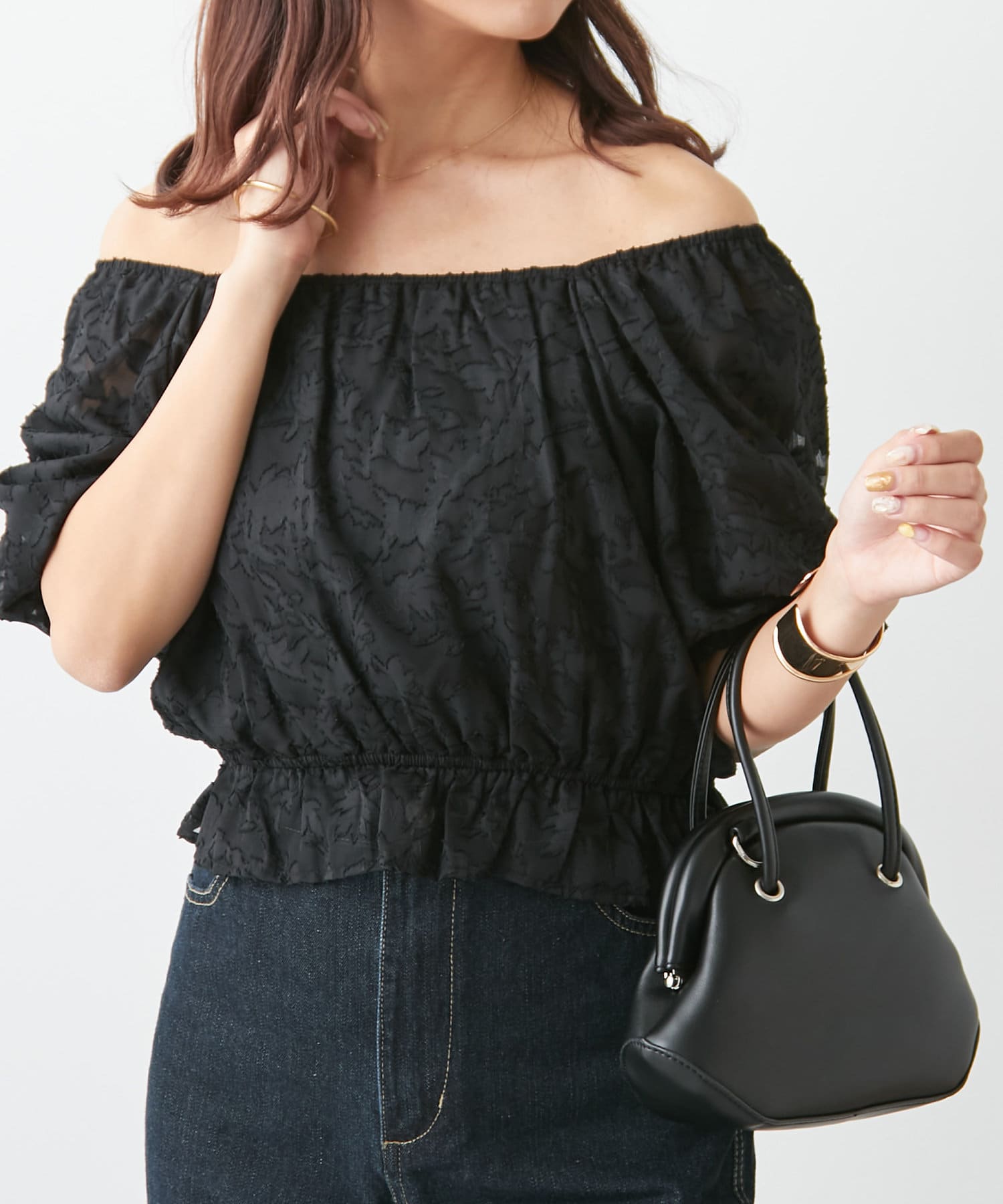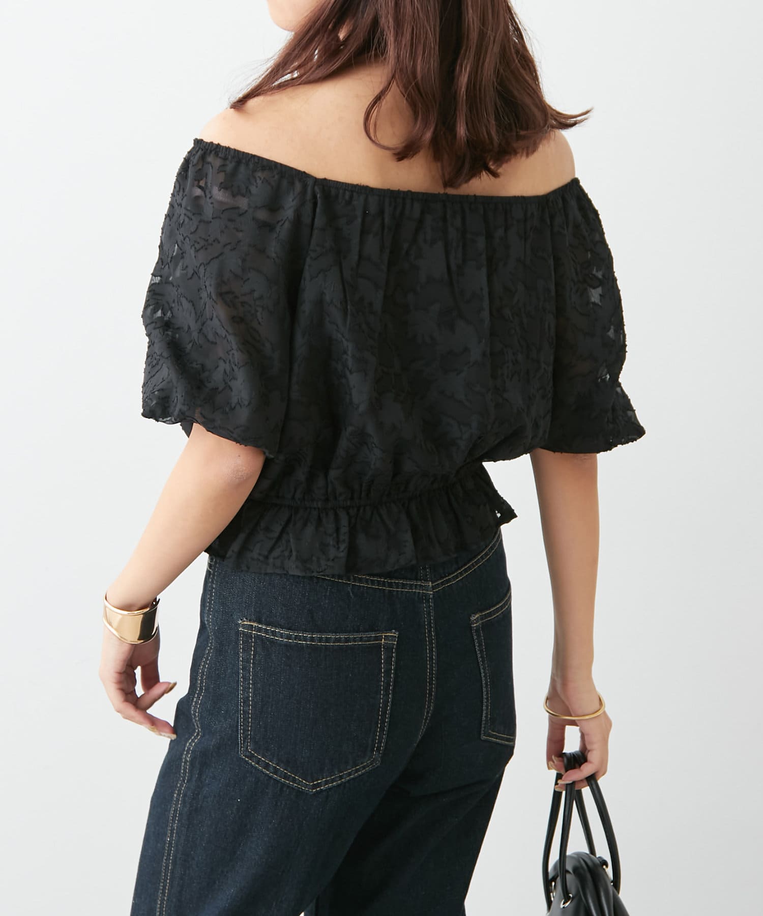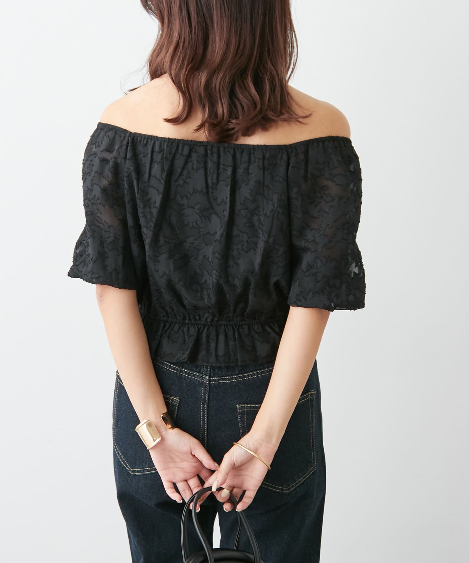 【オフショルにも】花柄ジャガードプルオーバー