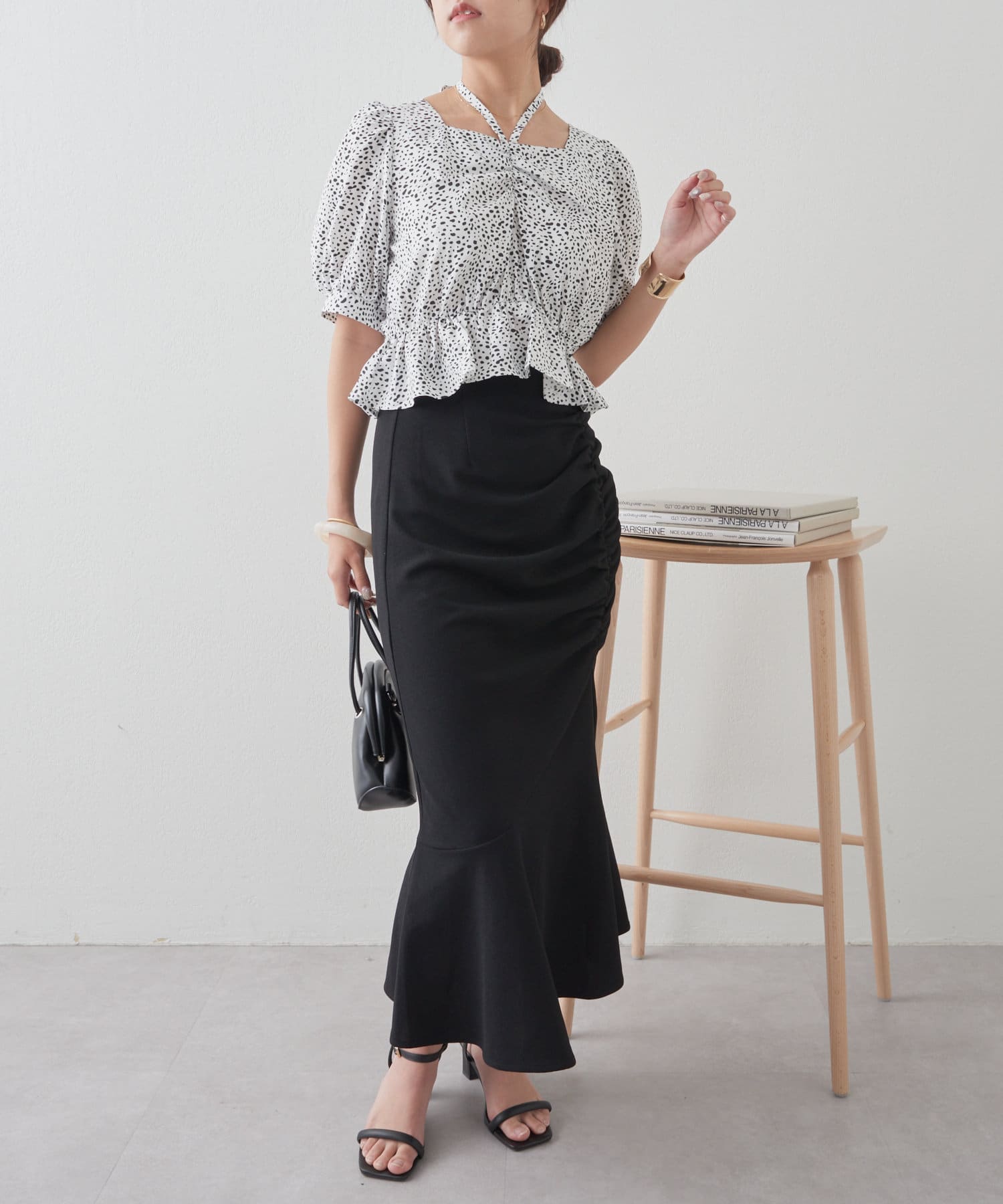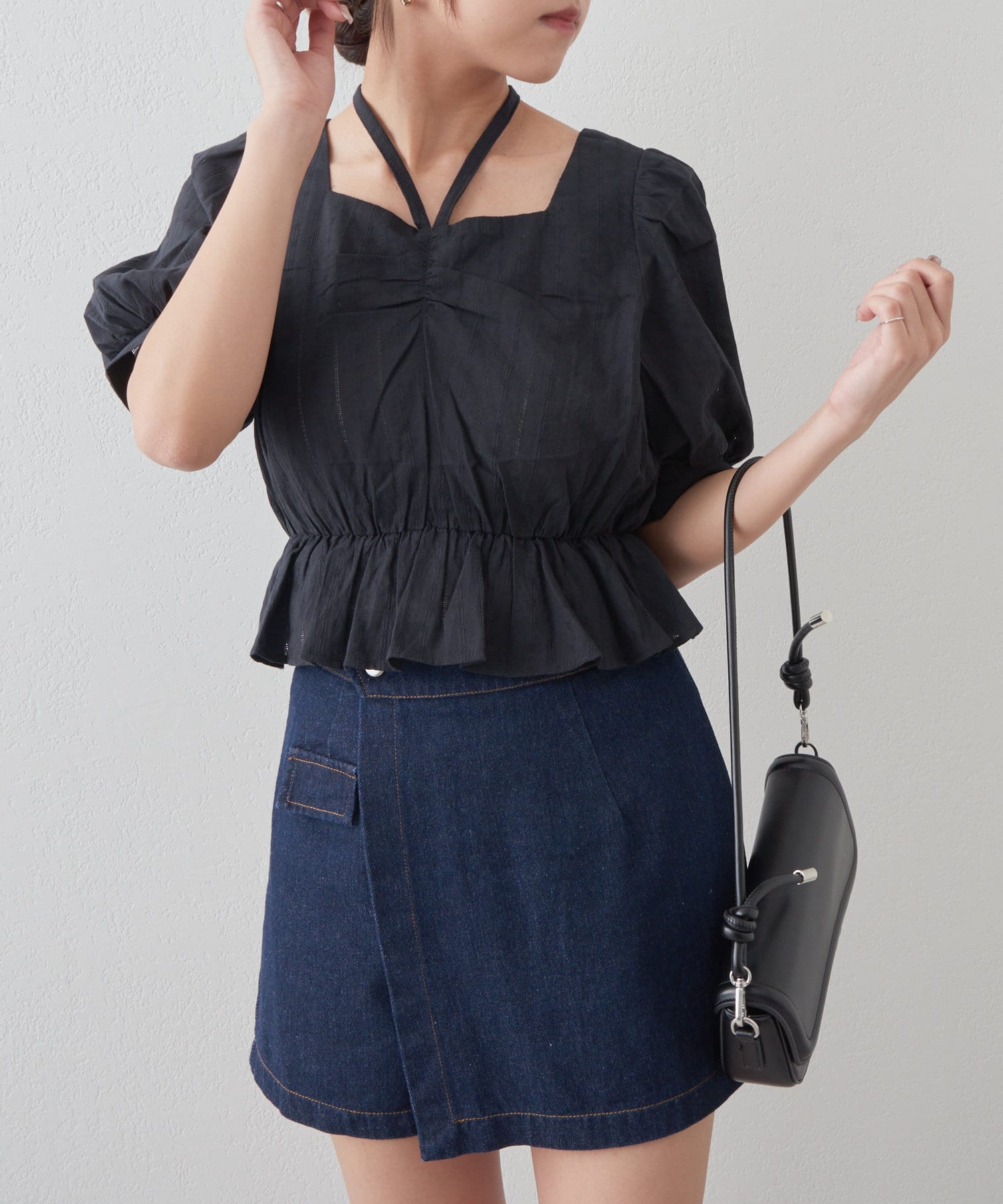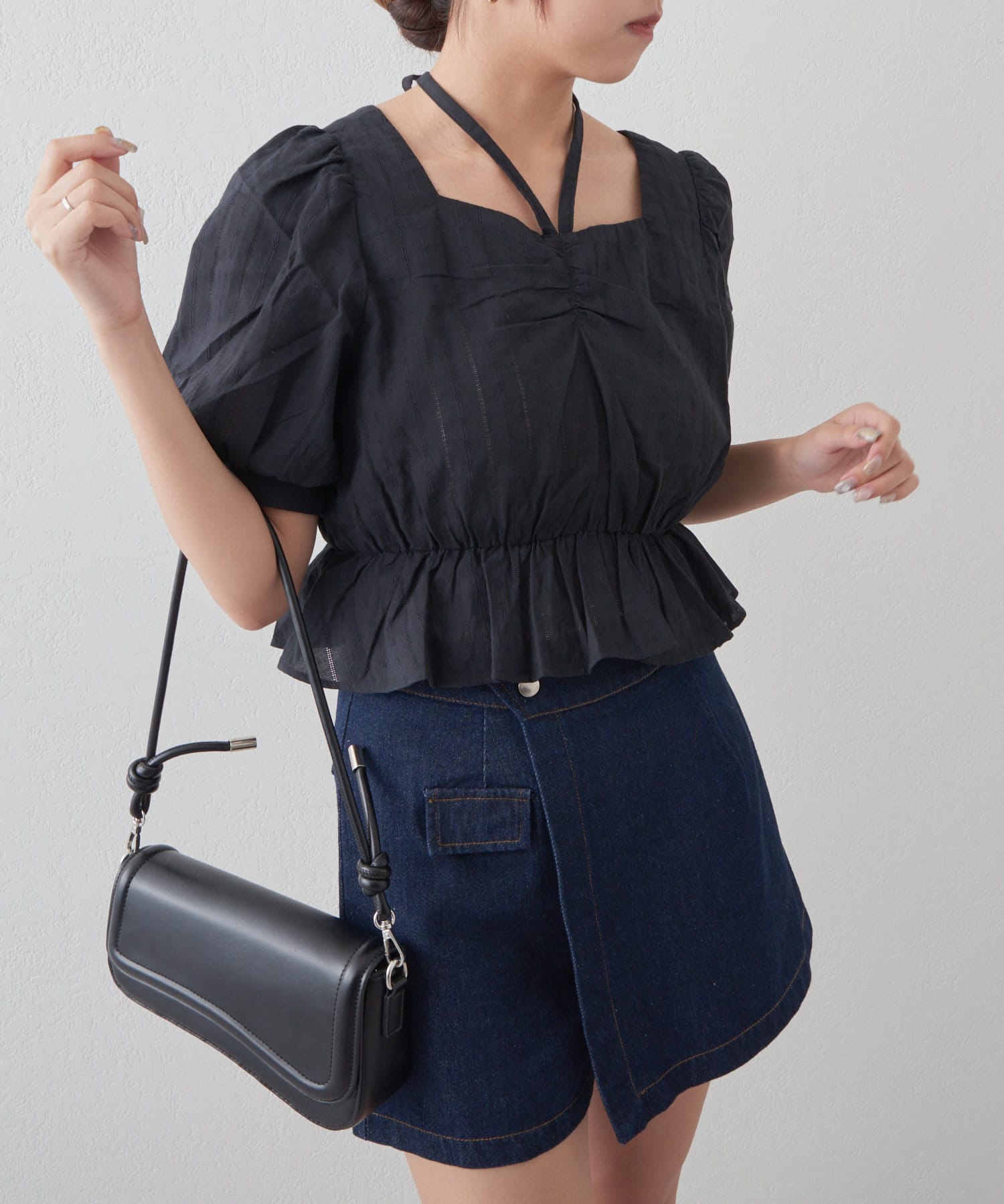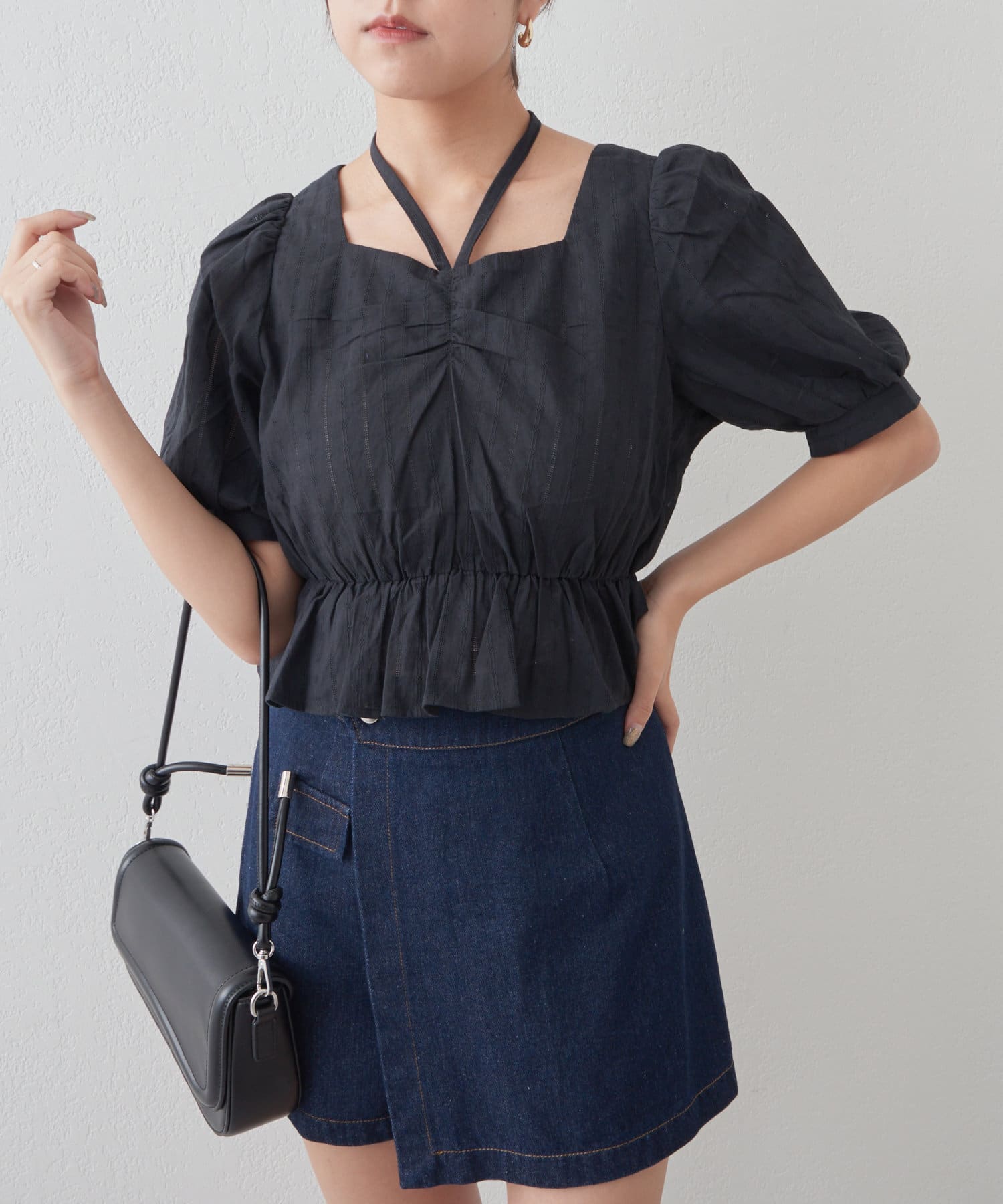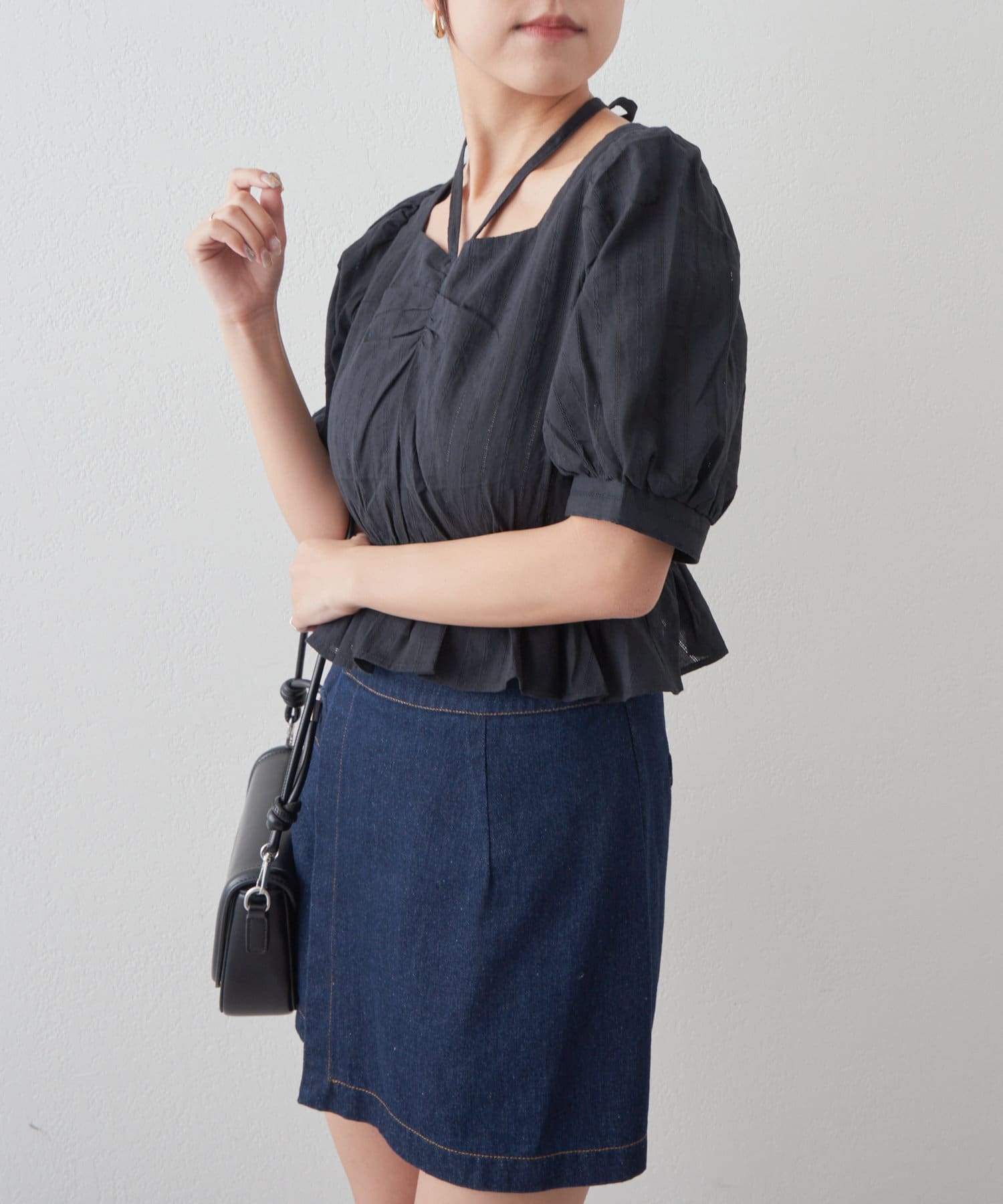 ・ホルターネック仕様で後ろで結ぶので、大人っぽく着ていただけます。