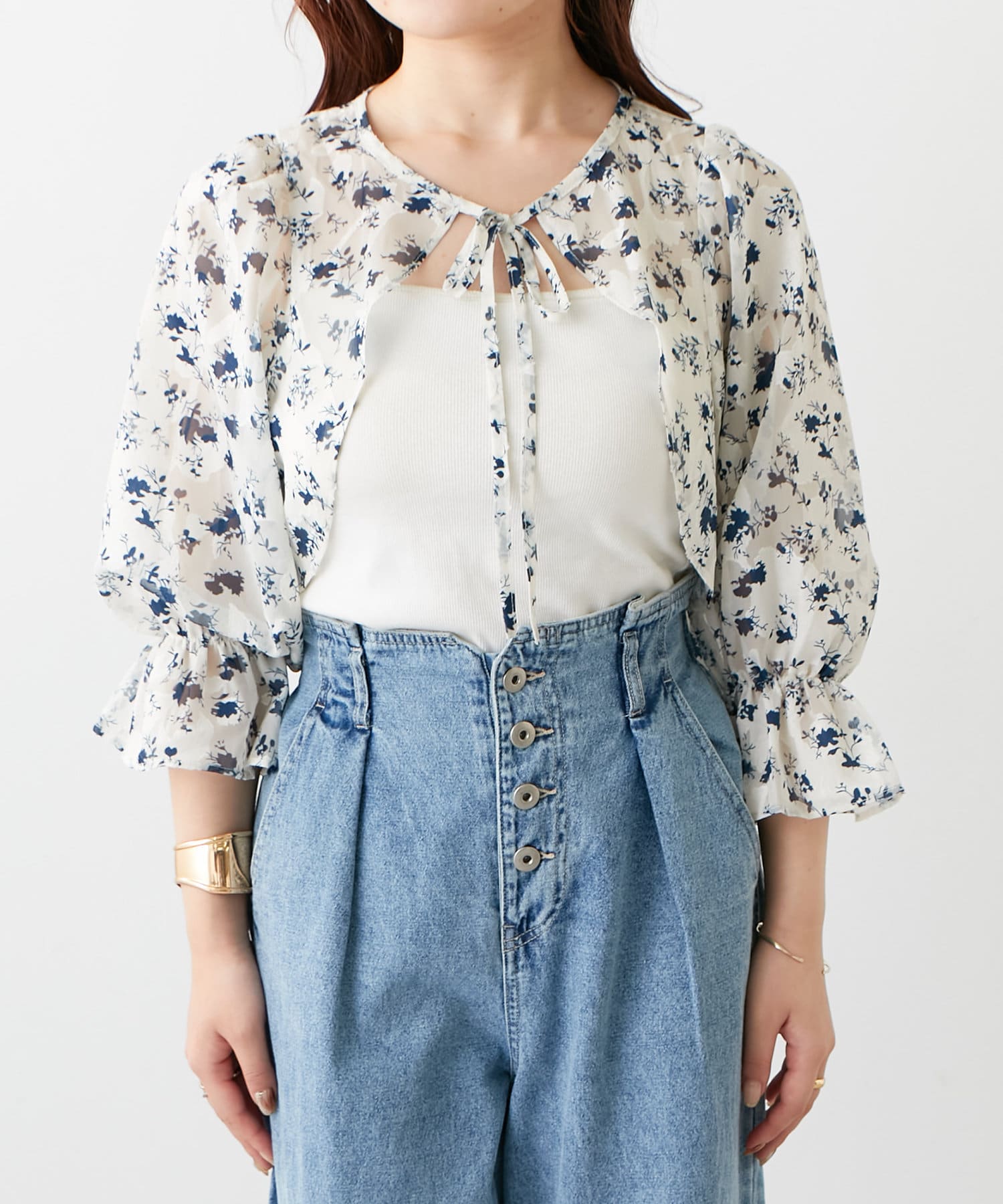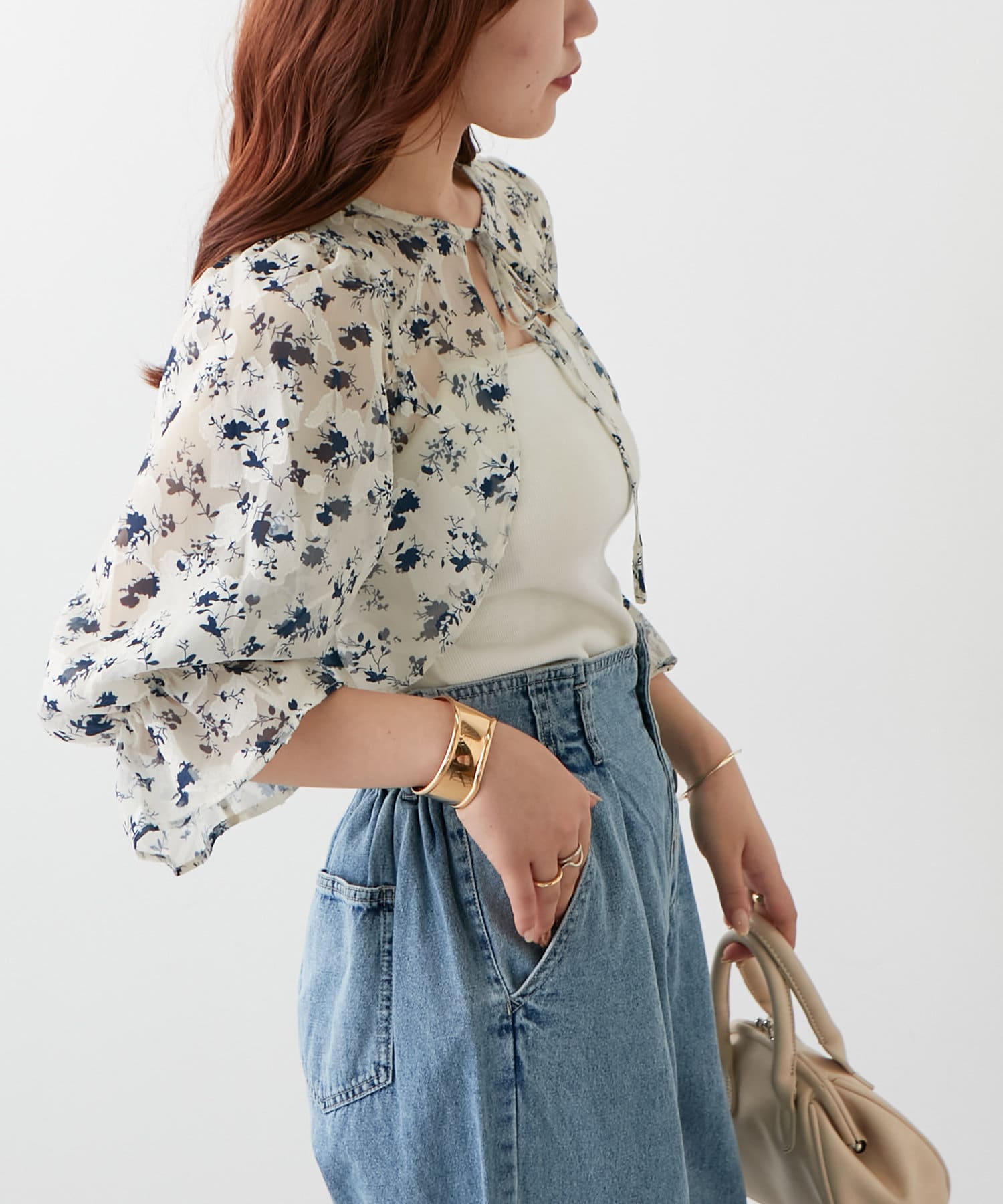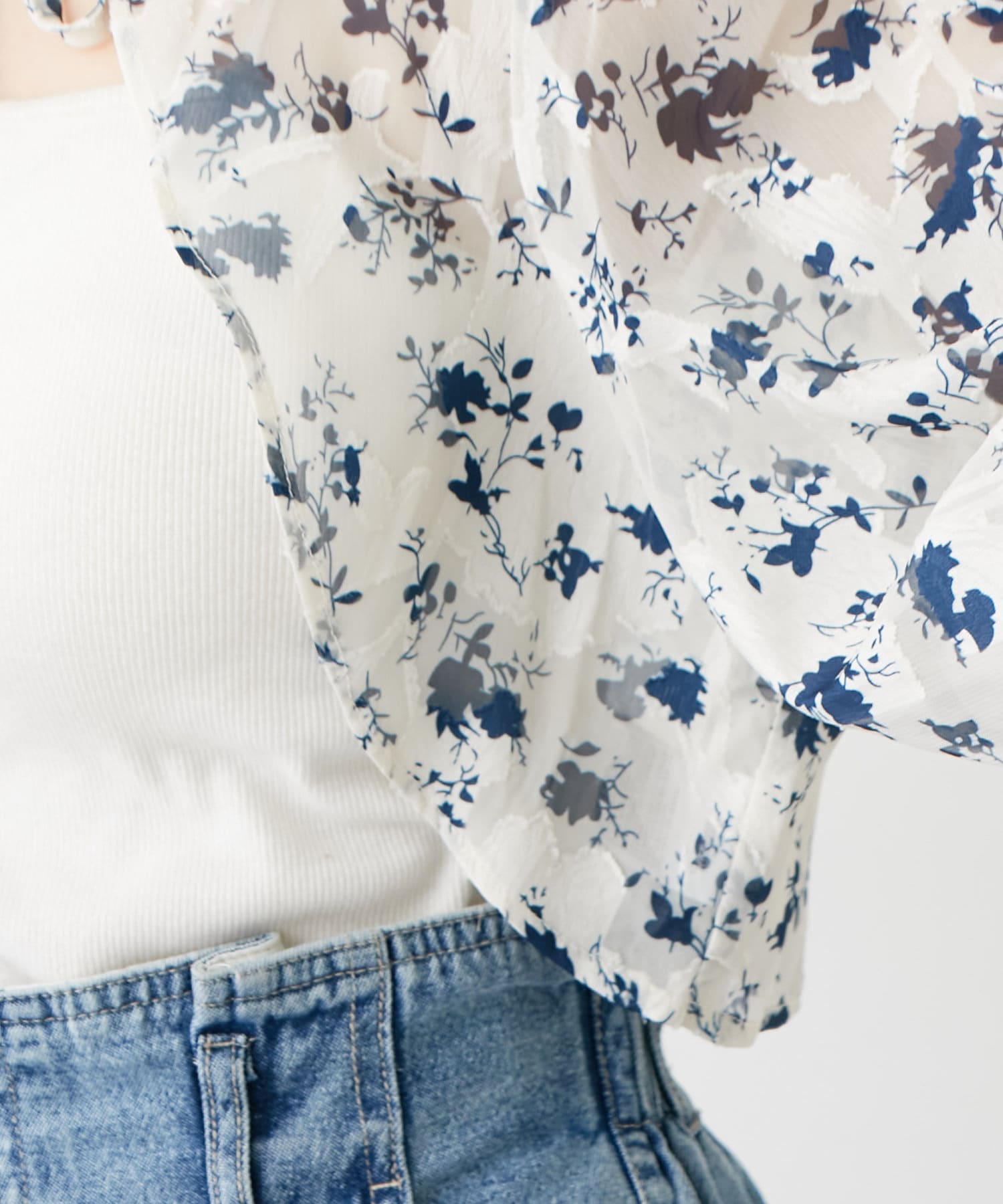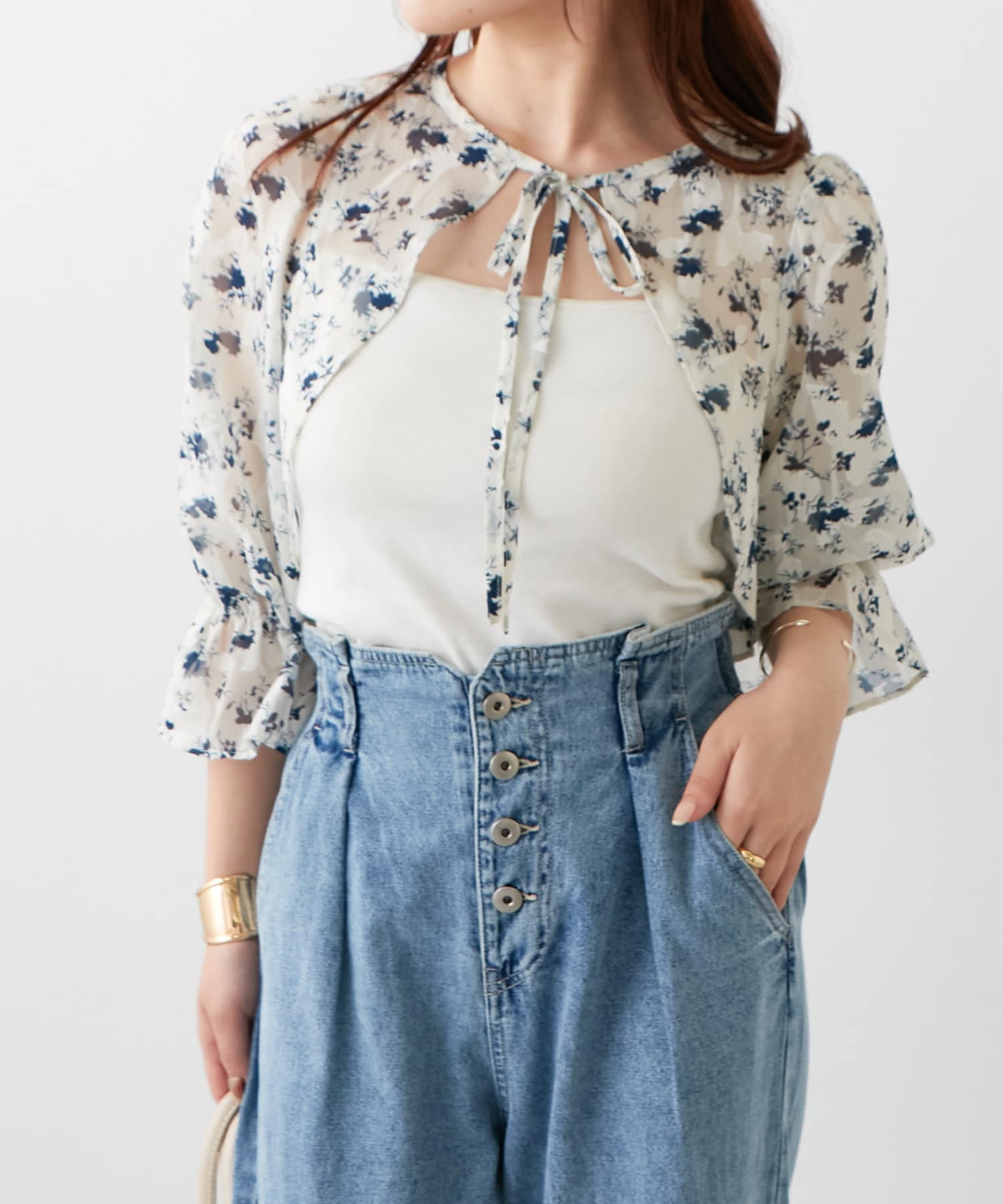 ・小花柄が上品な印象を与えるデザインで、キャミなどに合わせるのがオススメ