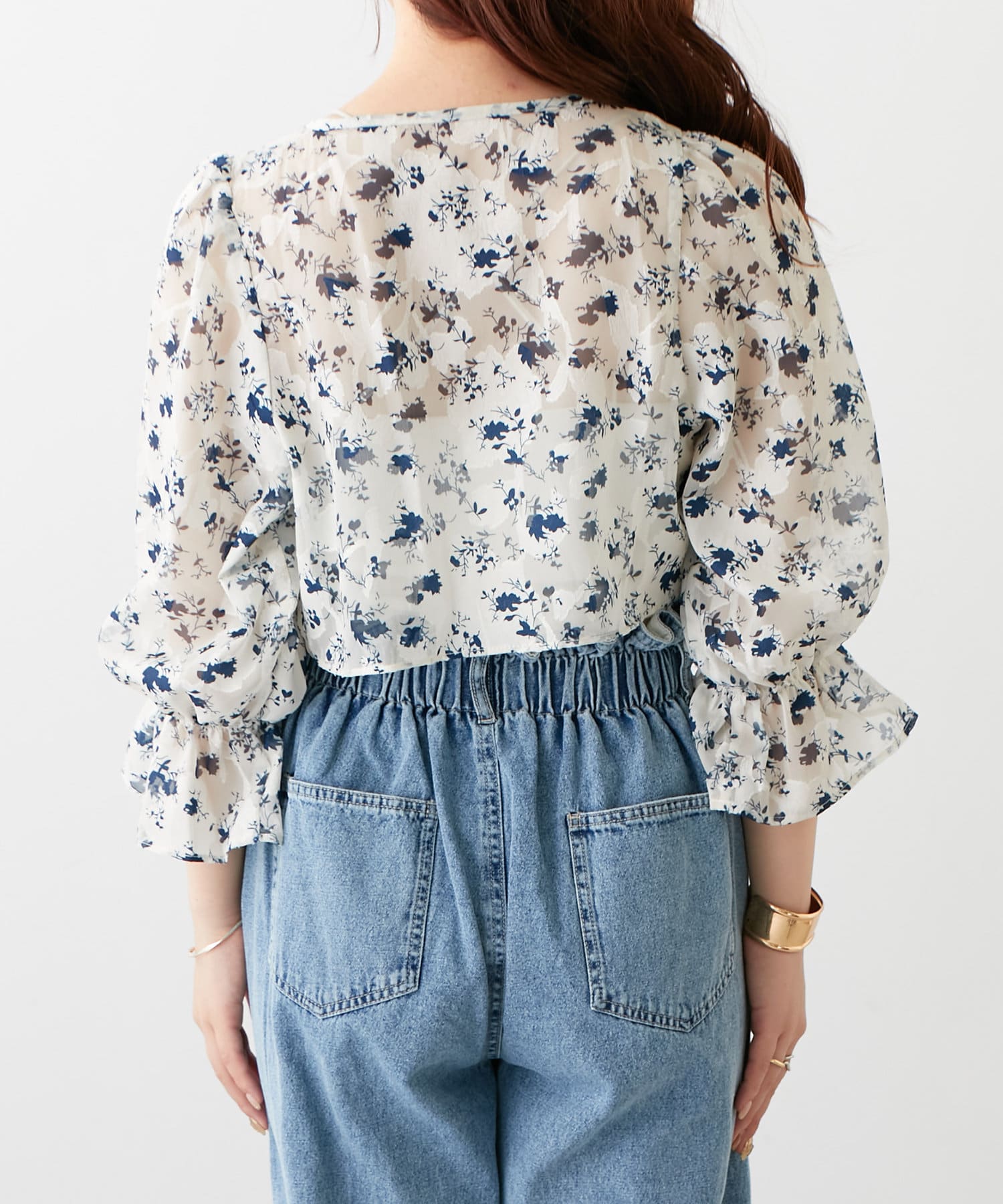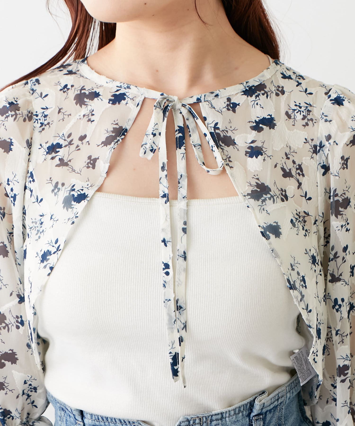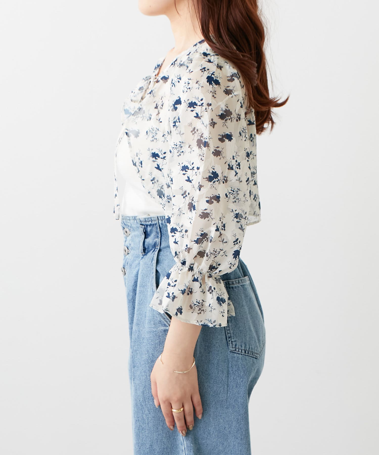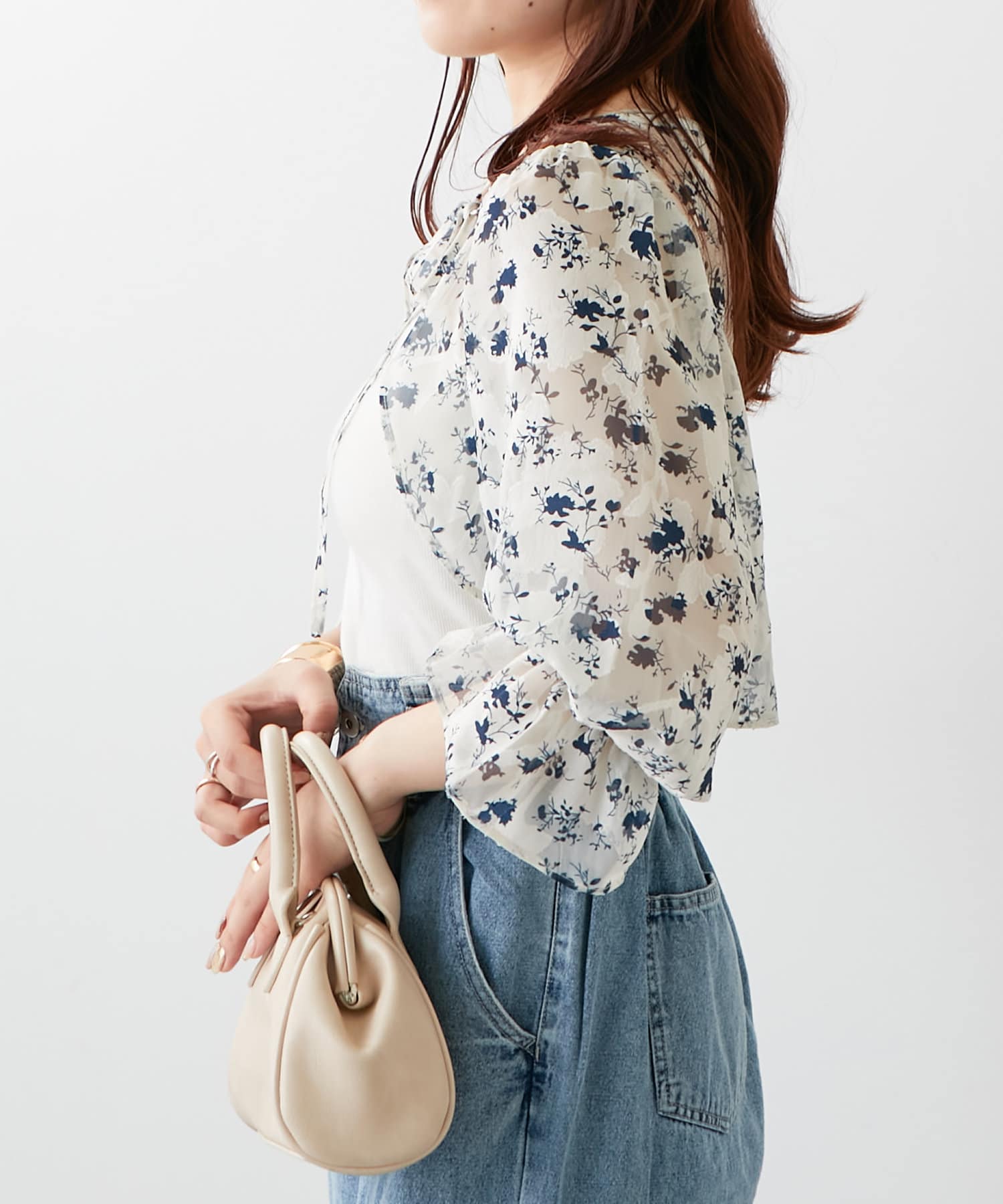 ・小花柄が上品な印象を与えるデザインで、キャミなどに合わせるのがオススメ